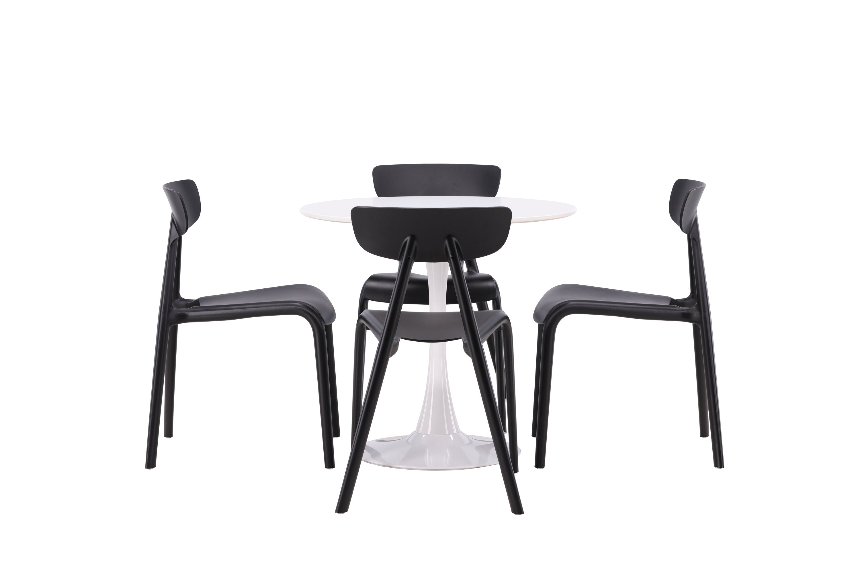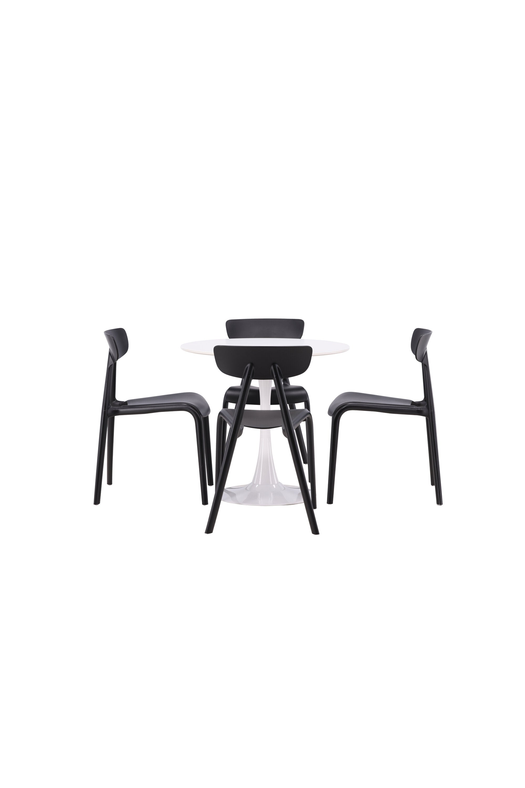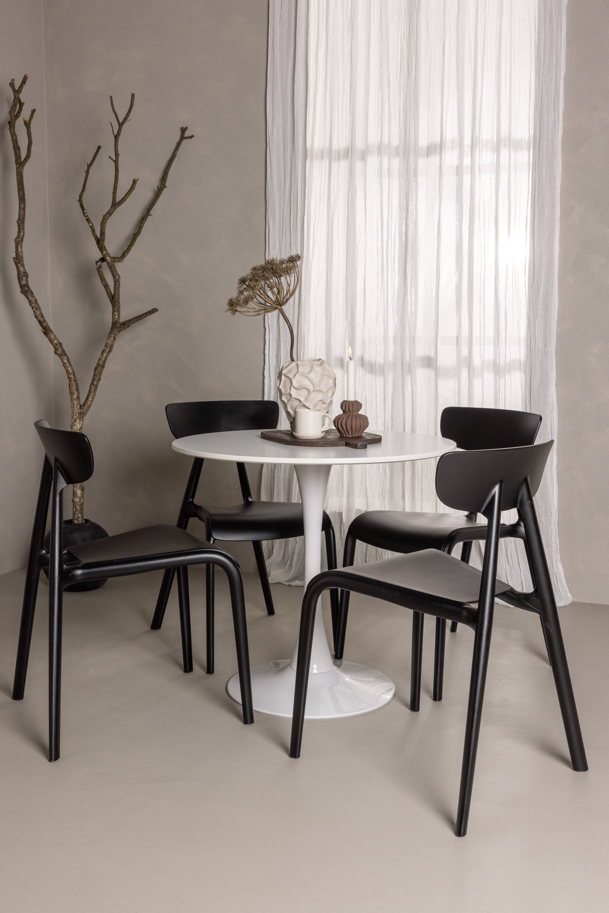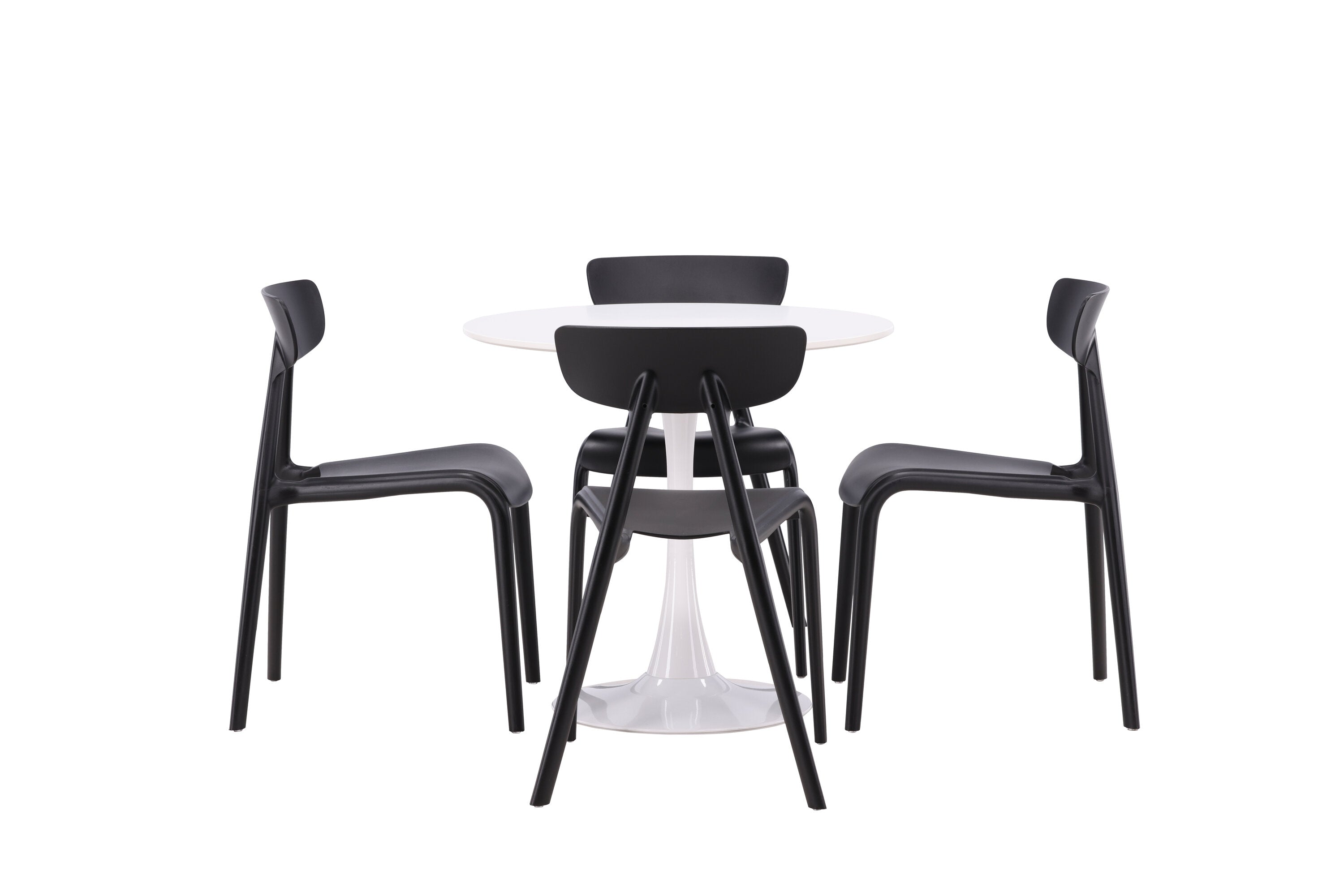 Jídelní stůl Hamden - Bílá MDF+Ursholmen Jídelní židle - Černá Polypropylen_4