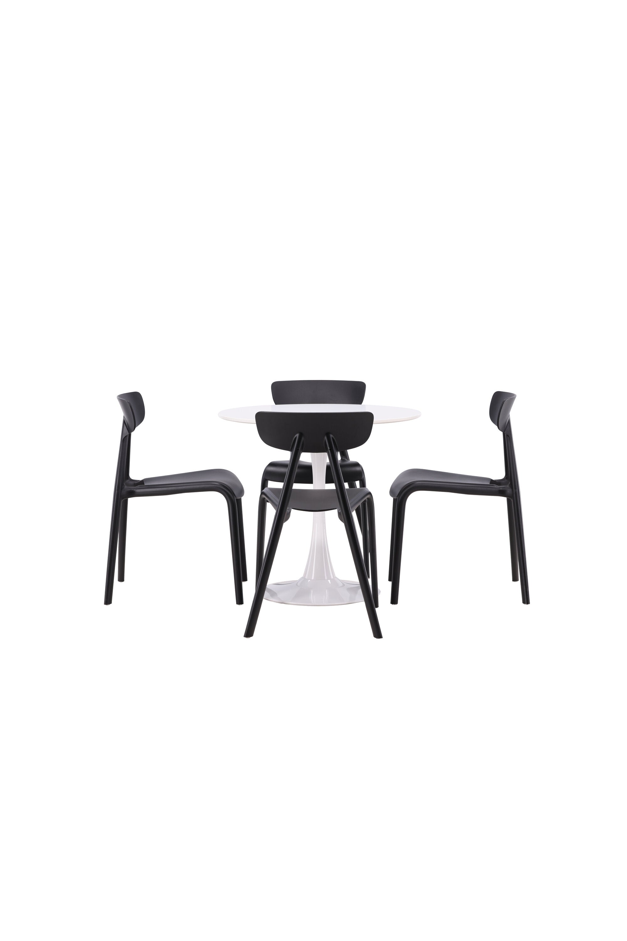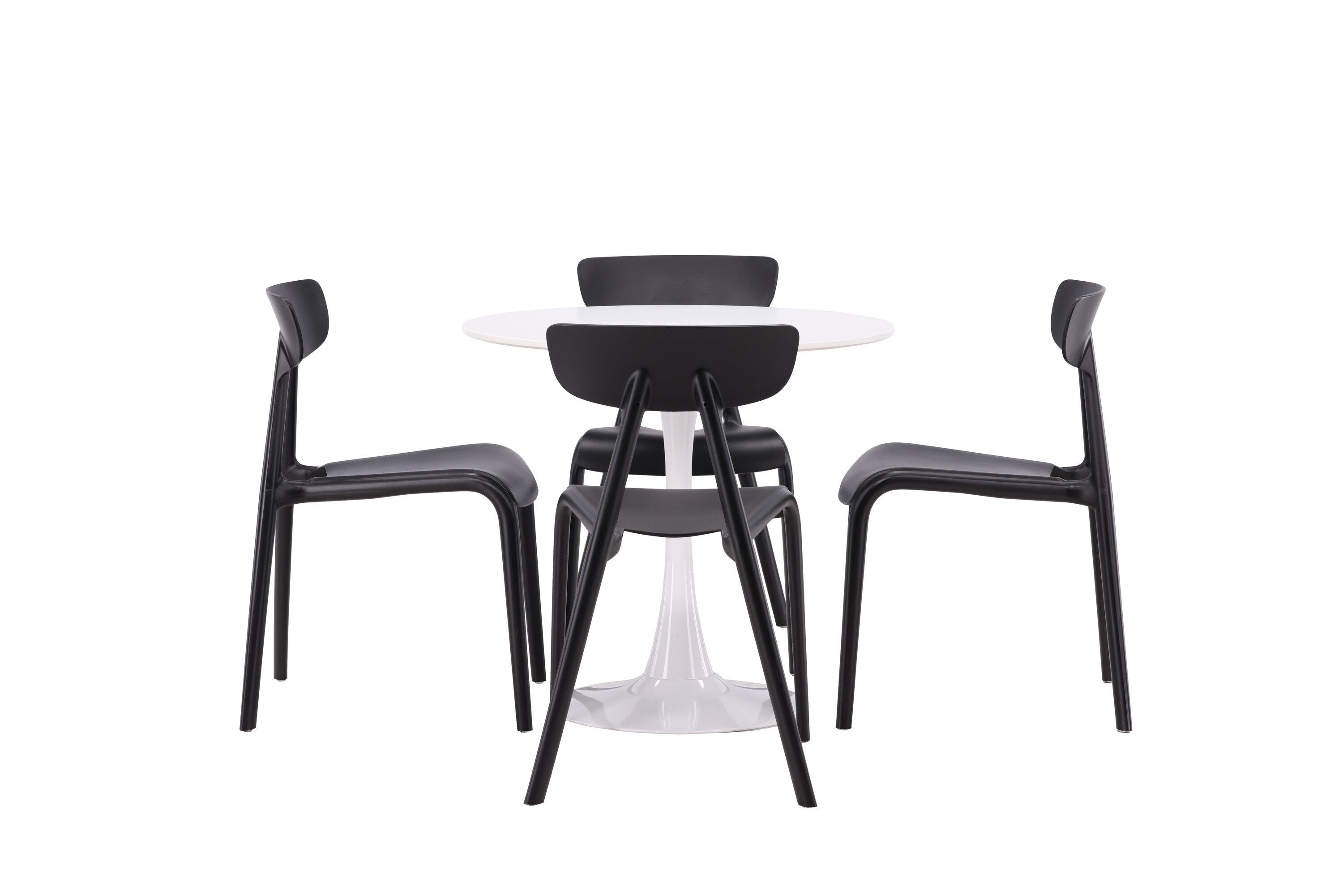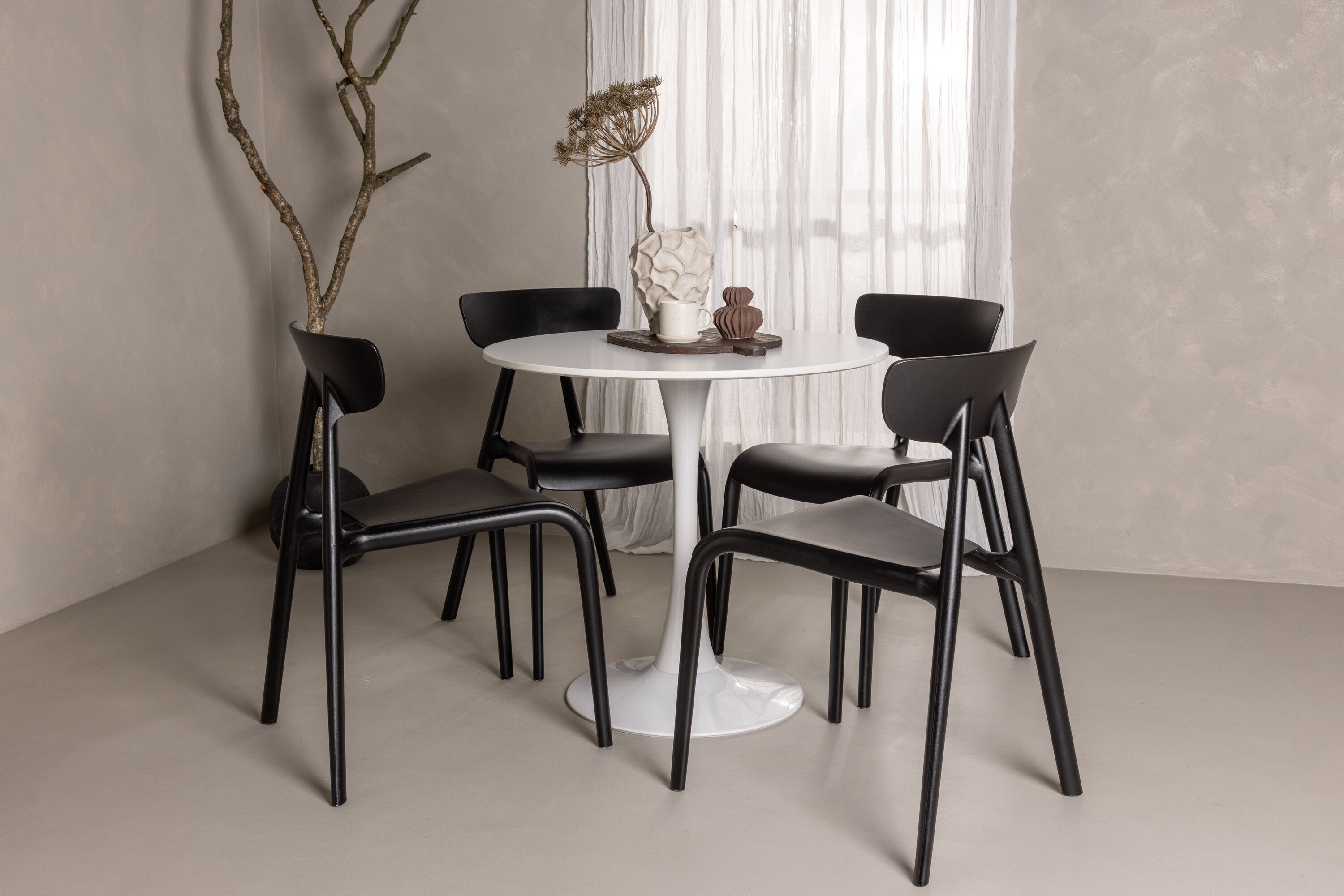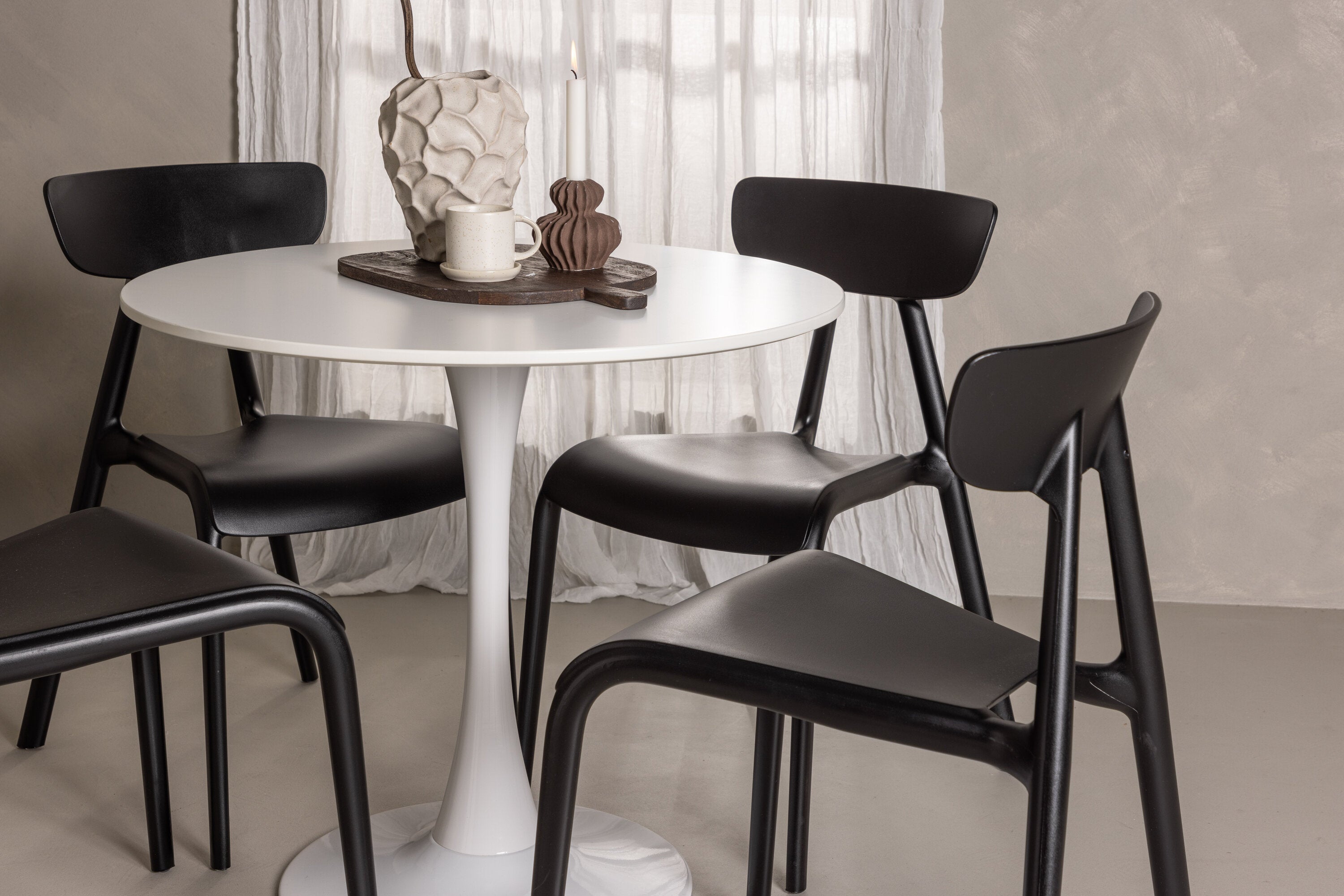 Jídelní stůl Hamden - Bílá MDF+Ursholmen Jídelní židle - Černá Polypropylen_4