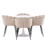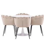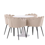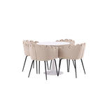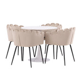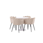 Jídelní stůl Hamden - Bílá MDF+Židle Limhamn - Černá / Béžová Velvet_4