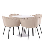 Židle jsou vyrobeny z polyesterového sametu a poskytují luxusní a měkké sezení. Se čtyřmi přiloženými židlemi je tato sada ideální pro setkávání rodiny a přátel u jídelního stolu. Díky jednoduchému designu a materiálům, které se snadno udržují, je snadné ji udržovat úhlednou a čistou. Po jídle můžete povrch stolu snadno otřít, abyste zachovali jeho krásu a lesk.