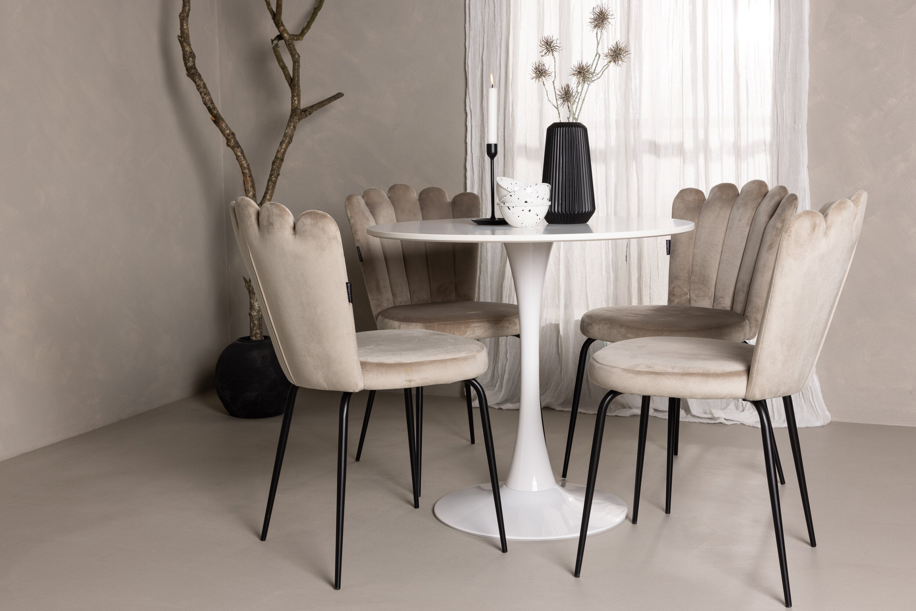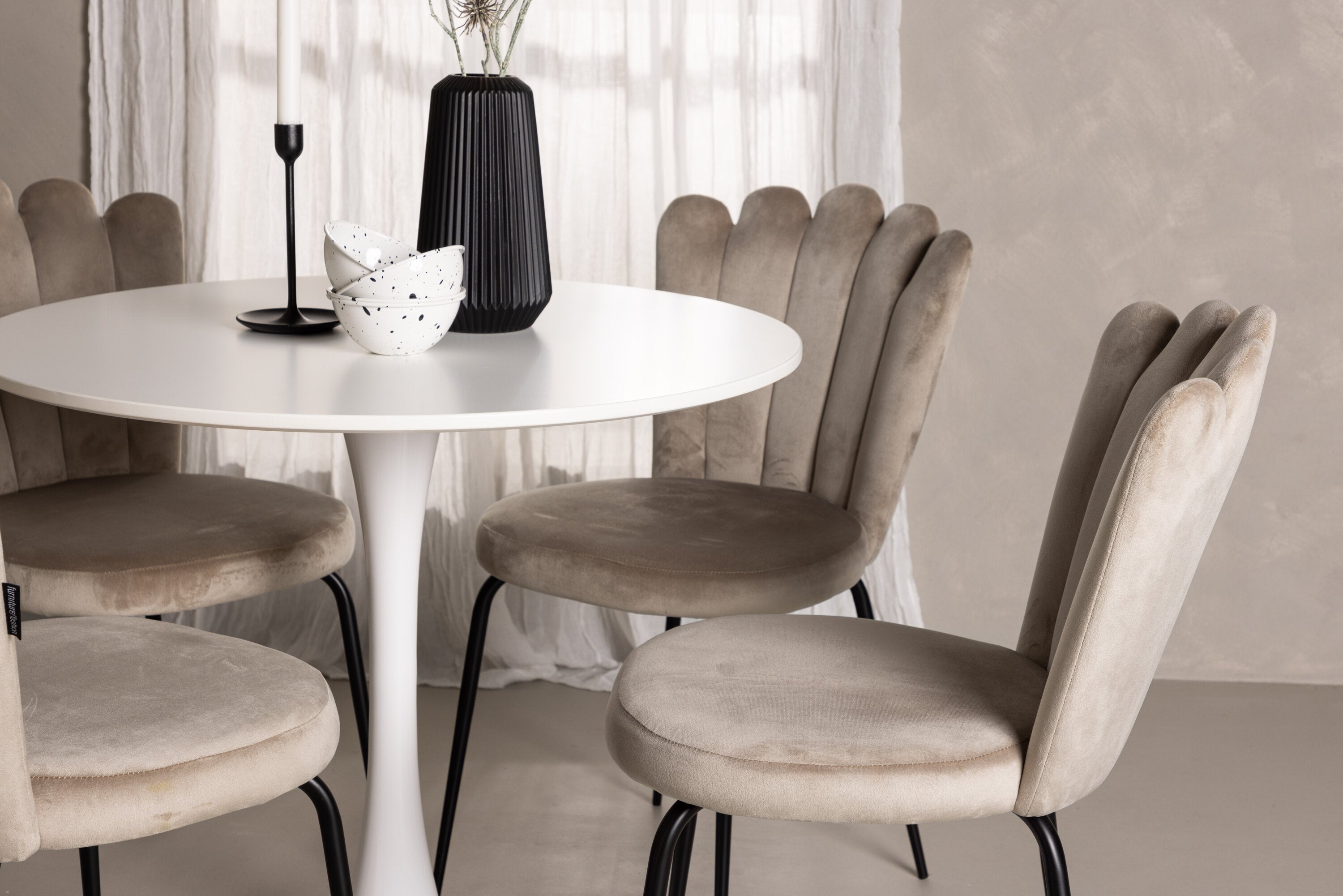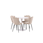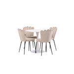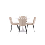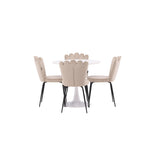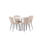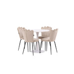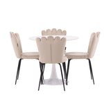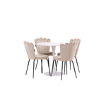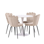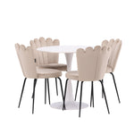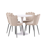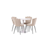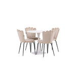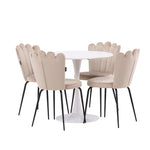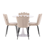 Jídelní stůl Hamden - Bílá MDF+Židle Limhamn Light - Černá / Béžová Velvet_4