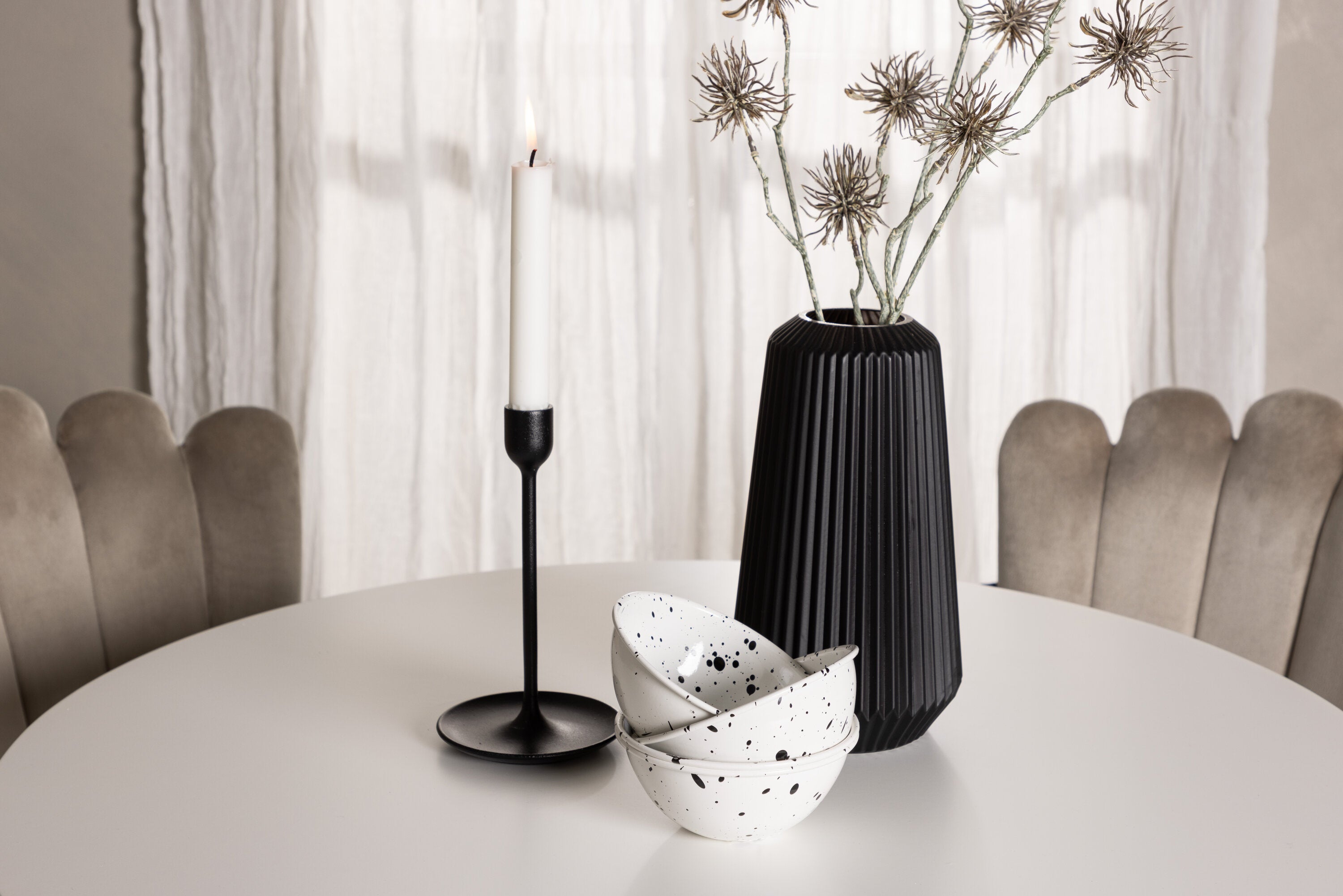 Není to však jen stůl, který udělá dojem – naše židle Limhamn jsou dokonalým doplňkem. Jsou zdobené měkkým sametem a teplým béžovým odstínem a přinášejí sofistikovaný nádech do vašeho jídelního prostoru. Jejich moderní design a ergonomický tvar poskytují bezkonkurenční pohodlí při sezení a zvyšují požitek z vašeho jídla.