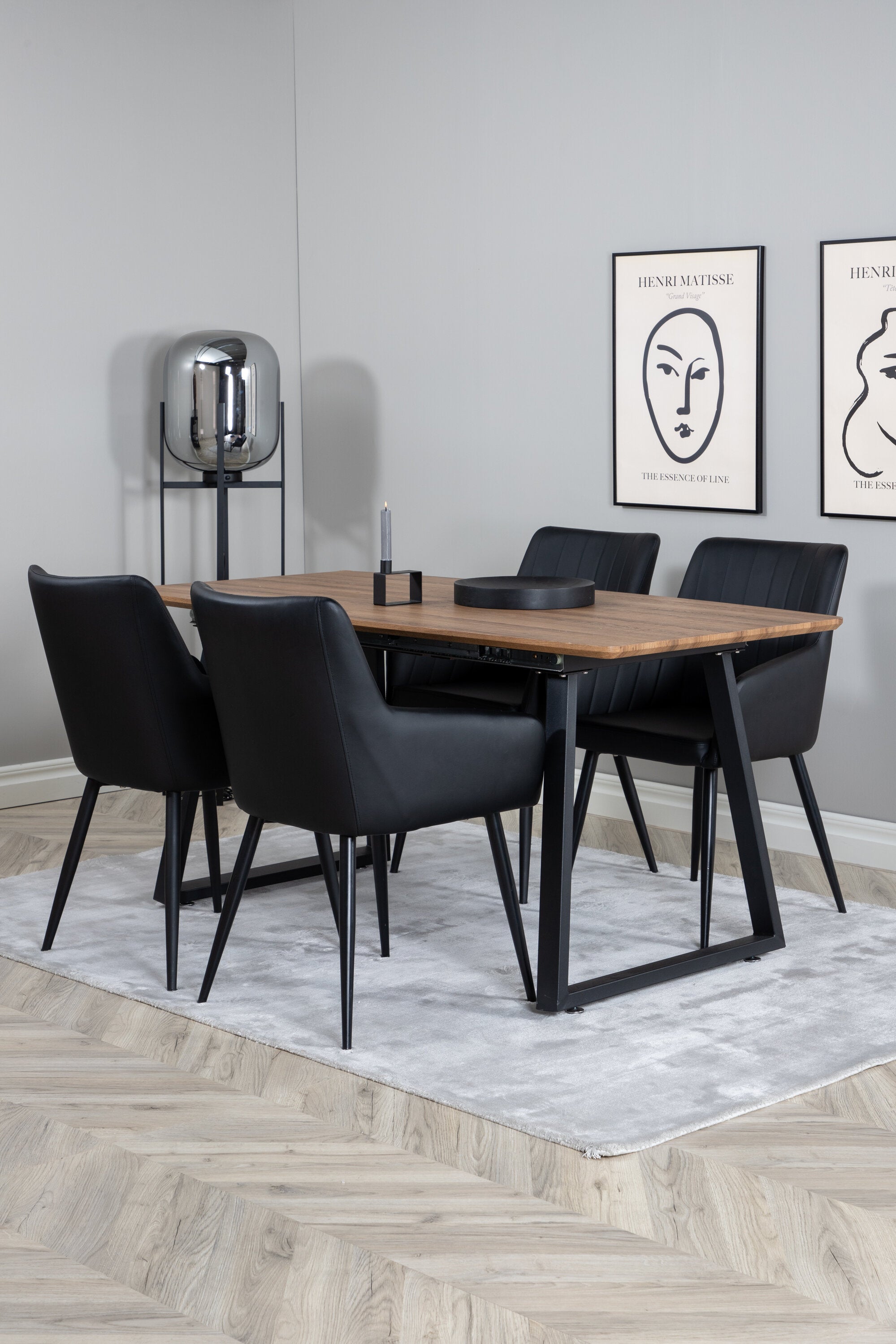 Jídelní stůl Inca - 160/200*85*H75 - Dub / Černá +Comfort - Jídelní židle 2-balení - černá/Černá _4