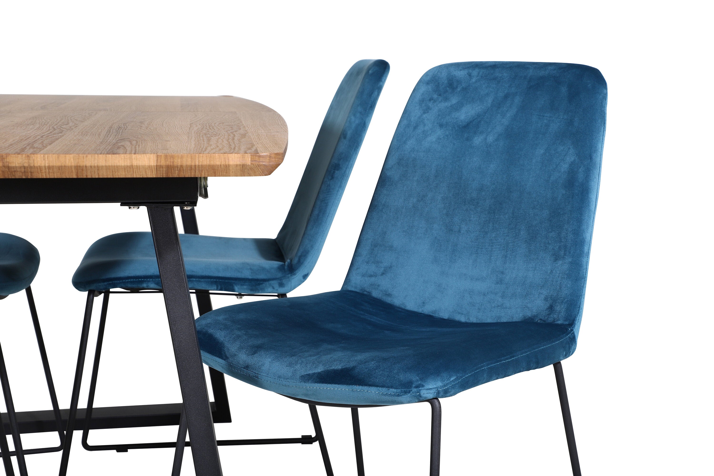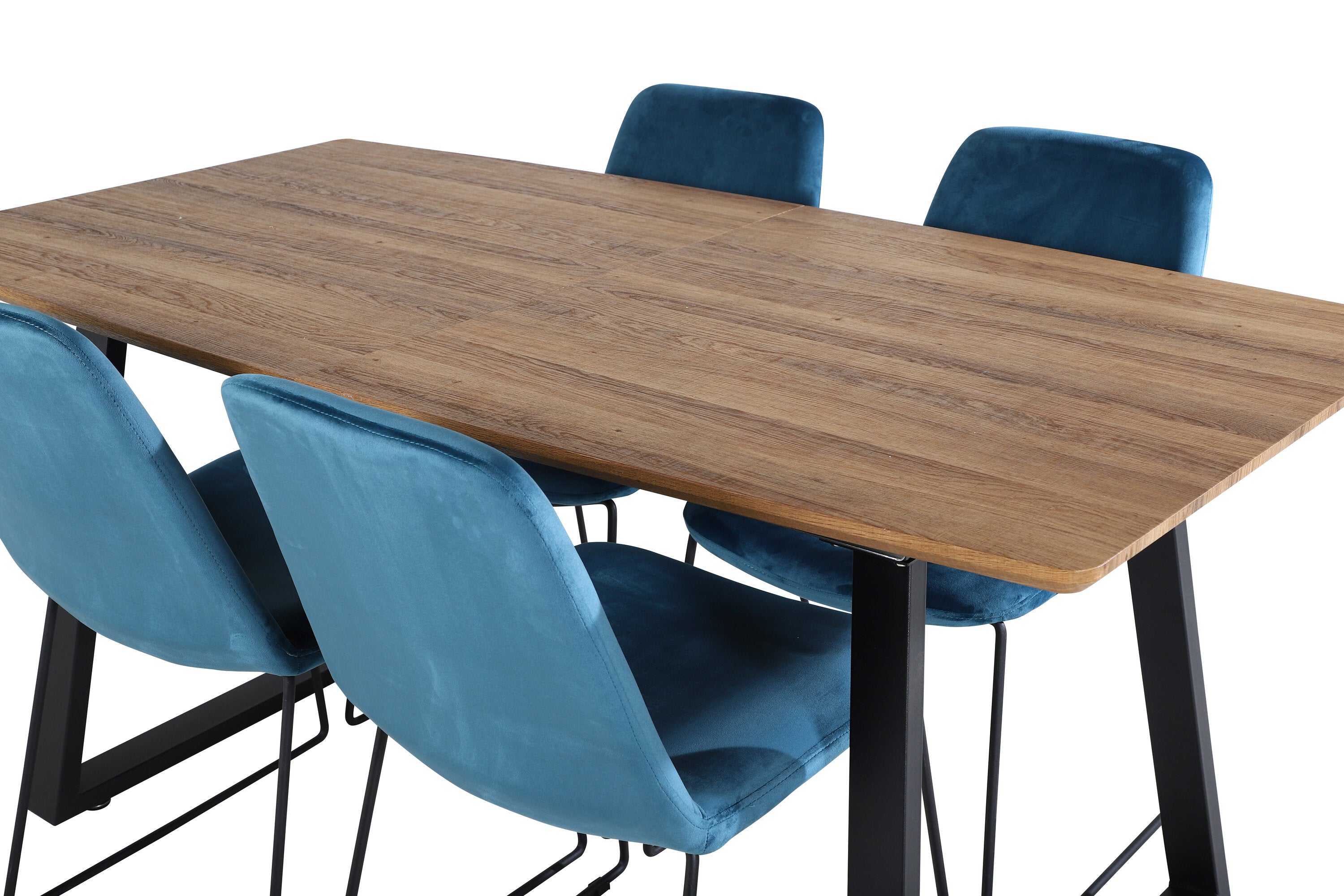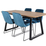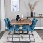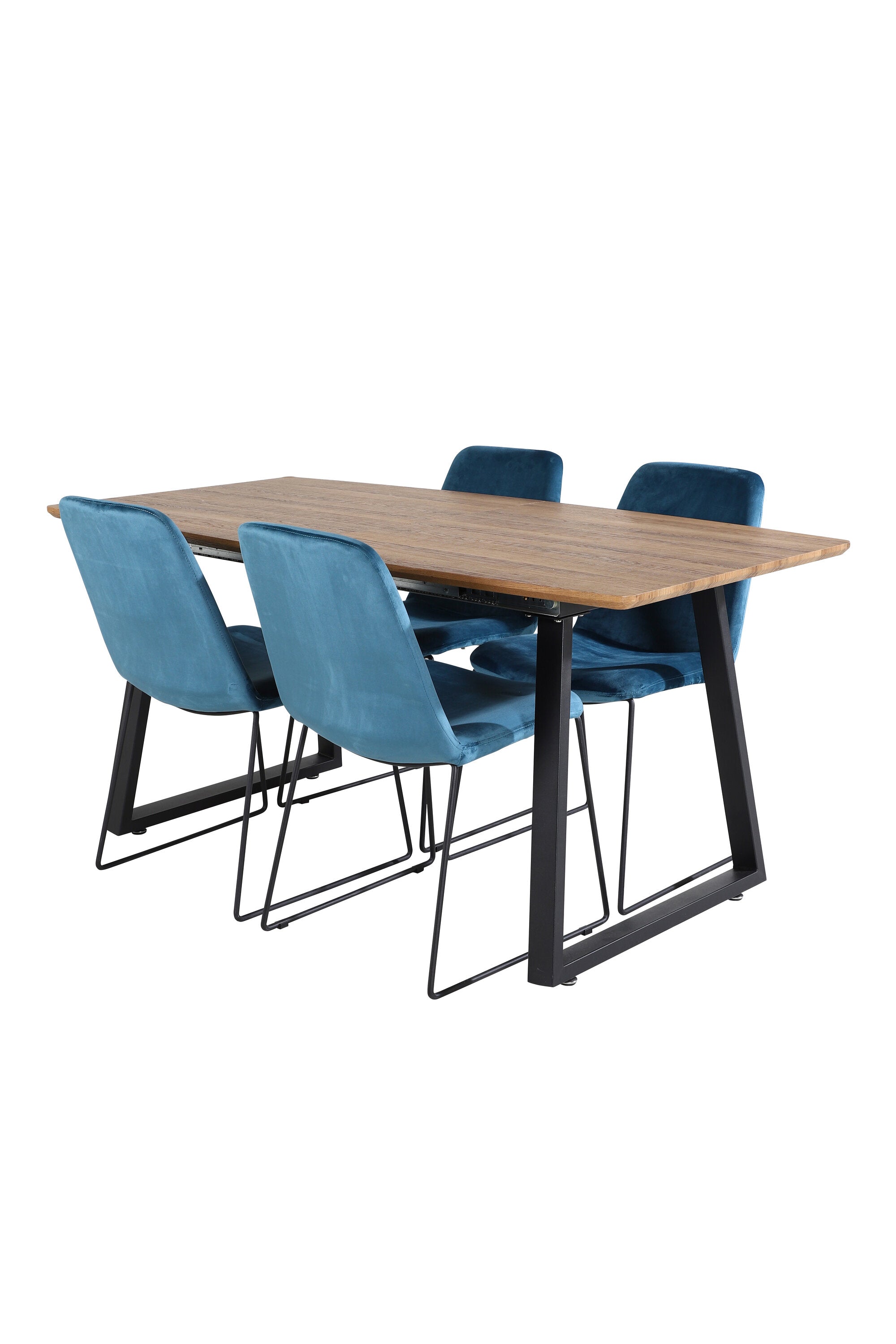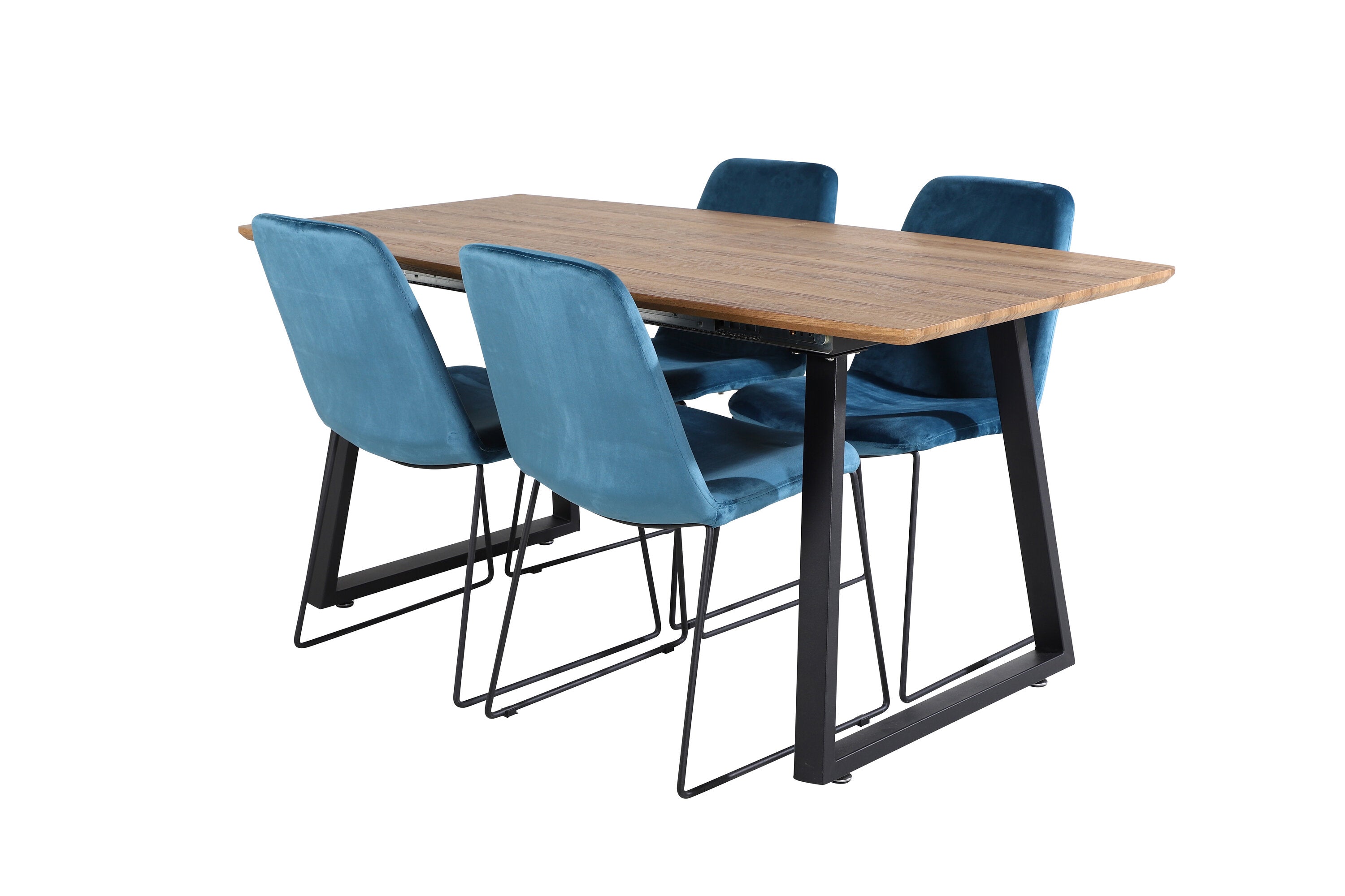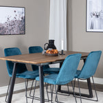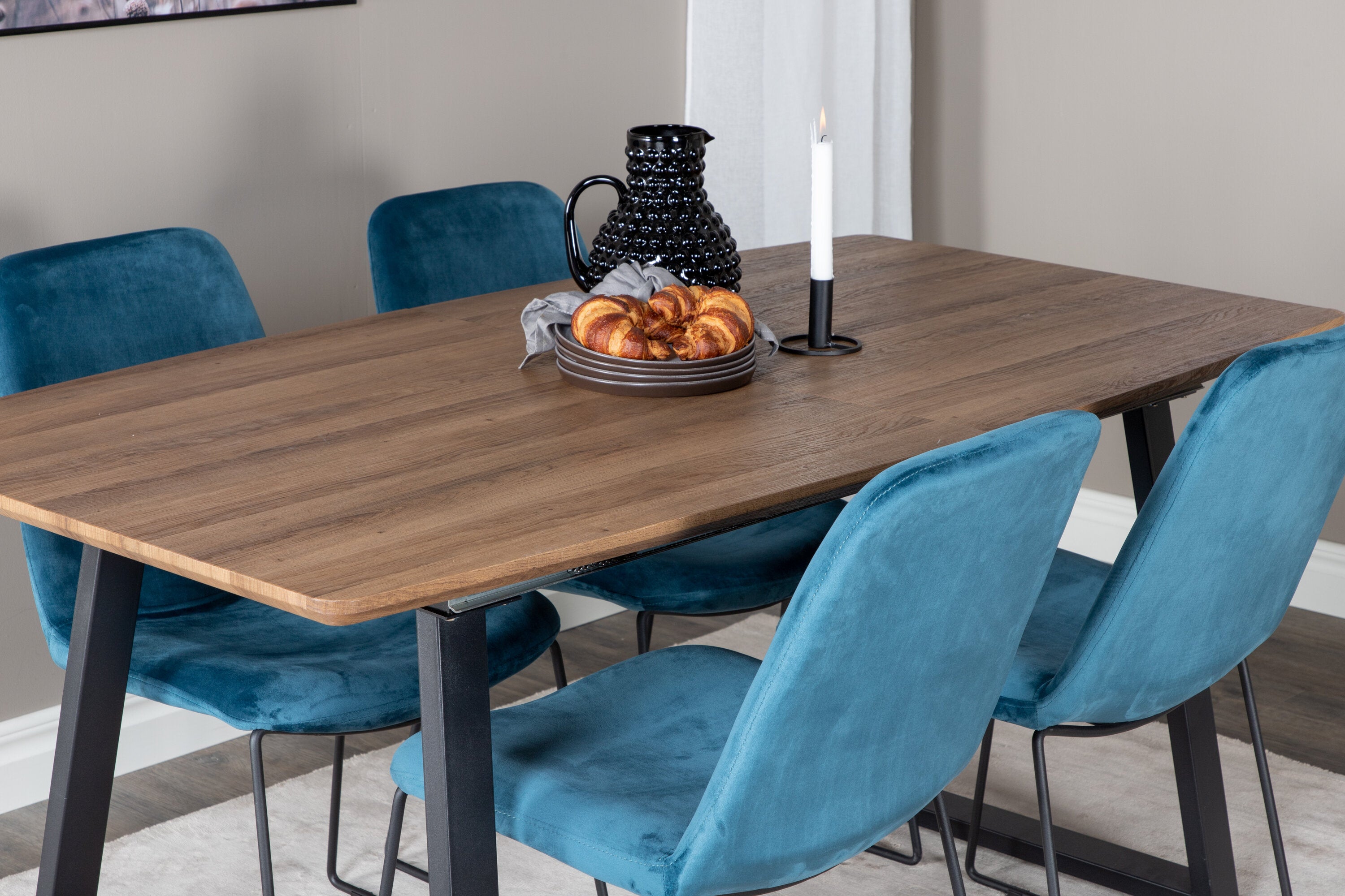 Jídelní stůl Inca - 160/200*85*H75 - Dub / Černá + Muce Jídelní židle - Černé nohy - Modrá Velvet_4