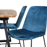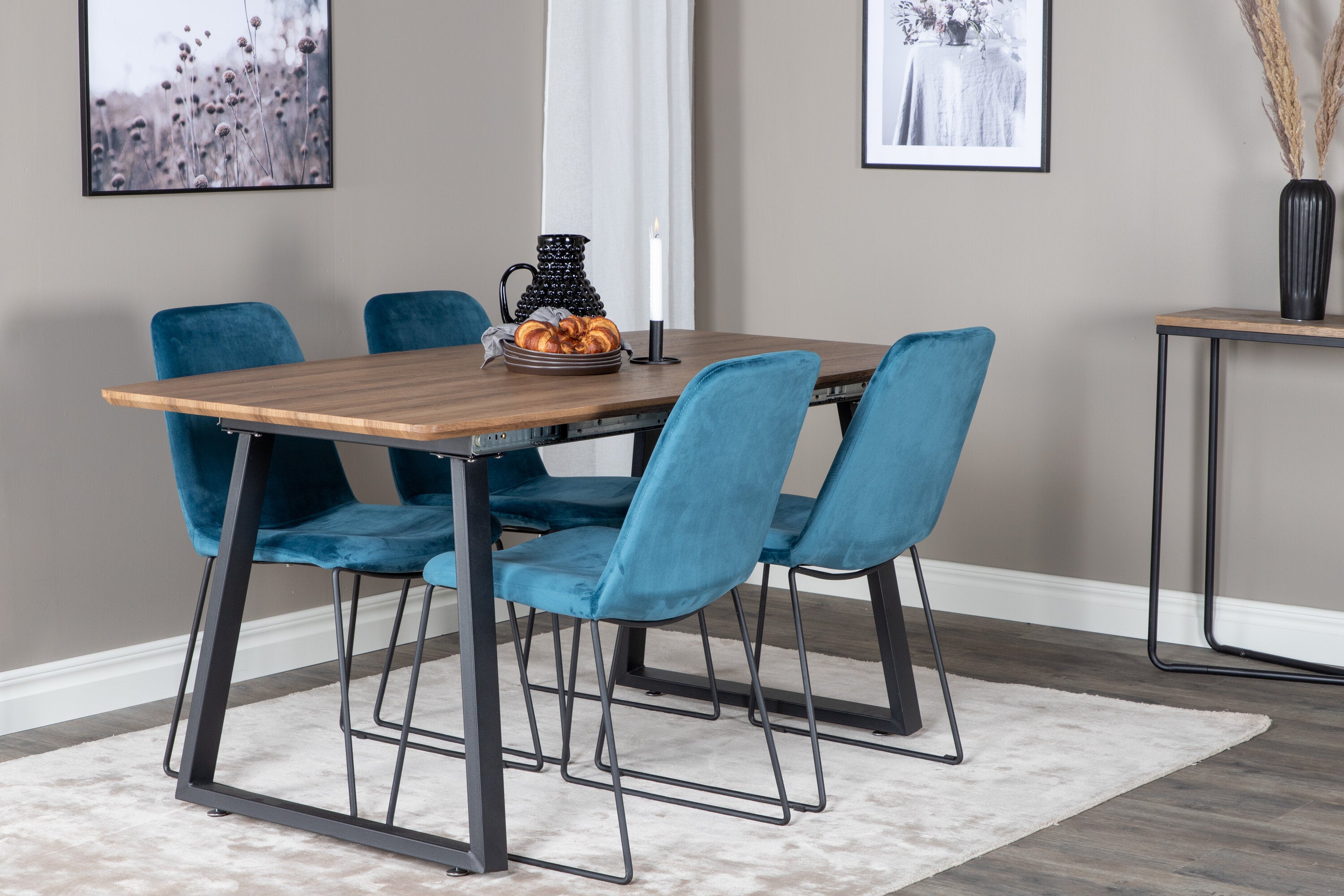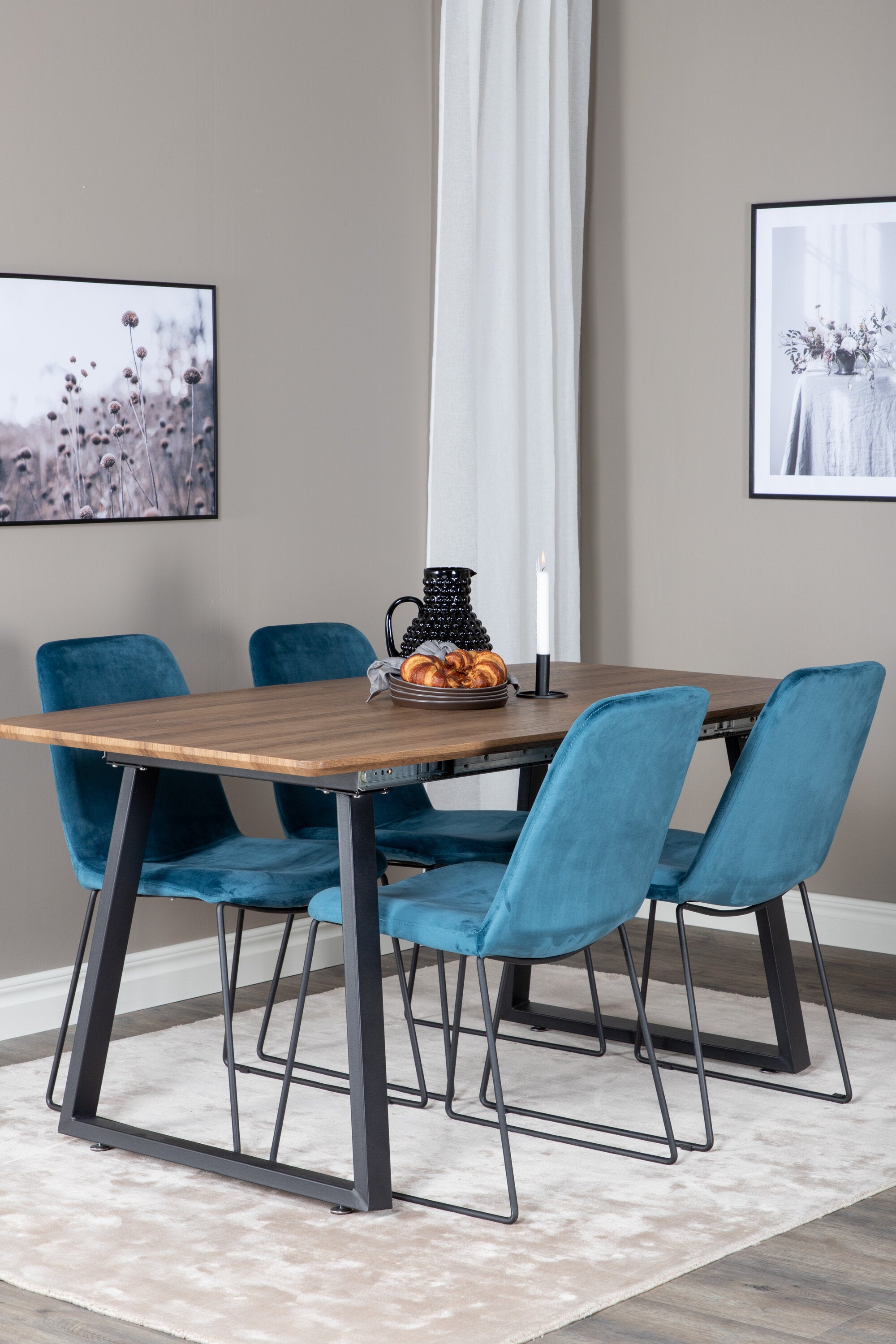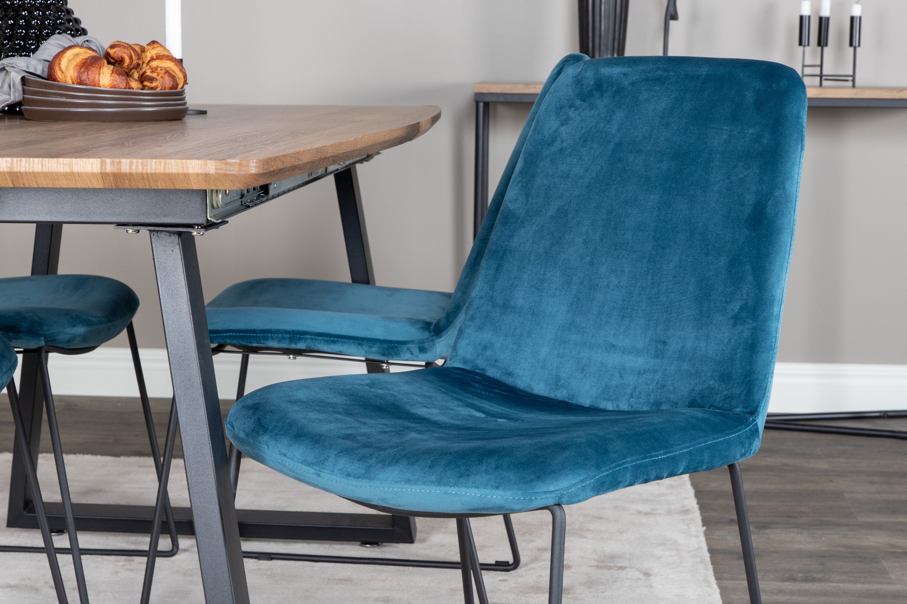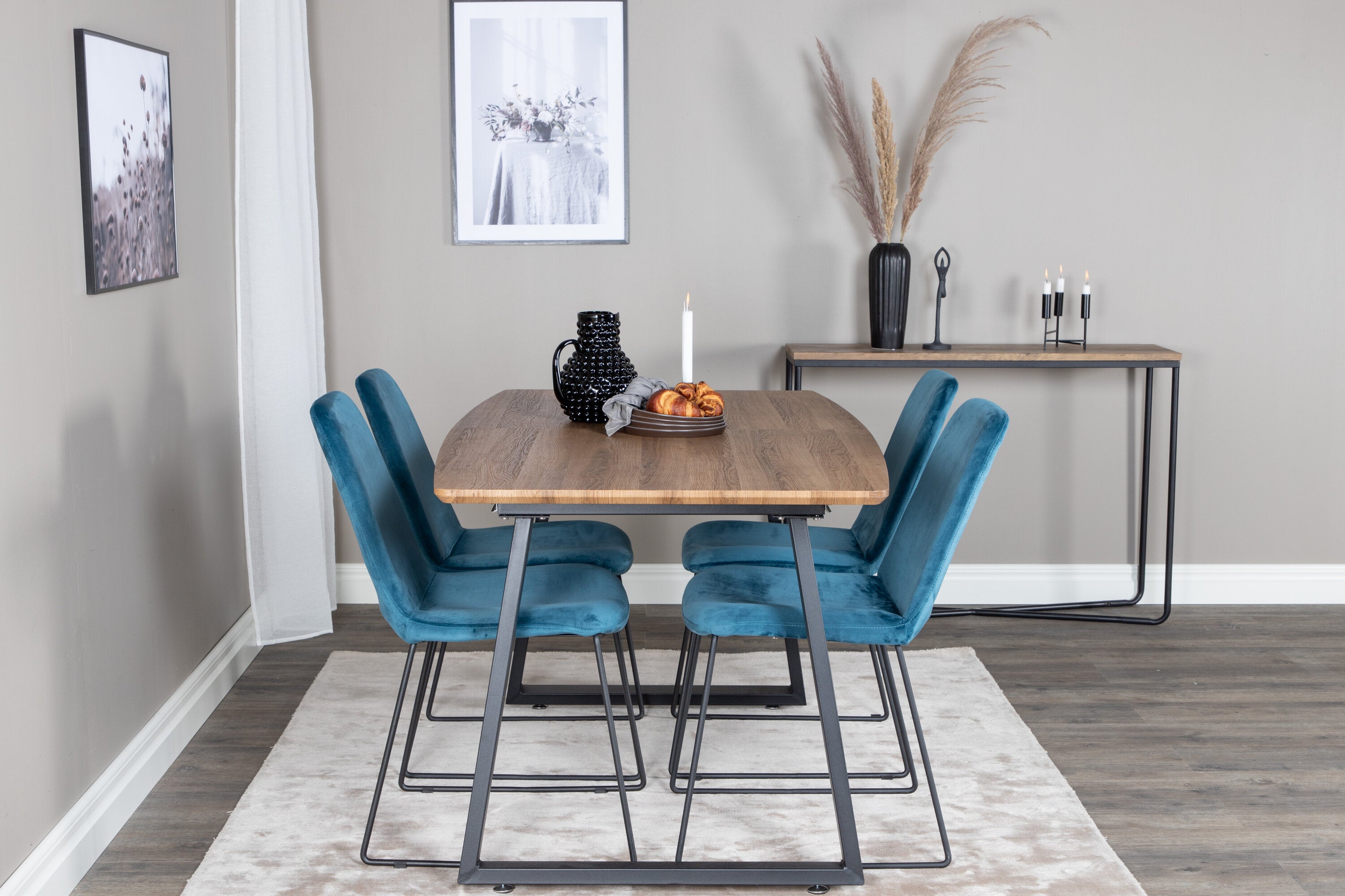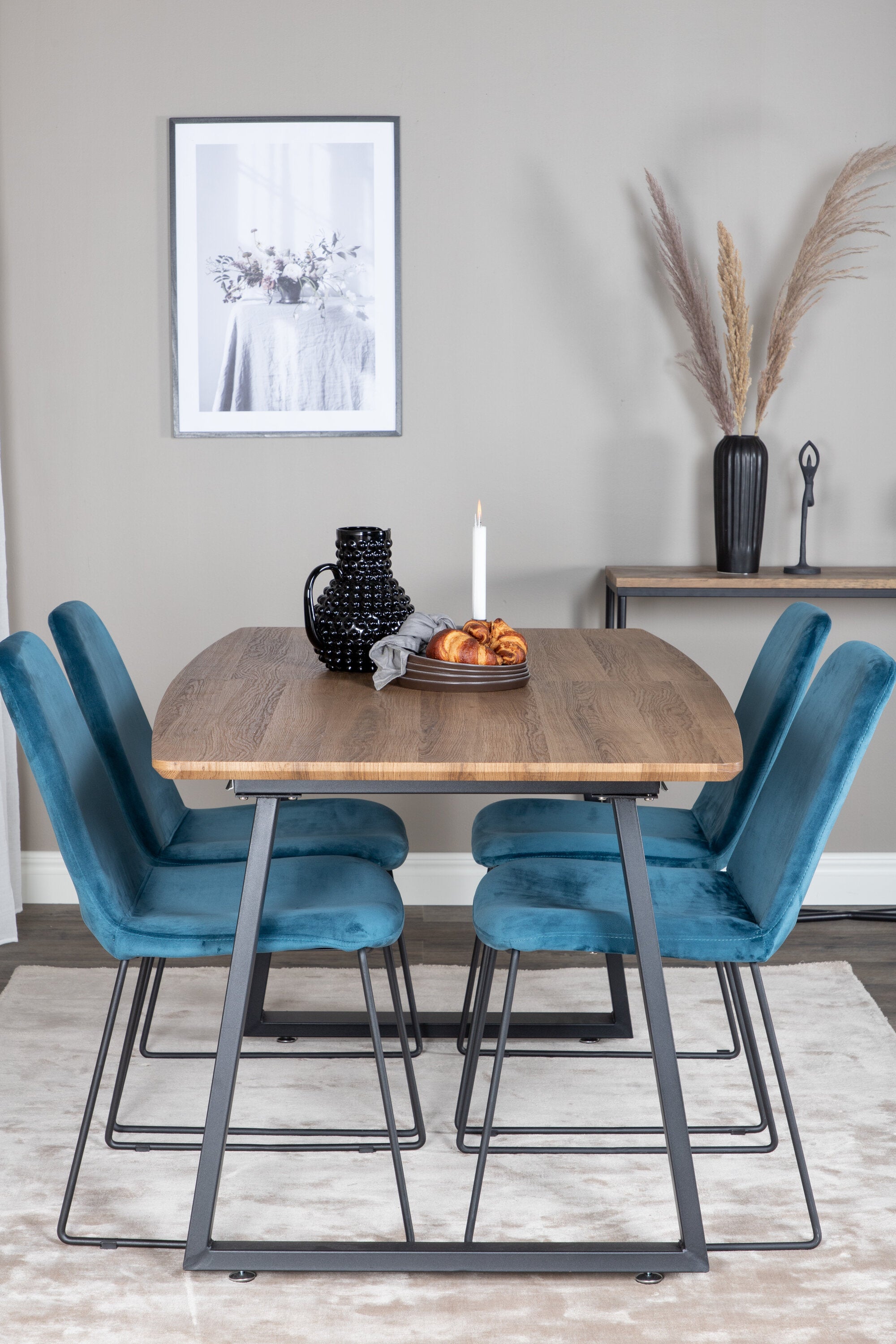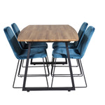 Jídelní stůl Inca - 160/200*85*H75 - Dub / Černá + Muce Jídelní židle - Černé nohy - Modrá Velvet_4