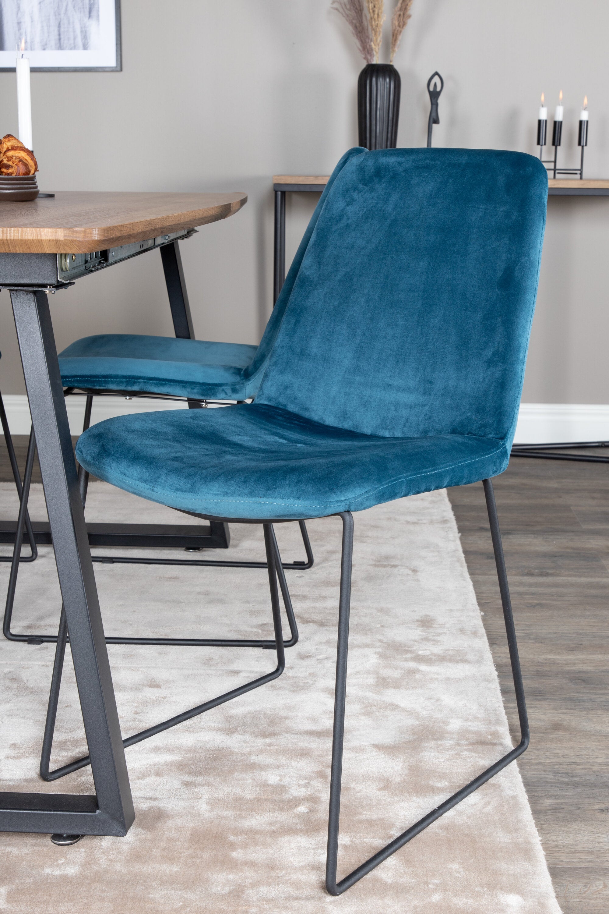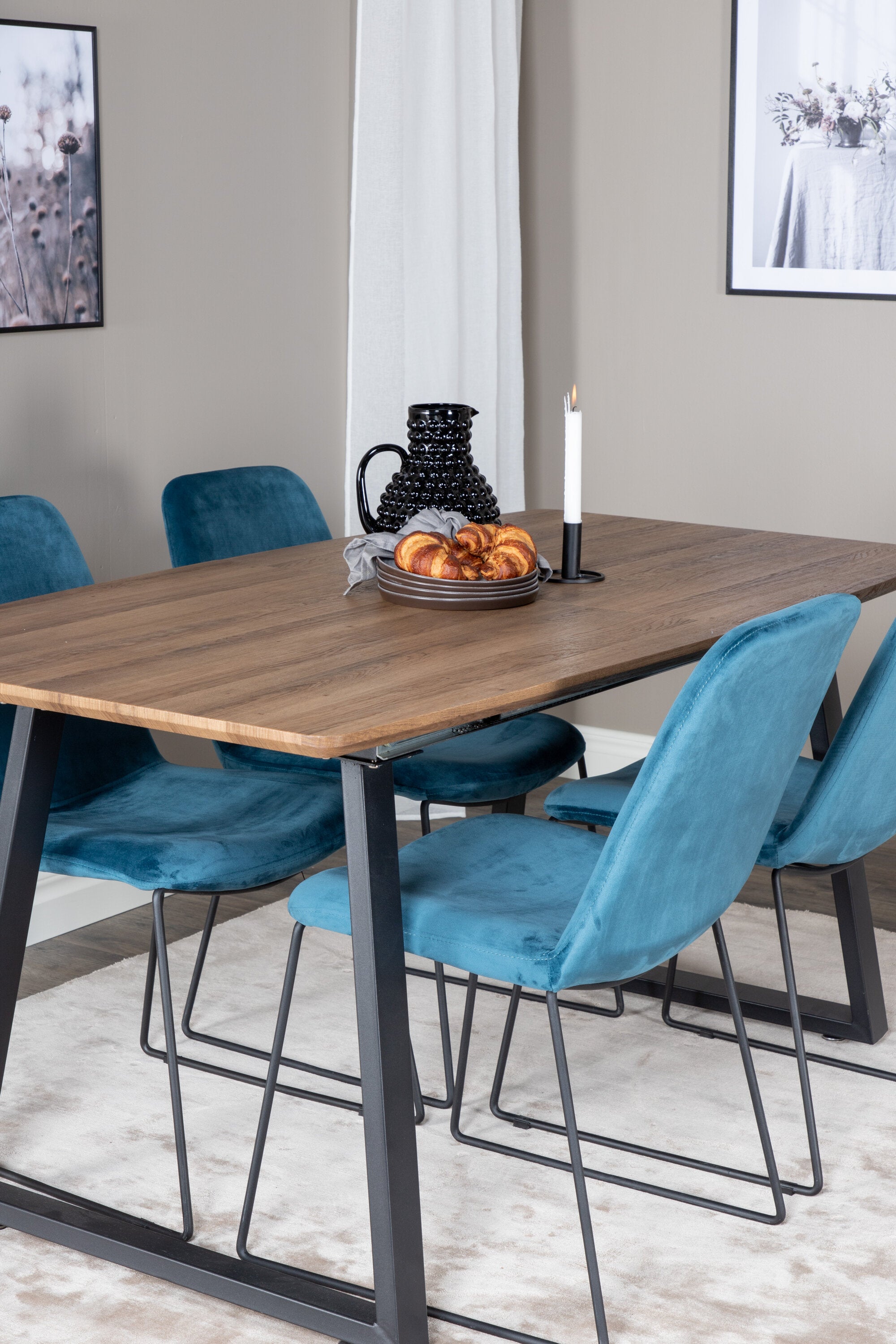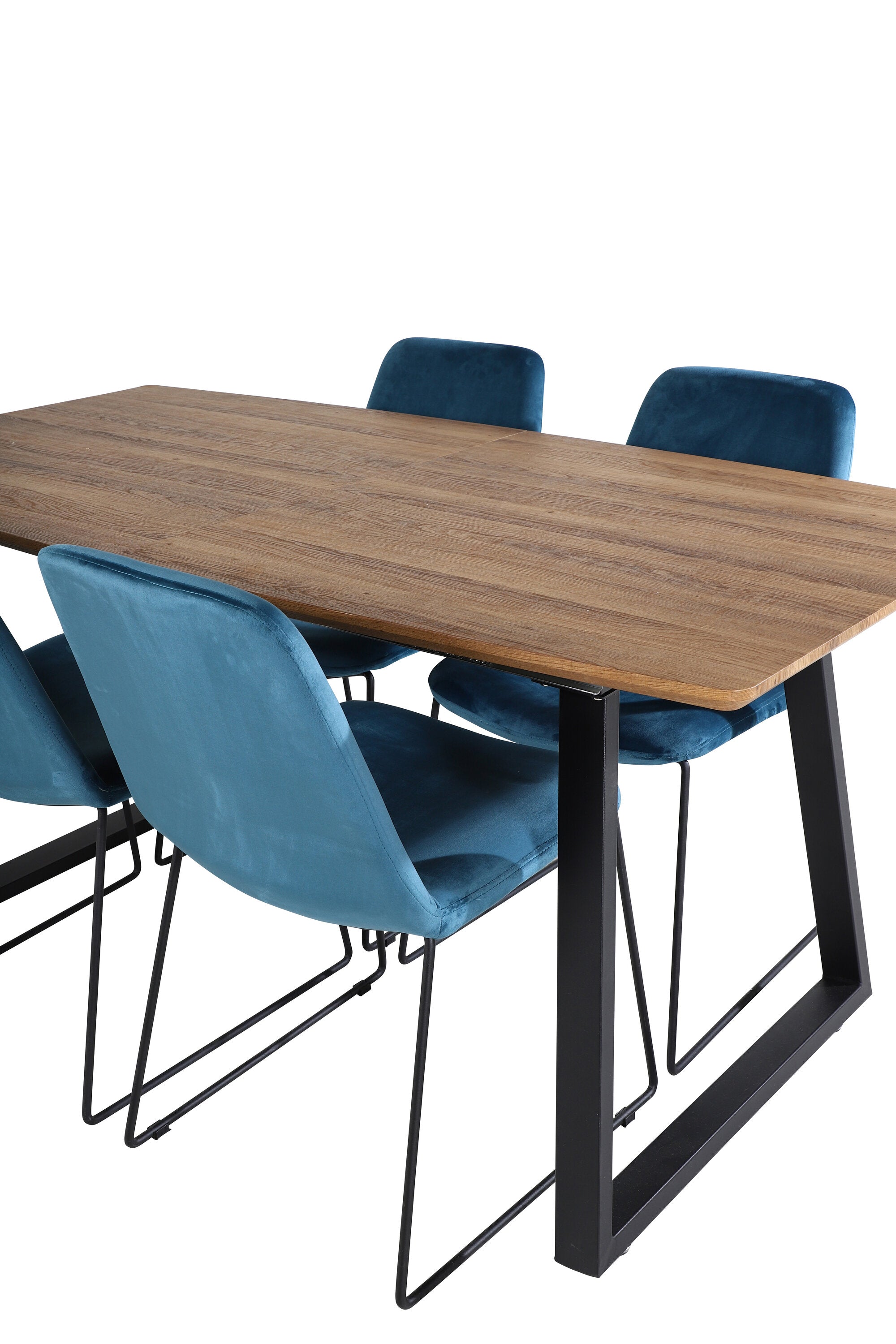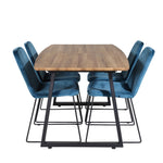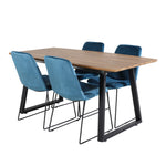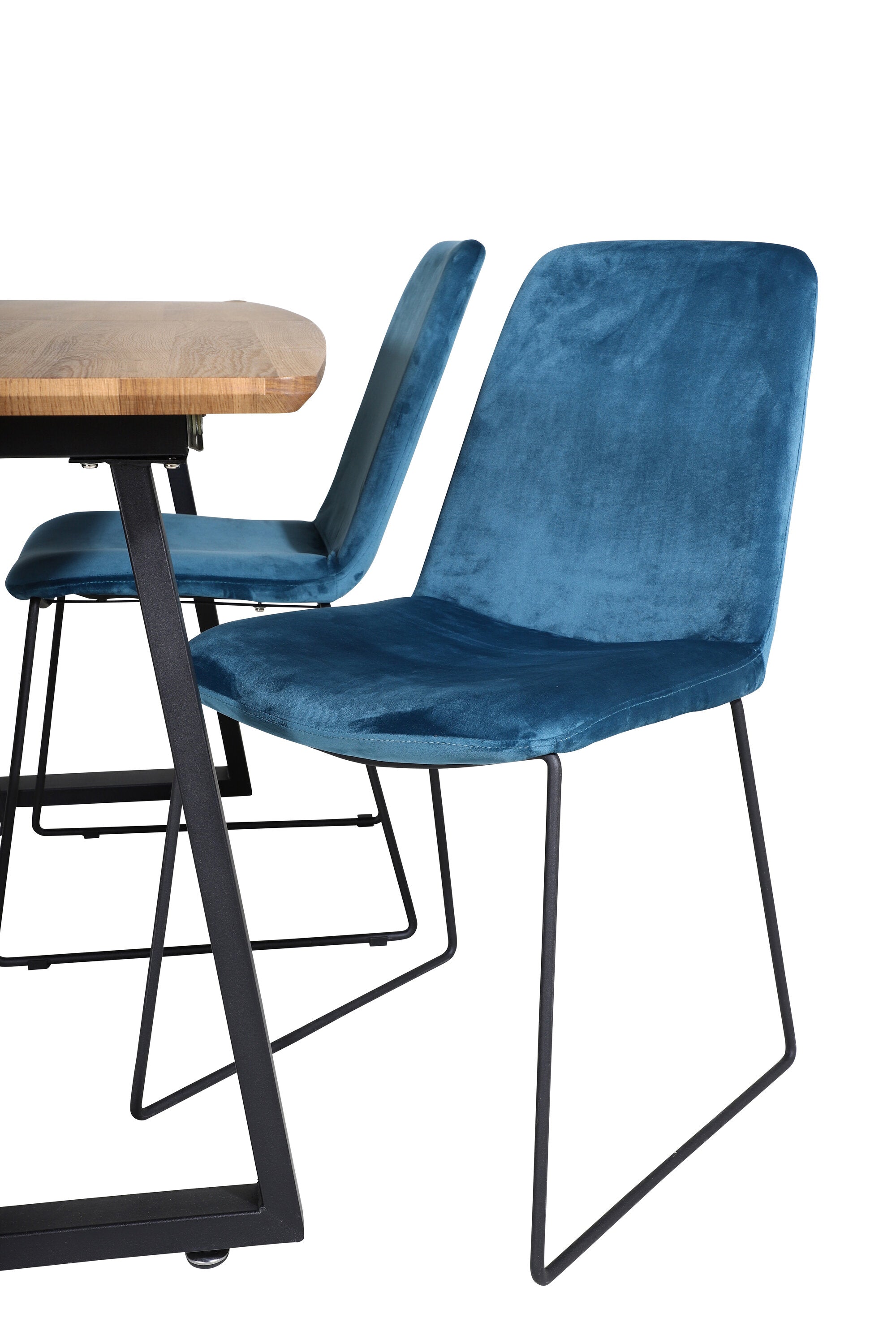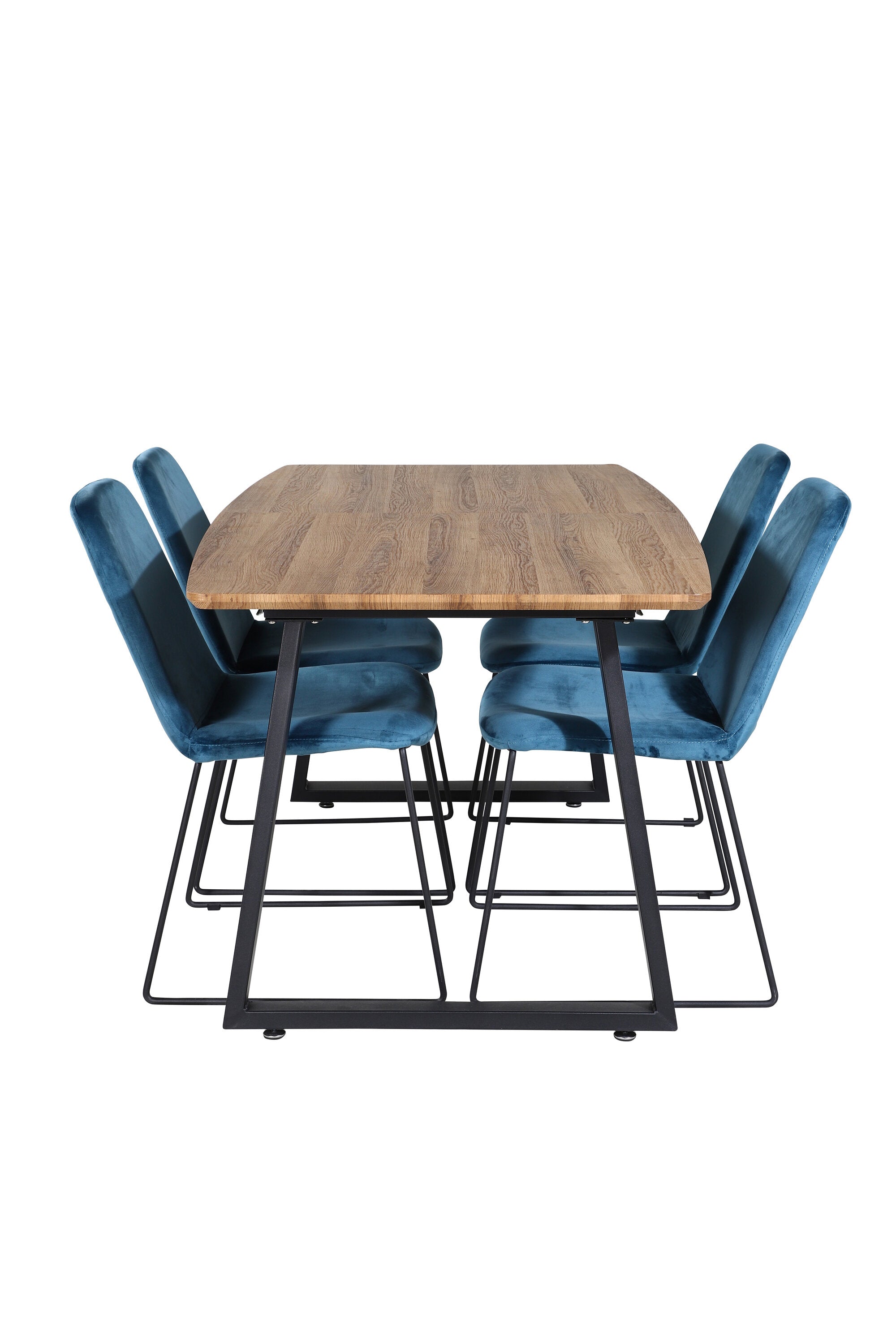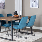 Jídelní stůl Inca - 160/200*85*H75 - Dub / Černá + Muce Jídelní židle - Černé nohy - Modrá Velvet_4