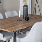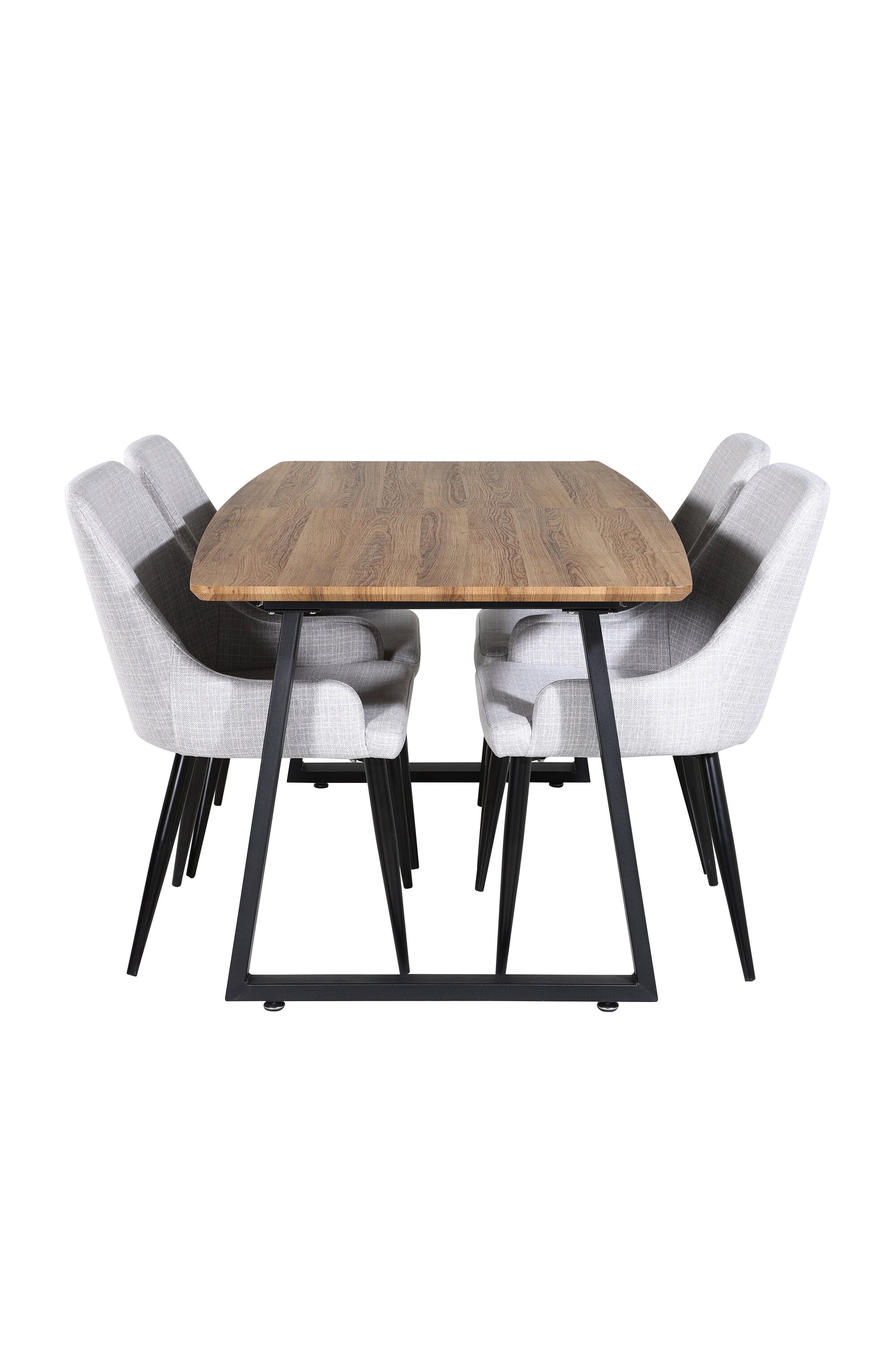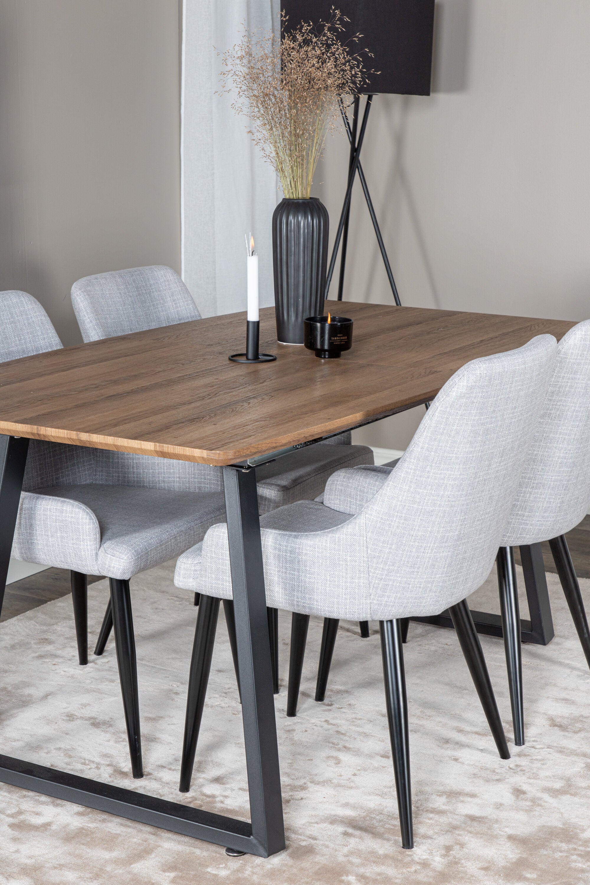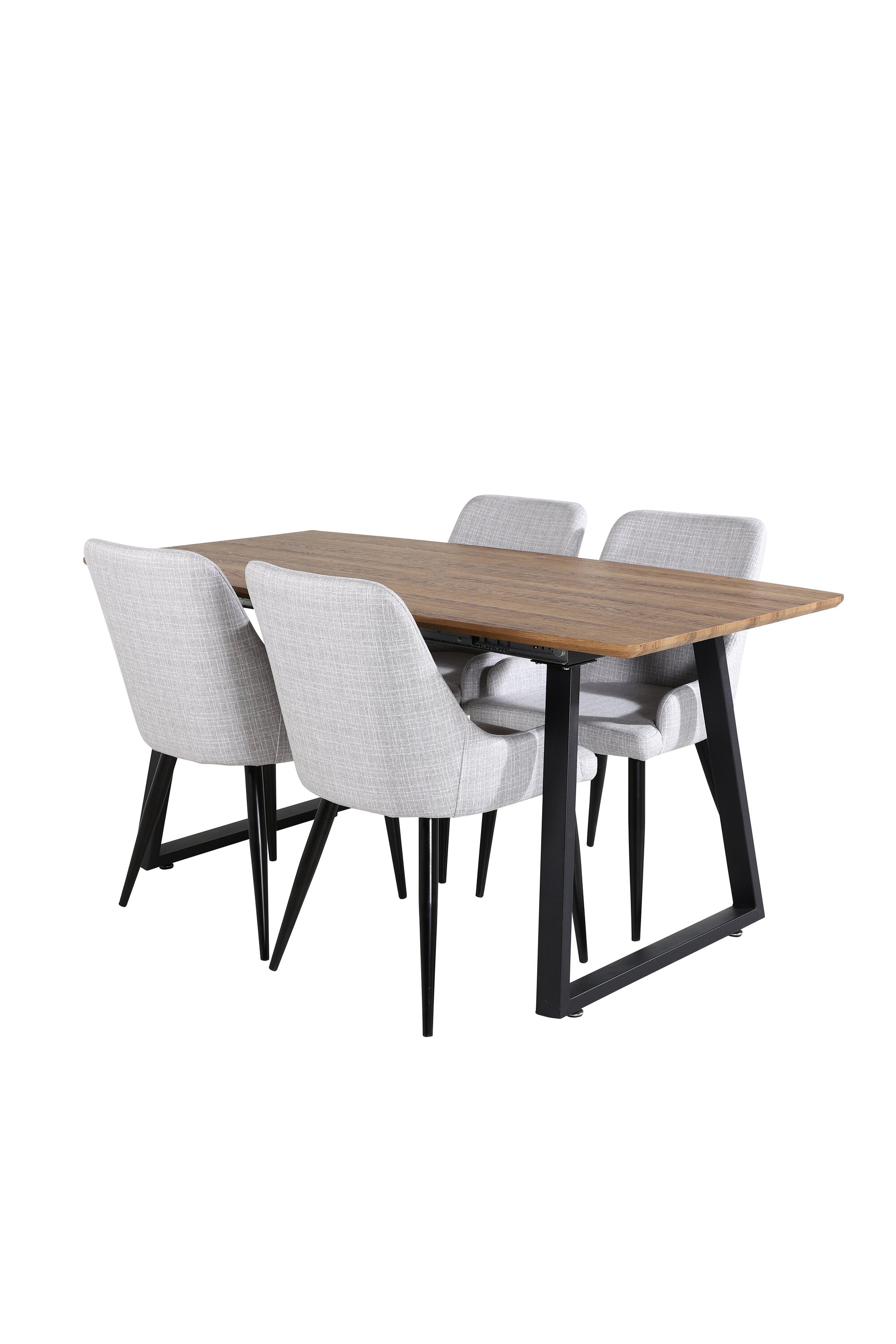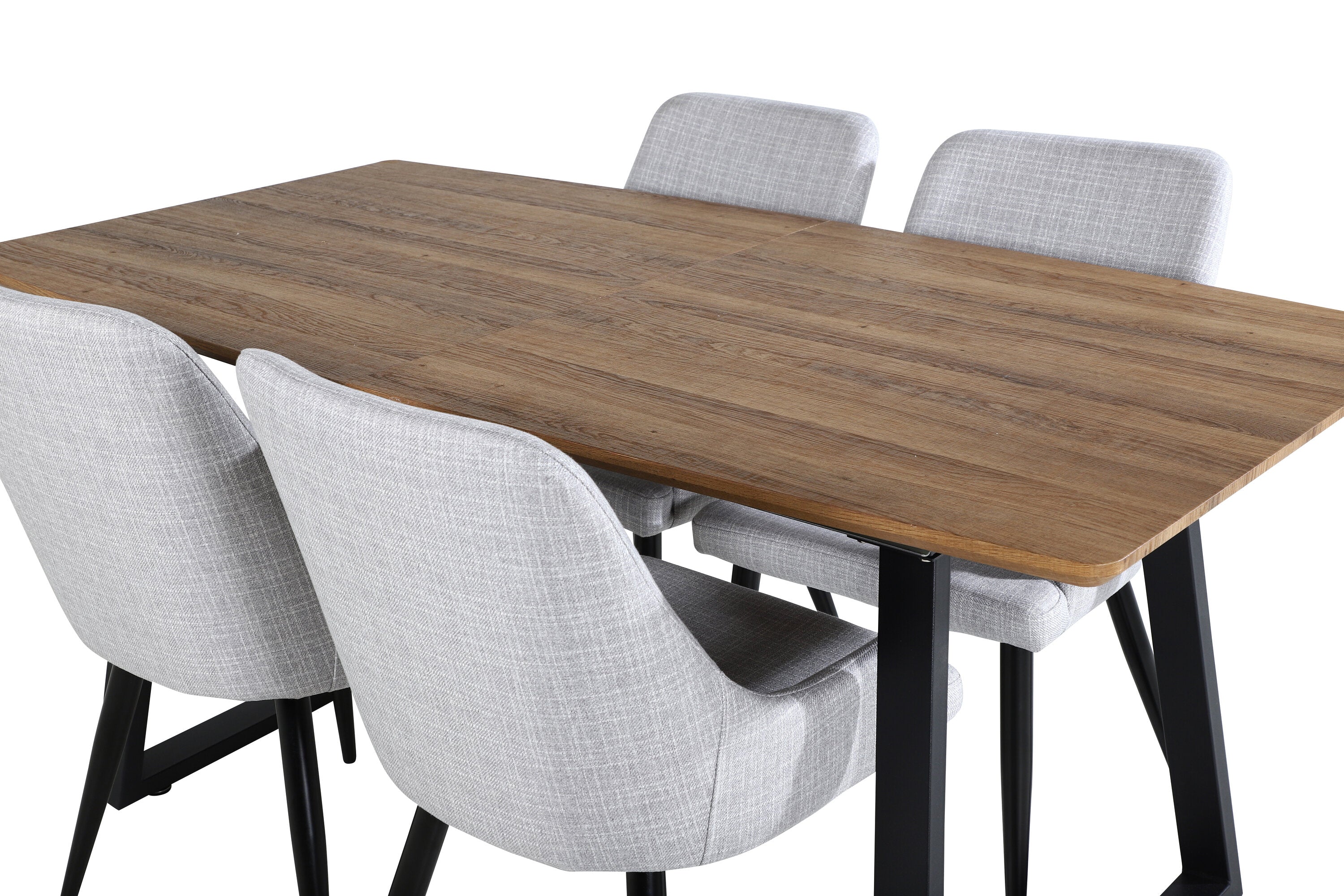 Jídelní stůl Inca - 160/200*85*H75 - Dub / Černá+Plaza Jídelní židle - Černé nohy - Světle šedá Fabric_4