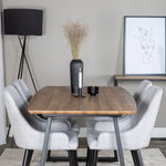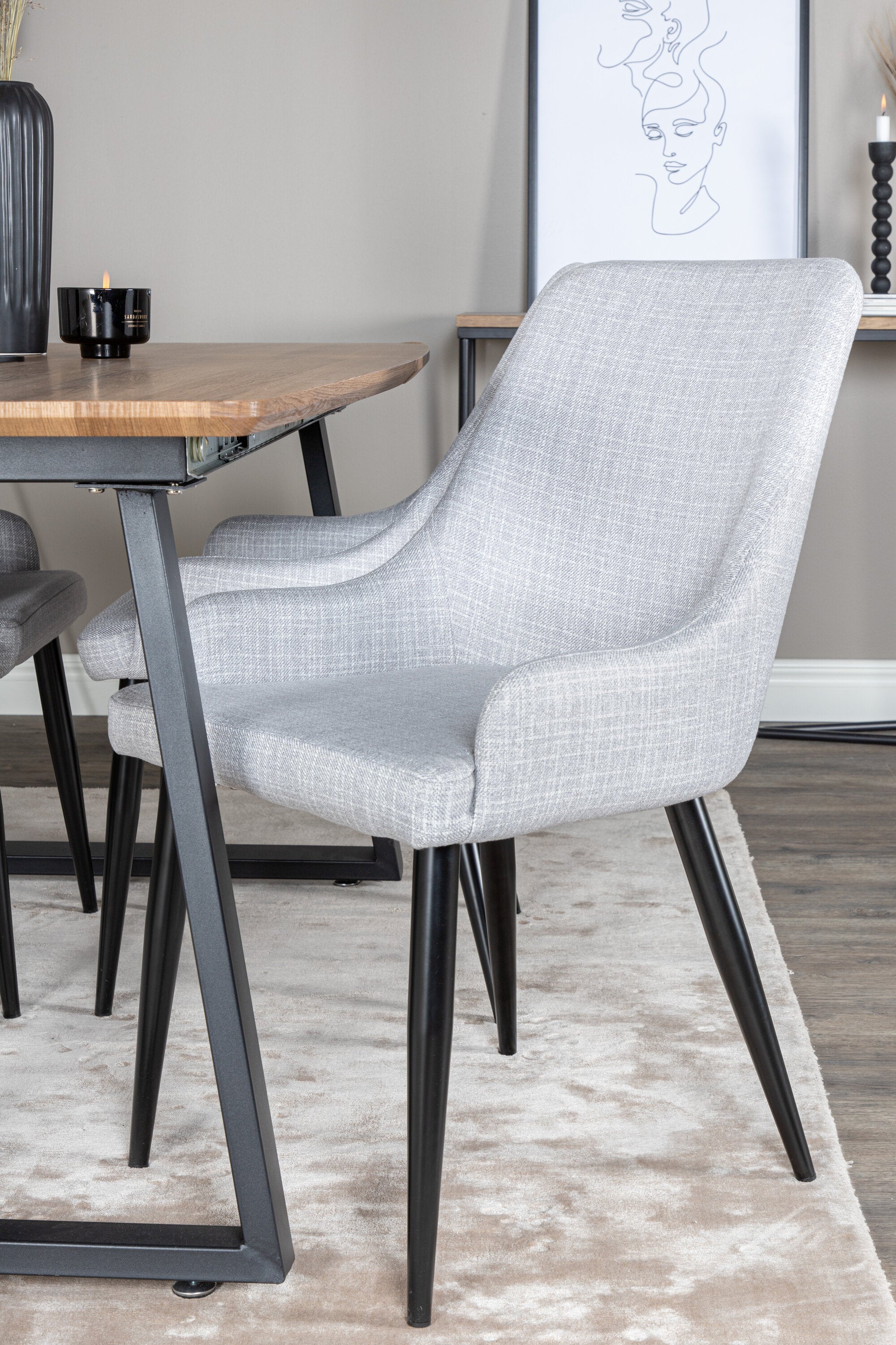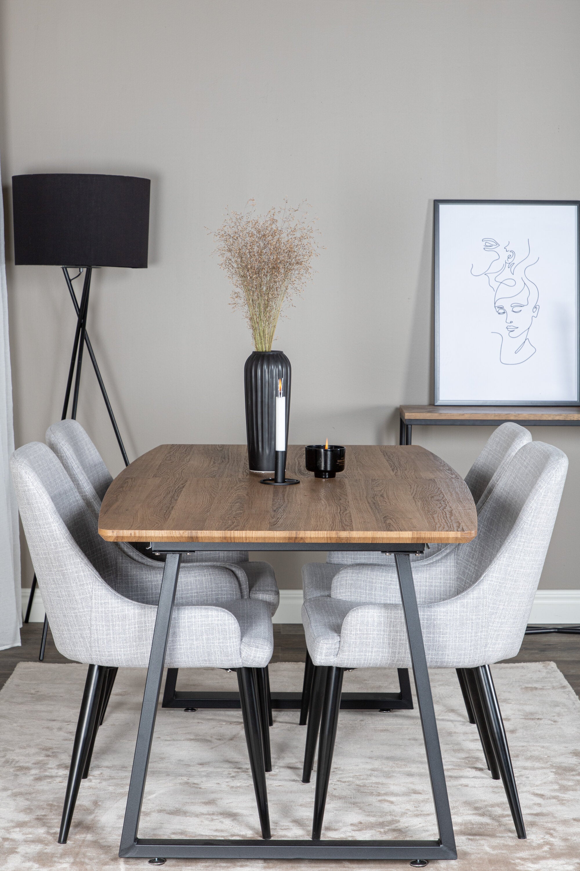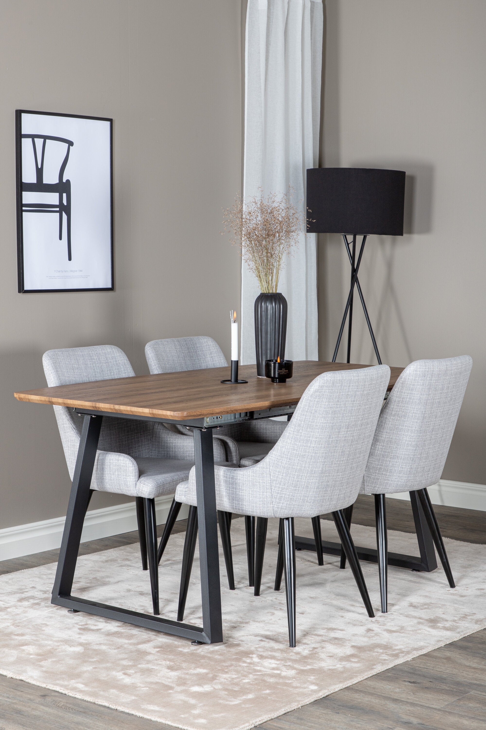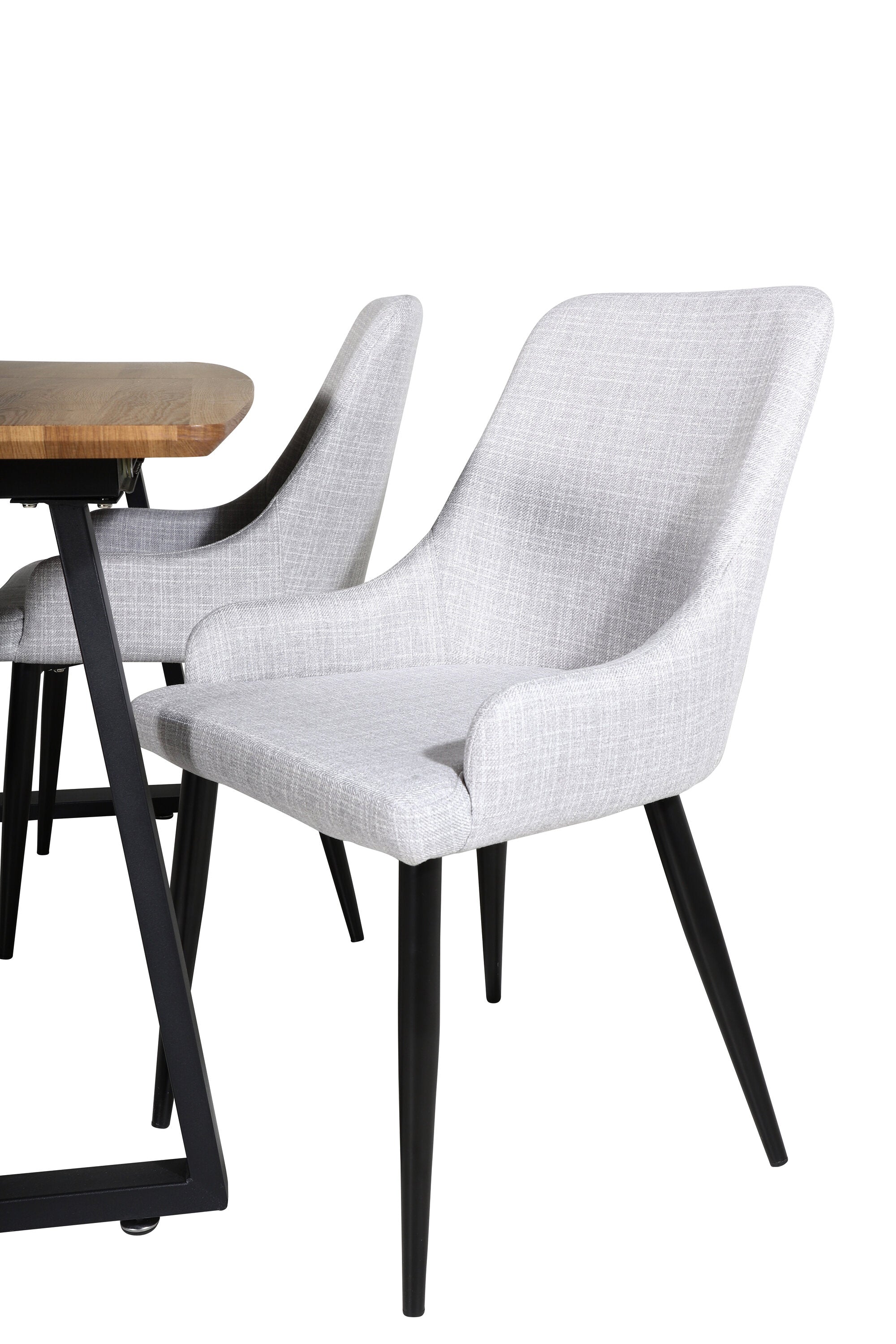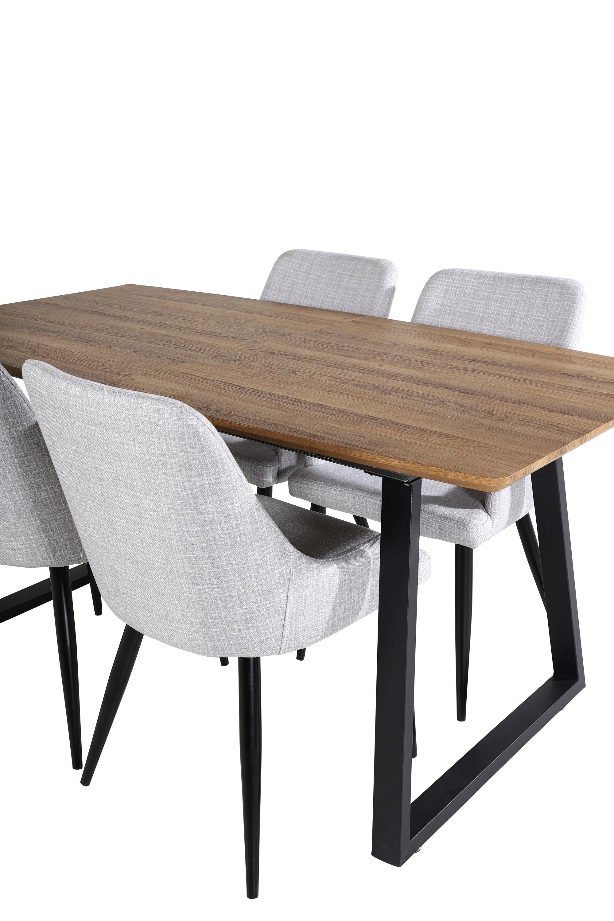 Jídelní stůl Inca - 160/200*85*H75 - Dub / Černá+Plaza Jídelní židle - Černé nohy - Světle šedá Fabric_4