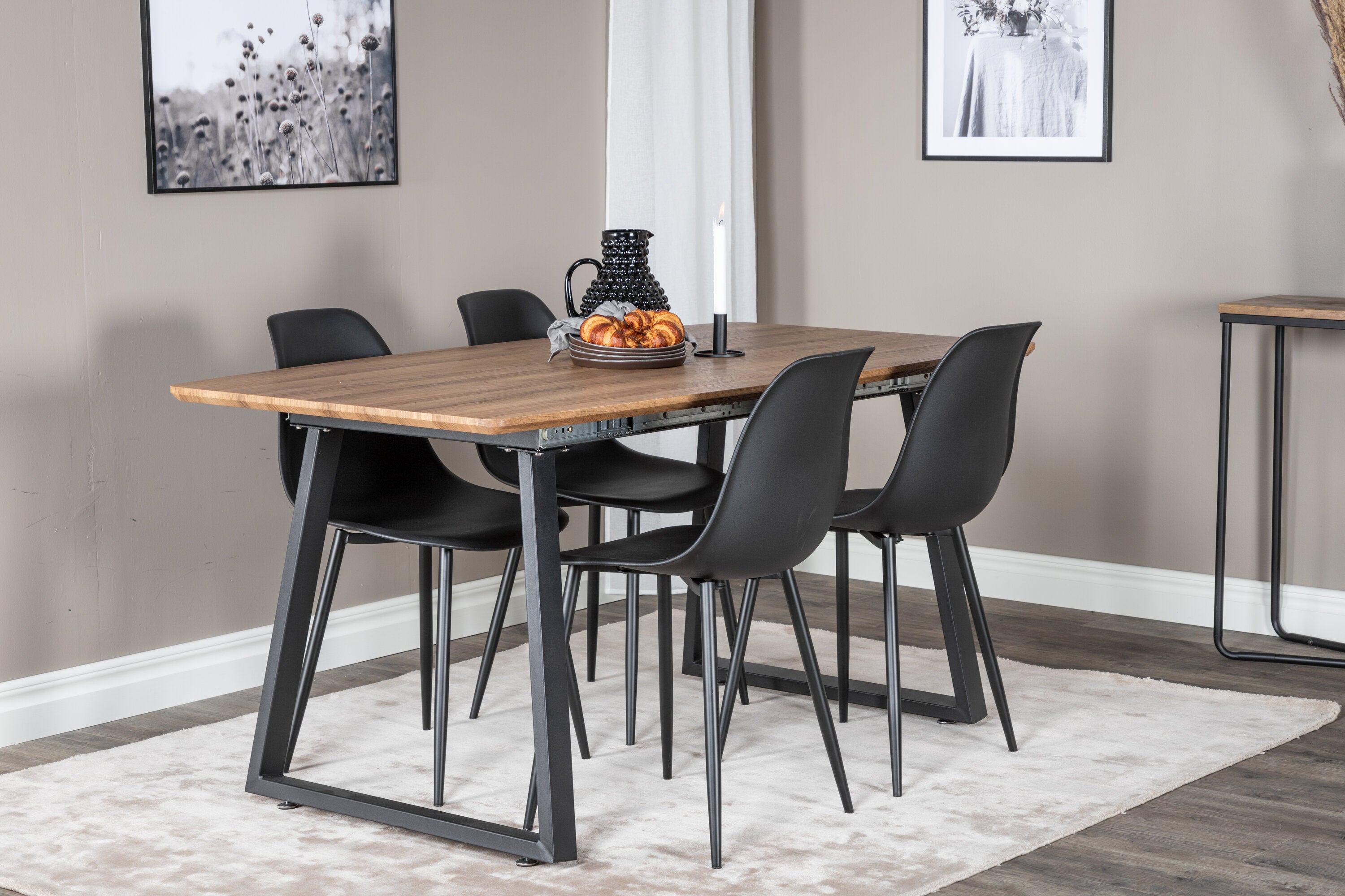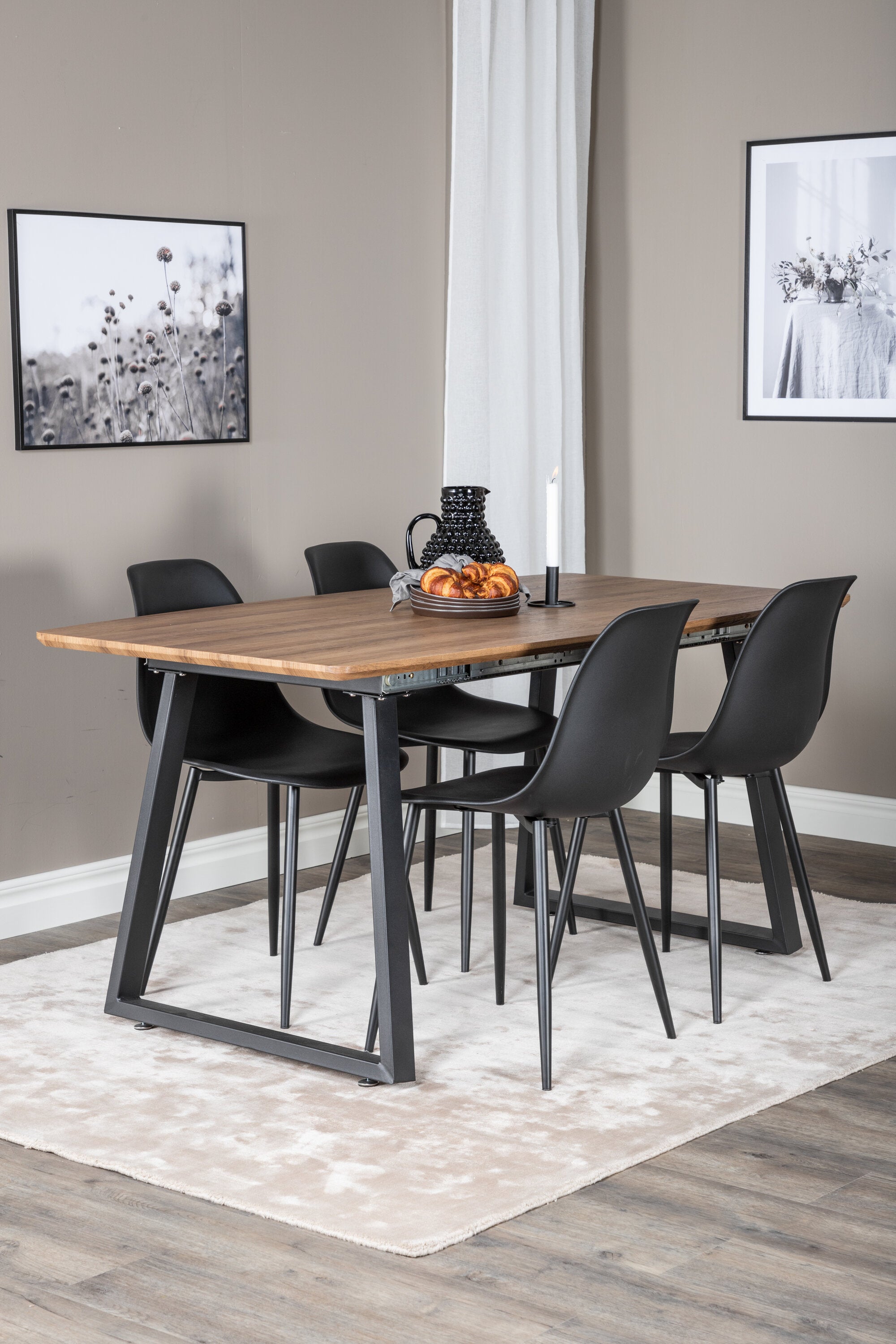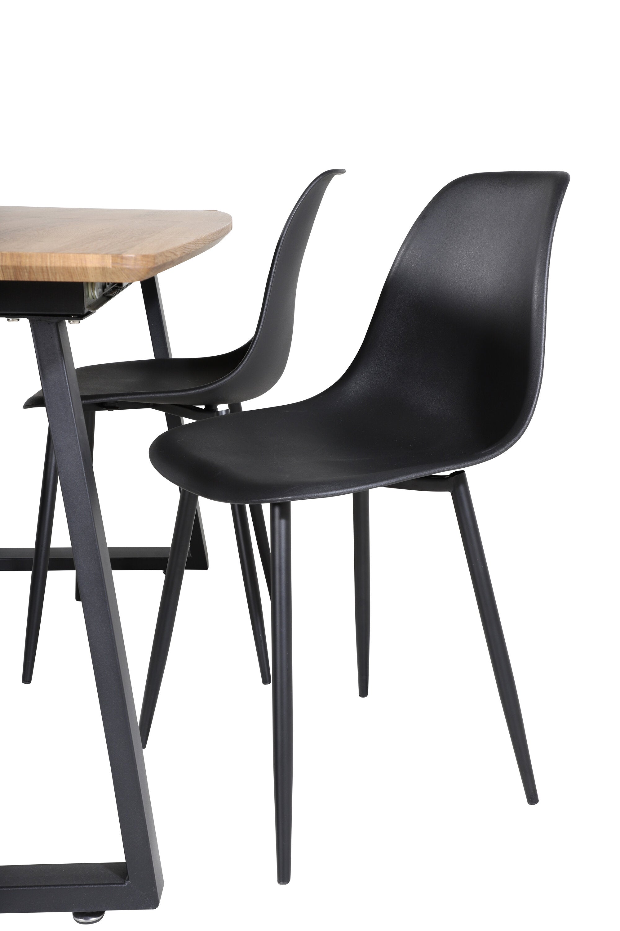 Jídelní stůl Inca - 160/200*85*H75 - Dub / Černá+Polar Plastová jídelní židle - Černé nohy / Černý Plast_4