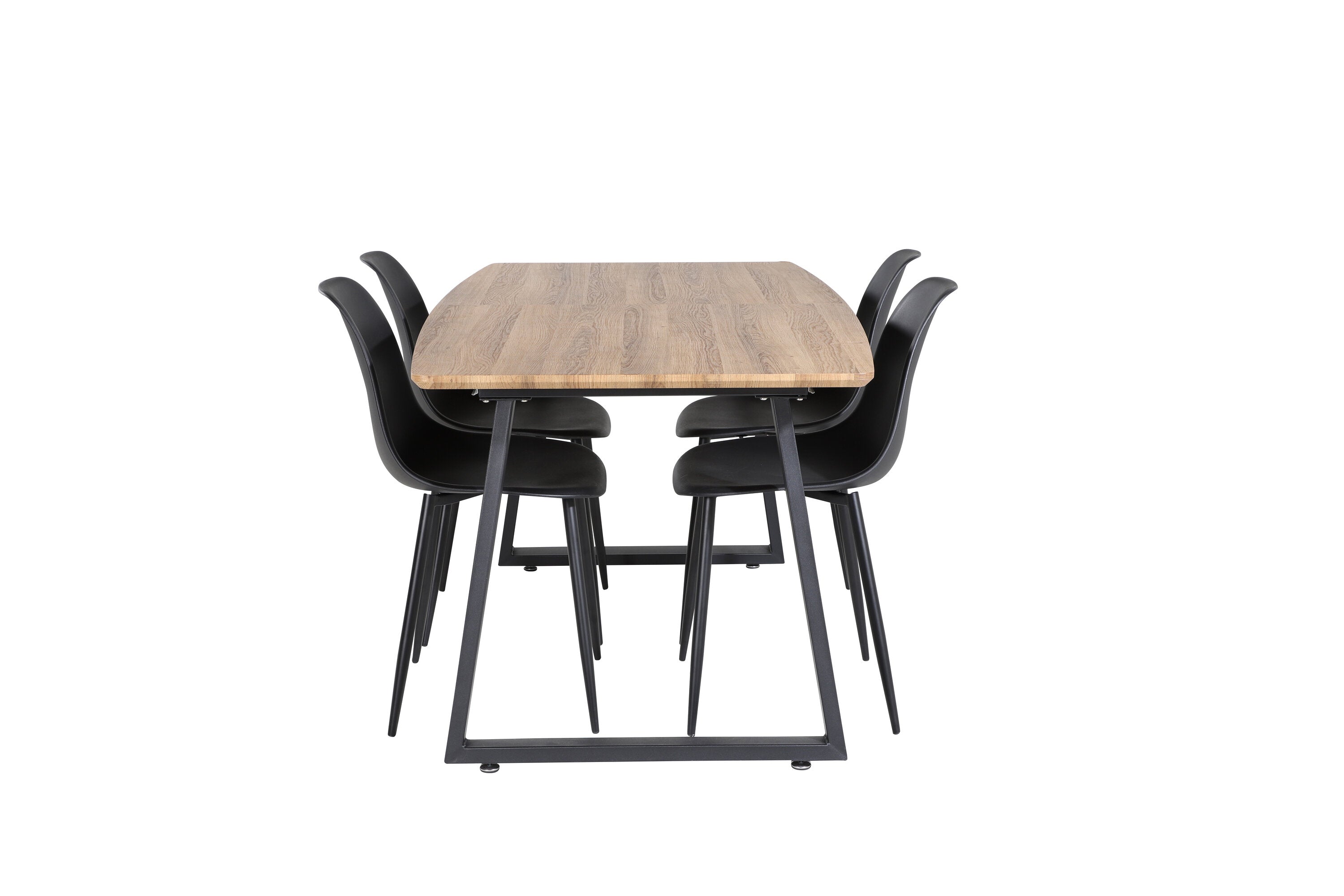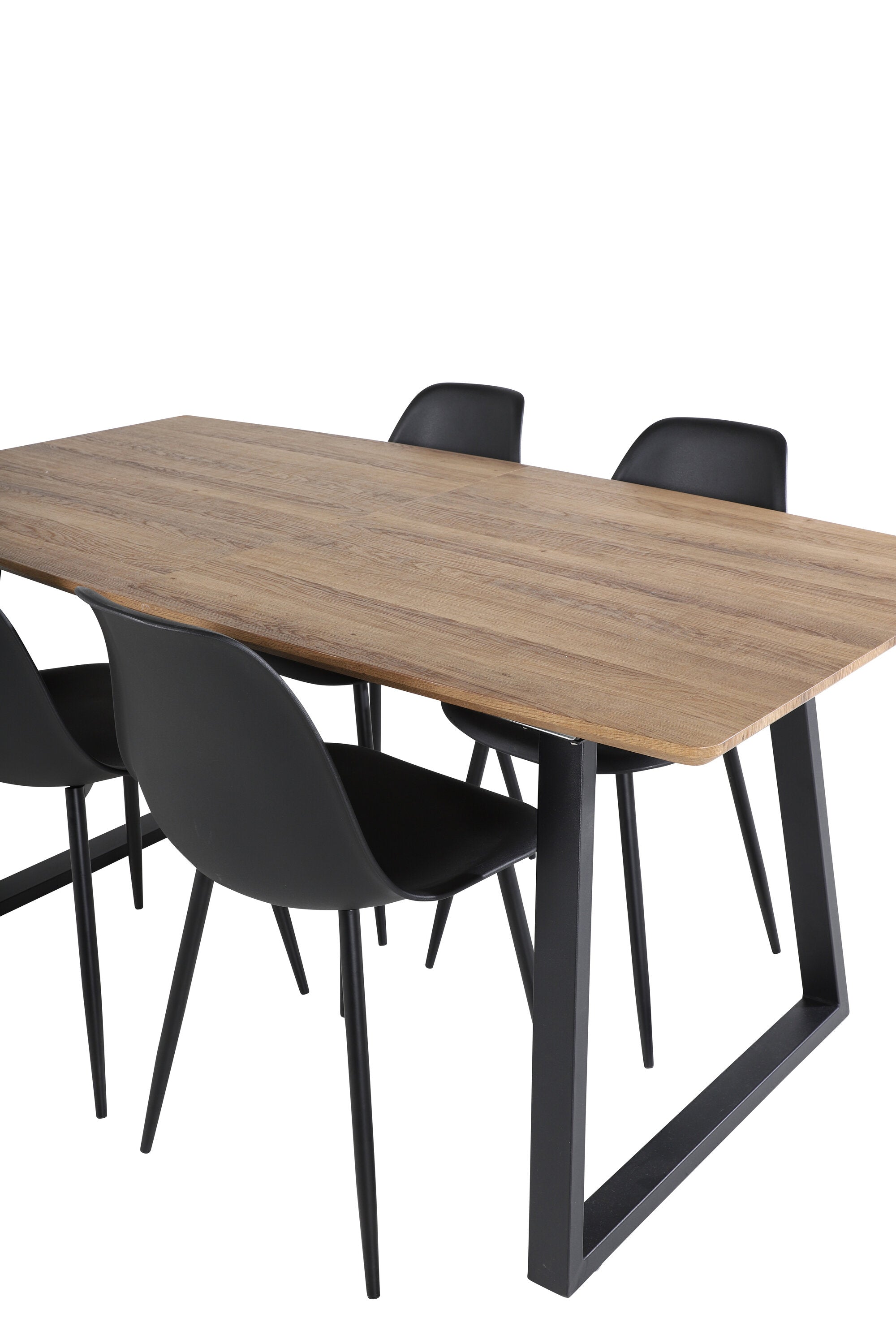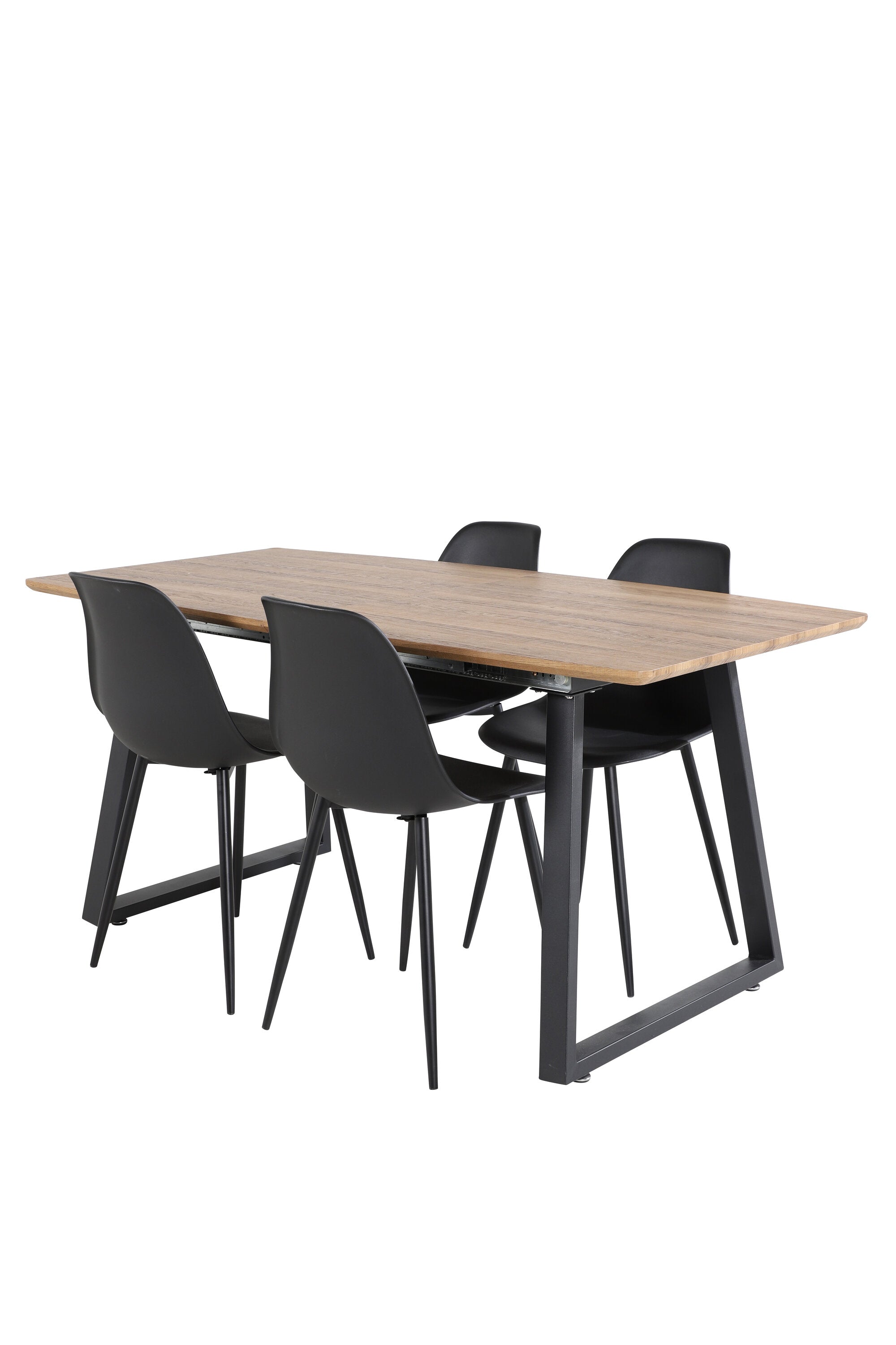 Jídelní stůl Inca - 160/200*85*H75 - Dub / Černá+Polar Plastová jídelní židle - Černé nohy / Černý Plast_4