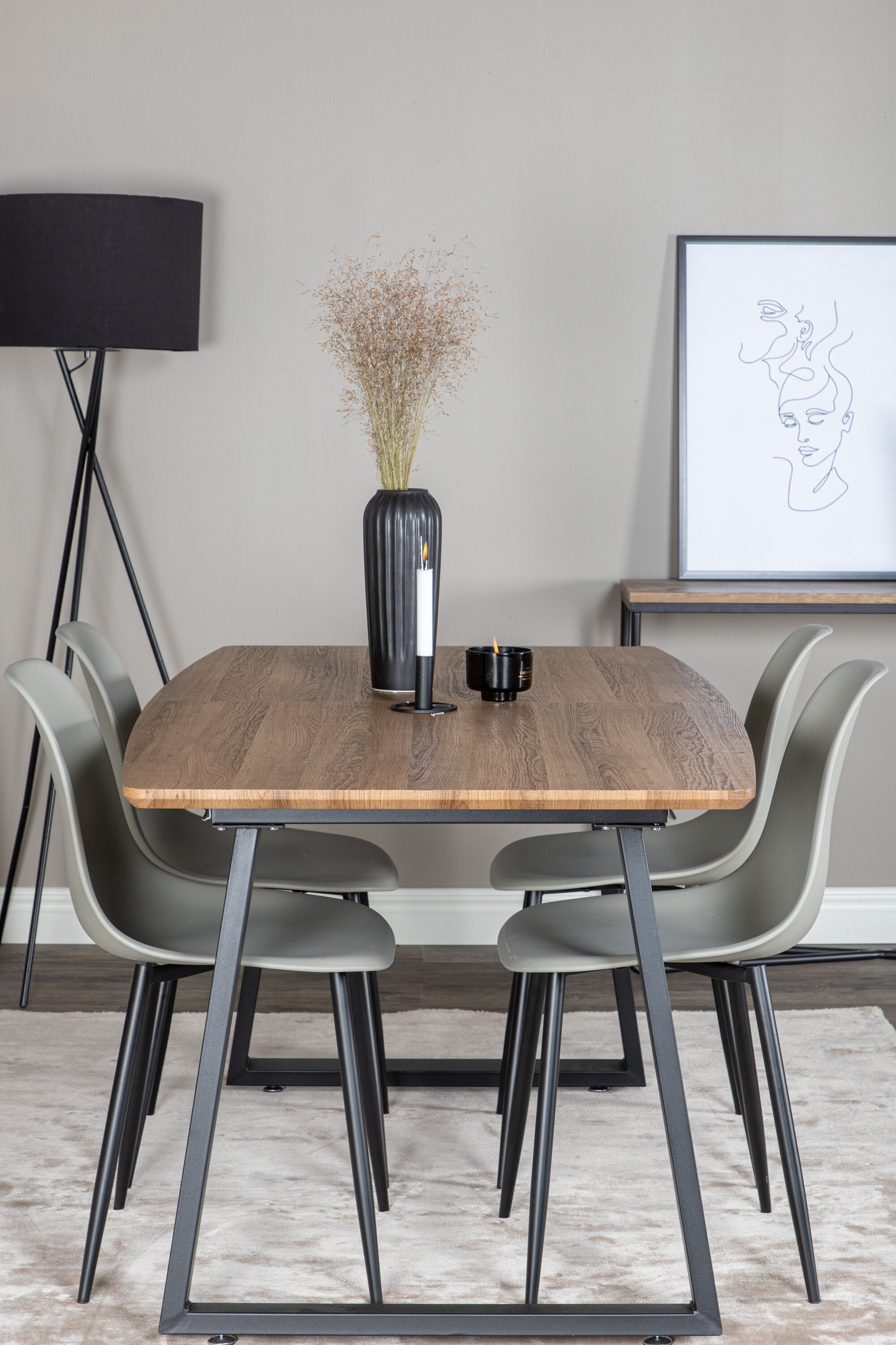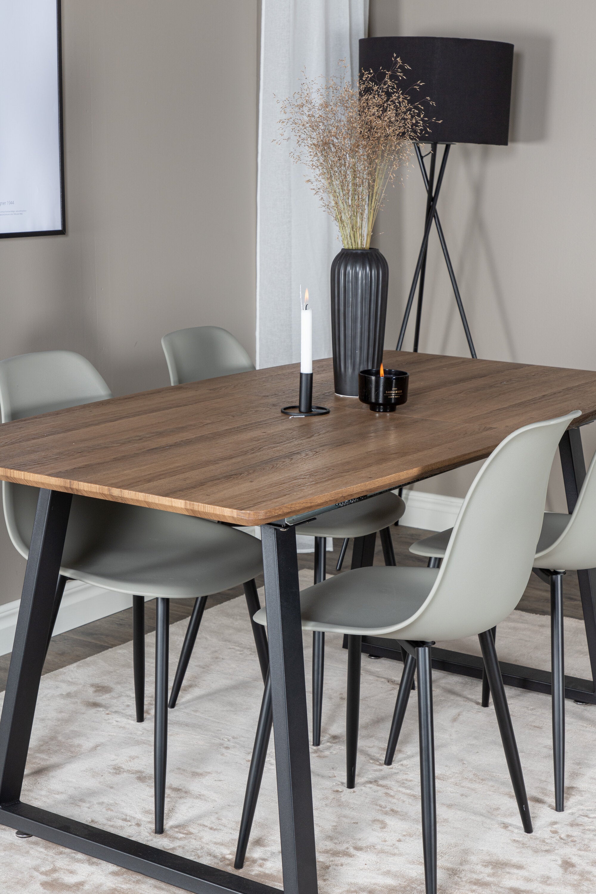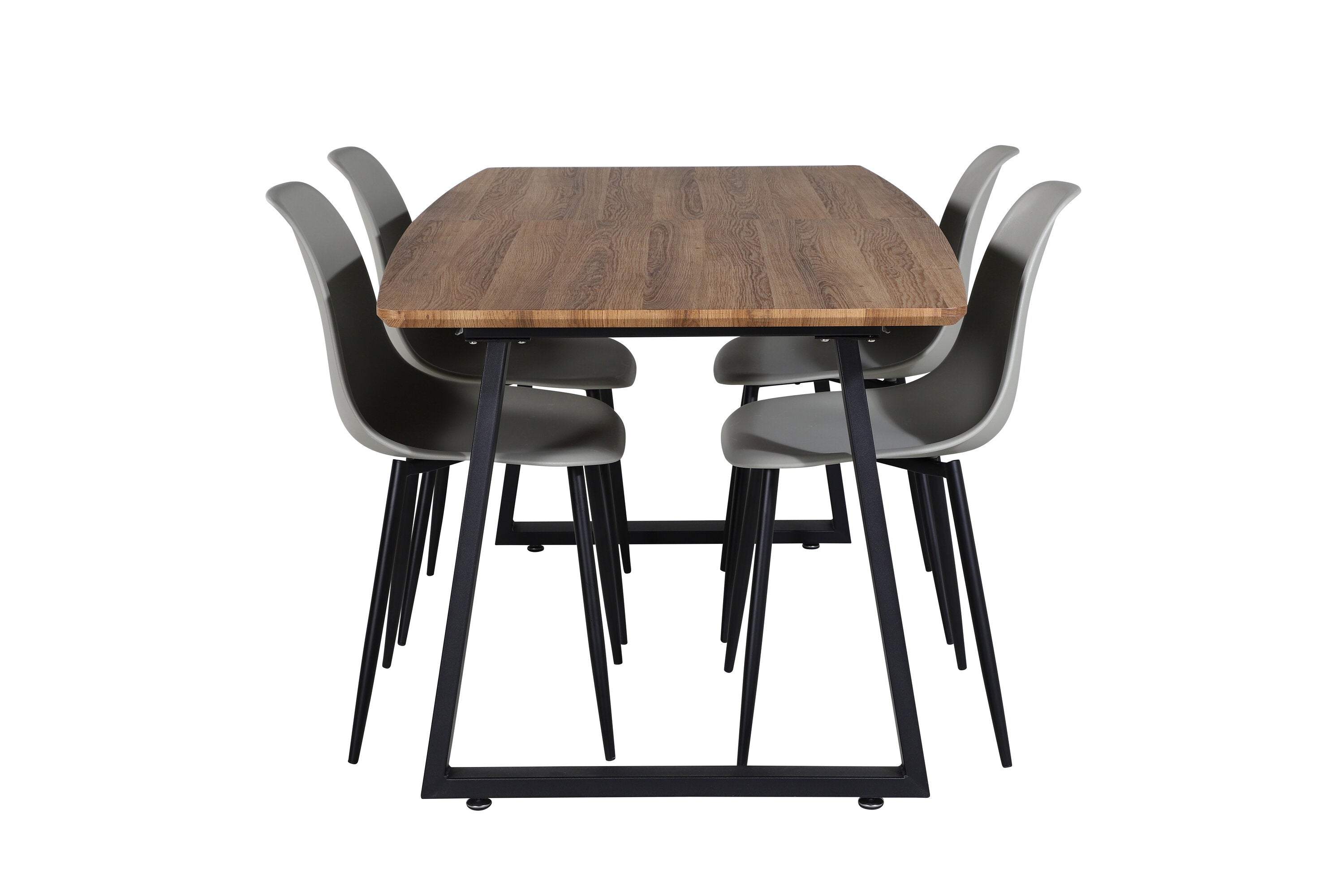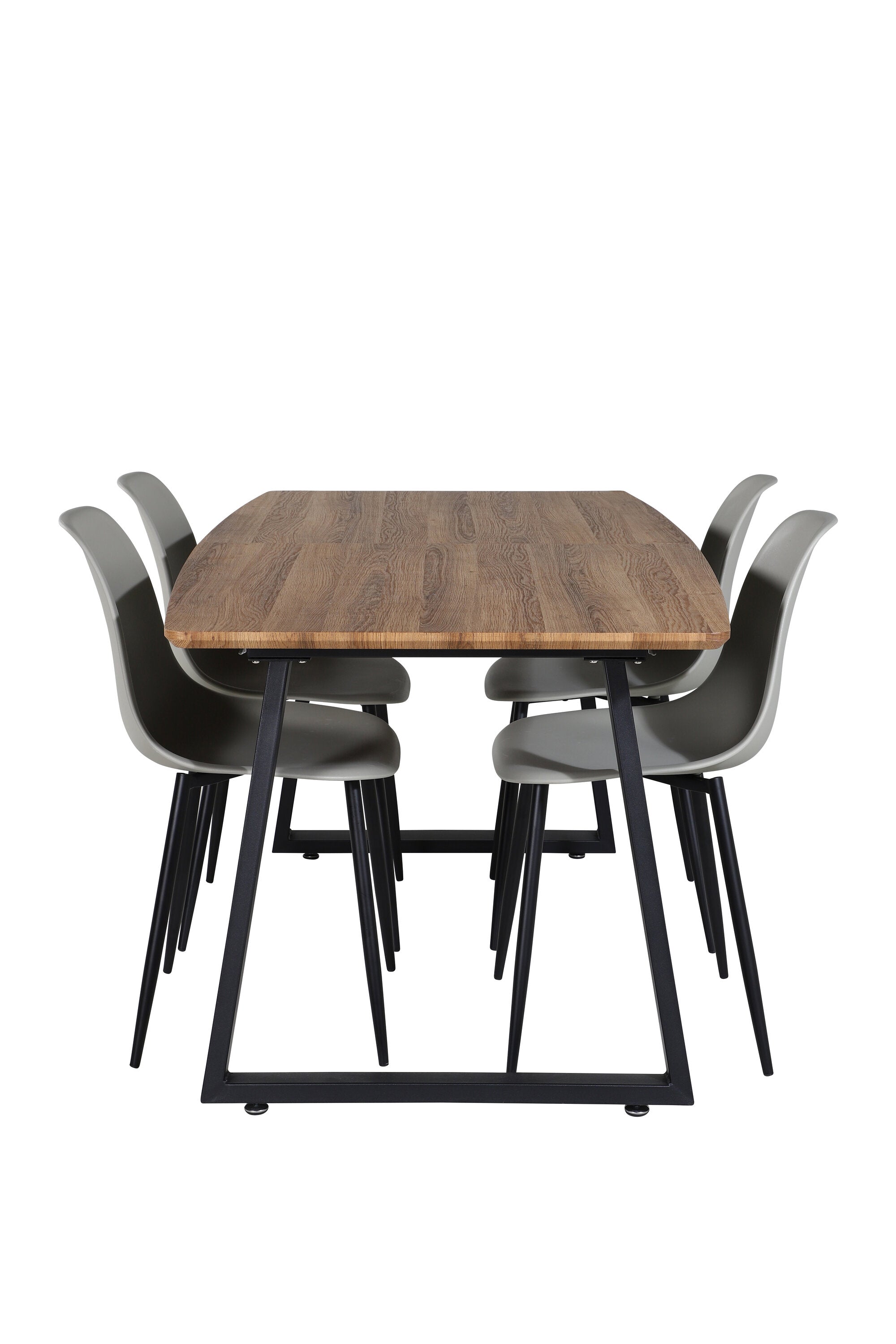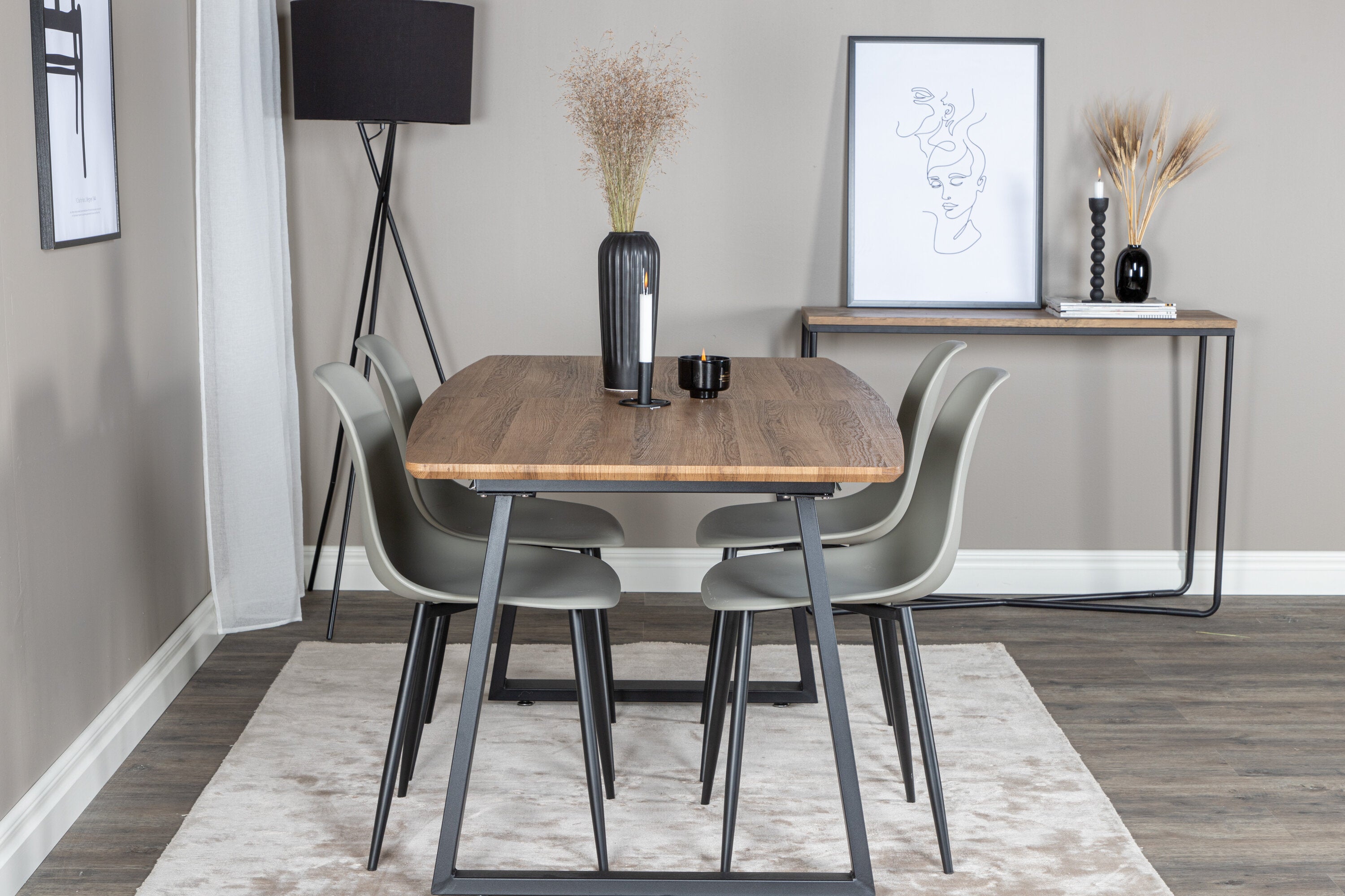 Vybavte obývací pokoj moderní skupinou jídel v lahodné barevné škále. Šedé jídelní židle ze série Polar jsou zde kombinovány s naším jídelním stolem Inca z lahodného dřeva. Shromážděte rodinu a prodlužte chvíle večeře v této luxusní skupině jídel!
