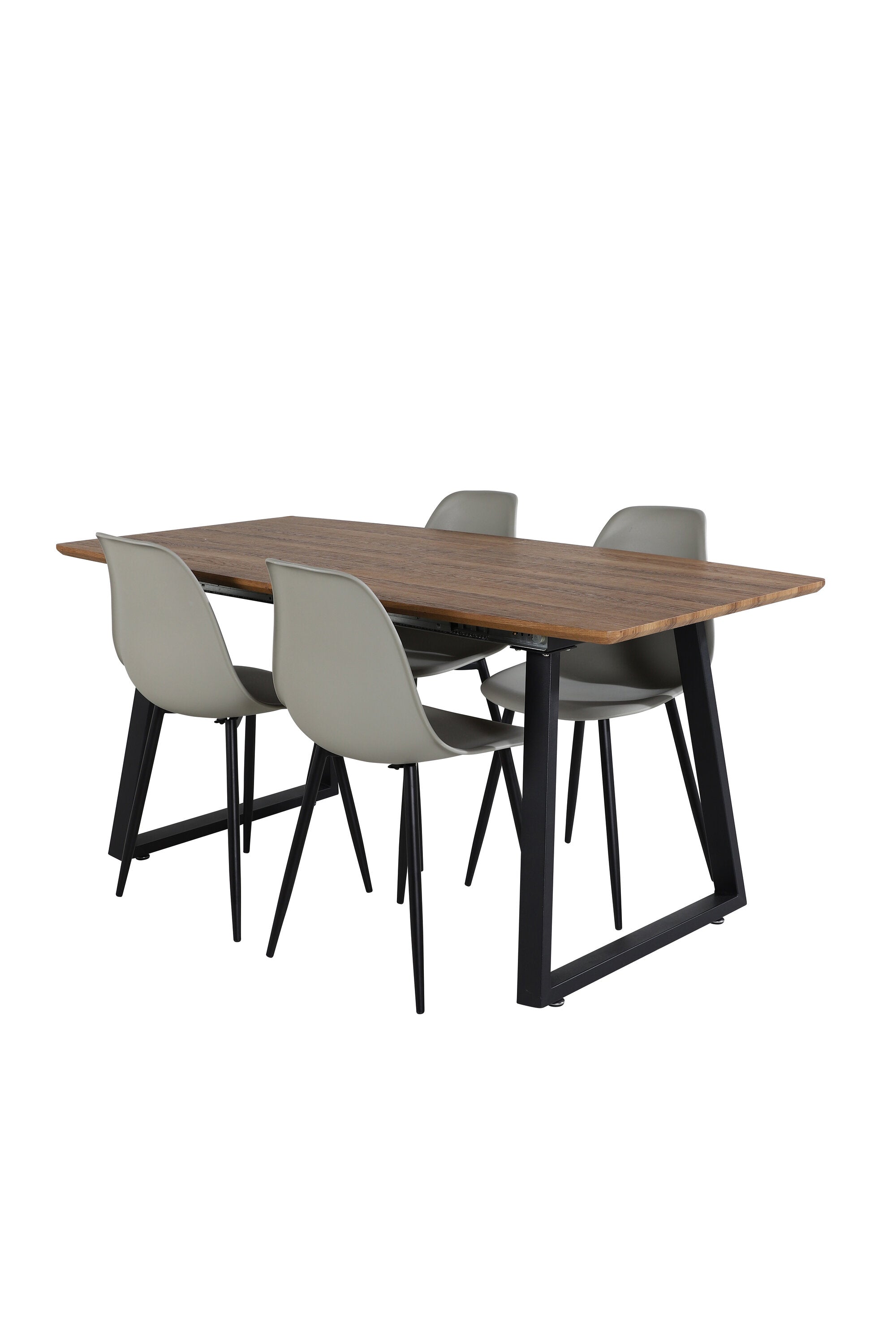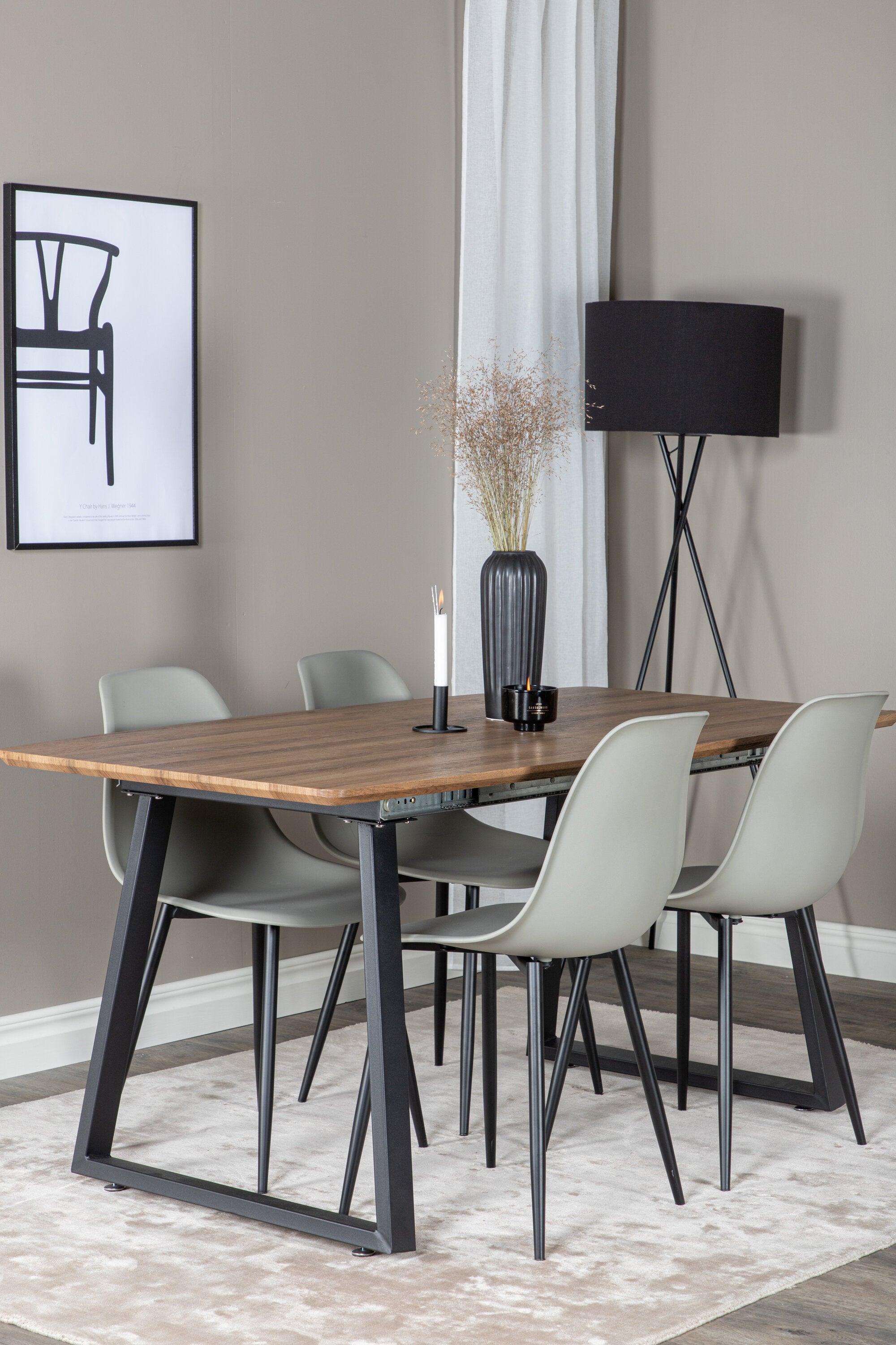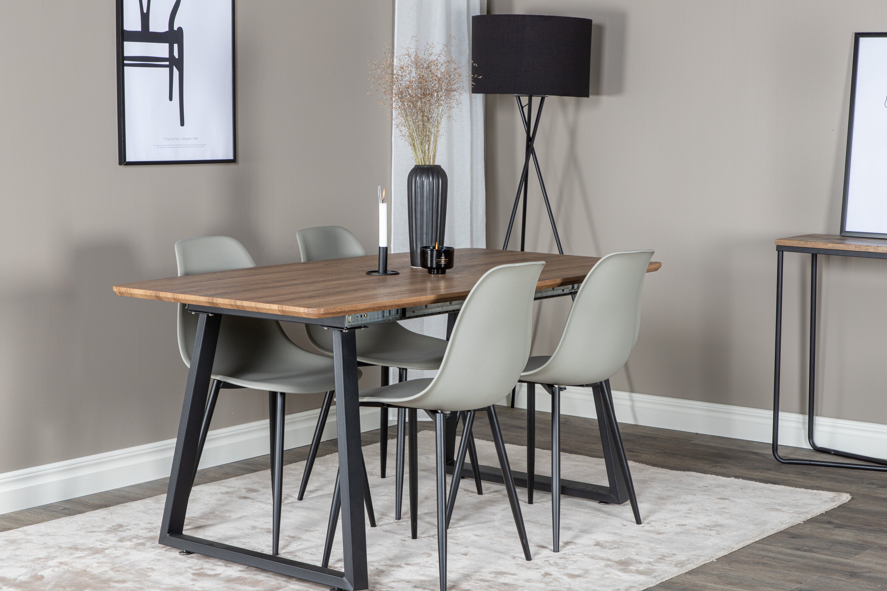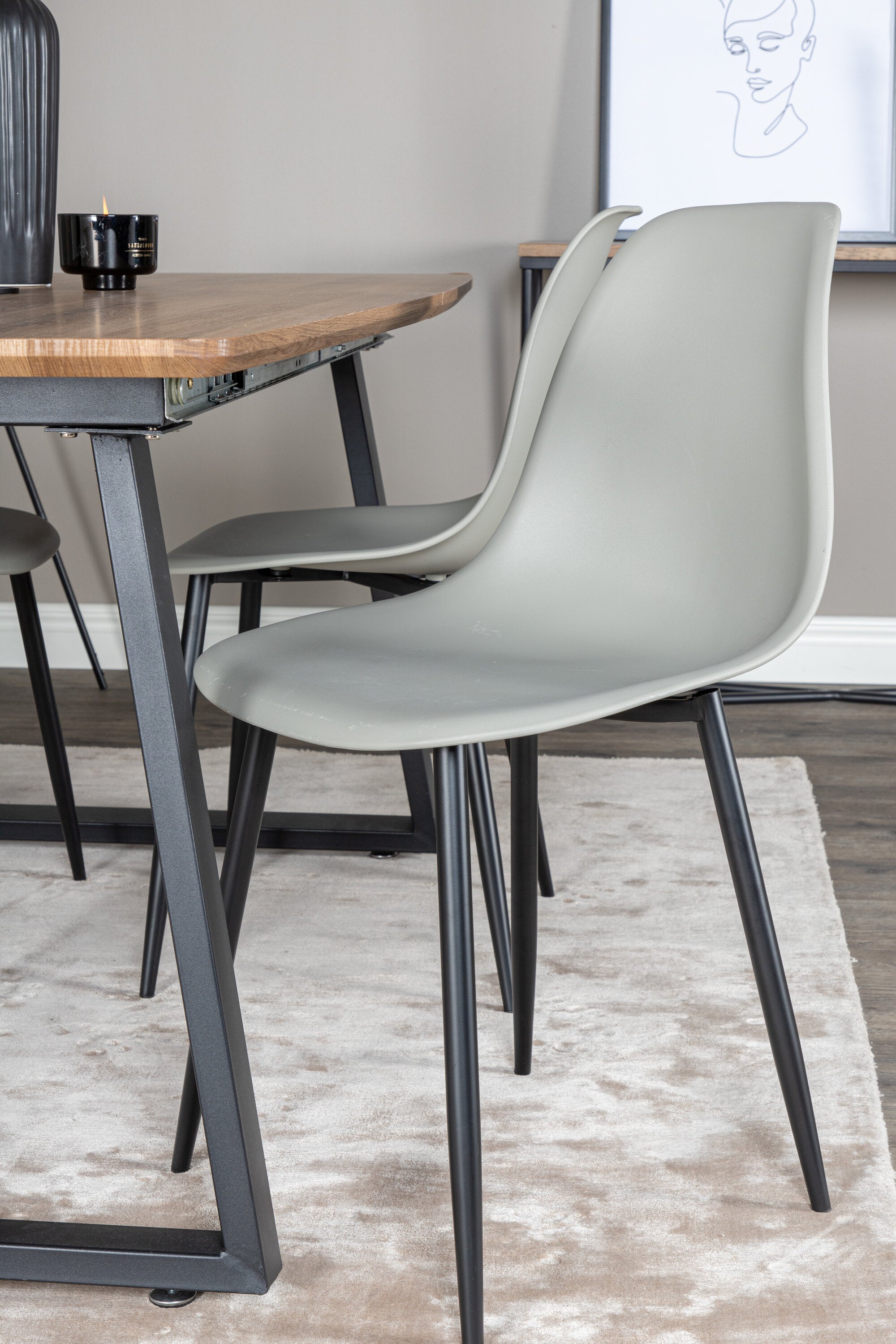 Jídelní stůl Inca - 160/200*85*H75 - Dub / Černá+Polar Plastová jídelní židle - Černé nohy / Šedý plast_4