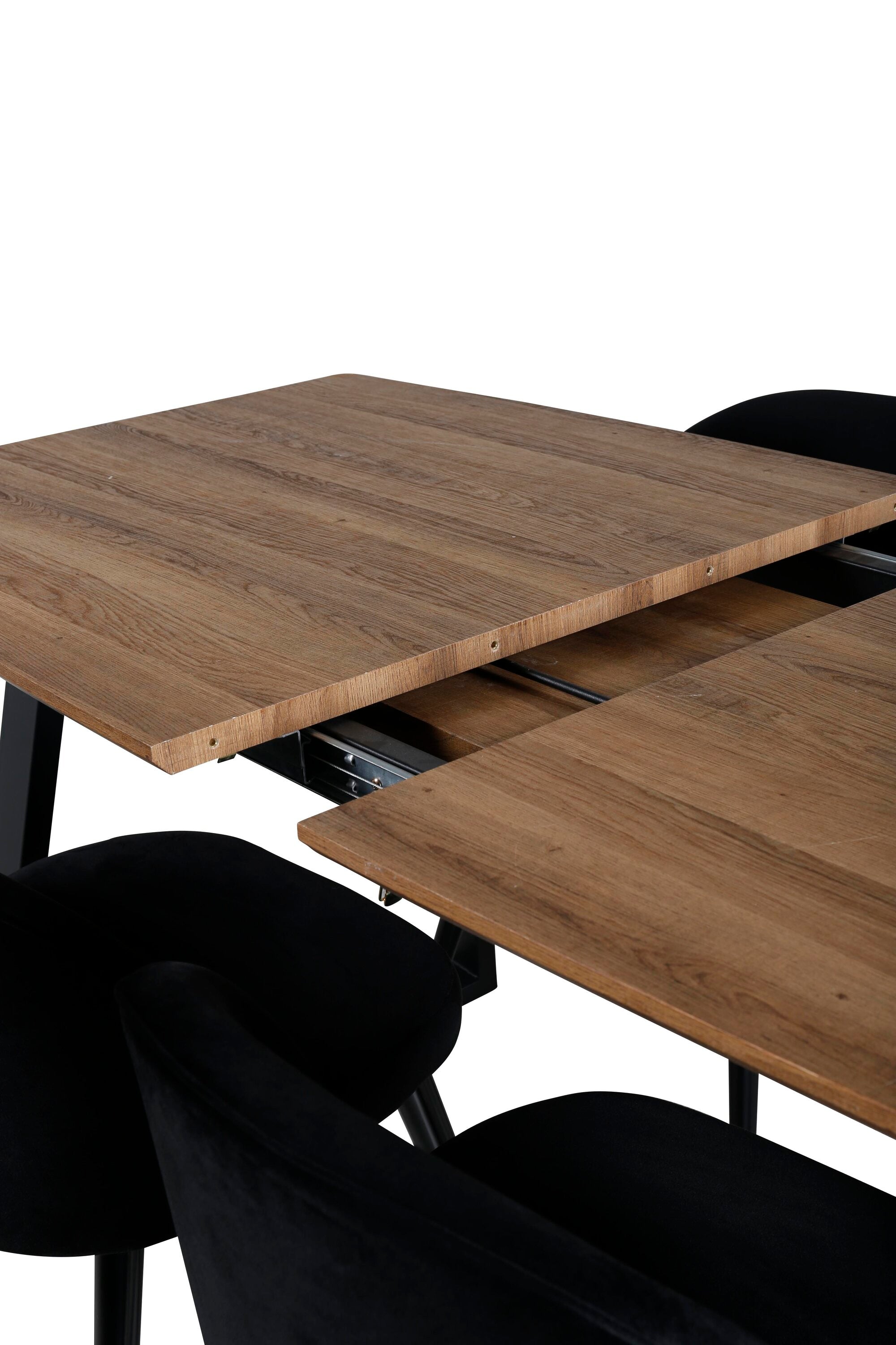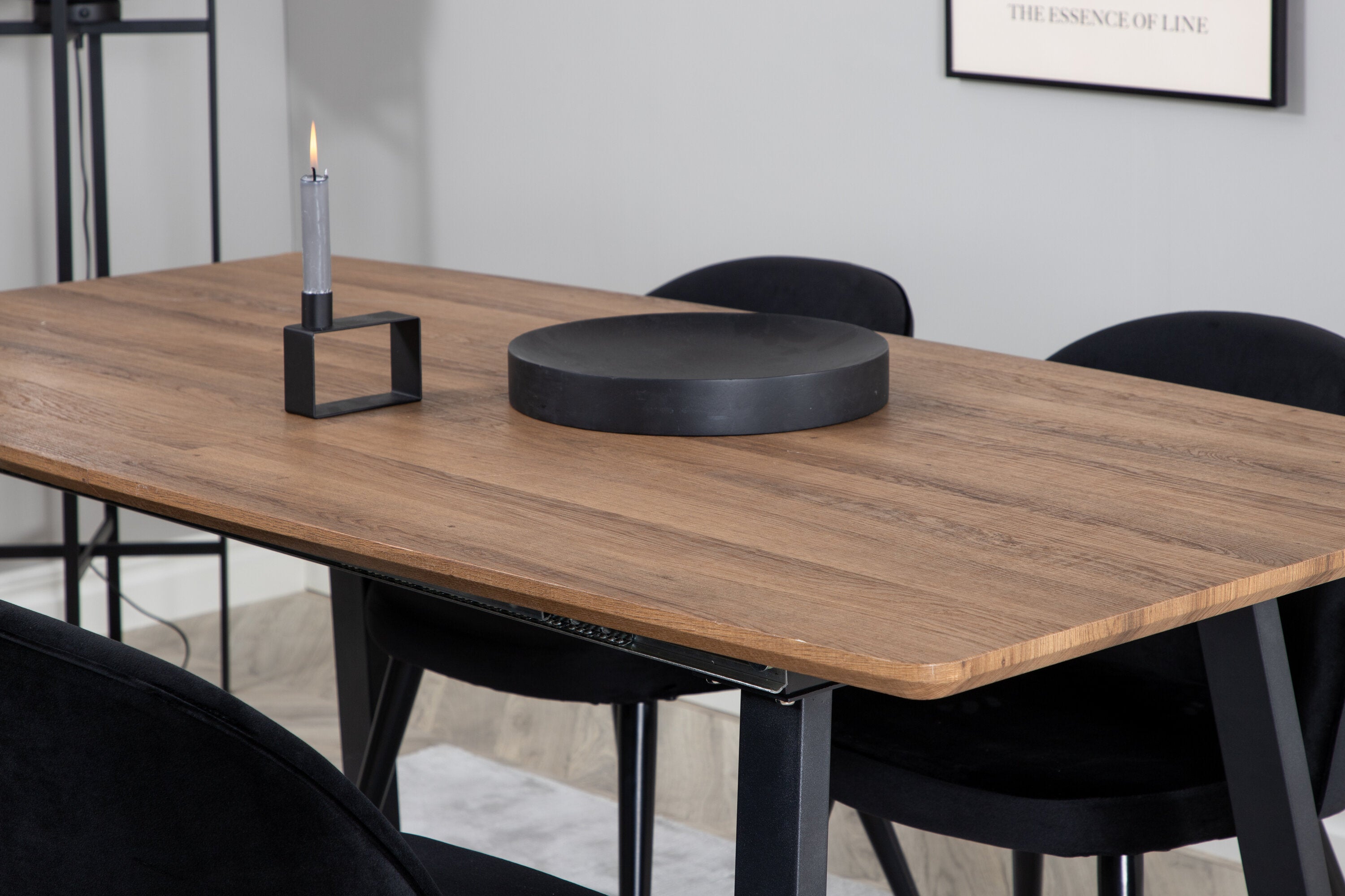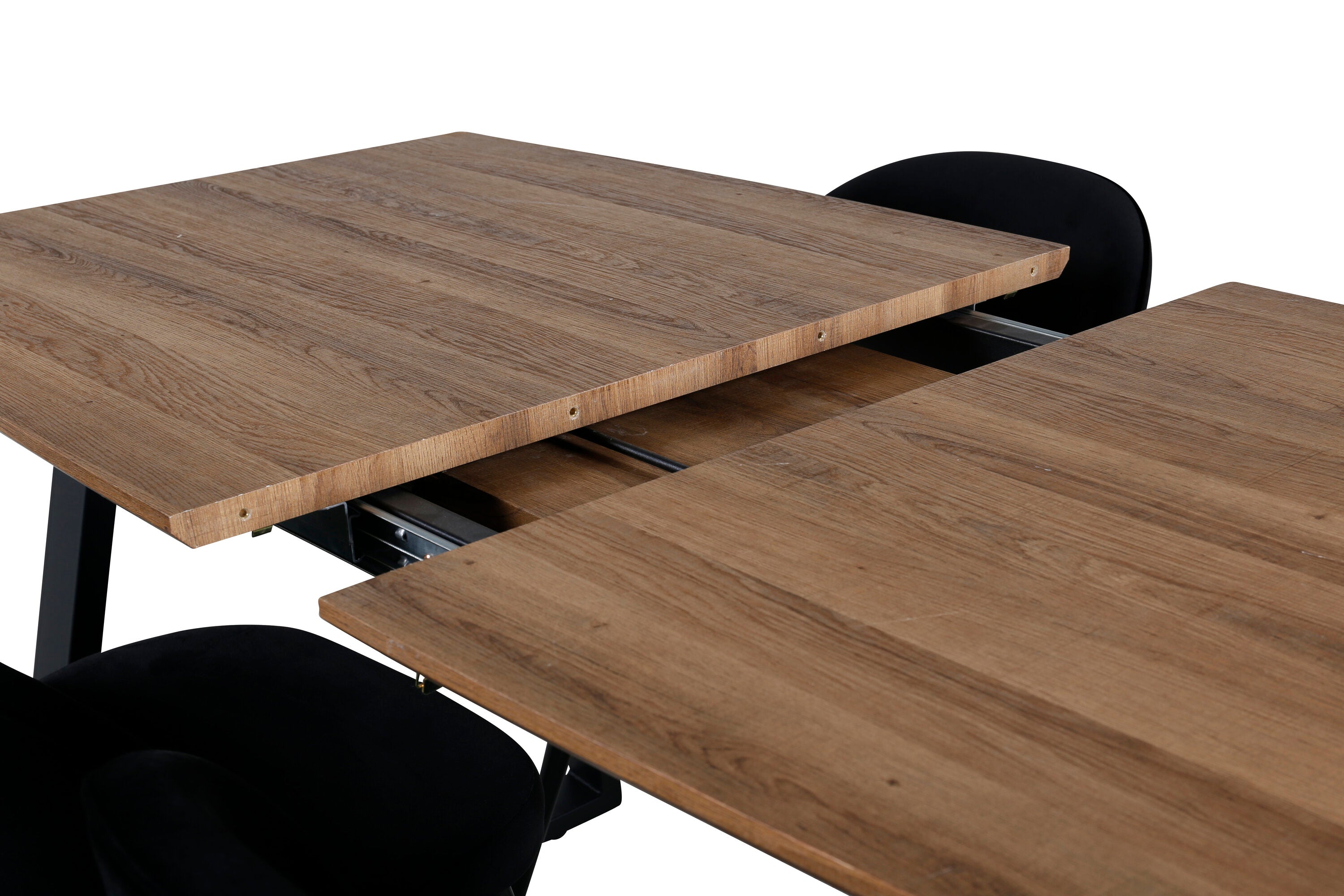 Jídelní stůl Inca - 160/200*85*H75 - Dub / Černá + Sametová jídelní židle - Černá / Černá_4