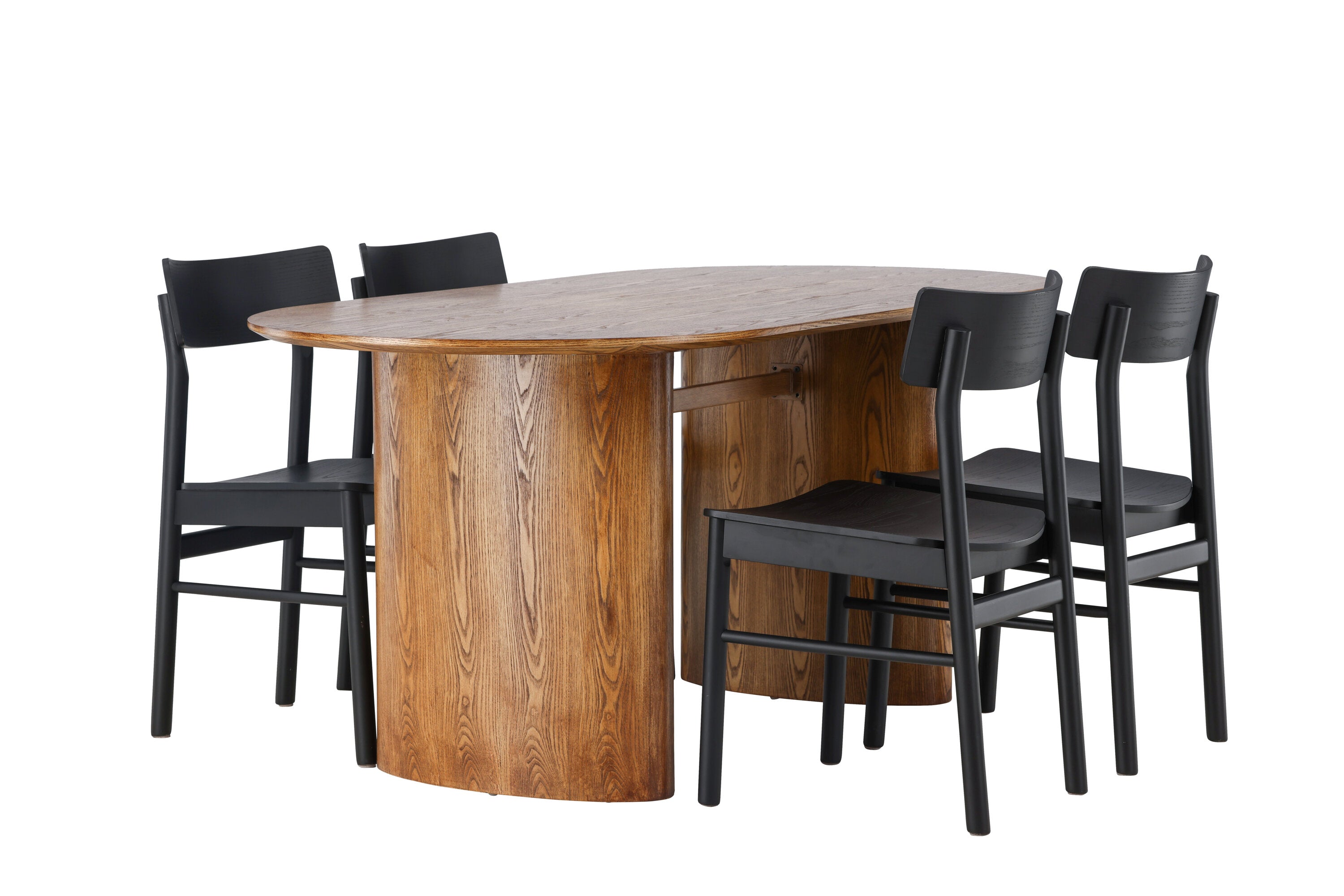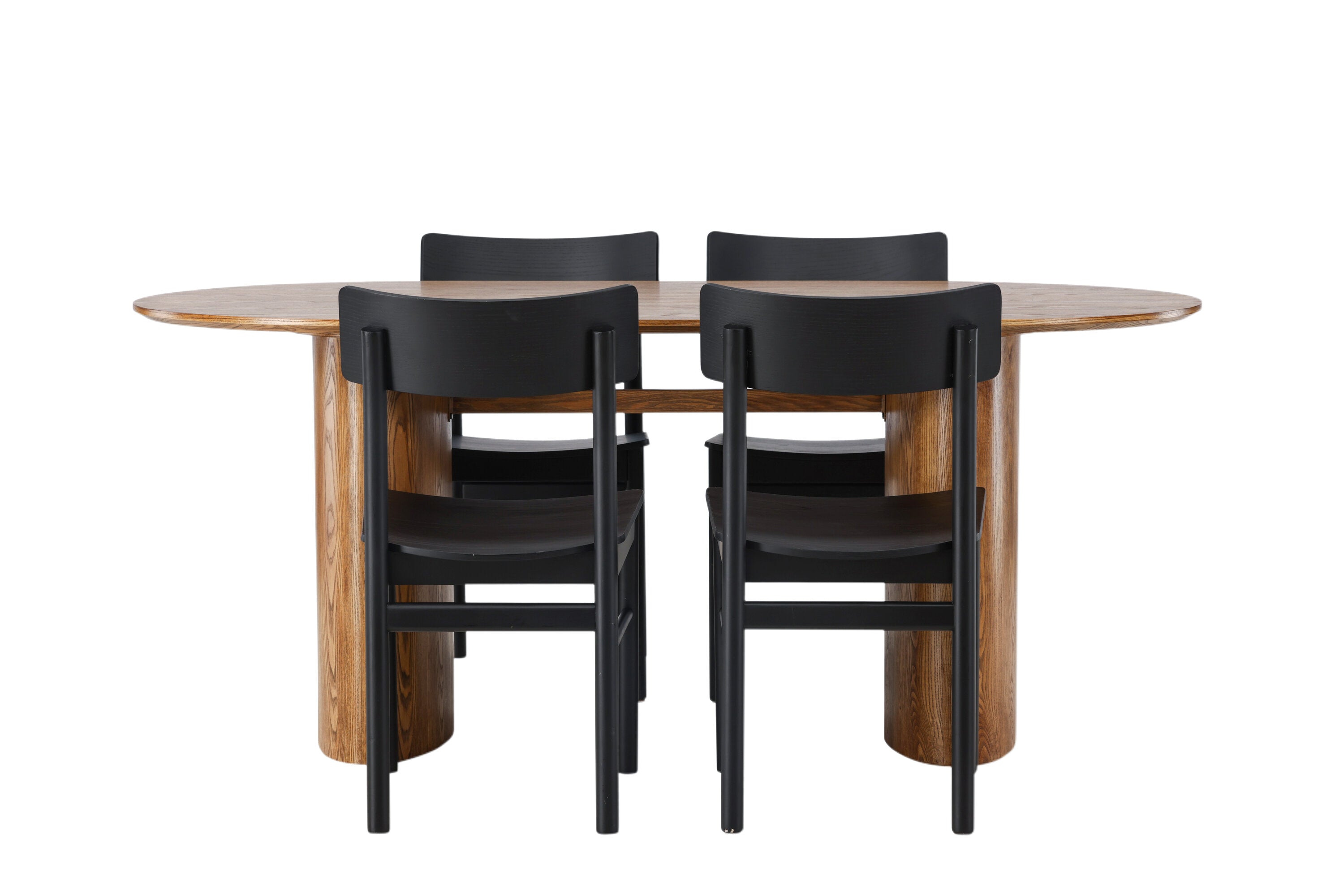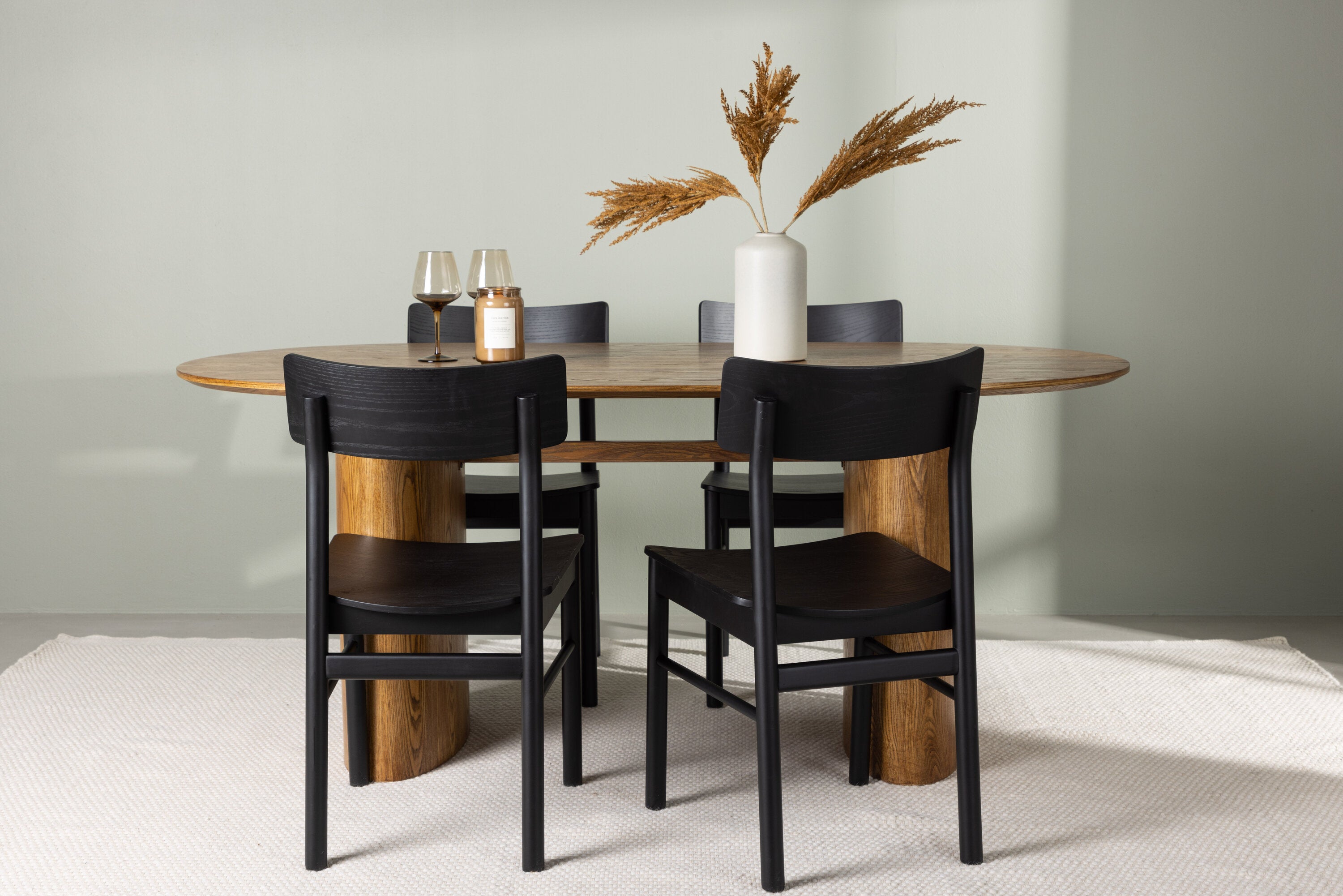 Tato stylová kombinace vám nabízí kompletní jídelní set, který kombinuje dřevěné materiály a odstíny dokonalým a harmonickým způsobem. Pozvěte v budoucnu své blízké na příjemná jídla a zároveň dodejte svému interiéru vzpruhu!