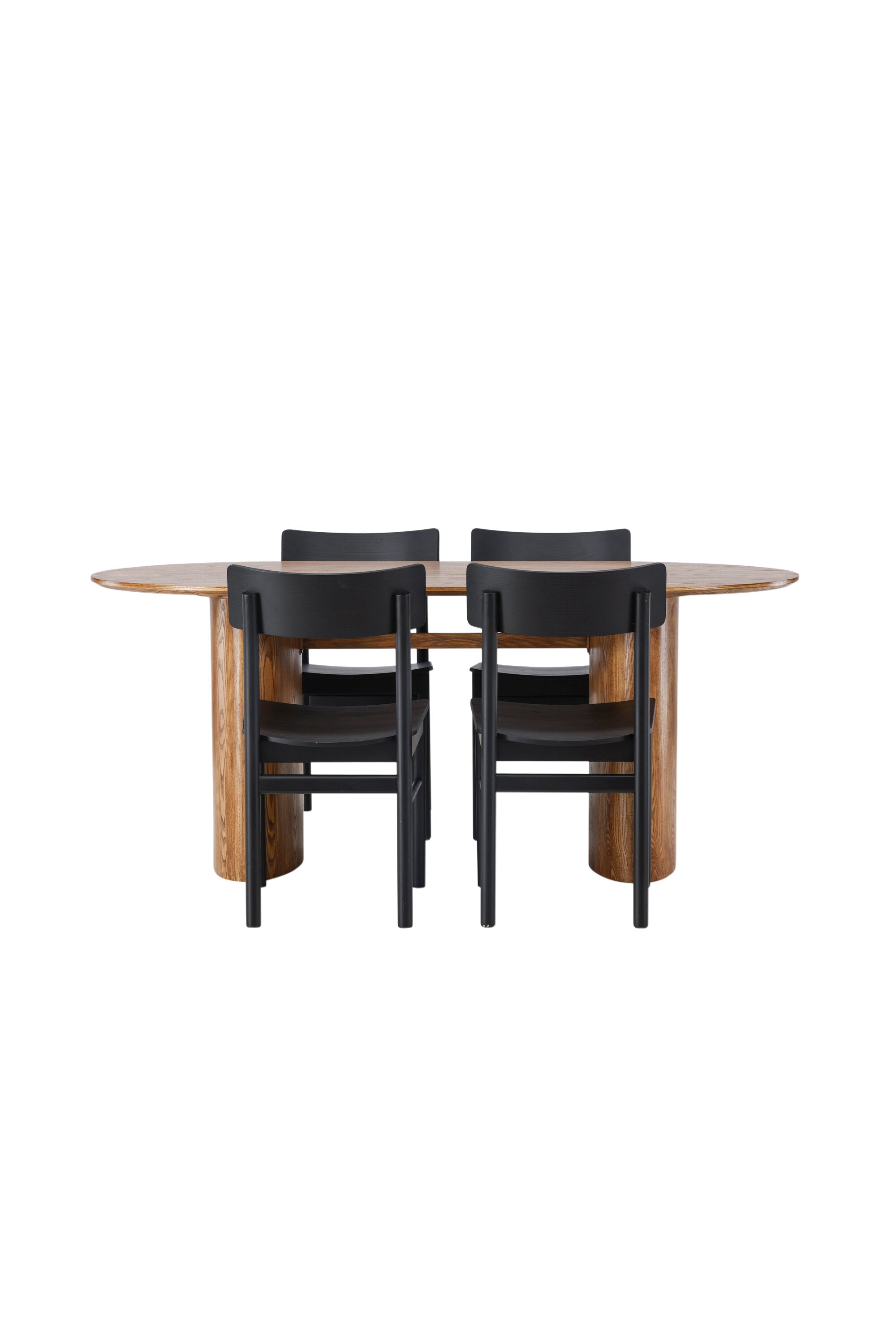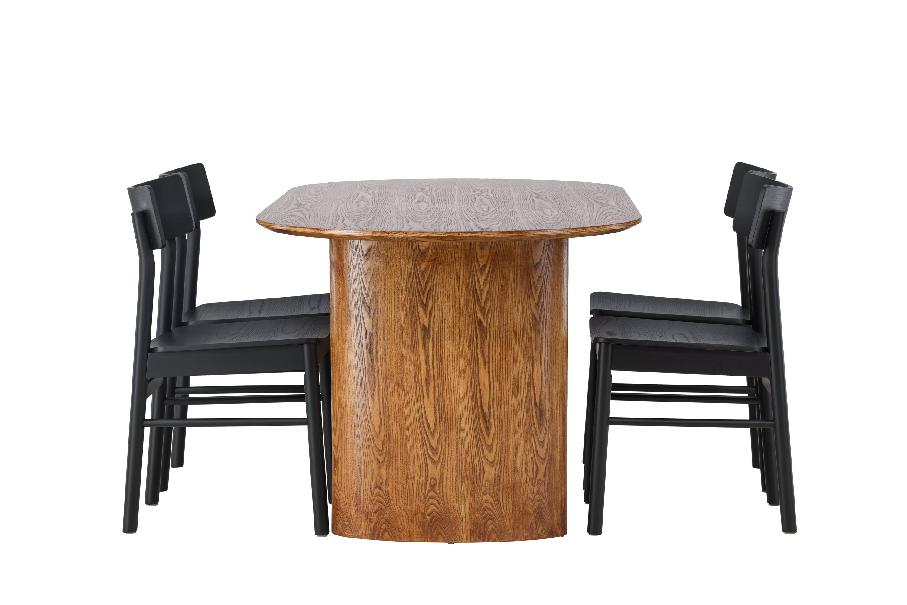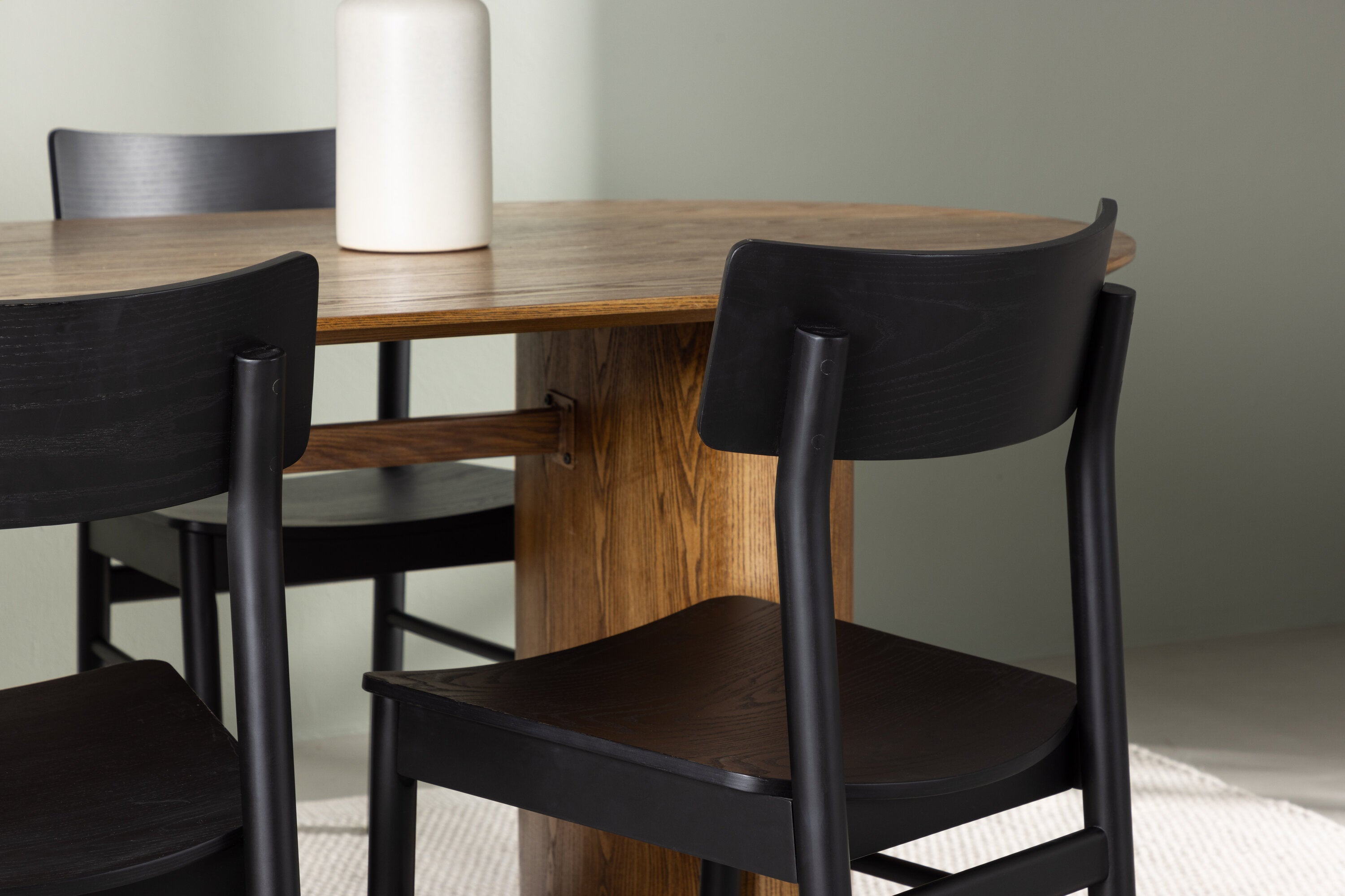 Tato stylová kombinace vám nabízí kompletní jídelní set, který kombinuje dřevěné materiály a odstíny dokonalým a harmonickým způsobem. Pozvěte v budoucnu své blízké na příjemná jídla a zároveň dodejte svému interiéru vzpruhu!