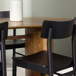 Elegantní a promyšlená jídelní souprava v rustikálním stylu, která díky svým dřevěným tónům a severským tvarům dokonale ladí!