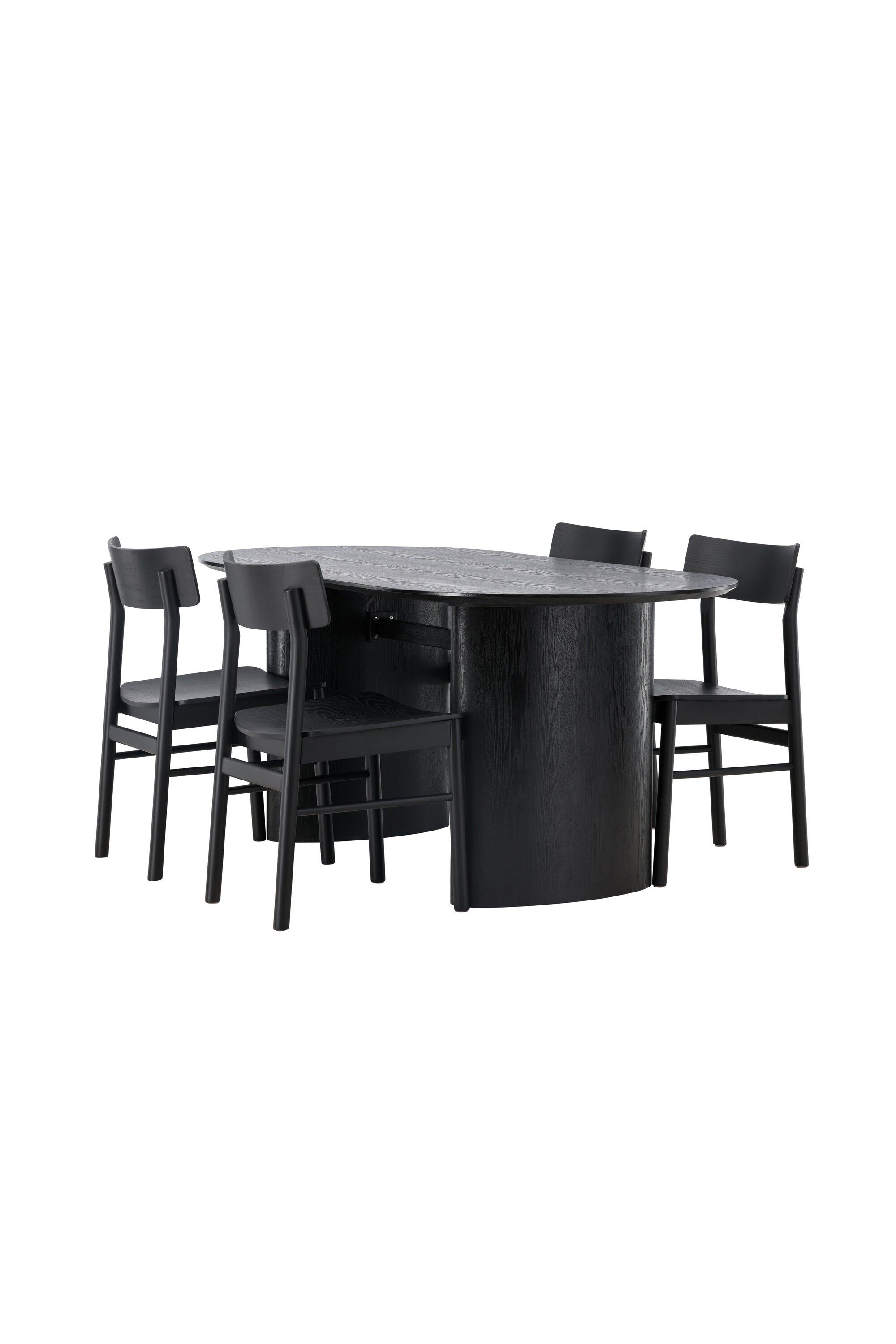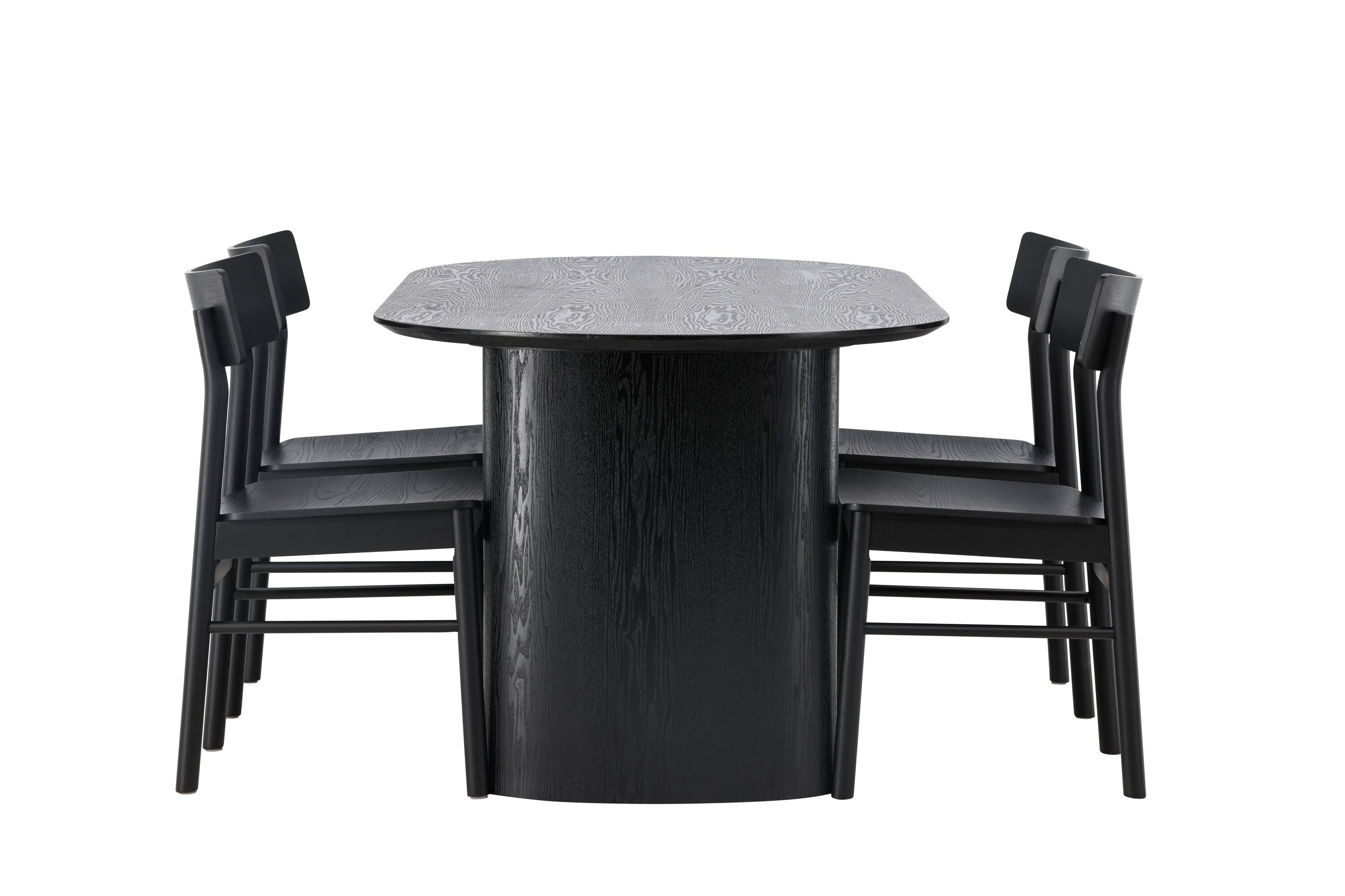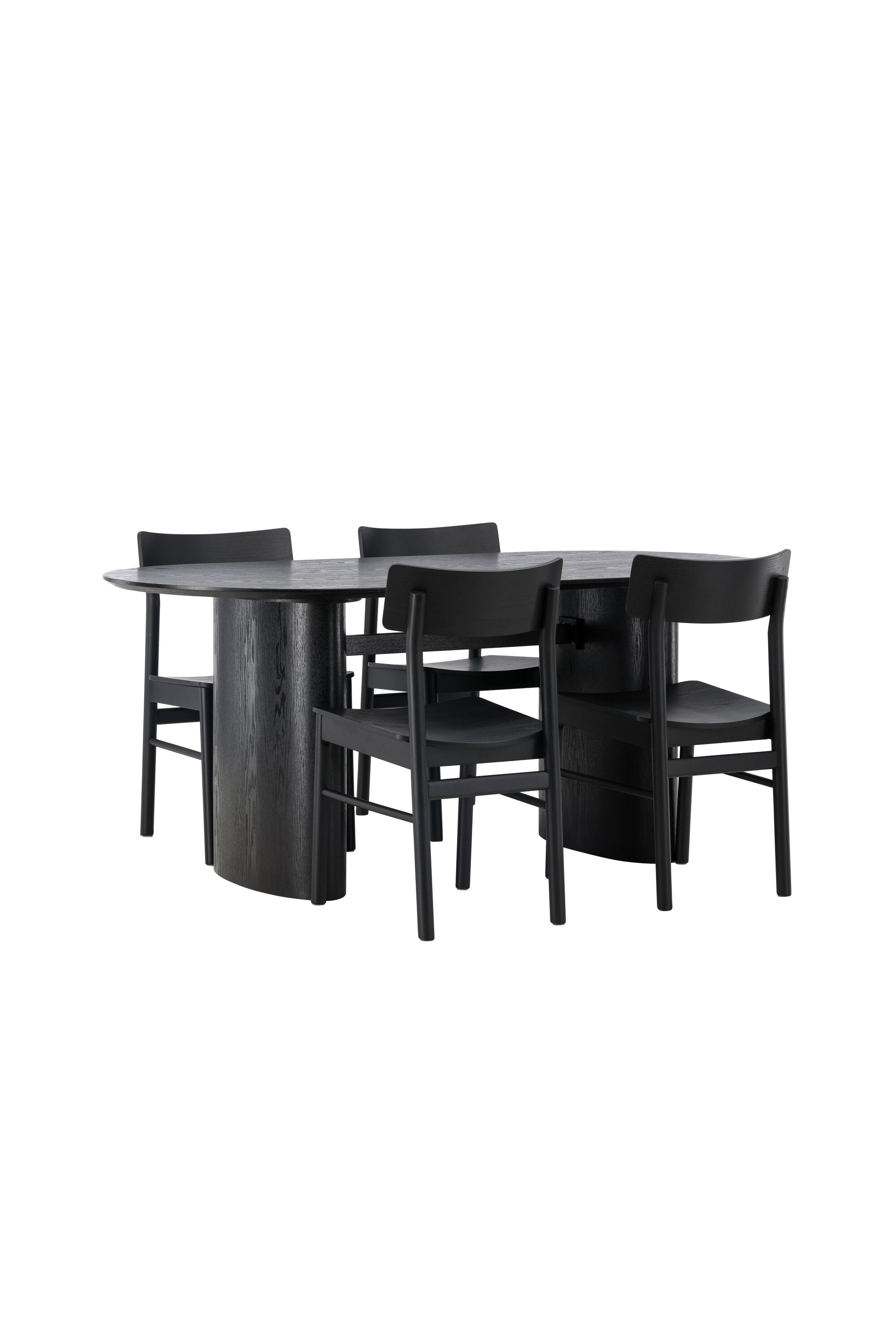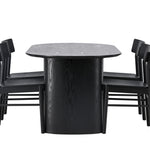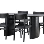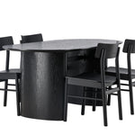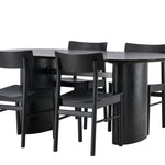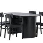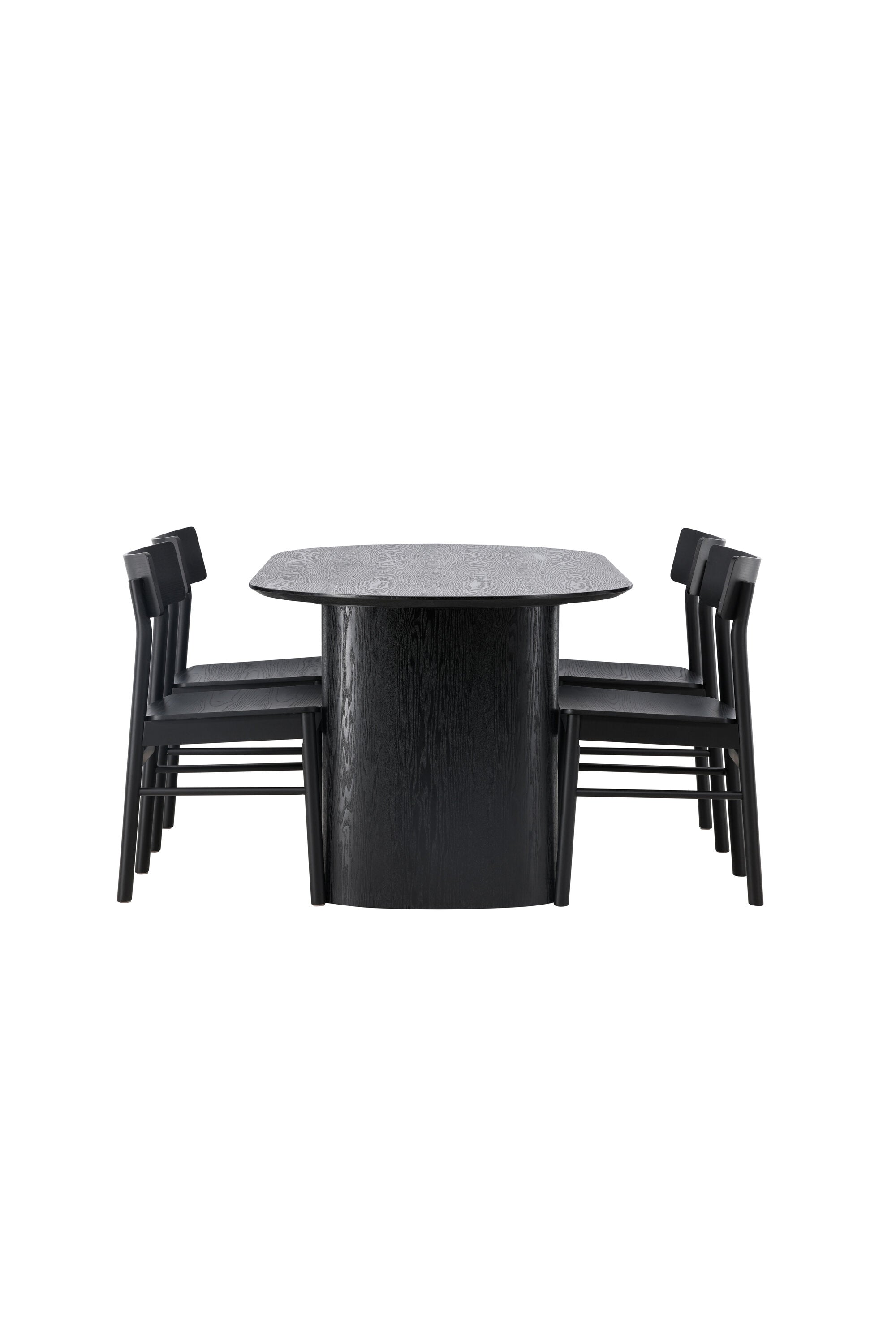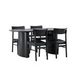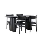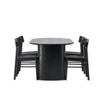 Velký vzhled je zpět! Oválný jídelní stůl Isolde v černé barvě má ​​moderní design s oválnou deskou stolu z MDF a robustním rámem, který působí stabilním dojmem. Živý materiál dává vkusný pohyb poutače. Zde ve vkusné kombinaci s moderními jídelními židlemi ze série Montros. Židle má klasický a nostalgický design s rovnými severskými tvary, celoplošně vyrobena z černého kaučukovníku. Vyzdobte obývací pokoj v moderních podobách! Rozměry stolu: 180x75cm.