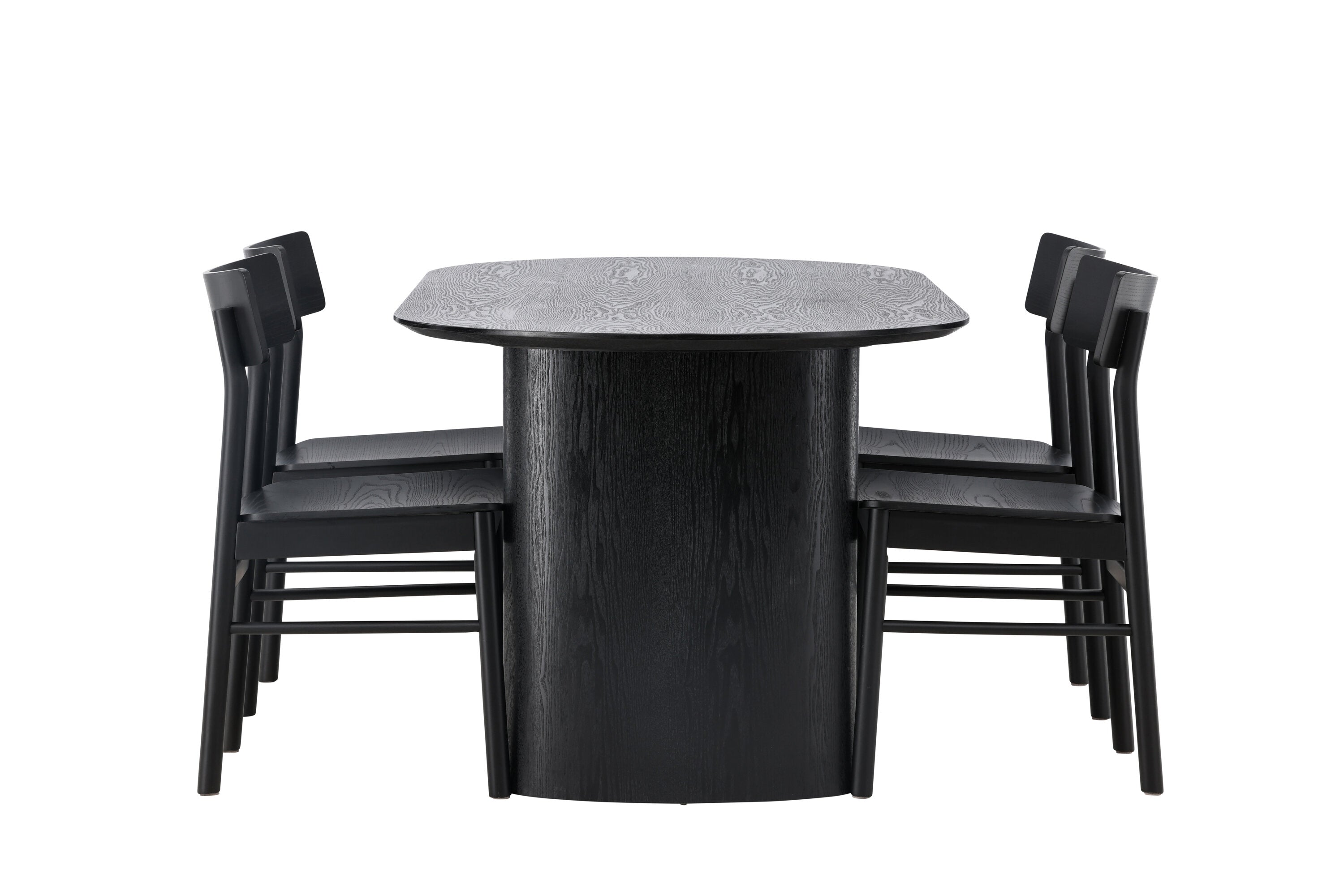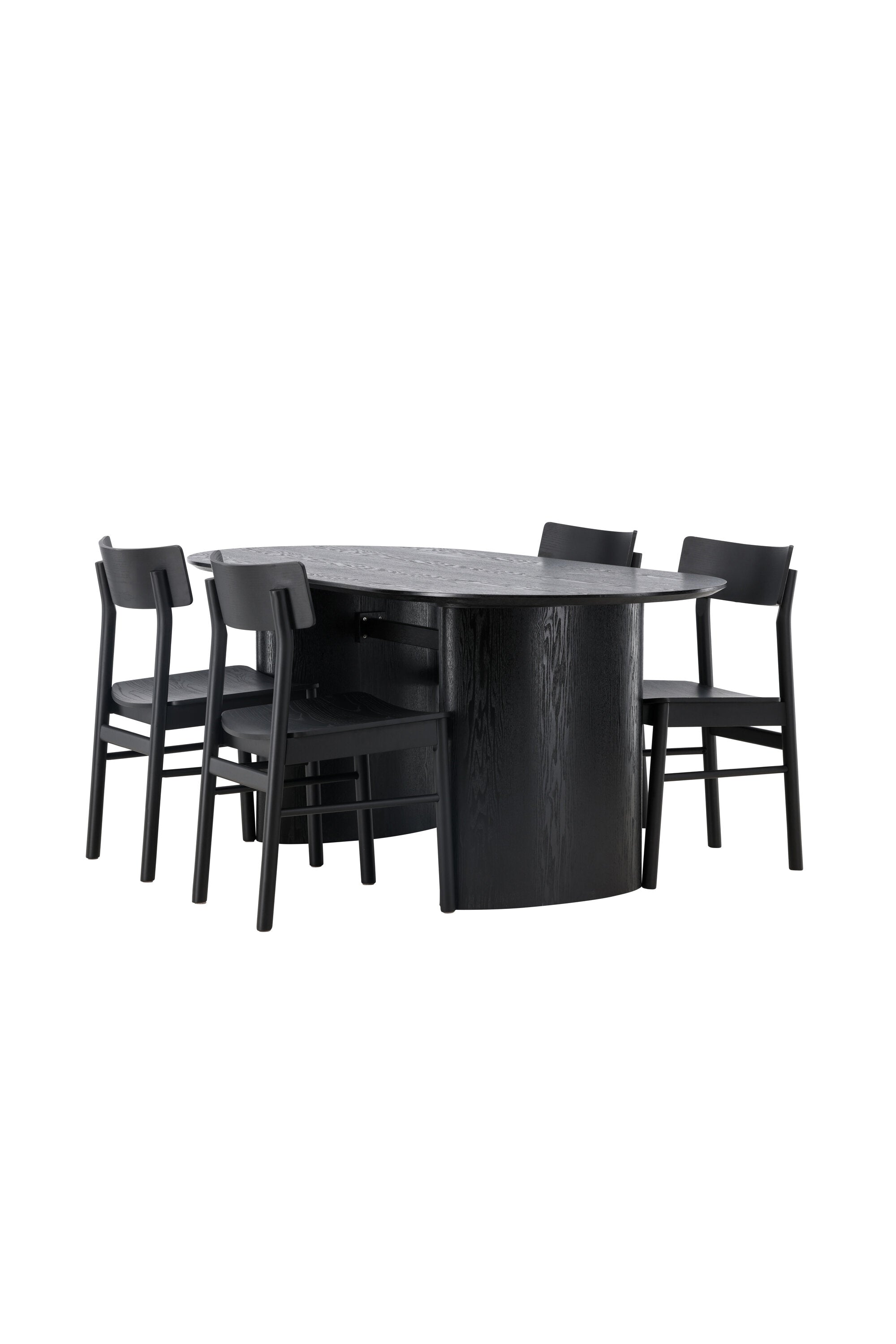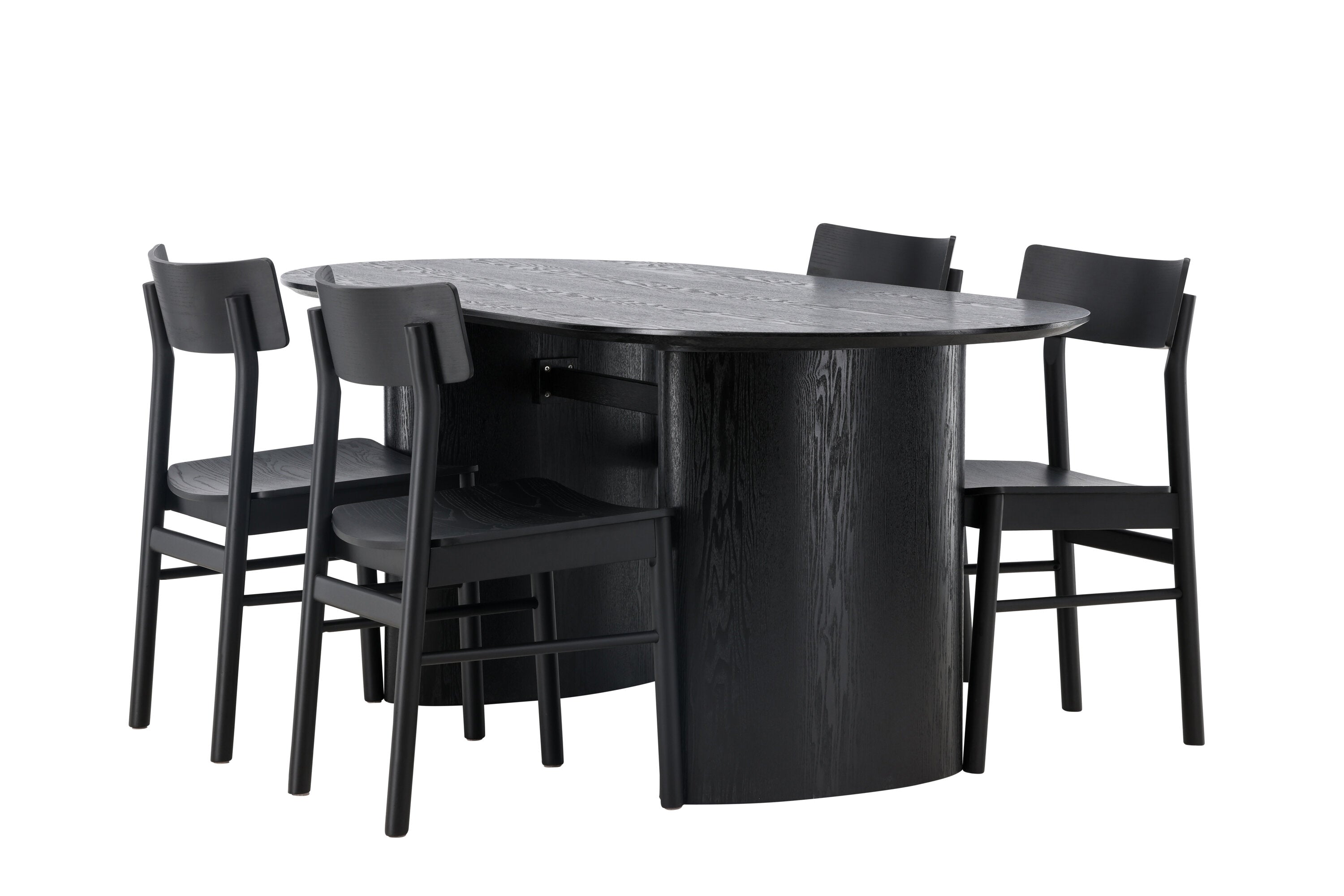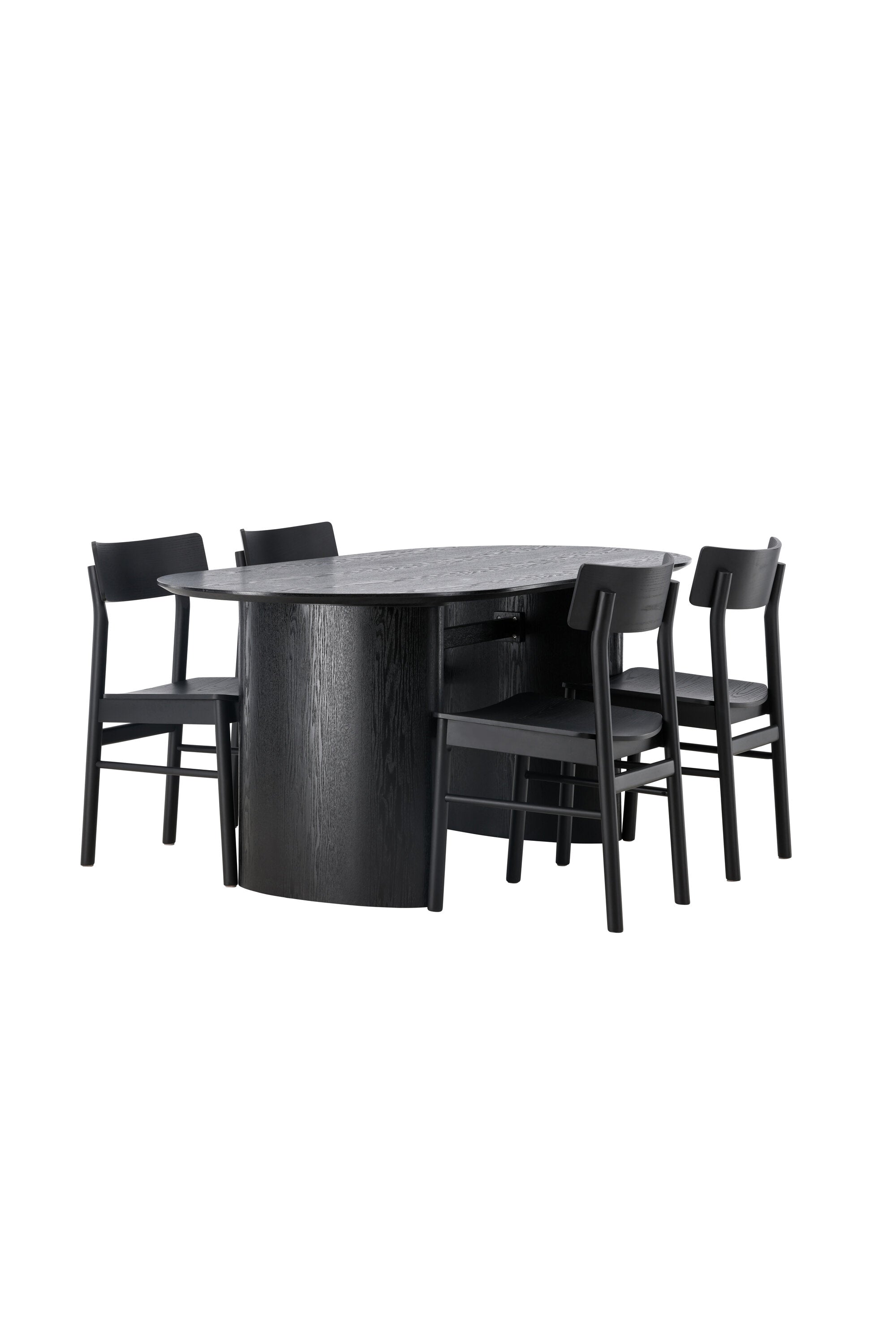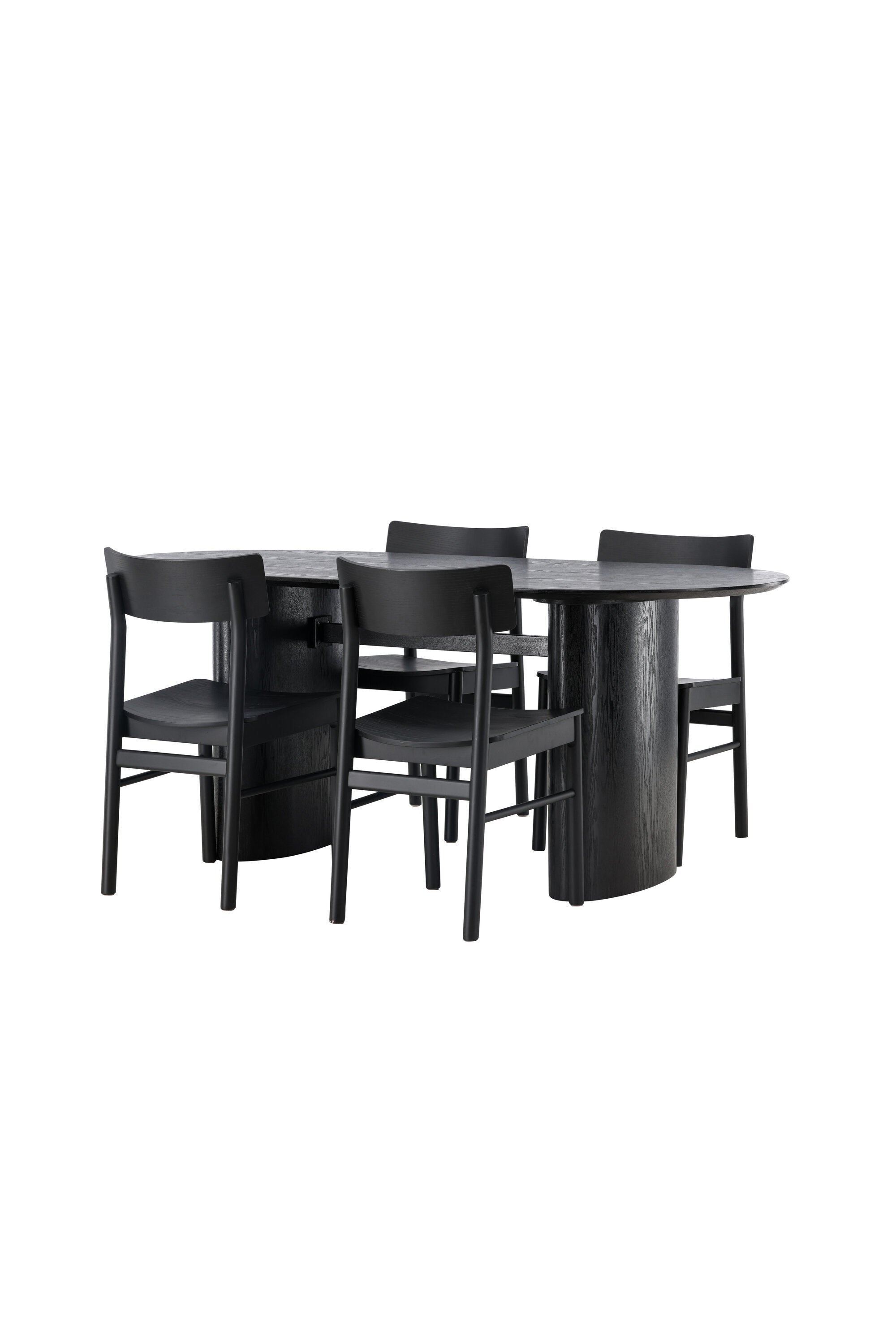 Velký vzhled je zpět! Oválný jídelní stůl Isolde v černé barvě má ​​moderní design s oválnou deskou stolu z MDF a robustním rámem, který působí stabilním dojmem. Živý materiál dává vkusný pohyb poutače. Zde ve vkusné kombinaci s moderními jídelními židlemi ze série Montros. Židle má klasický a nostalgický design s rovnými severskými tvary, celoplošně vyrobena z černého kaučukovníku. Vyzdobte obývací pokoj v moderních podobách! Rozměry stolu: 180x75cm.