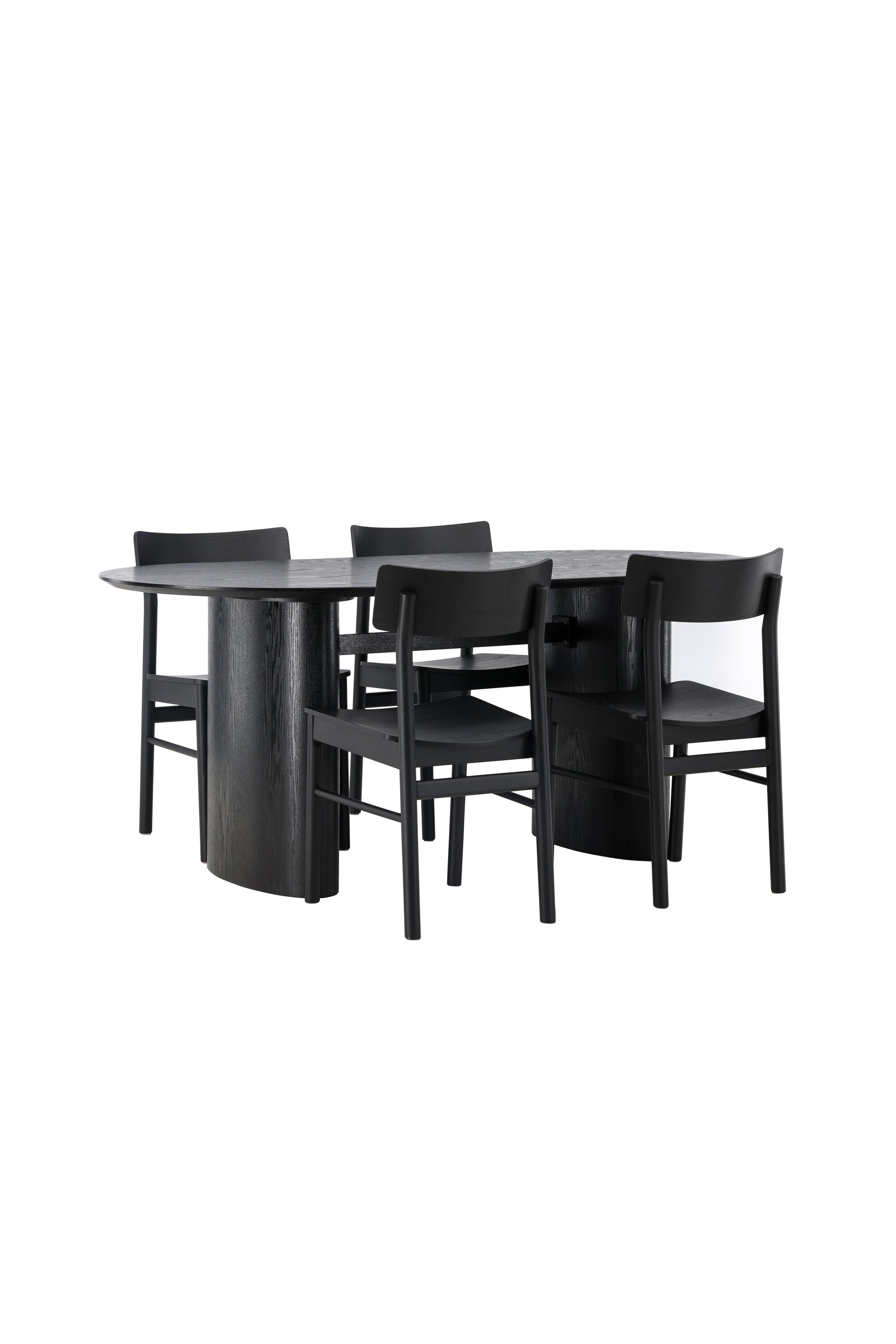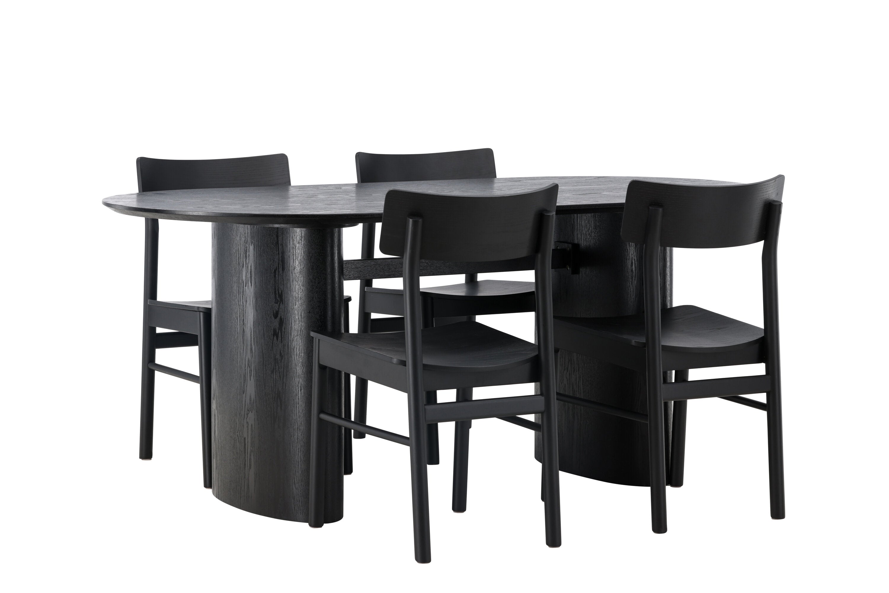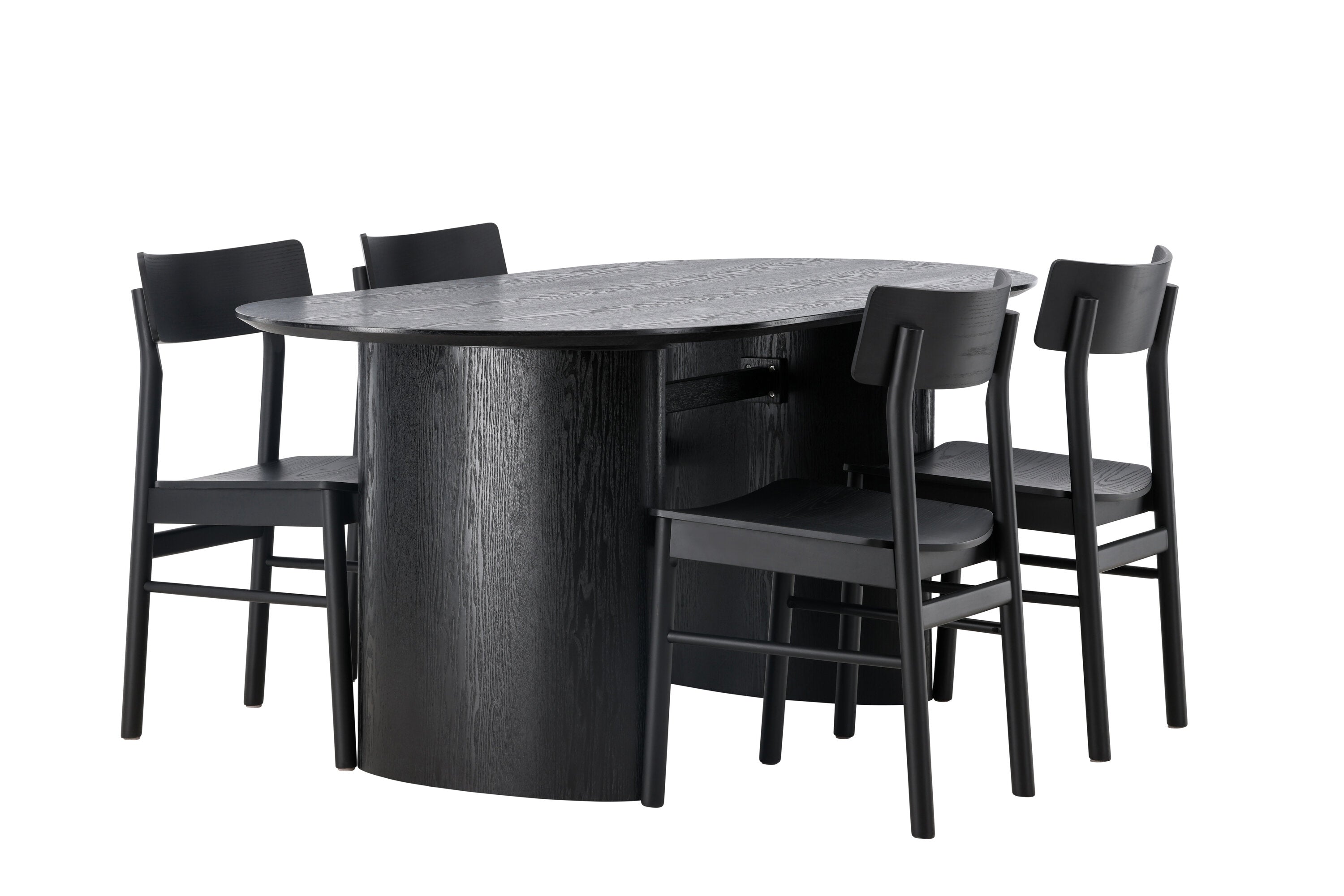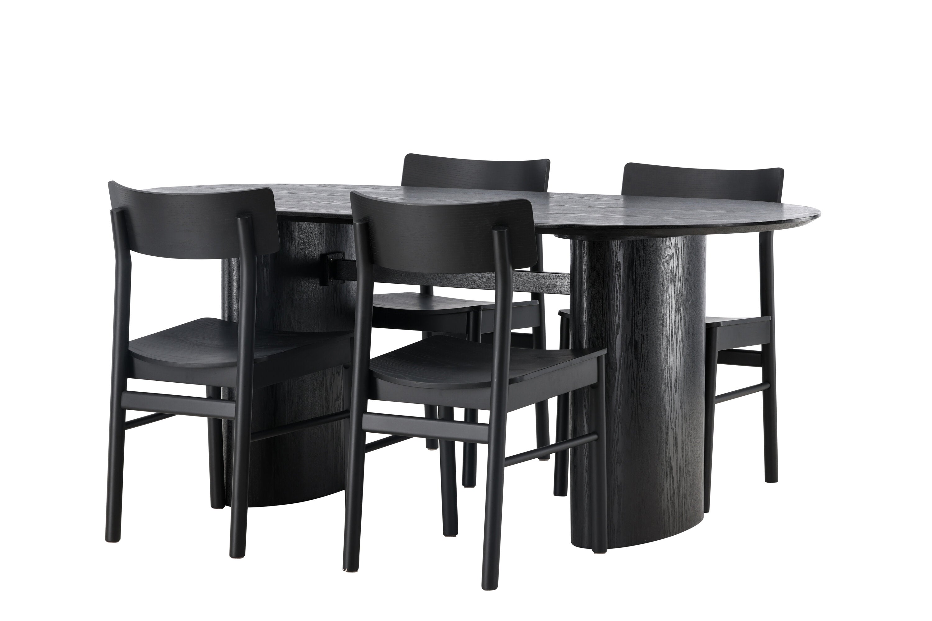 Velký vzhled je zpět! Oválný jídelní stůl Isolde v černé barvě má ​​moderní design s oválnou deskou stolu z MDF a robustním rámem, který působí stabilním dojmem. Živý materiál dává vkusný pohyb poutače. Zde ve vkusné kombinaci s moderními jídelními židlemi ze série Montros. Židle má klasický a nostalgický design s rovnými severskými tvary, celoplošně vyrobena z černého kaučukovníku. Vyzdobte obývací pokoj v moderních podobách! Rozměry stolu: 180x75cm.