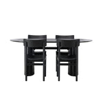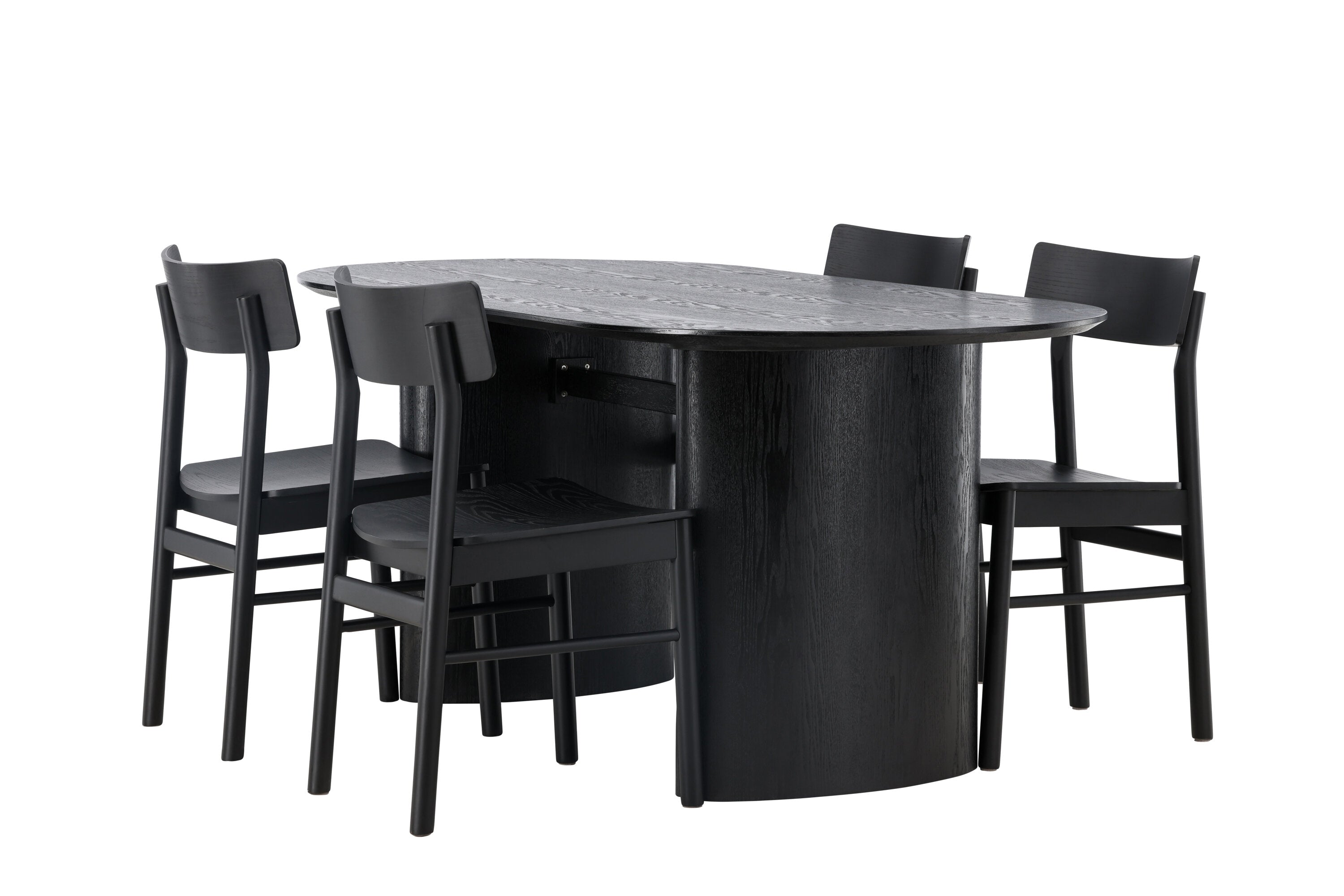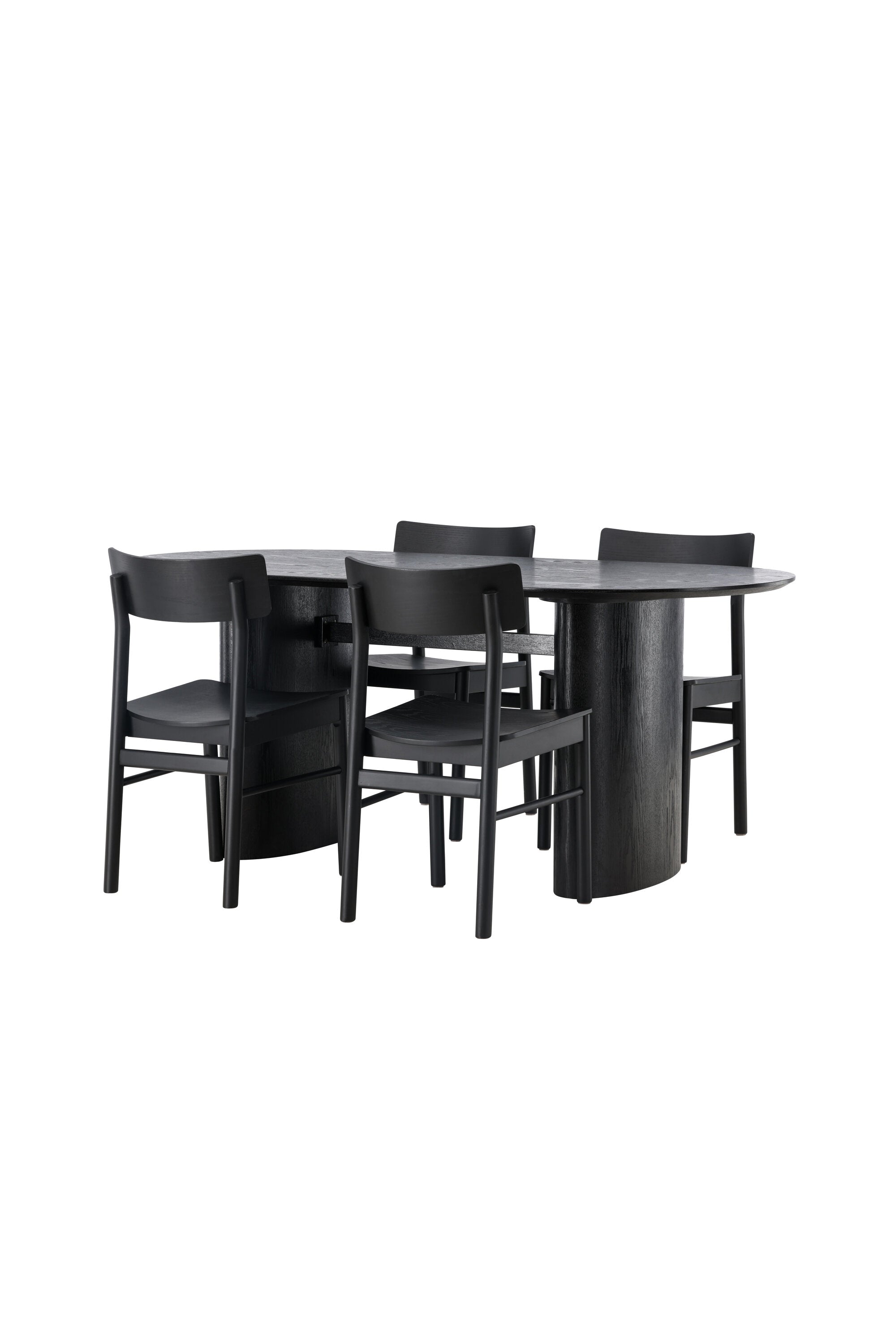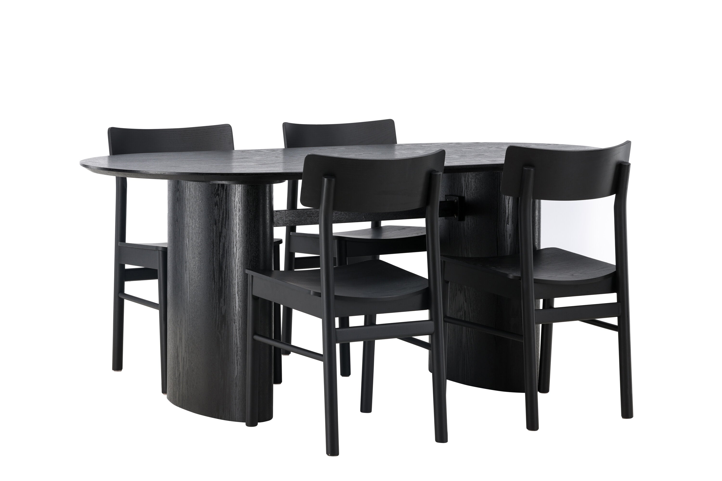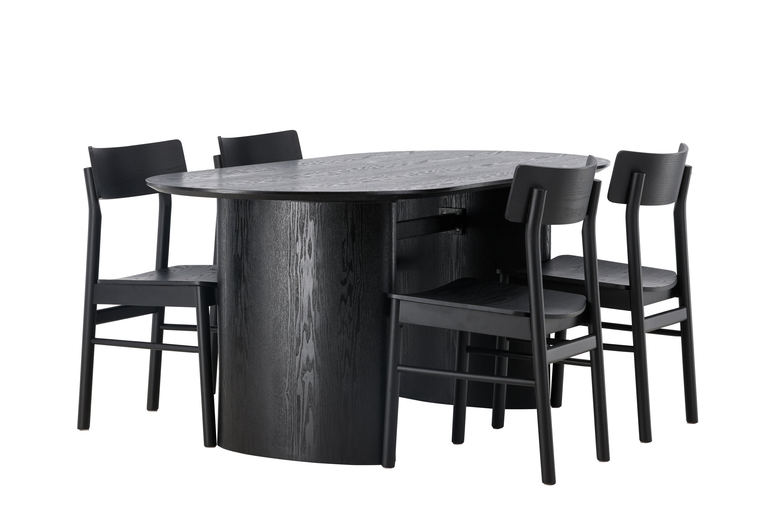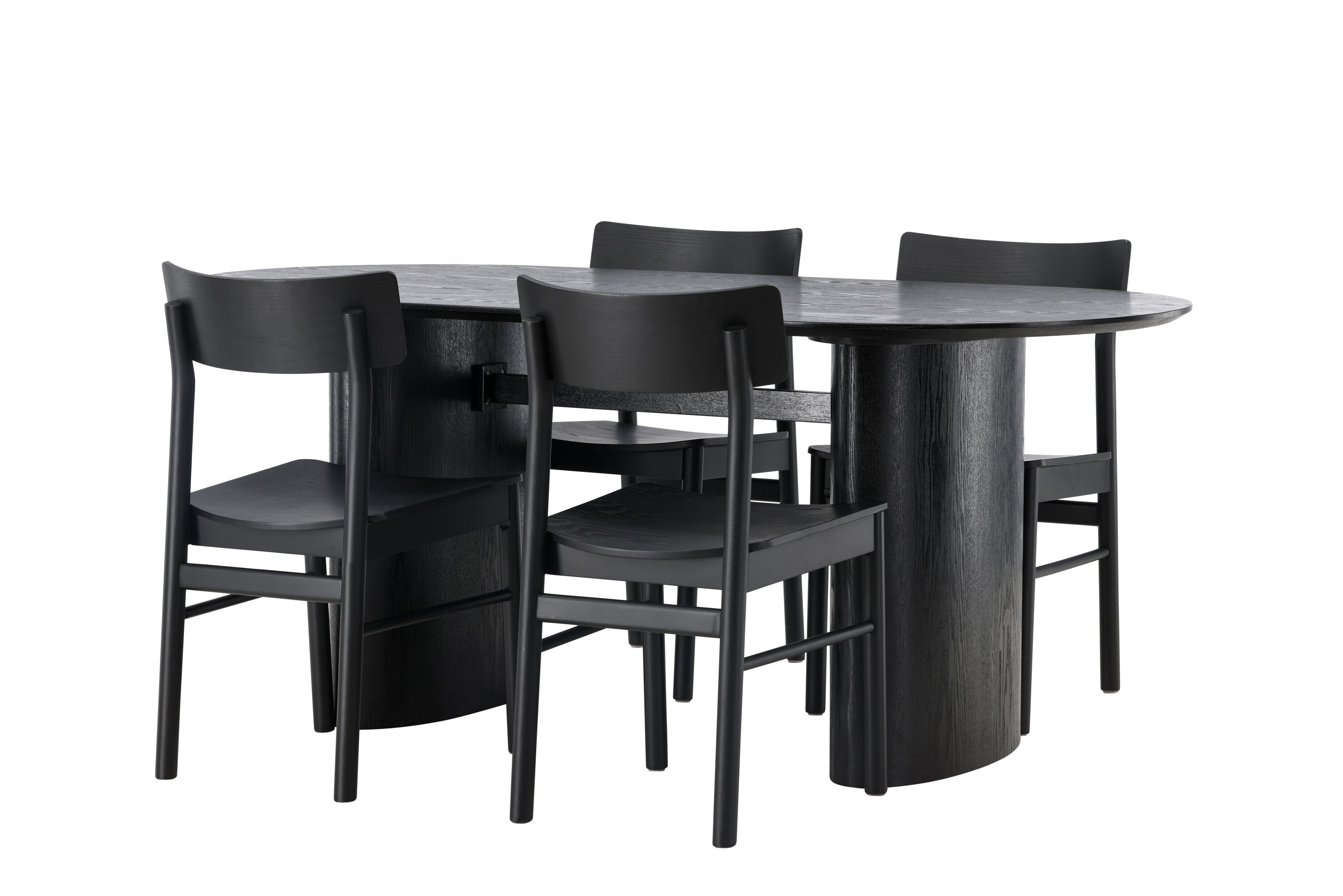 Velký vzhled je zpět! Oválný jídelní stůl Isolde v černé barvě má ​​moderní design s oválnou deskou stolu z MDF a robustním rámem, který působí stabilním dojmem. Živý materiál dává vkusný pohyb poutače. Zde ve vkusné kombinaci s moderními jídelními židlemi ze série Montros. Židle má klasický a nostalgický design s rovnými severskými tvary, celoplošně vyrobena z černého kaučukovníku. Vyzdobte obývací pokoj v moderních podobách! Rozměry stolu: 180x75cm.