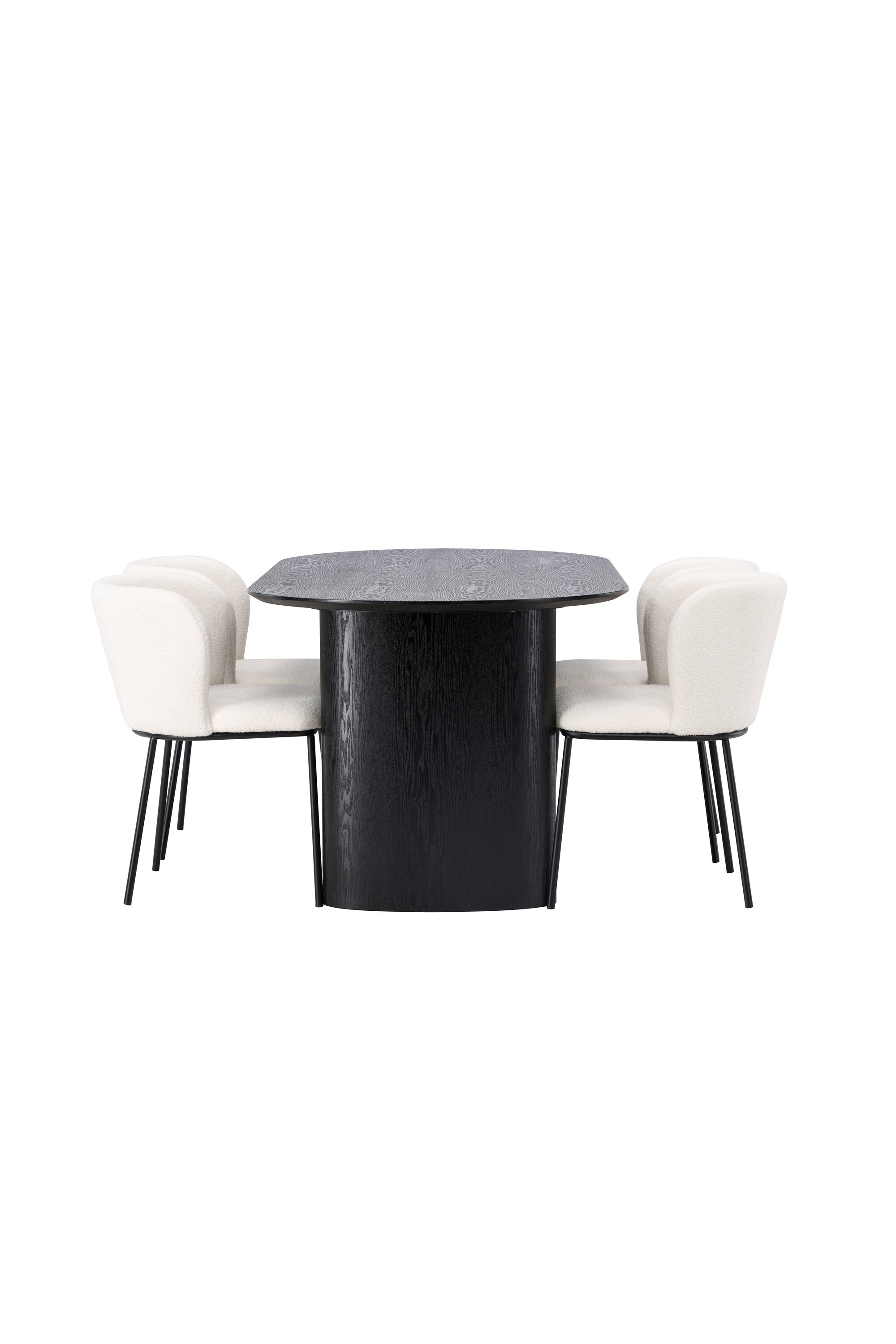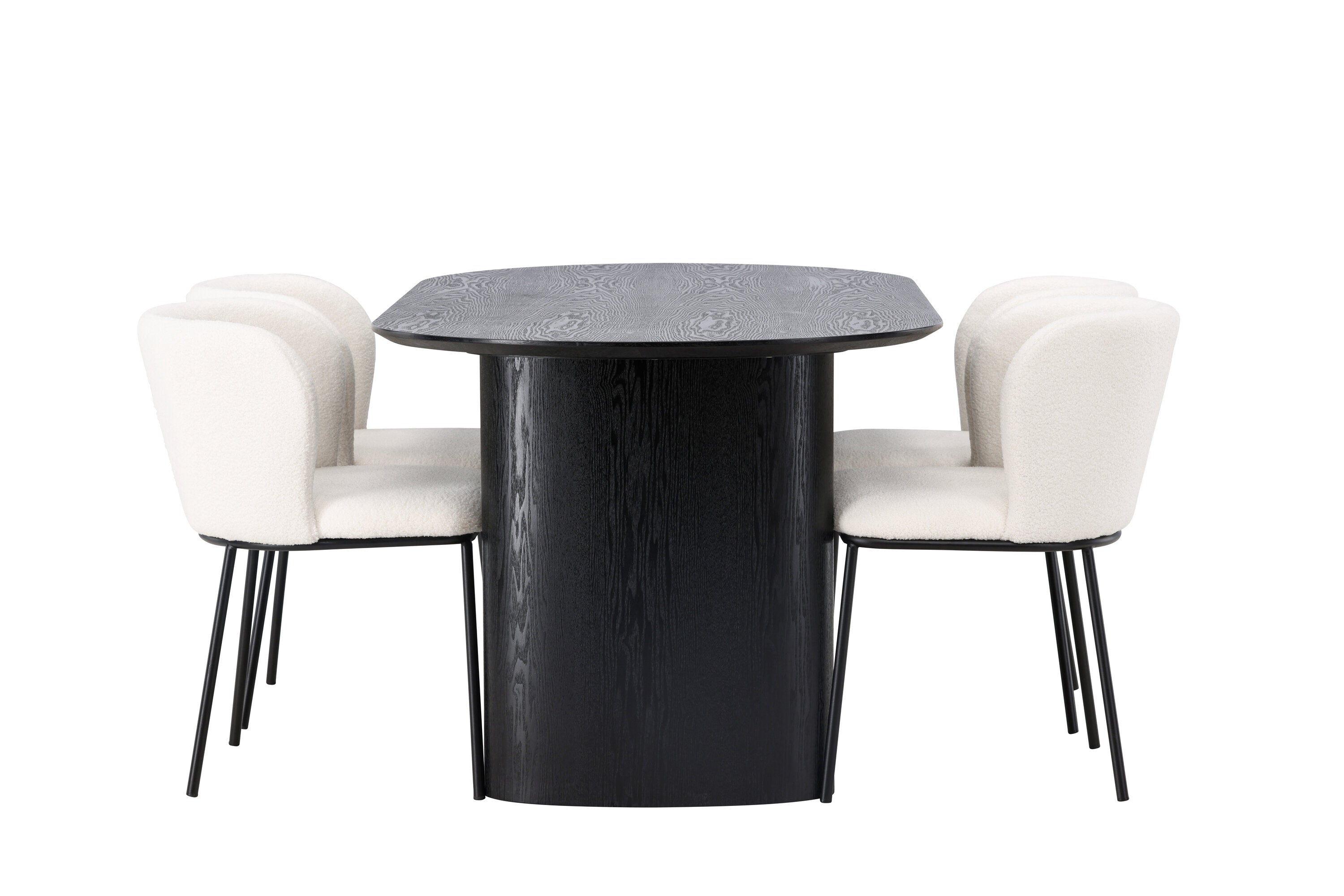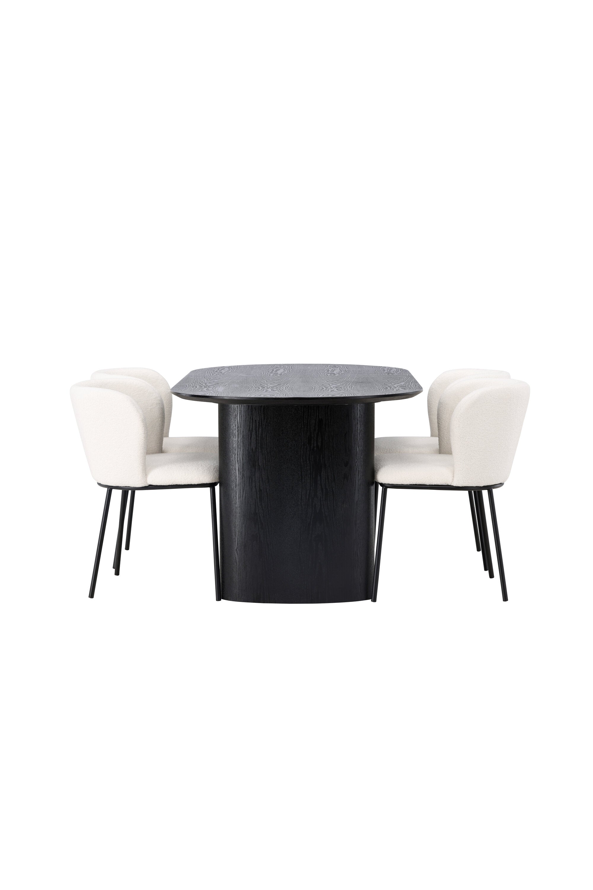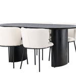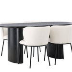 Jídelní stůl Isolde 180*75 – černá / černá MDF + jídelní židle Edina – černá / bílá Boucle _4
