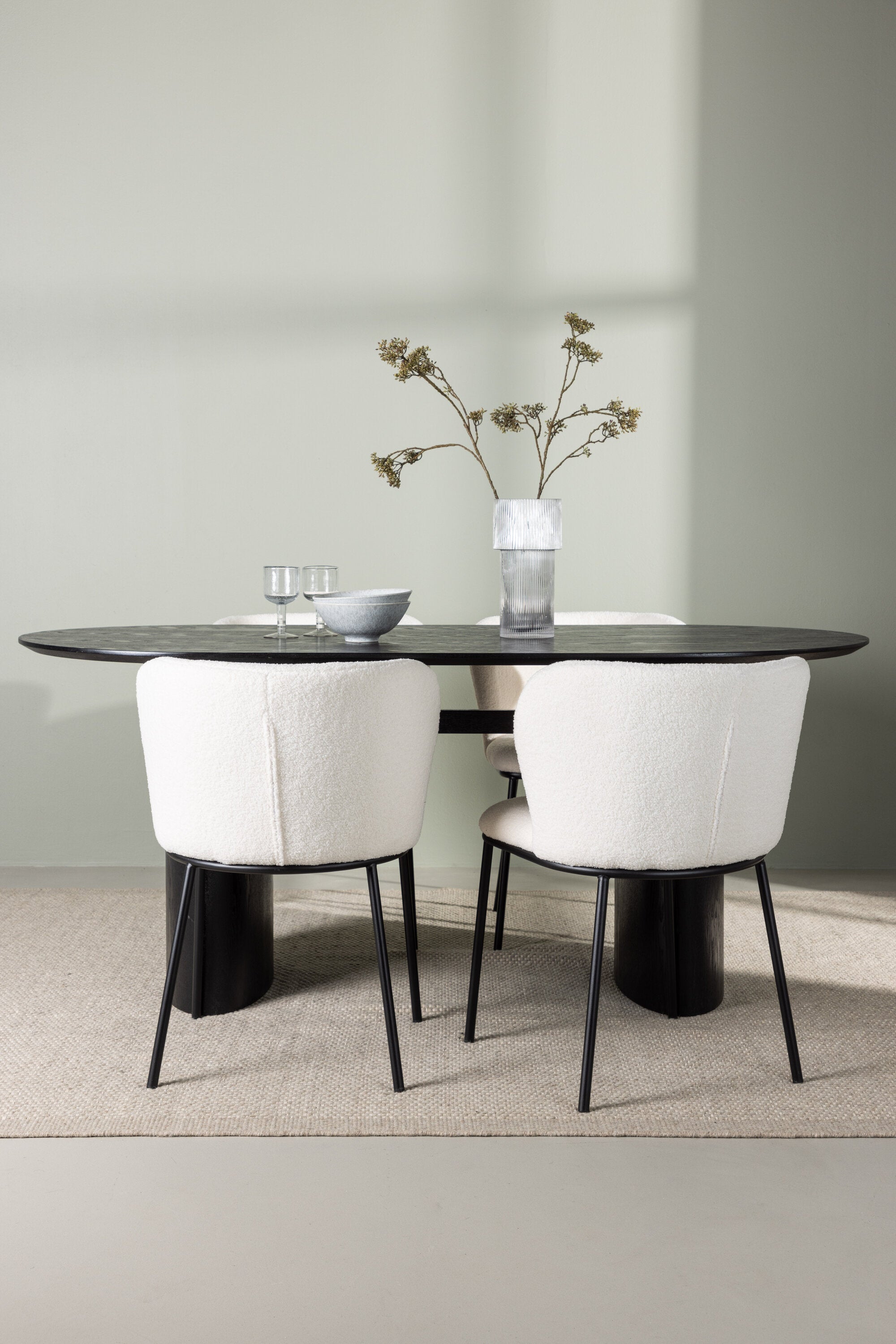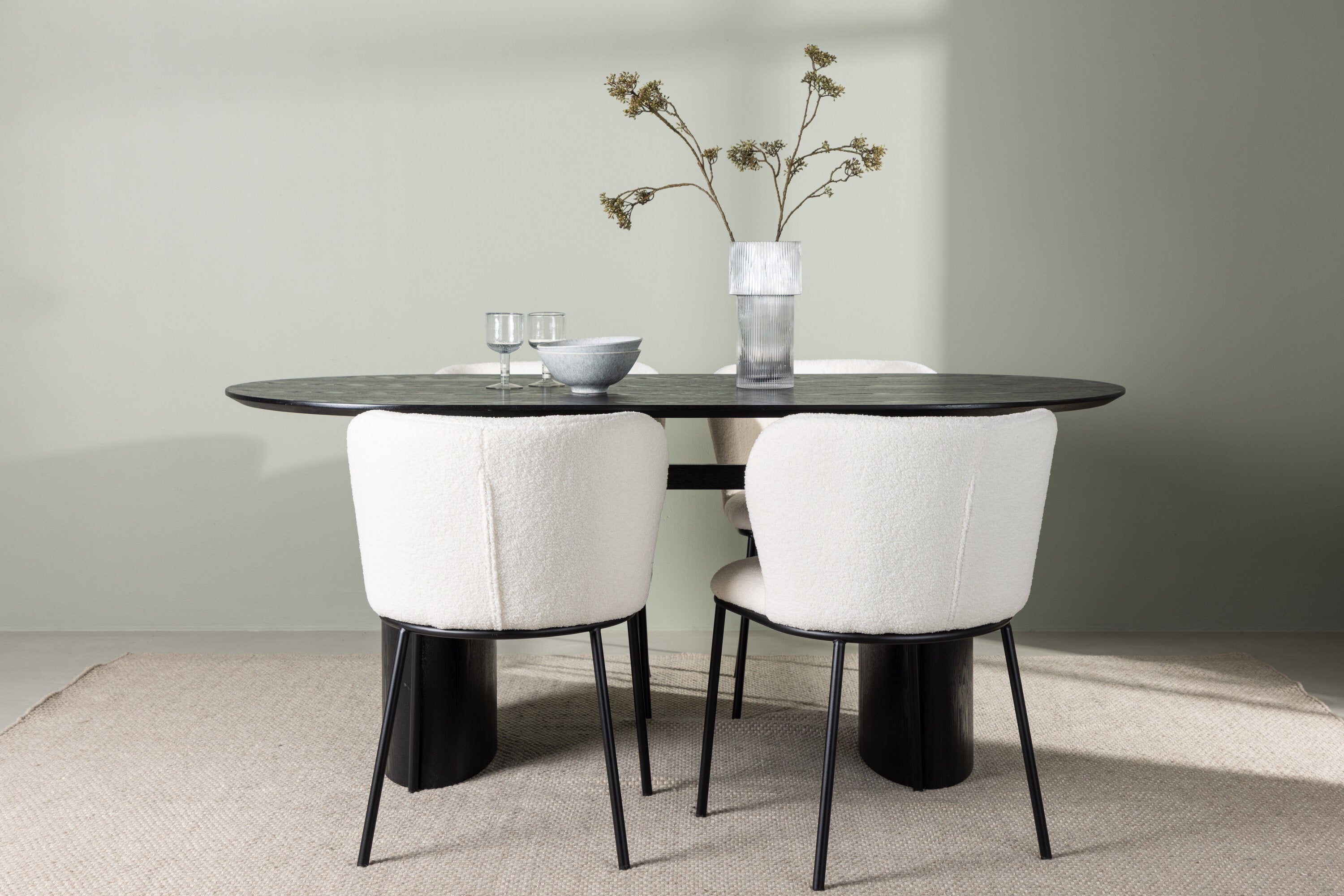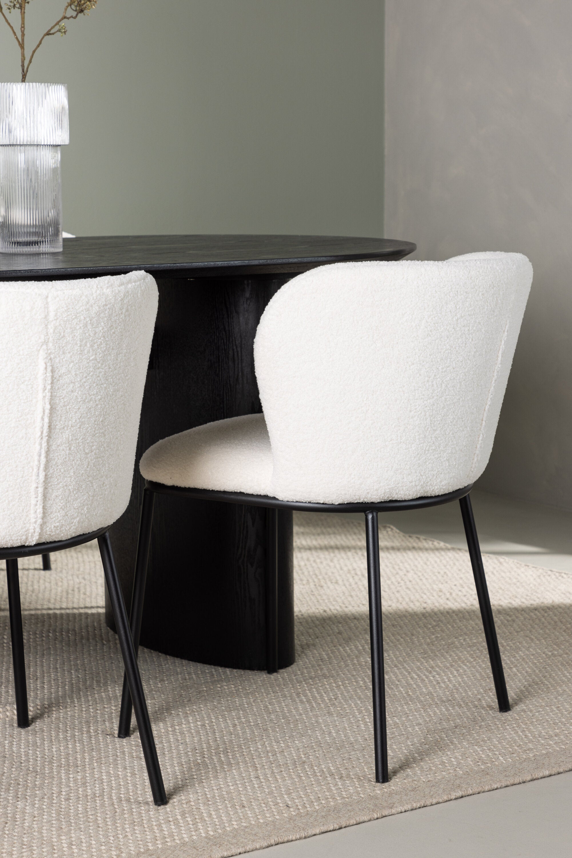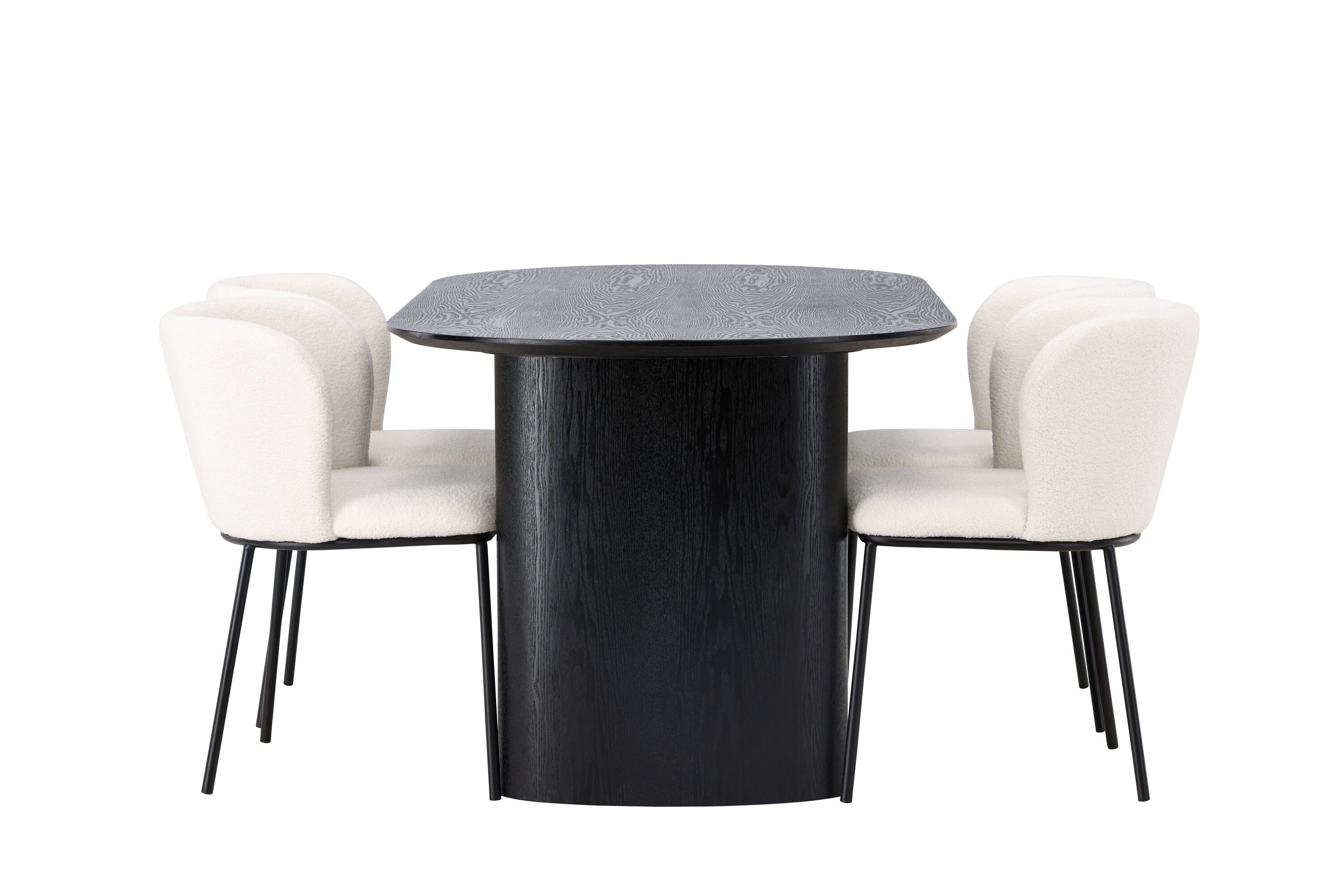 Jídelní stůl Isolde 180*75 – černá / černá MDF + jídelní židle Edina – černá / bílá Boucle _4