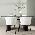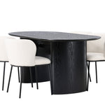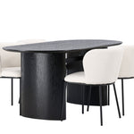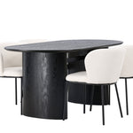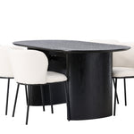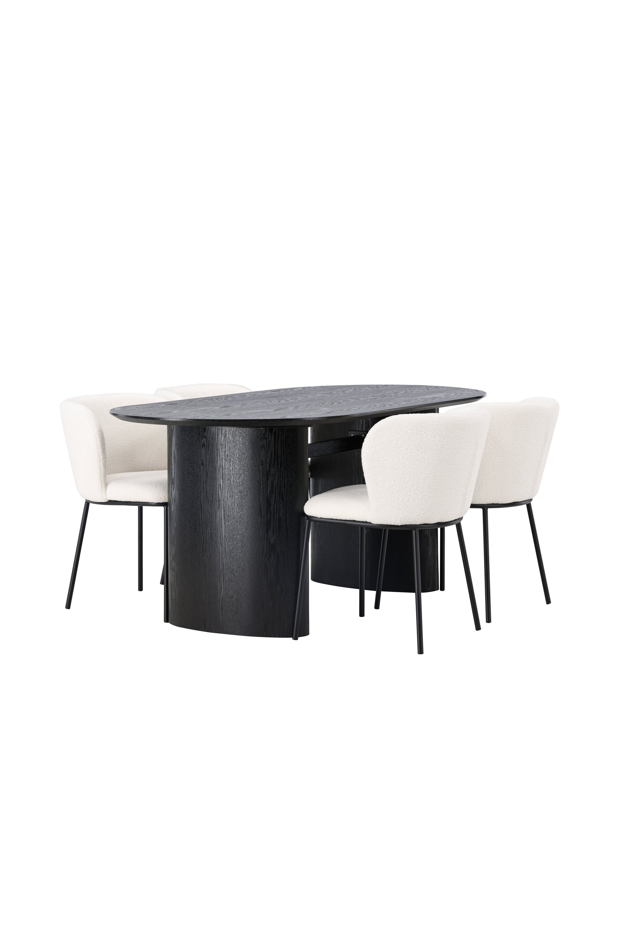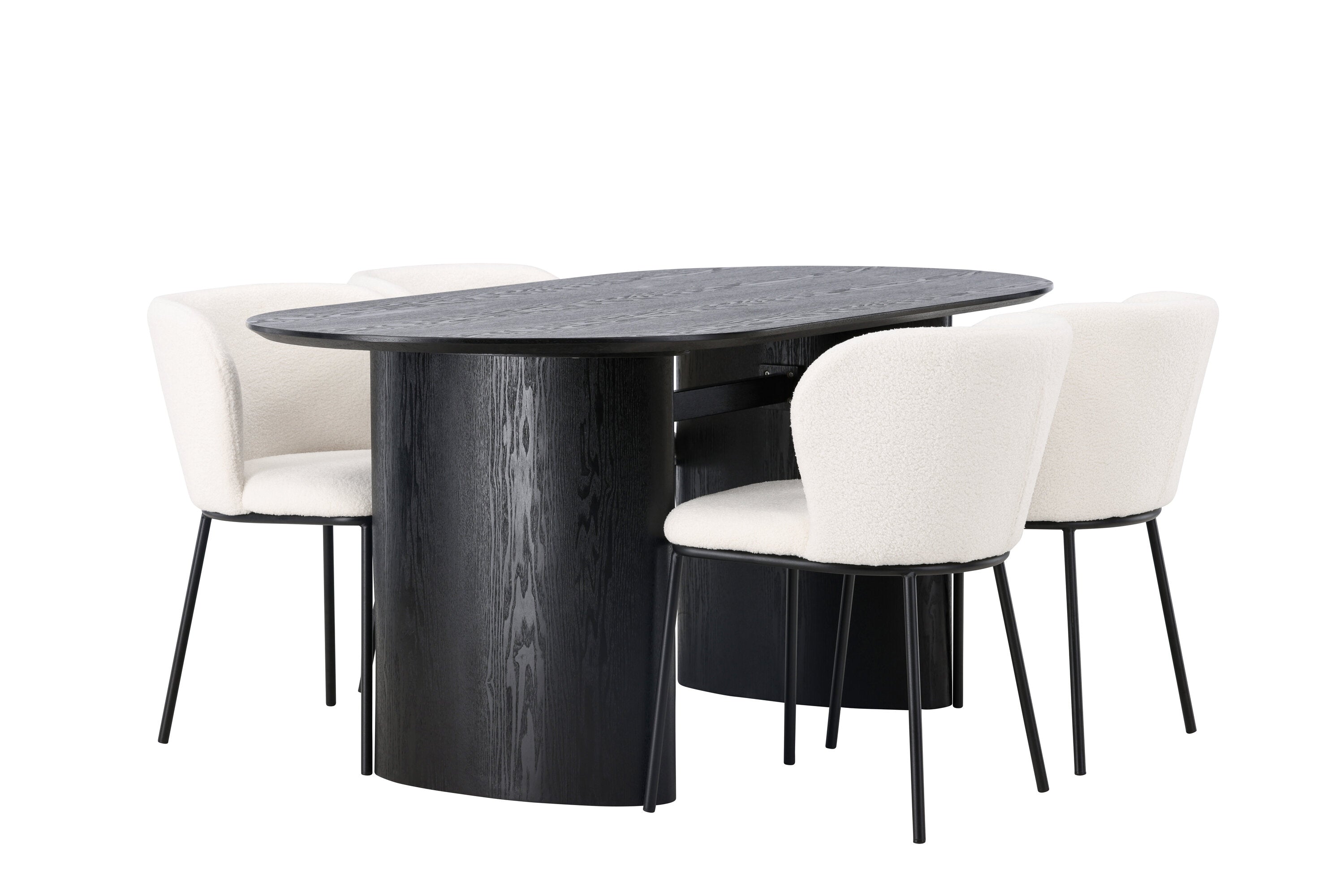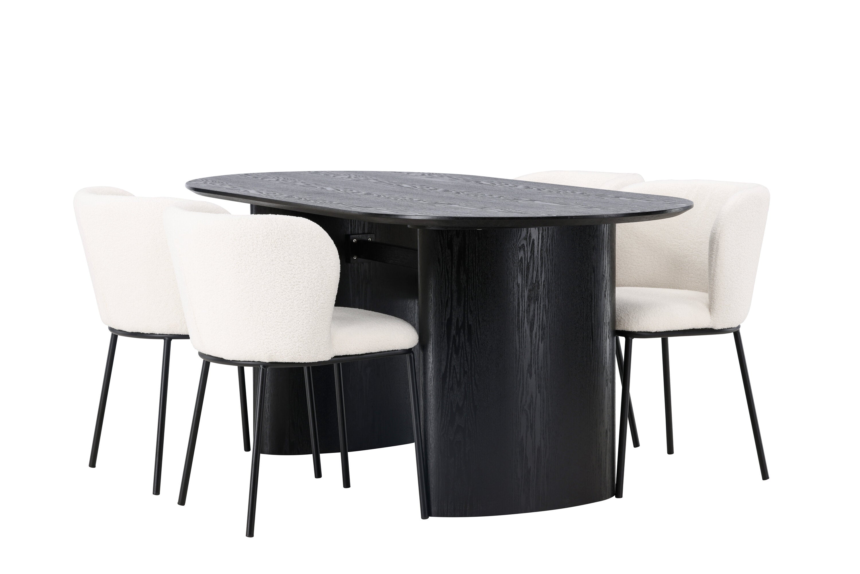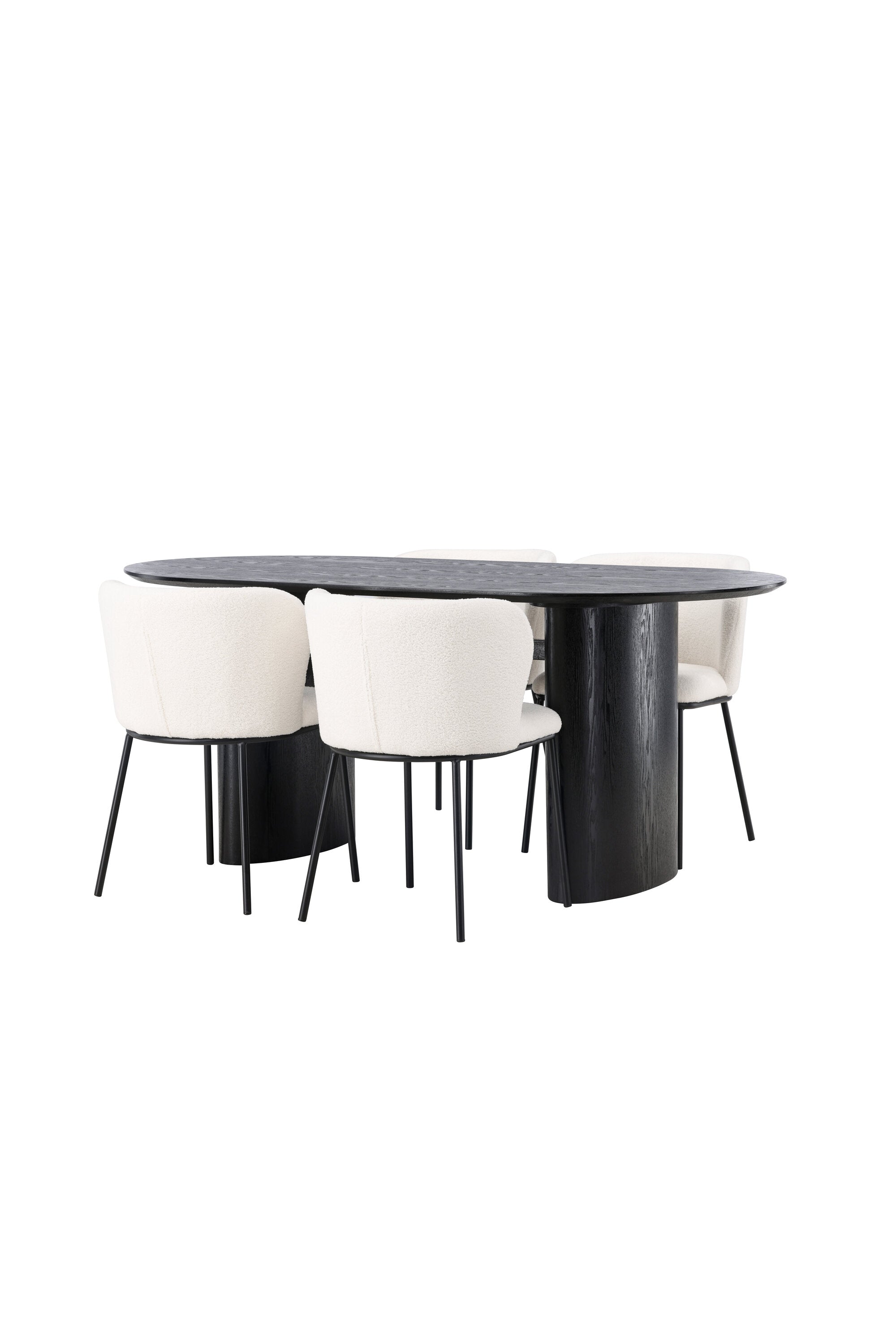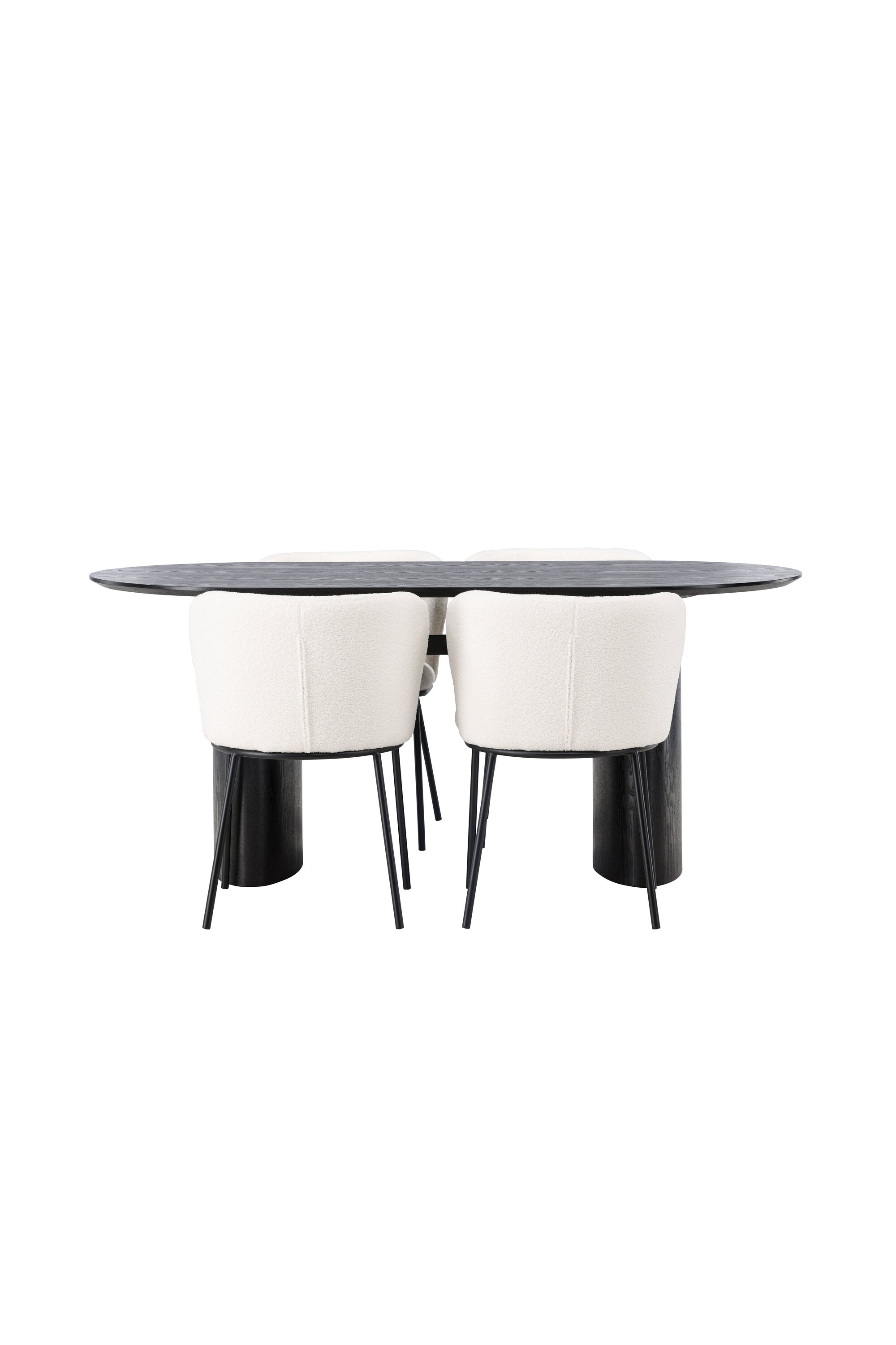 Fantastická kombinace moderních tvarů a měkkých materiálů! Oválný jídelní stůl Isolde v černé barvě má ​​moderní design s oválnou deskou stolu z MDF a robustním rámem, který působí stabilním dojmem. Živý materiál dává poutače krásný pohyb. Zde v nádherné kombinaci s bílými jídelními židlemi ze série Edina. Židle má pružný, celočalouněný sedák v bílé buklé tkanině a minimalistické nohy z černého kovu. Stylový design a pohodlný sedák vám dávají pohodlnou jídelní židli, která obstojí ve zkoušce času. Rozměry stolu: 180x75cm.