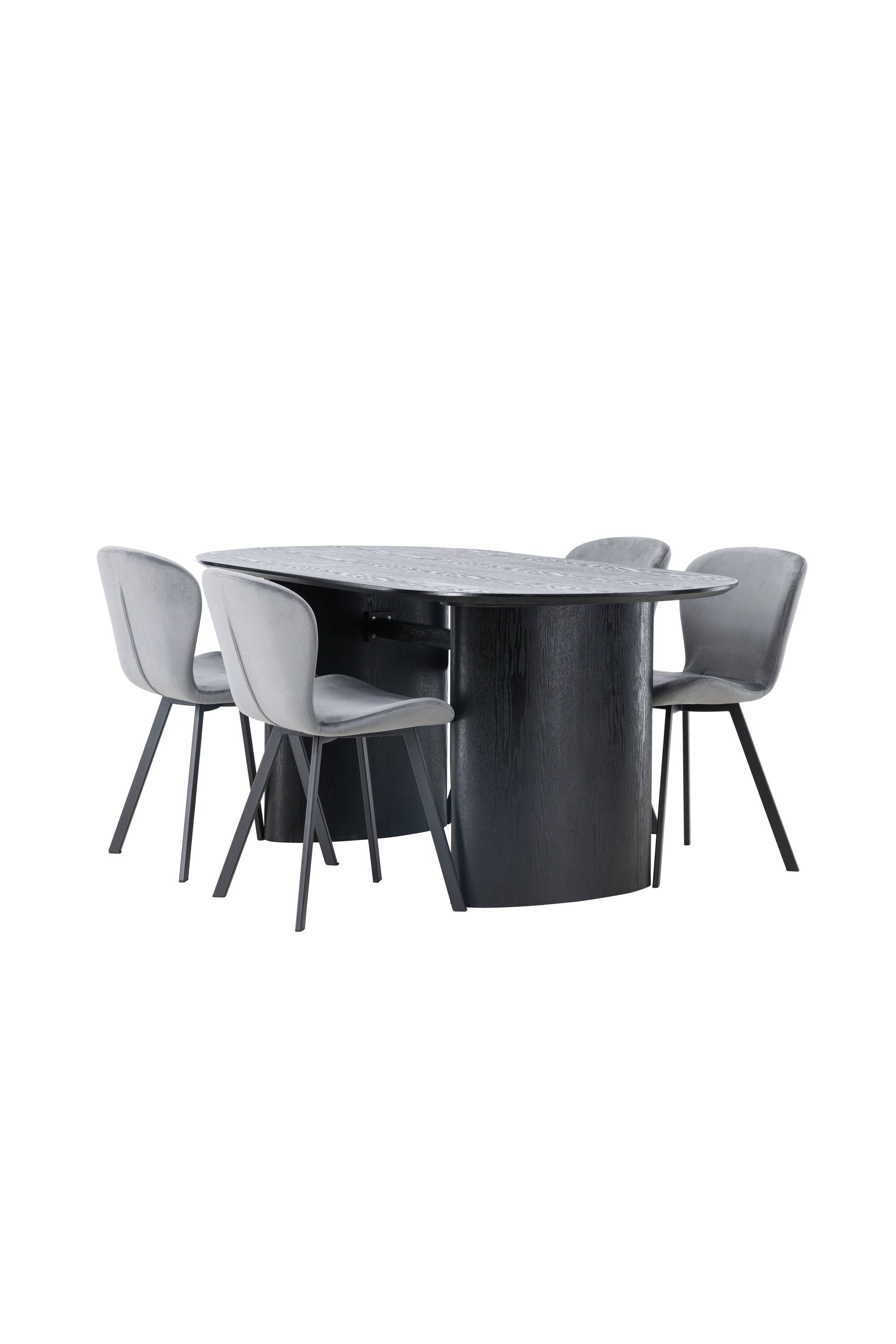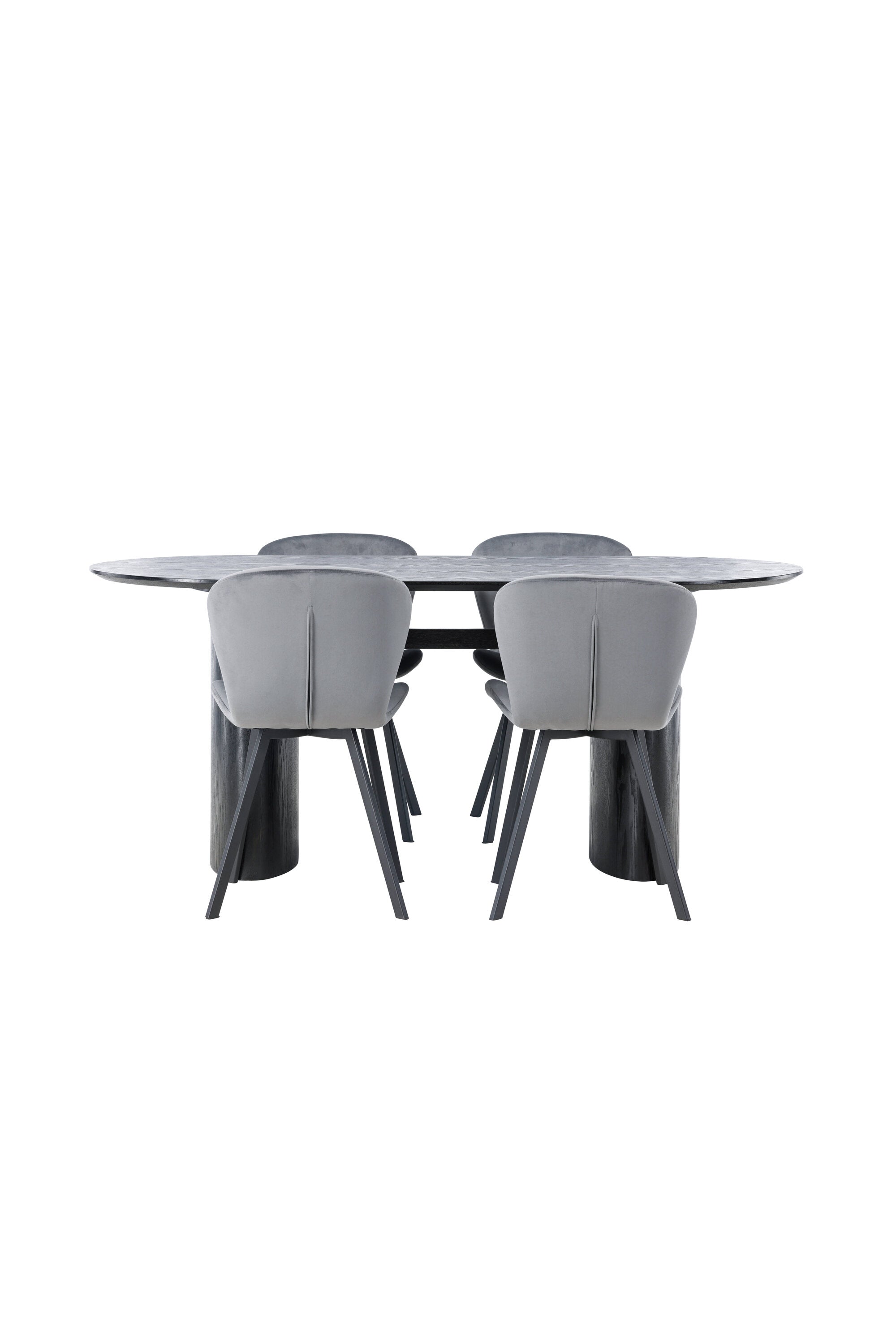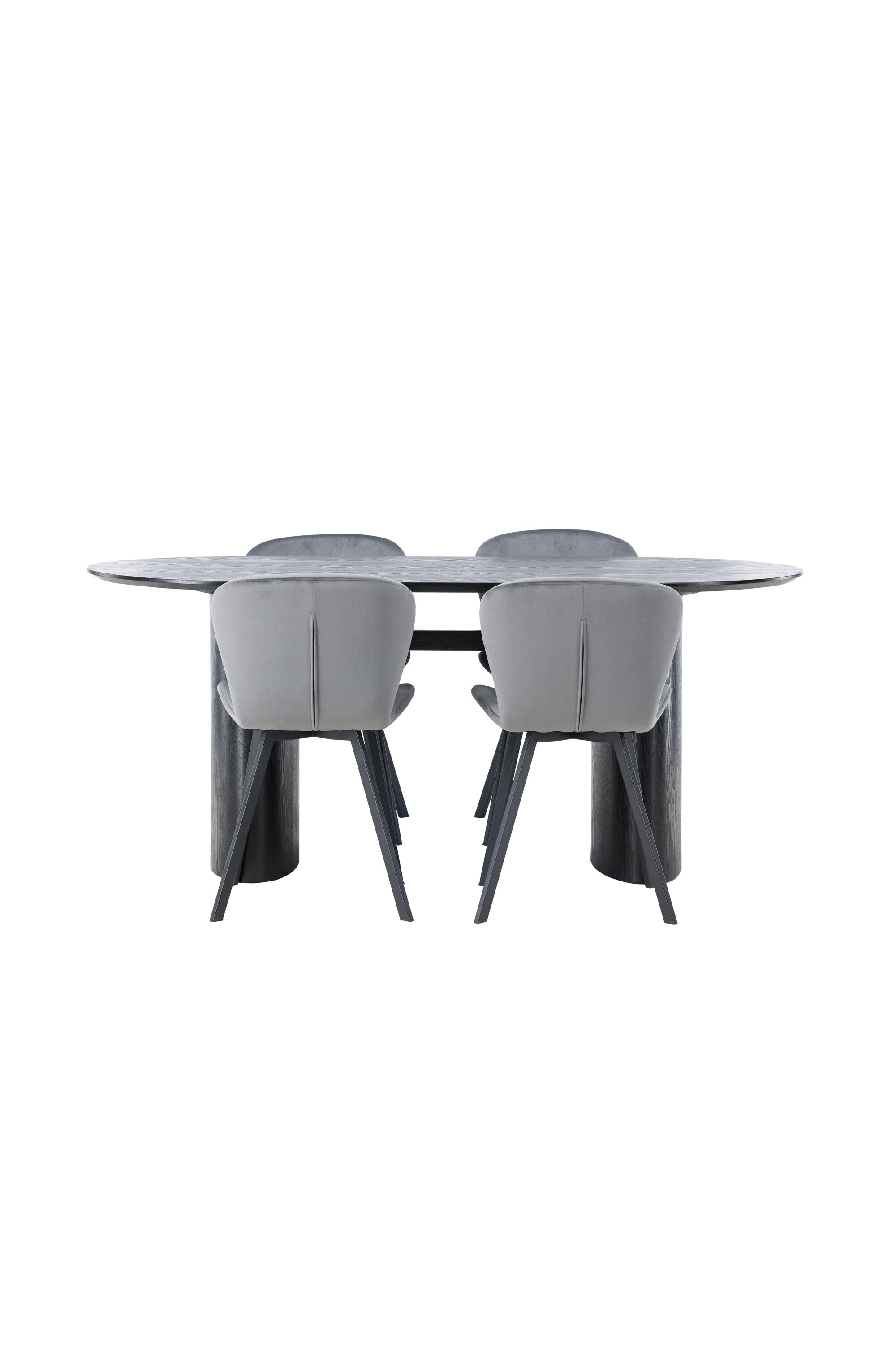 Jídelní stůl Isolde 180*75 - Černá / Černá MDF + Jídelní židle Lilja - Černá / Tmavě šedá látka _4