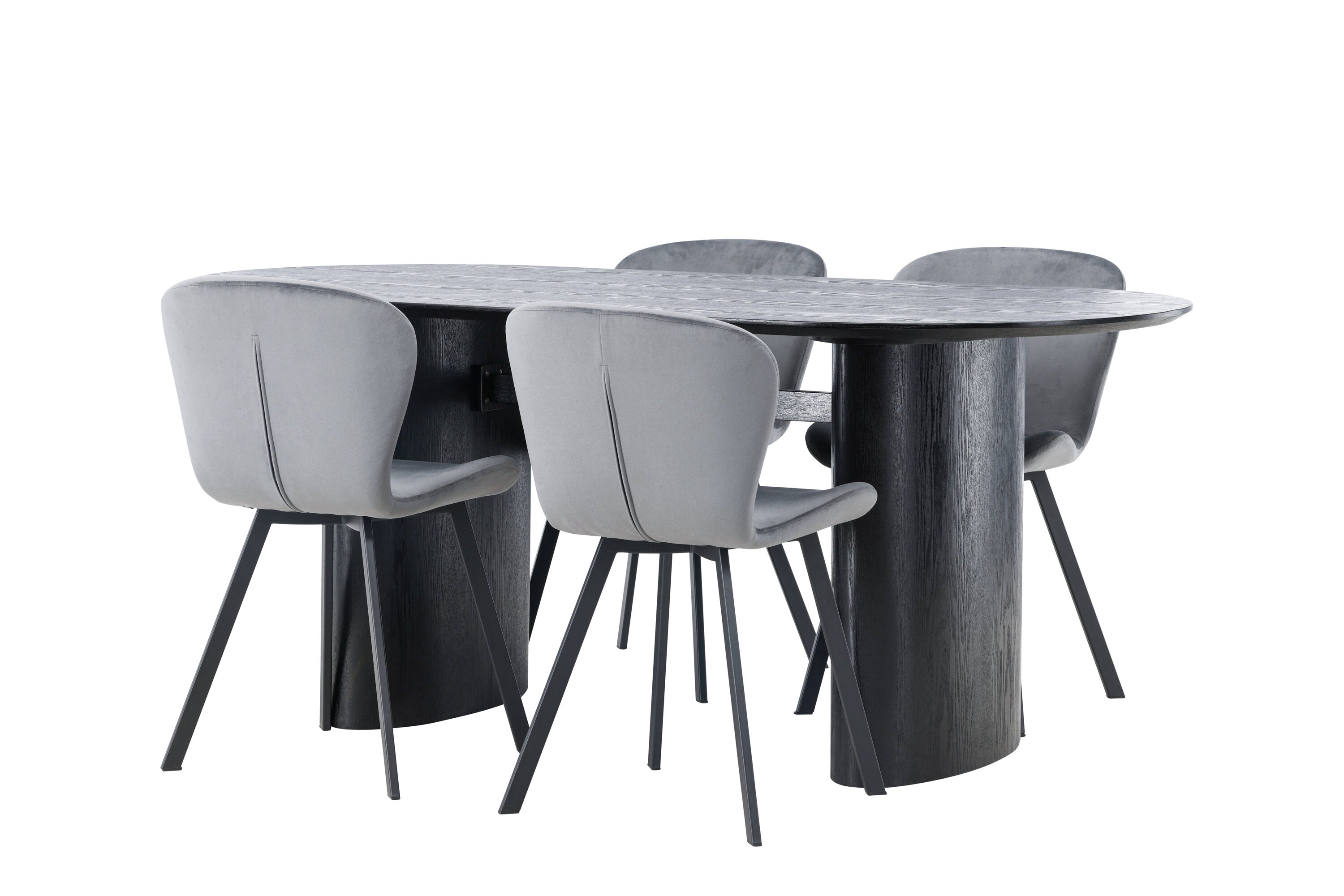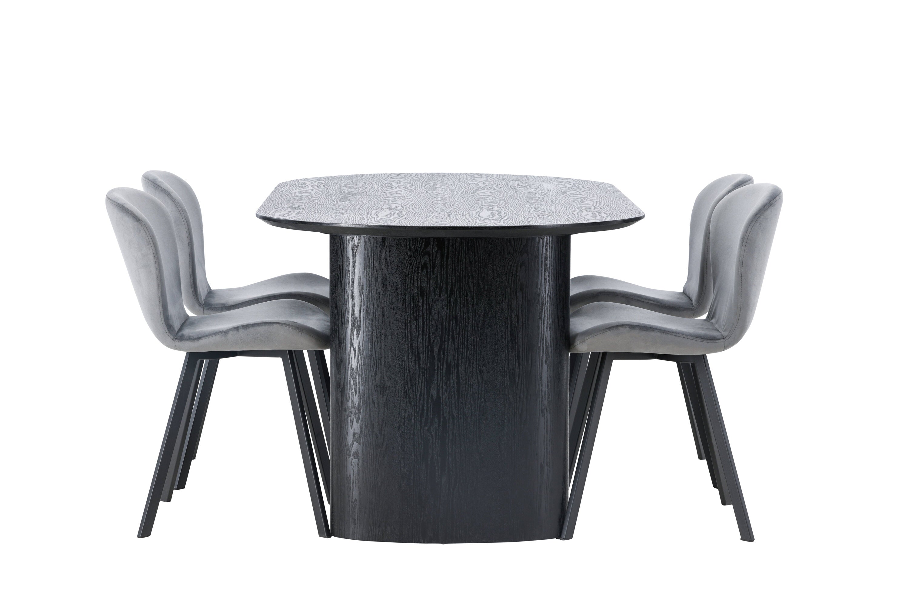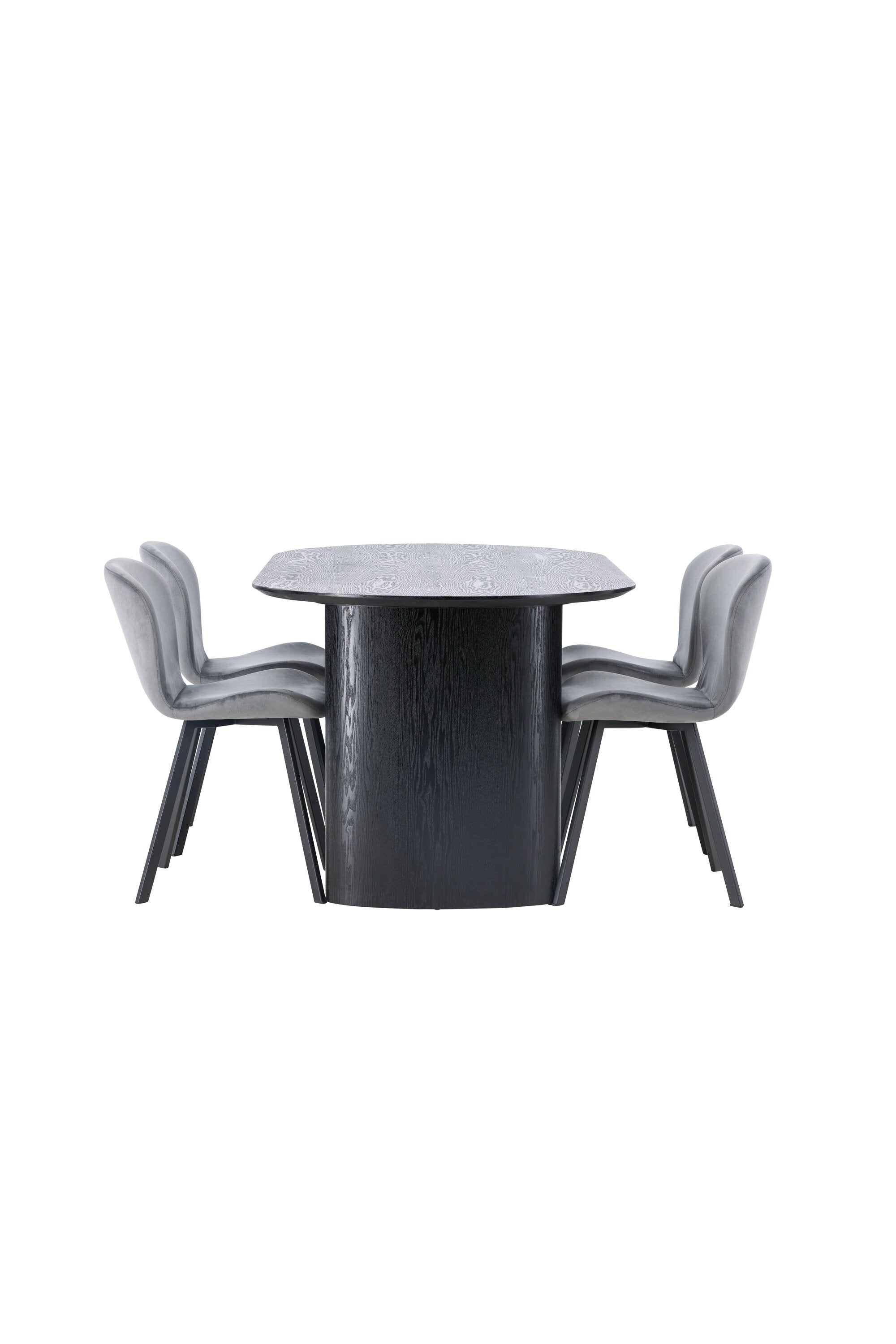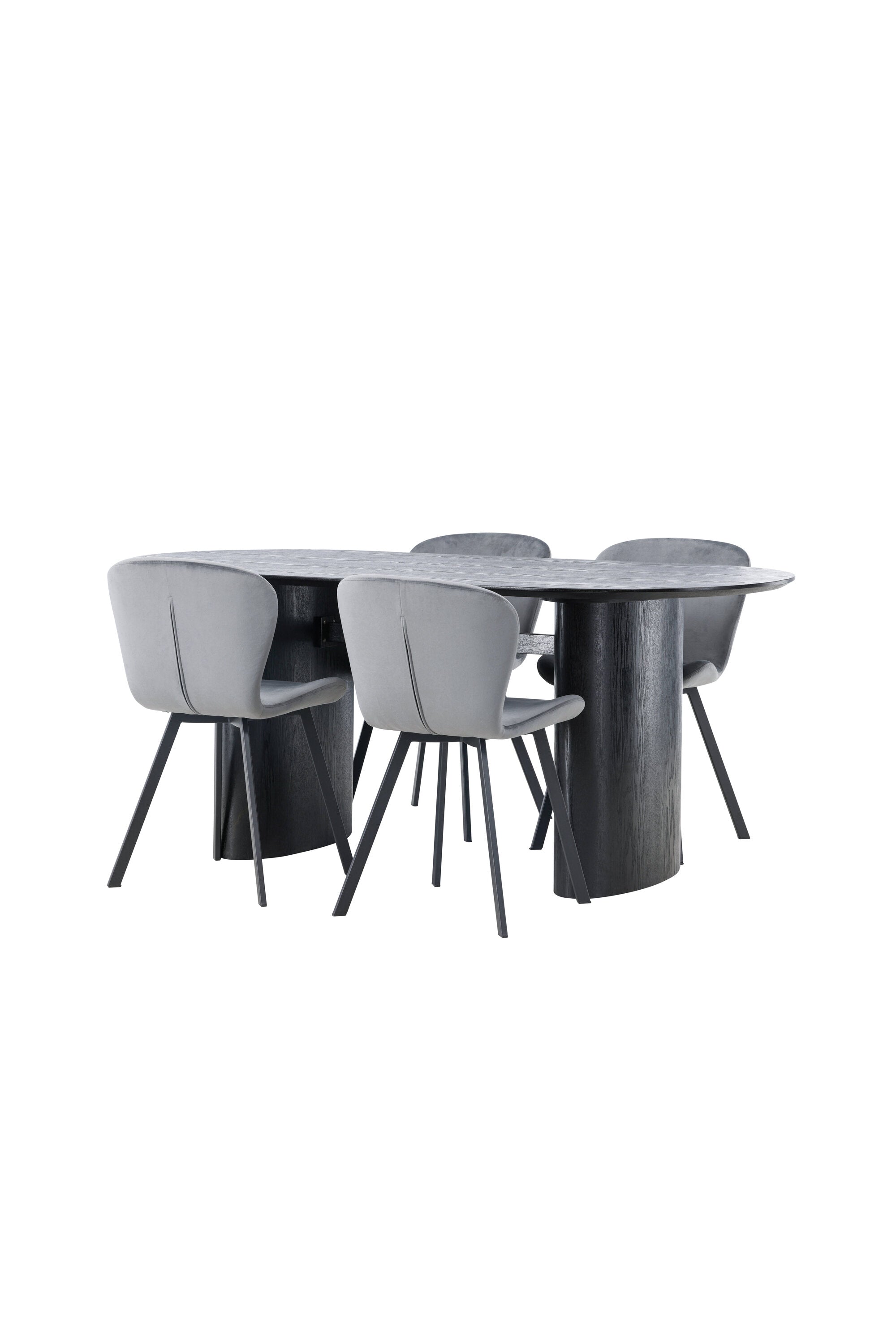 Jídelní stůl Isolde 180*75 - Černá / Černá MDF + Jídelní židle Lilja - Černá / Tmavě šedá látka _4