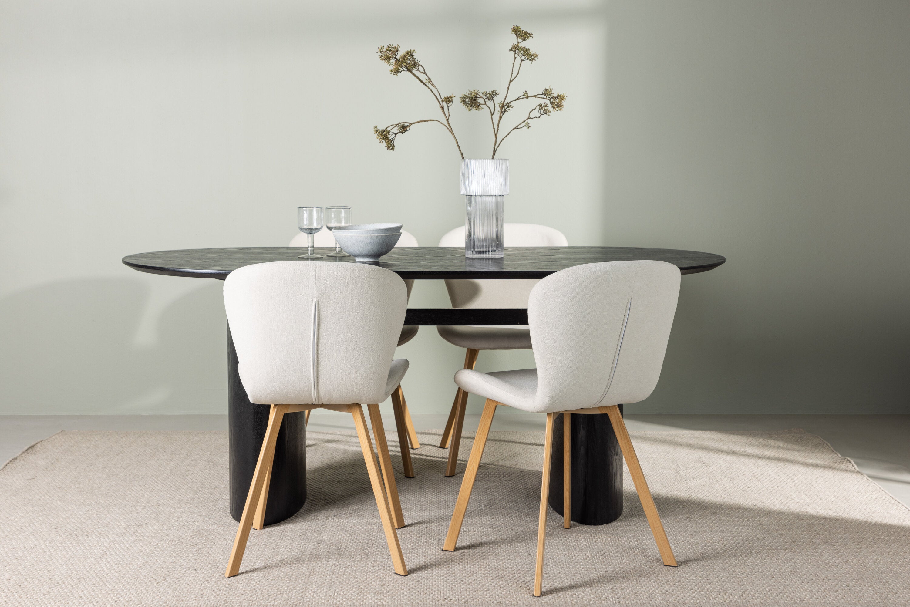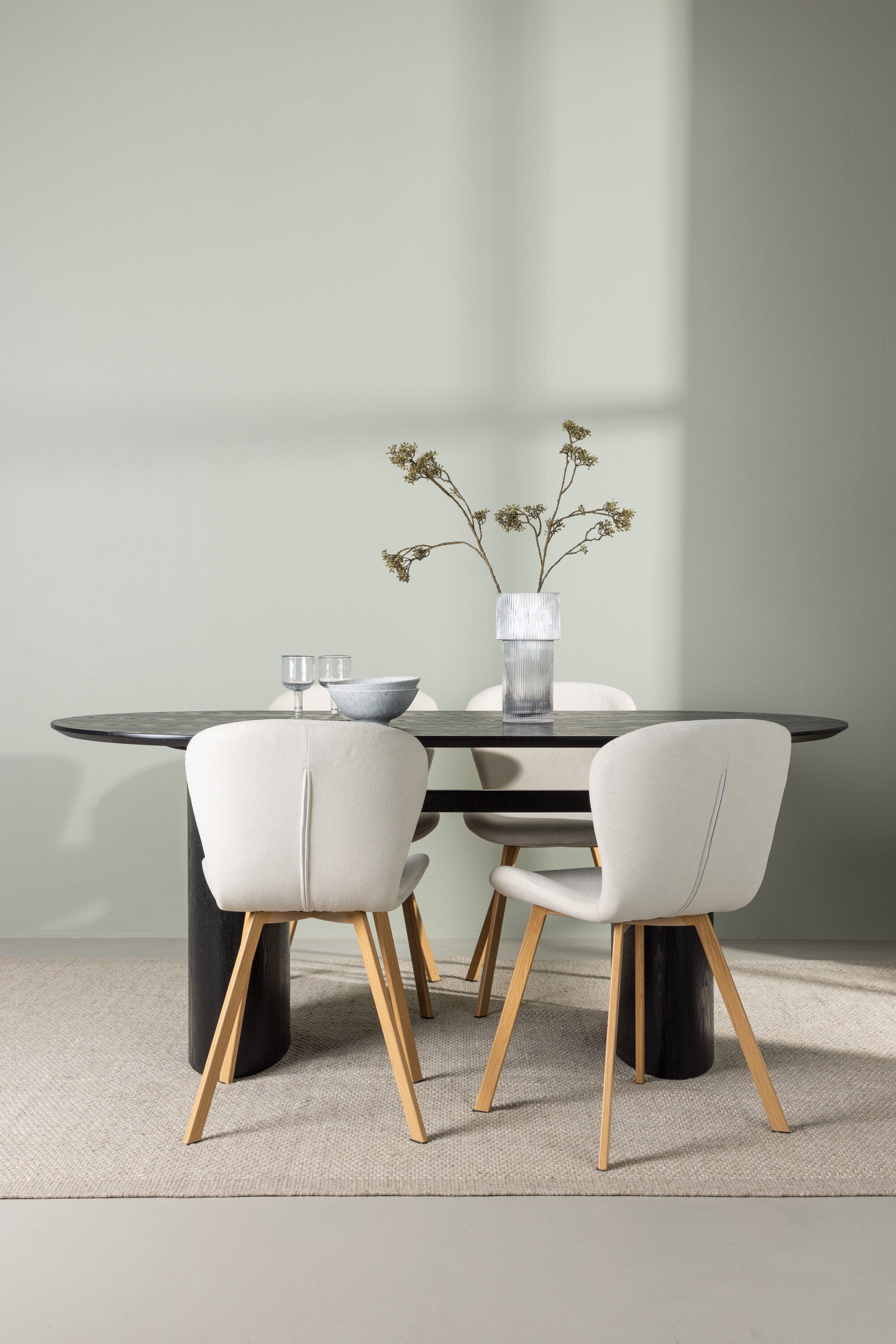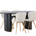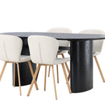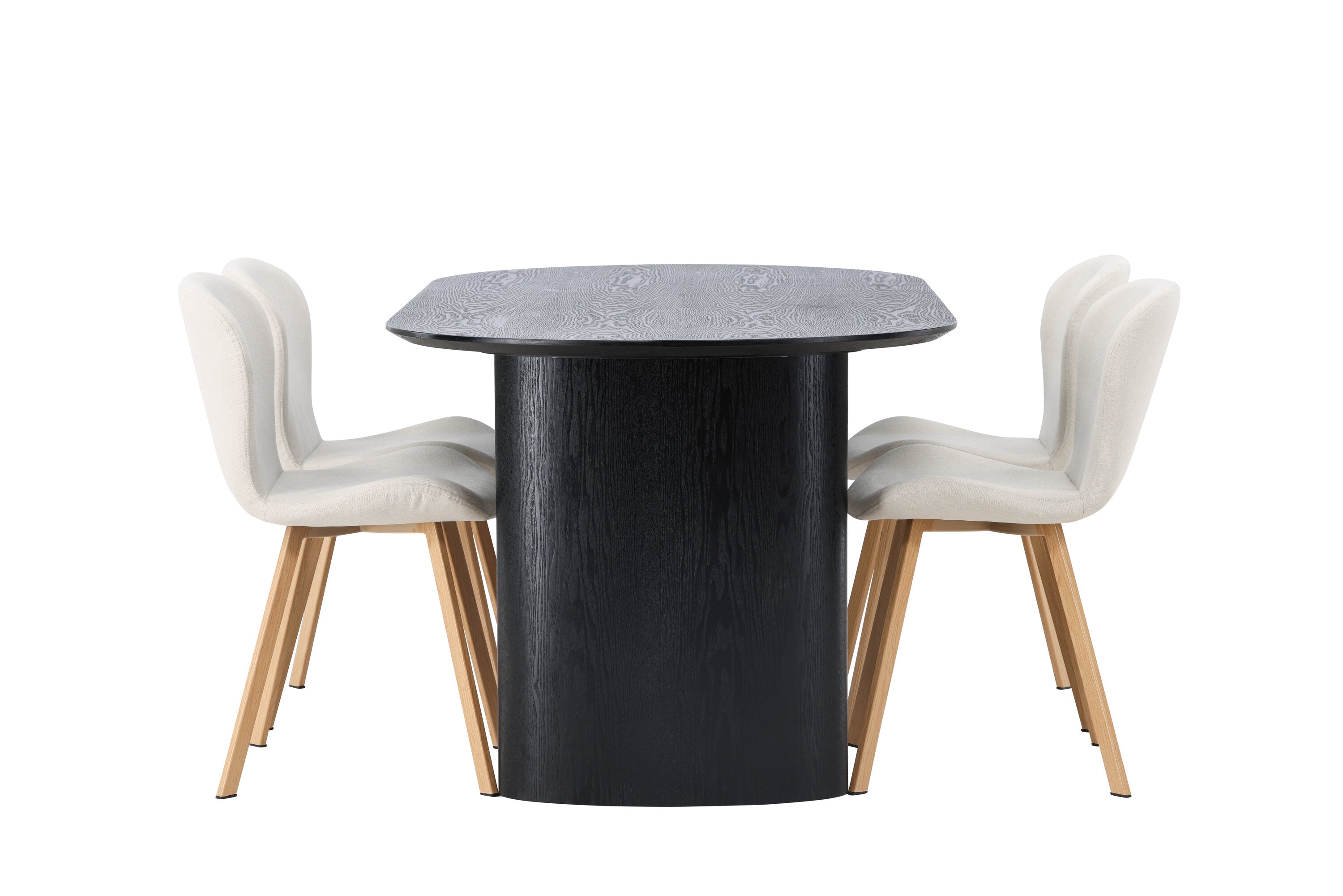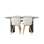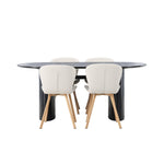 Jídelní stůl Isolde 180*75 – Černá / Černá MDF + Jídelní židle Lilja – Oaklook / Béžová látka _4