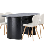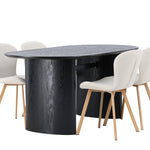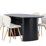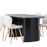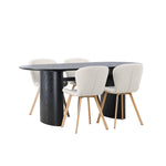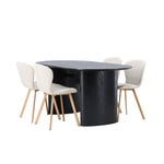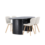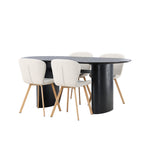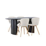 Vytvořte si v obývacím pokoji příjemnou atmosféru! Oválný jídelní stůl Isolde v černé barvě má ​​moderní design s oválnou deskou stolu z MDF a robustním rámem, který působí stabilním dojmem. Živý materiál dává vkusný pohyb poutače. Zde v nádherné kombinaci s béžovými jídelními židlemi ze série Lilja. Židle má poddajný kulatý design se sedákem z béžové polyesterové tkaniny a mírně rozšířenými nohami židle v černém kovu. Nedělejte kompromisy mezi stylem a pohodlím! Rozměry stolu: 180x75cm.