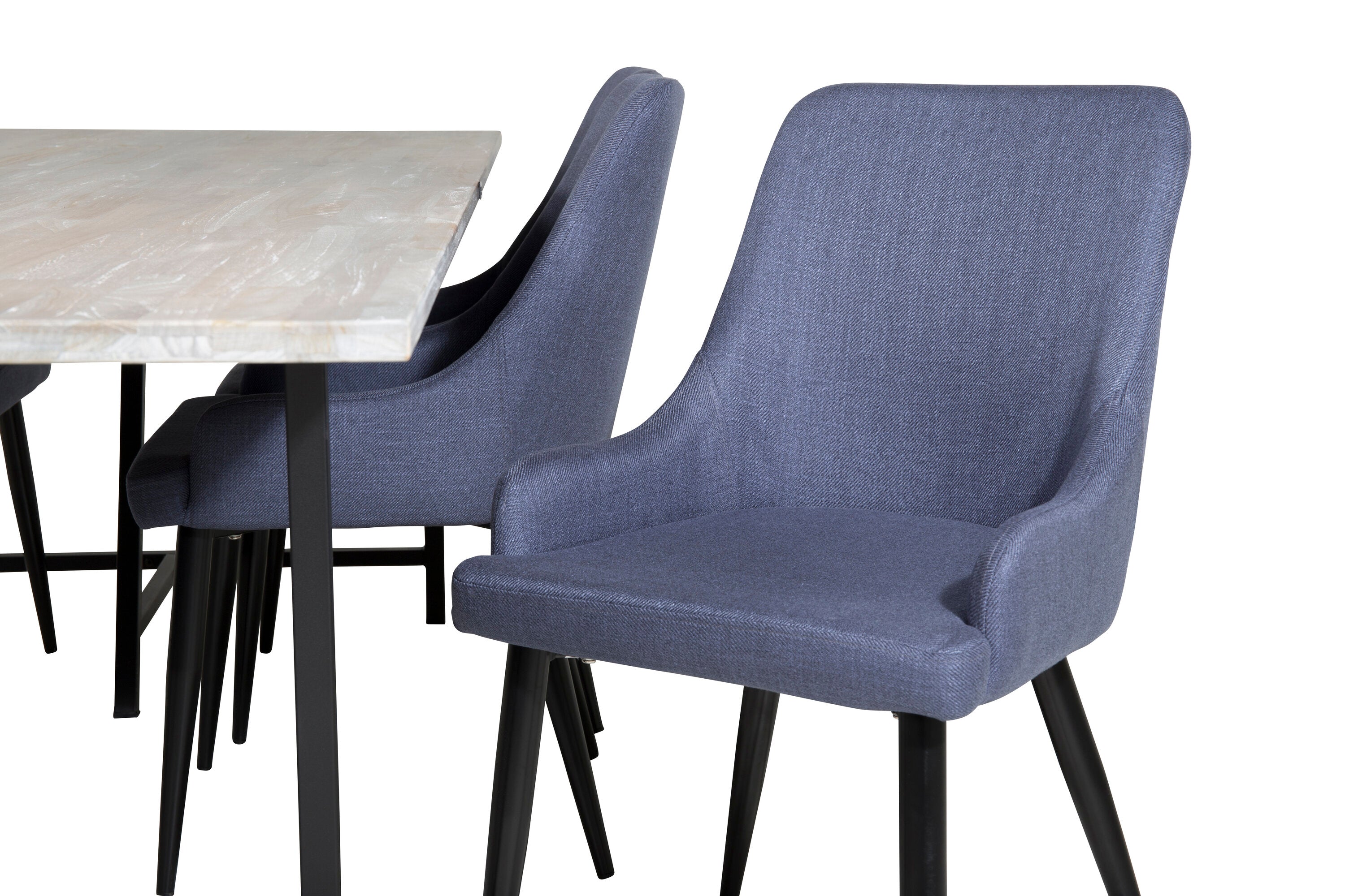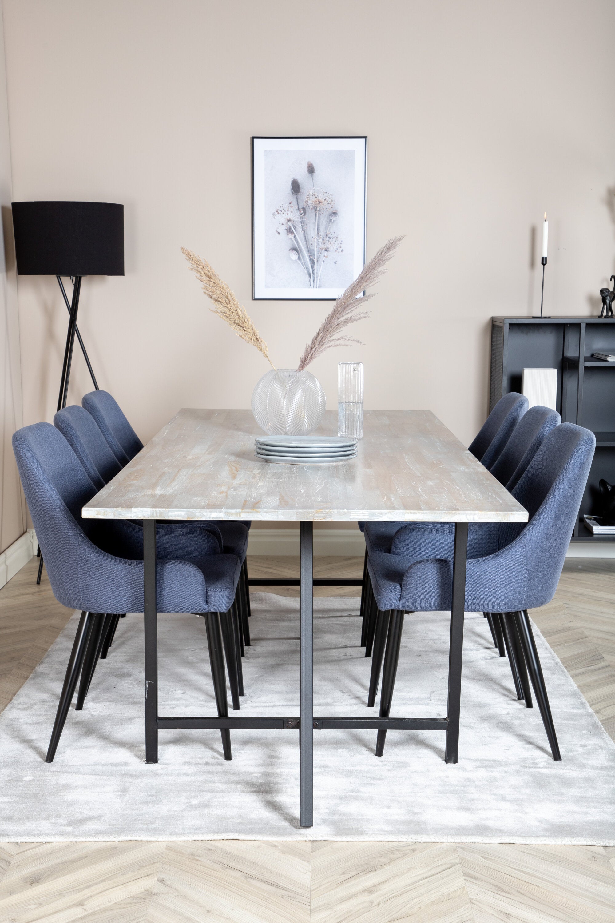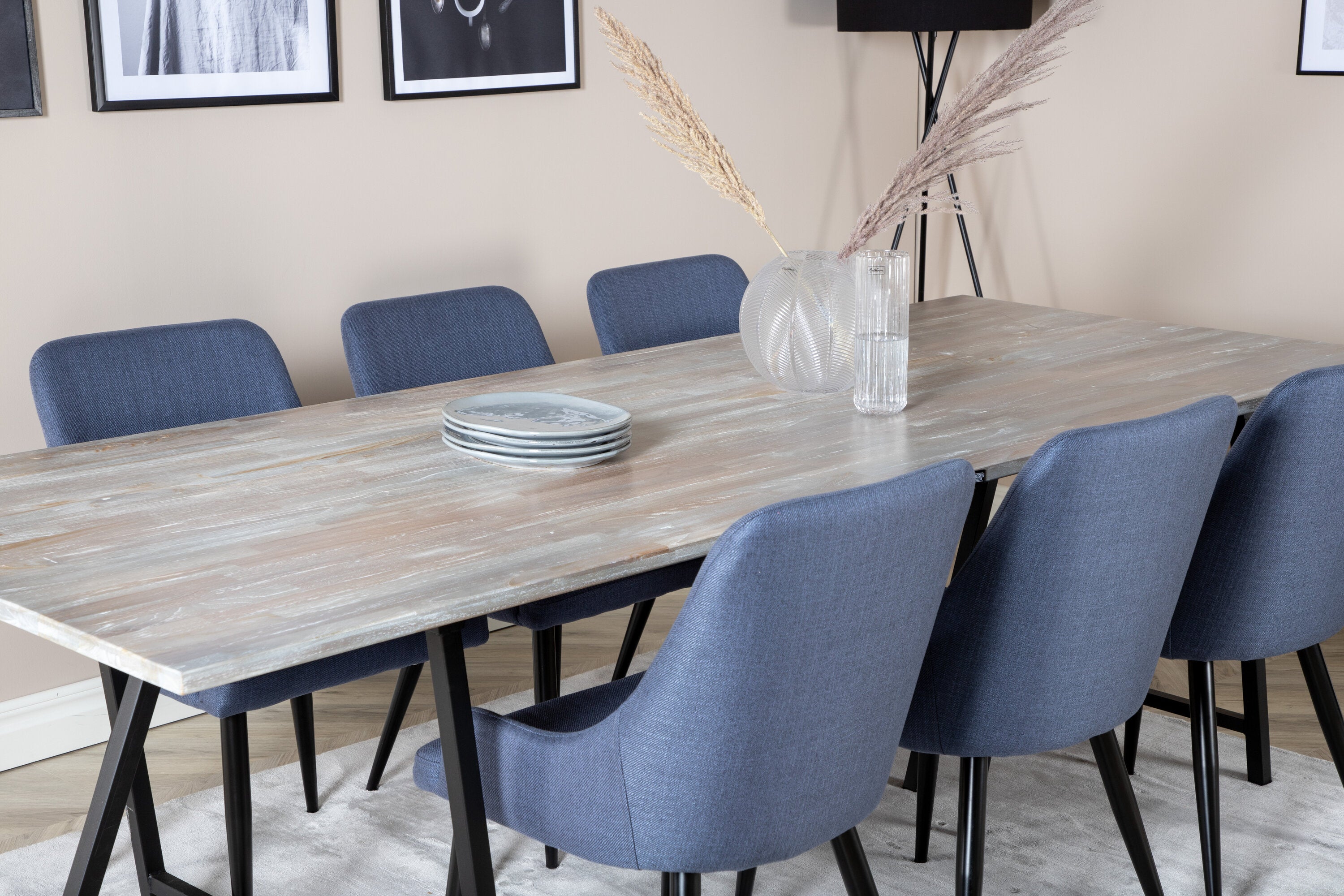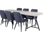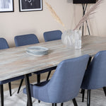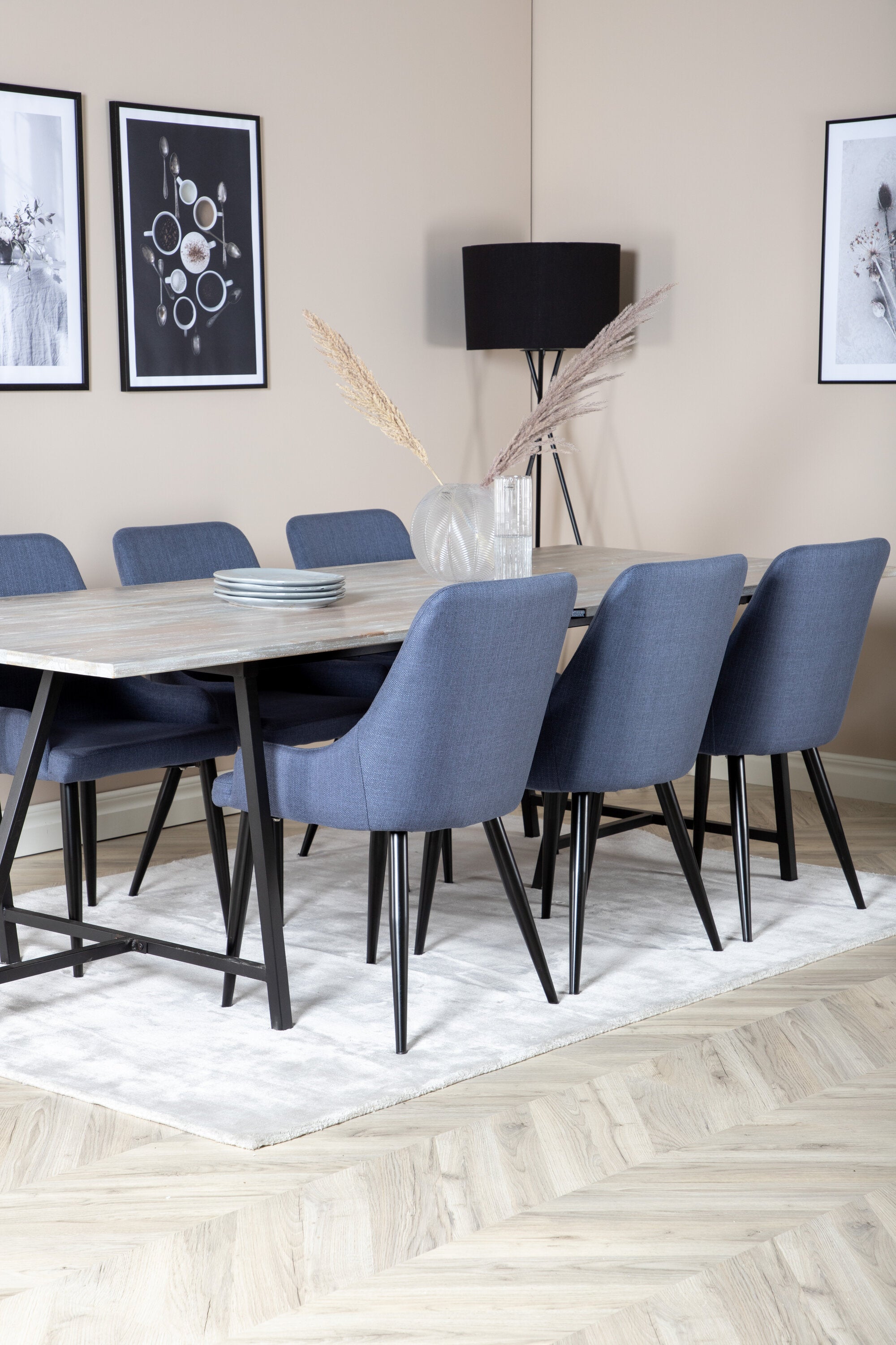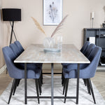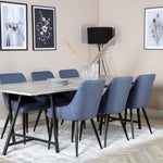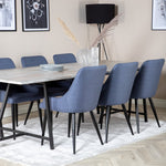 Jídelní stůl Jepara - 250*100*H76 - Šedá /Černá+Jídelní židle Plaza - Černé nohy - Modrá látka_6