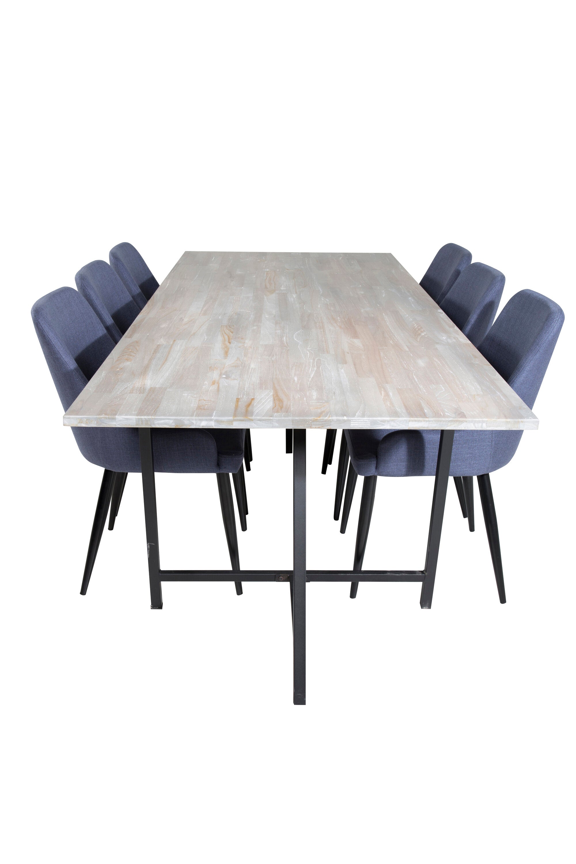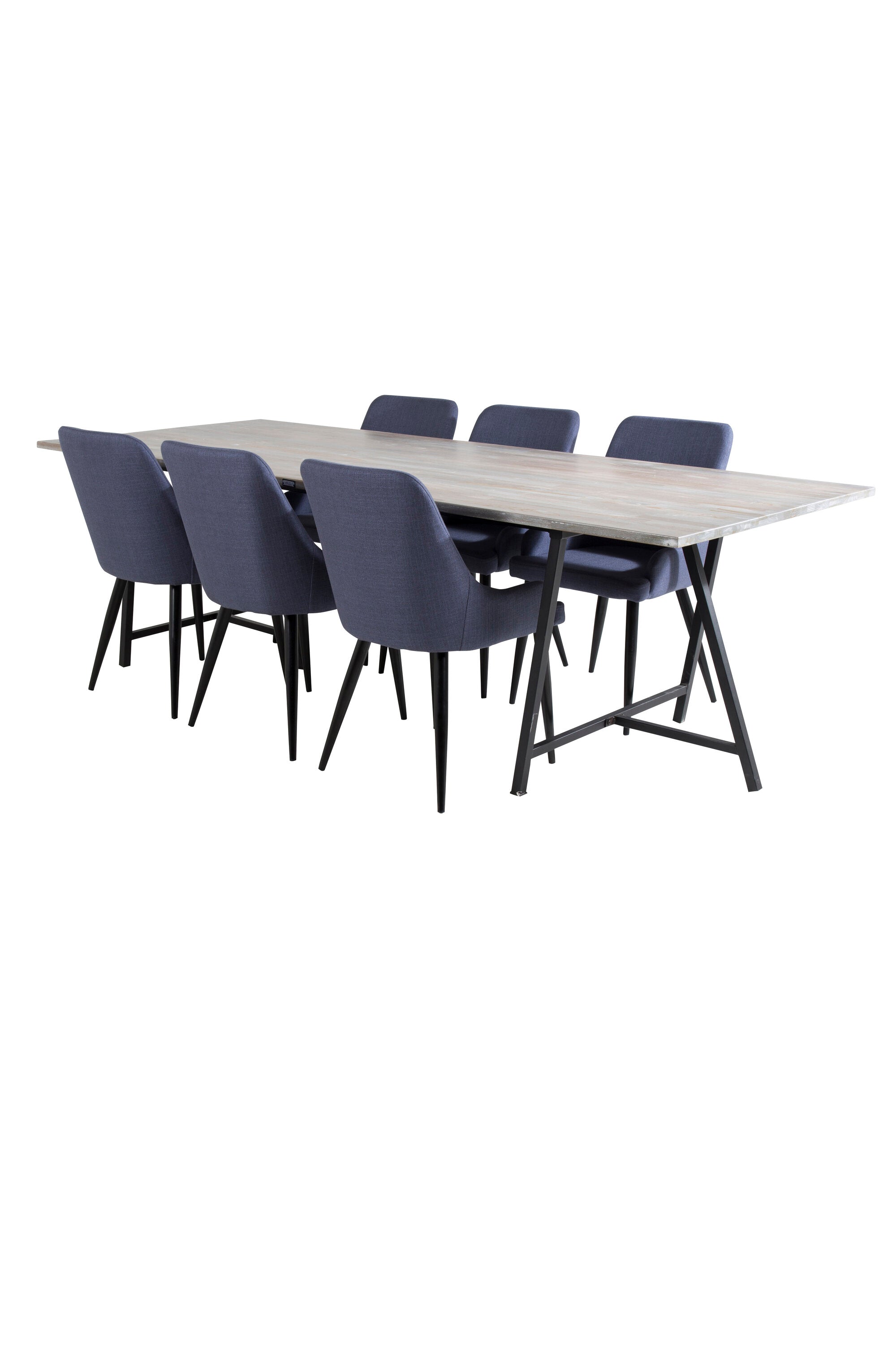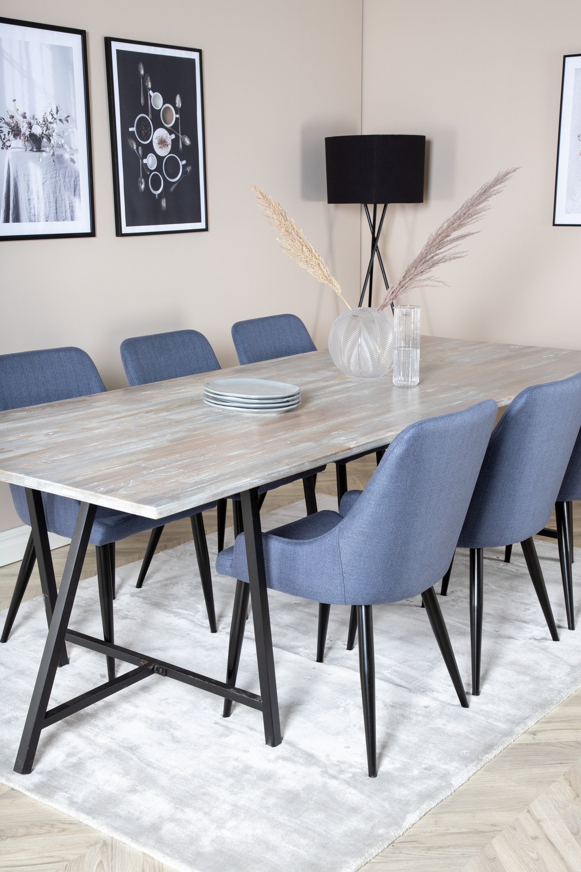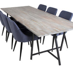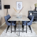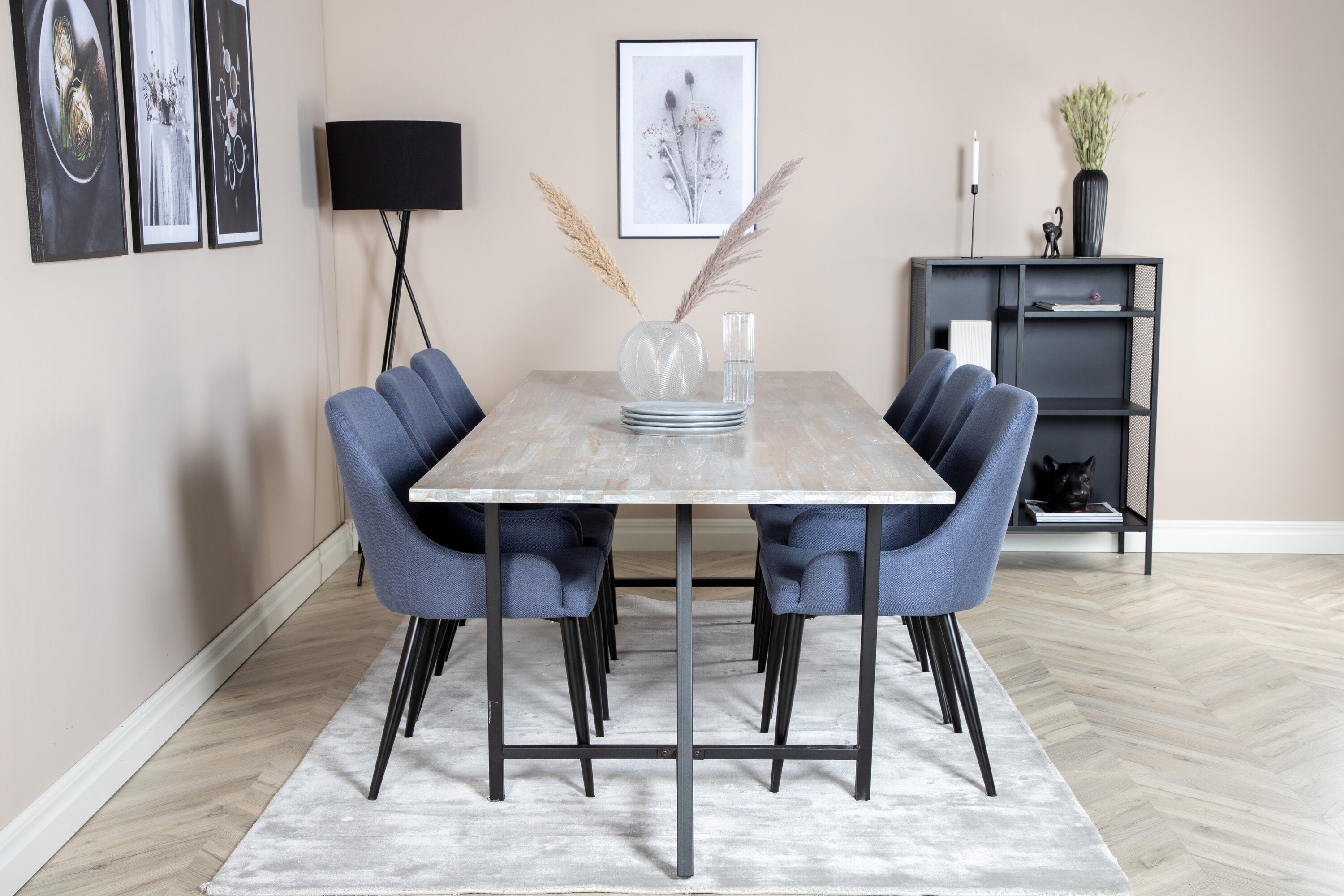 Jídelní stůl Jepara - 250*100*H76 - Šedá /Černá+Jídelní židle Plaza - Černé nohy - Modrá látka_6