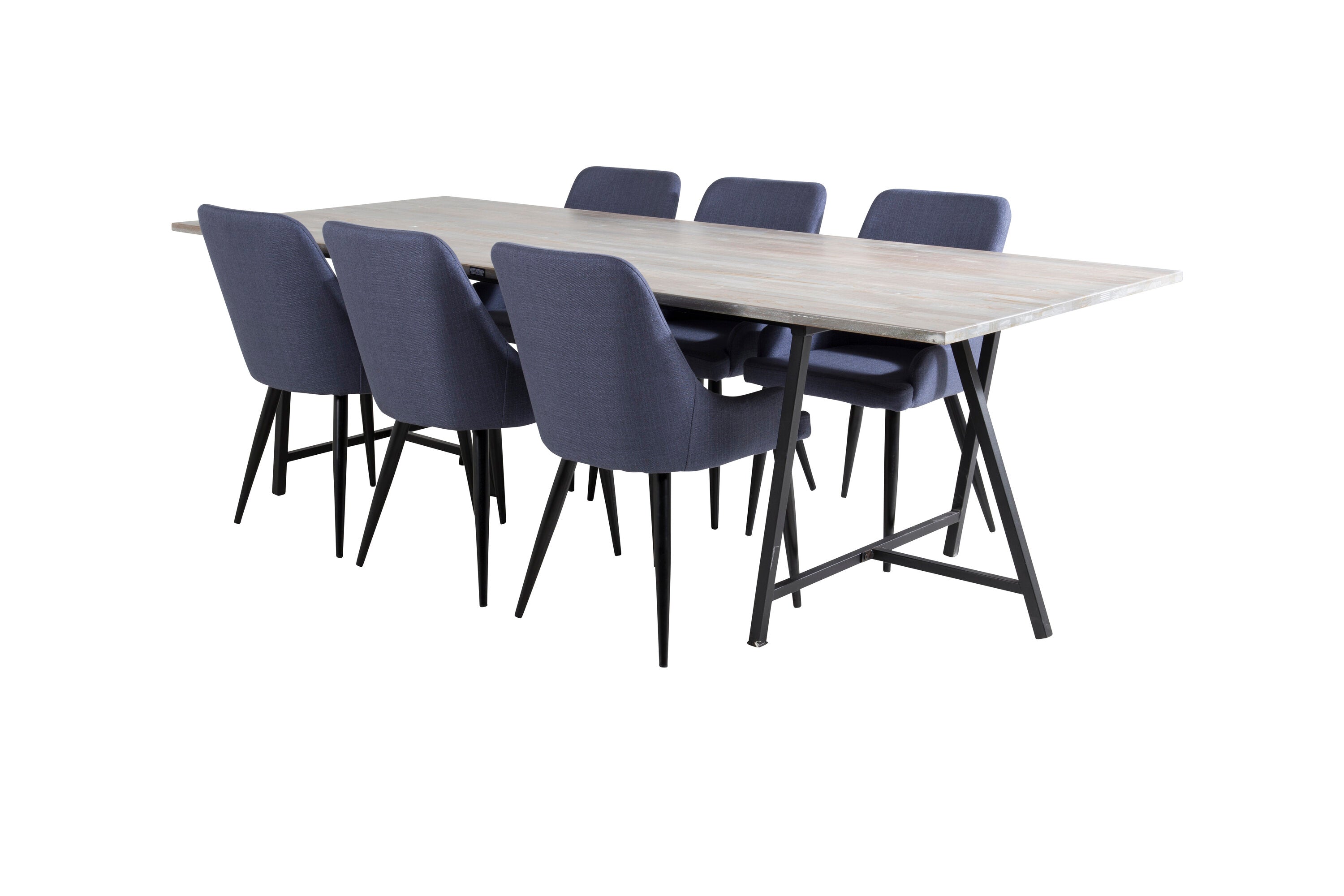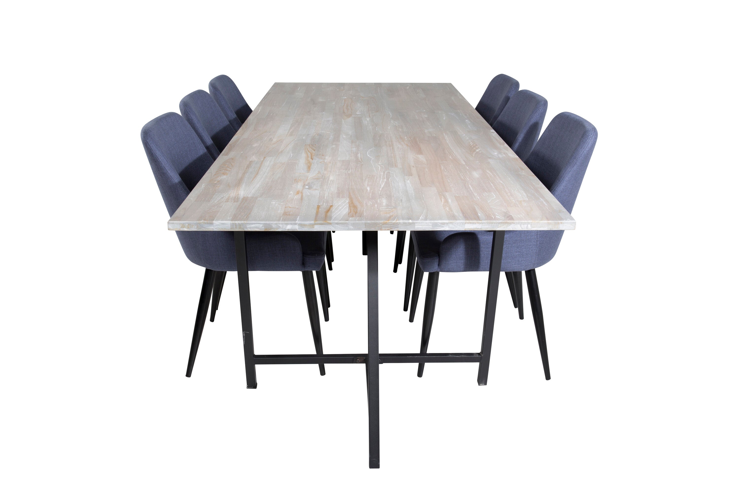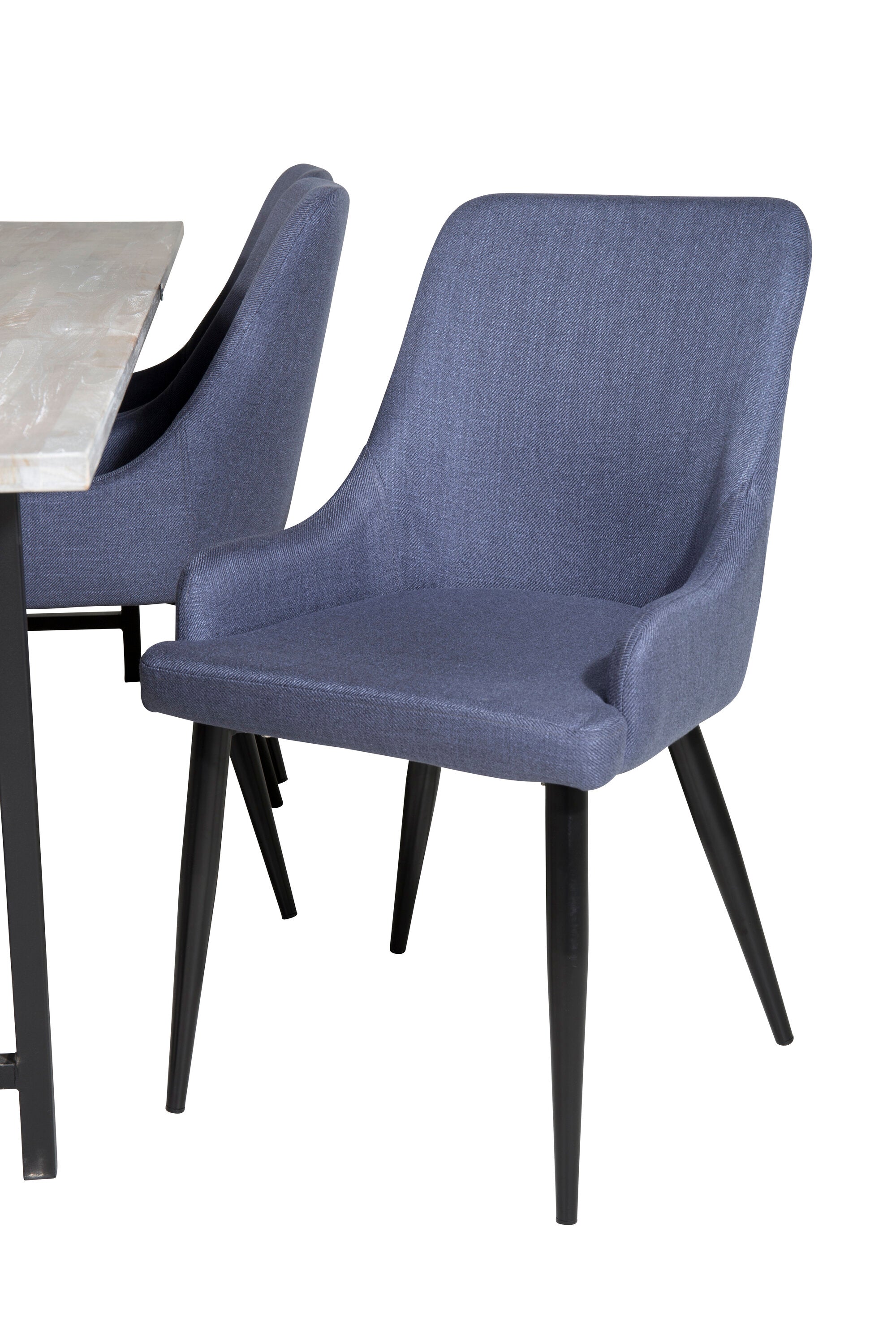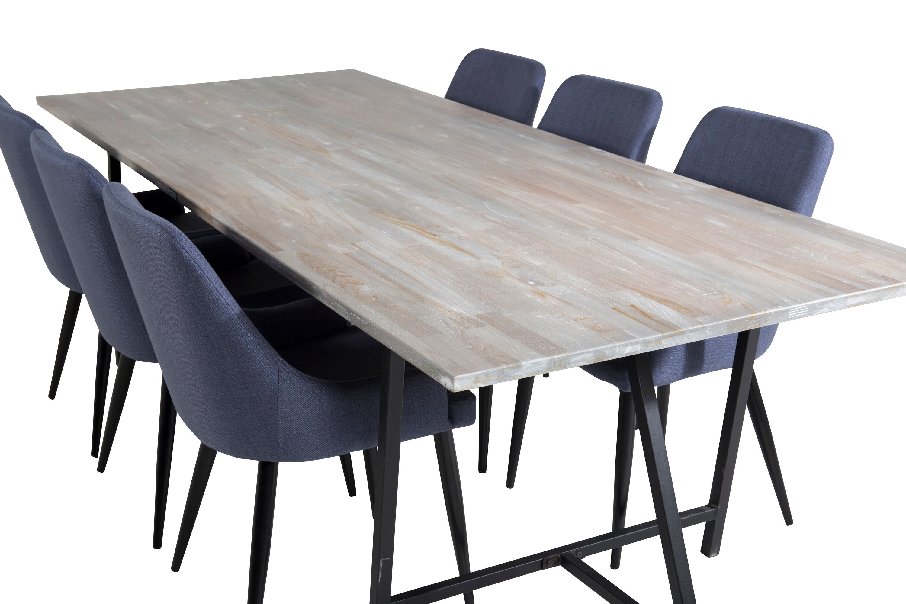 Jídelní stůl Jepara - 250*100*H76 - Šedá /Černá+Jídelní židle Plaza - Černé nohy - Modrá látka_6