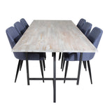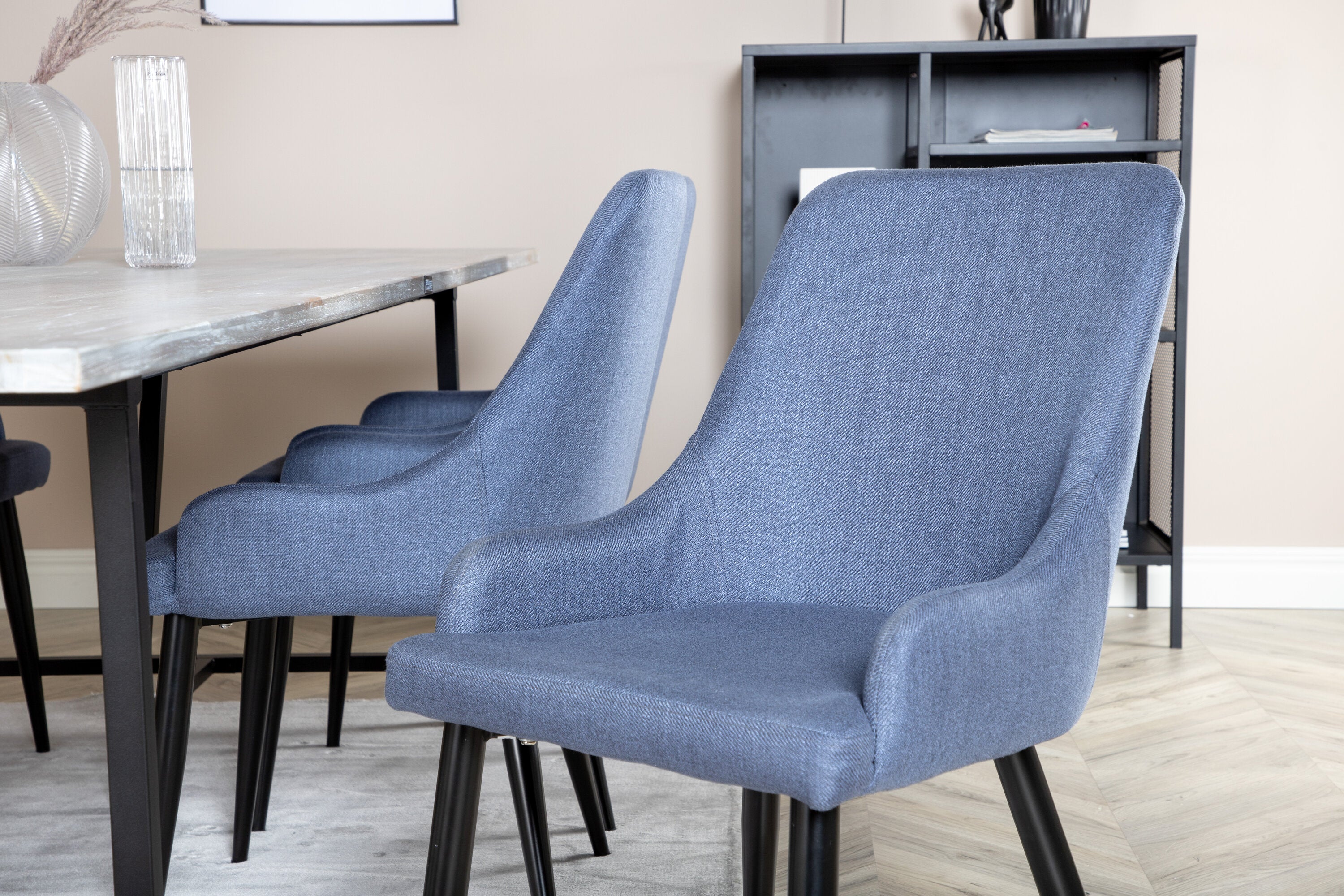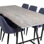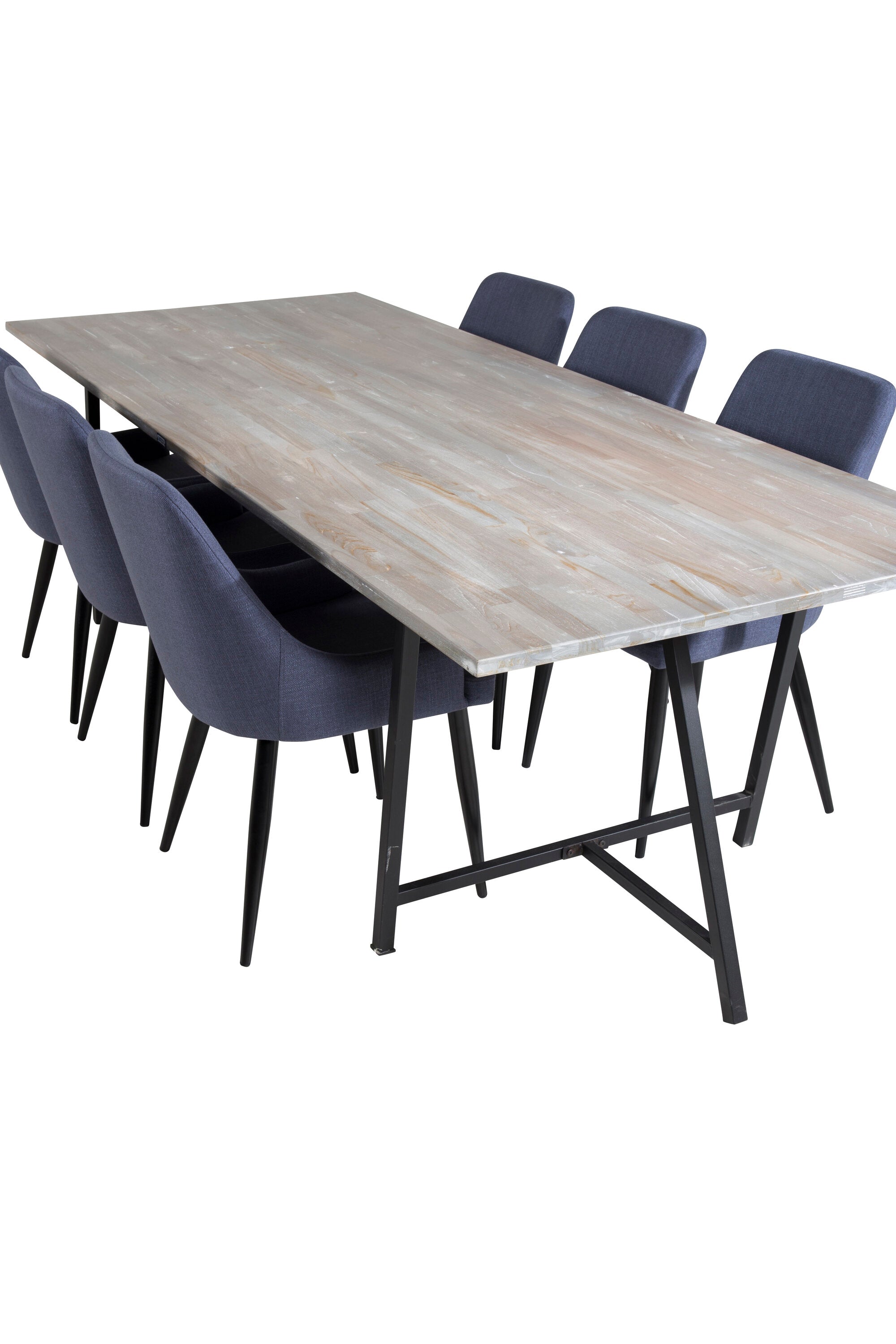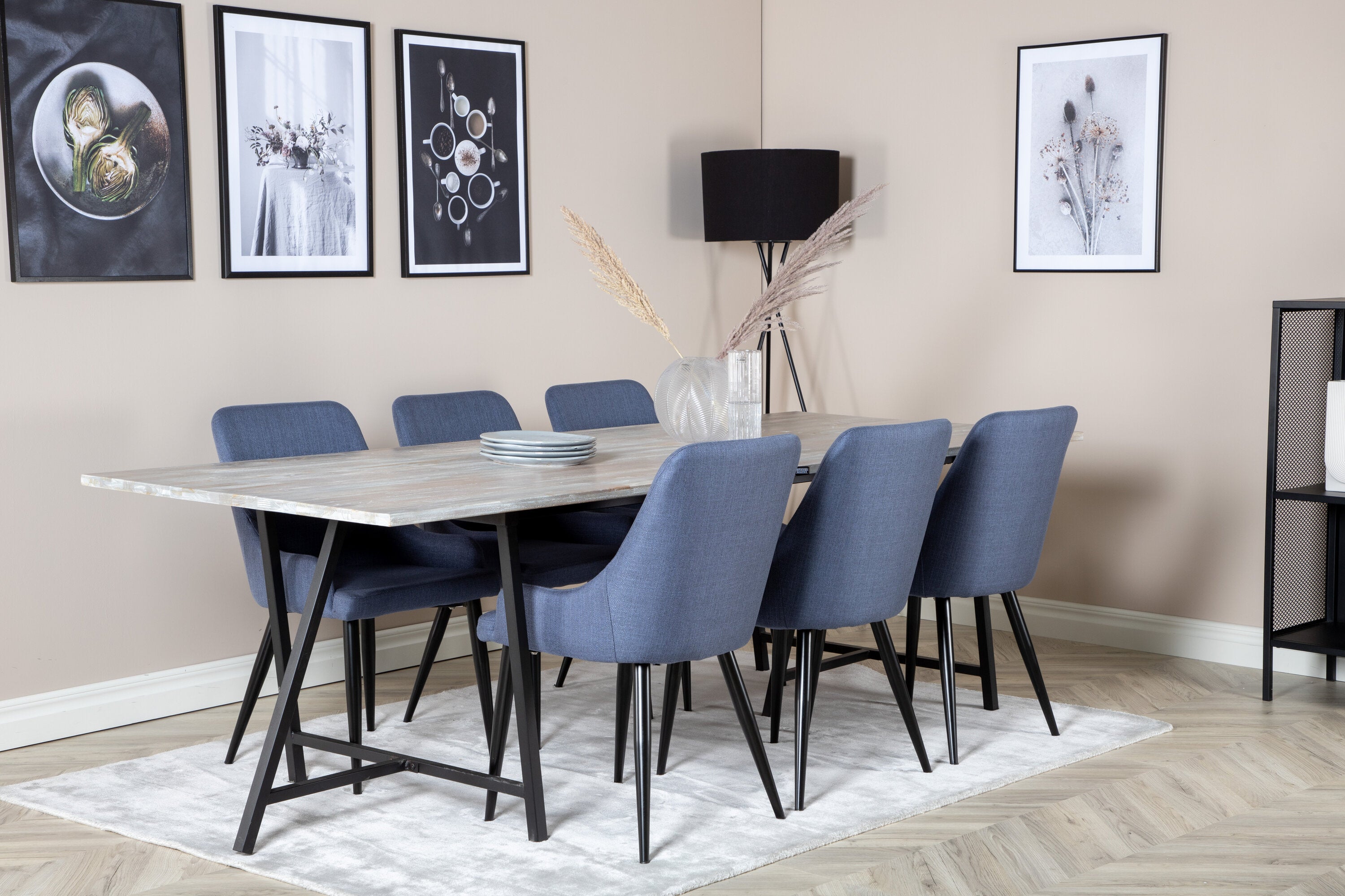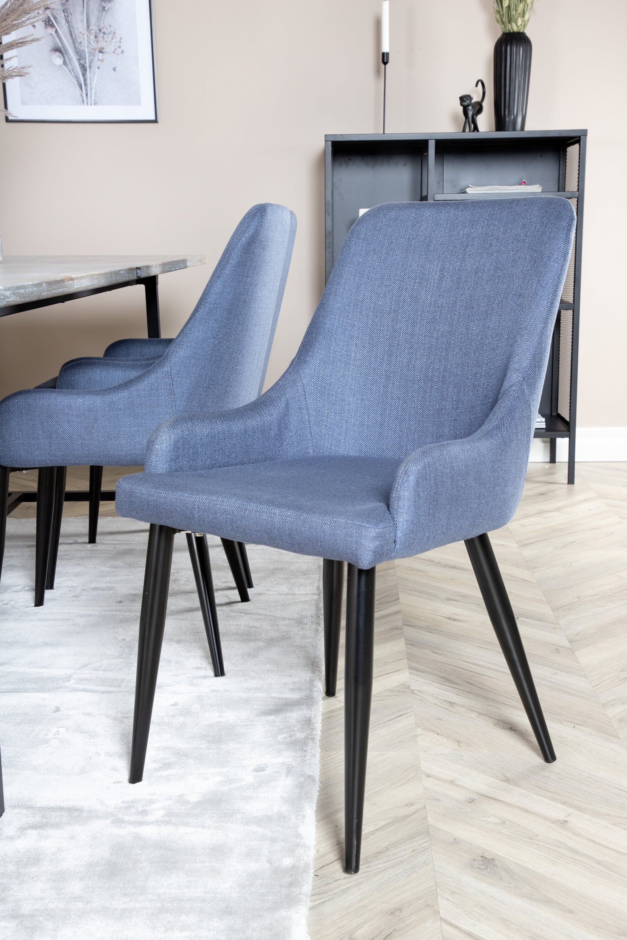 Jídelní stůl Jepara - 250*100*H76 - Šedá /Černá+Jídelní židle Plaza - Černé nohy - Modrá látka_6