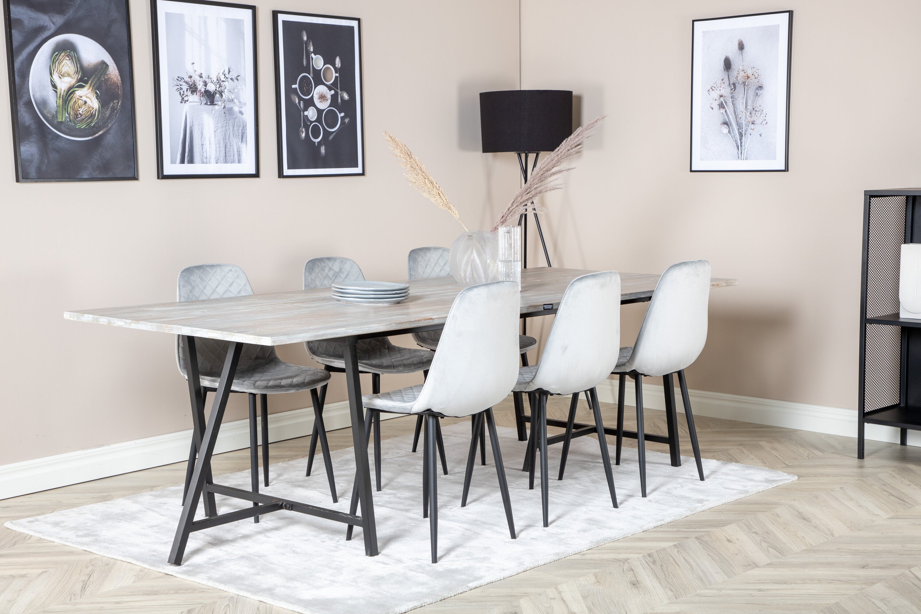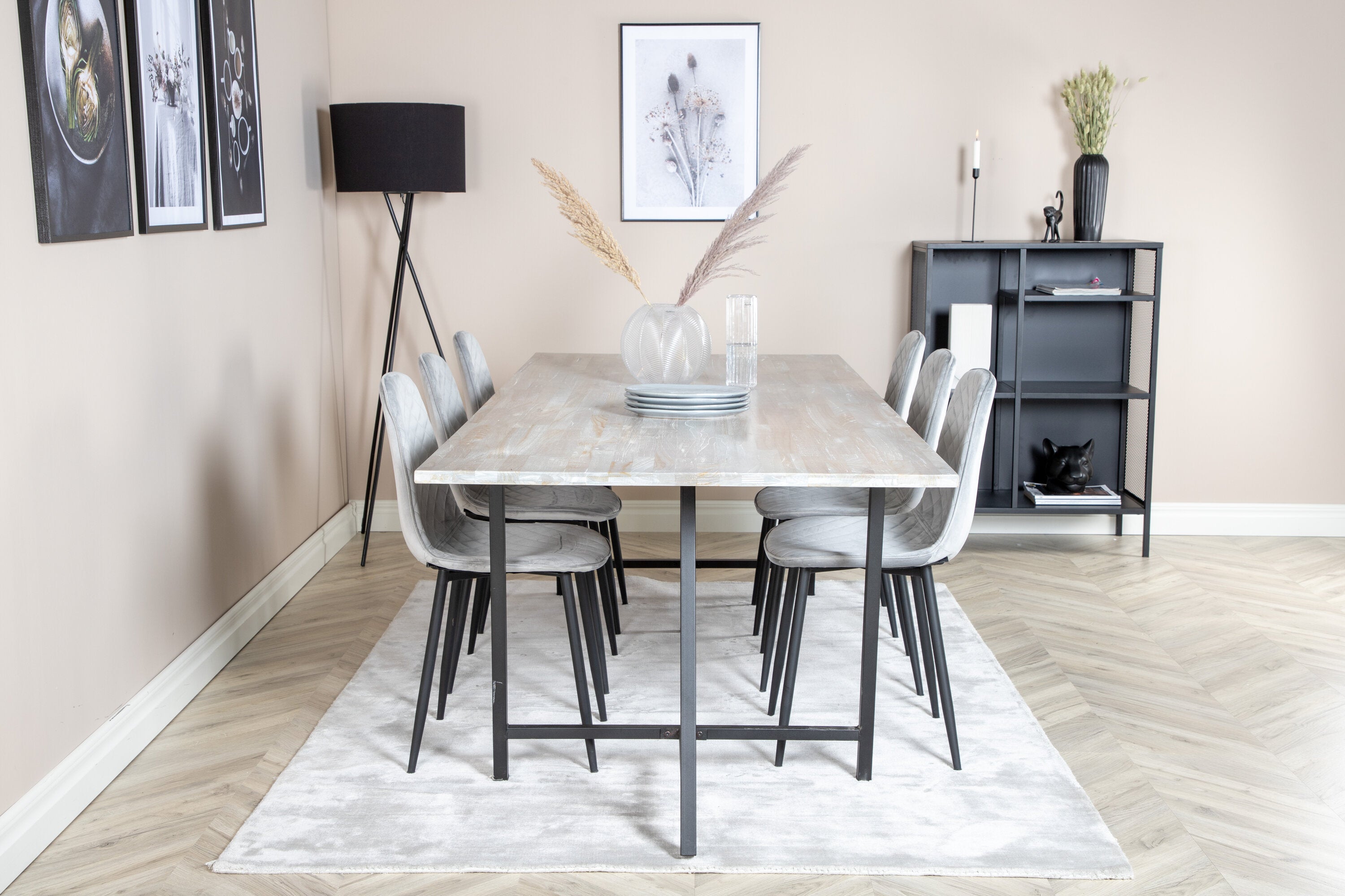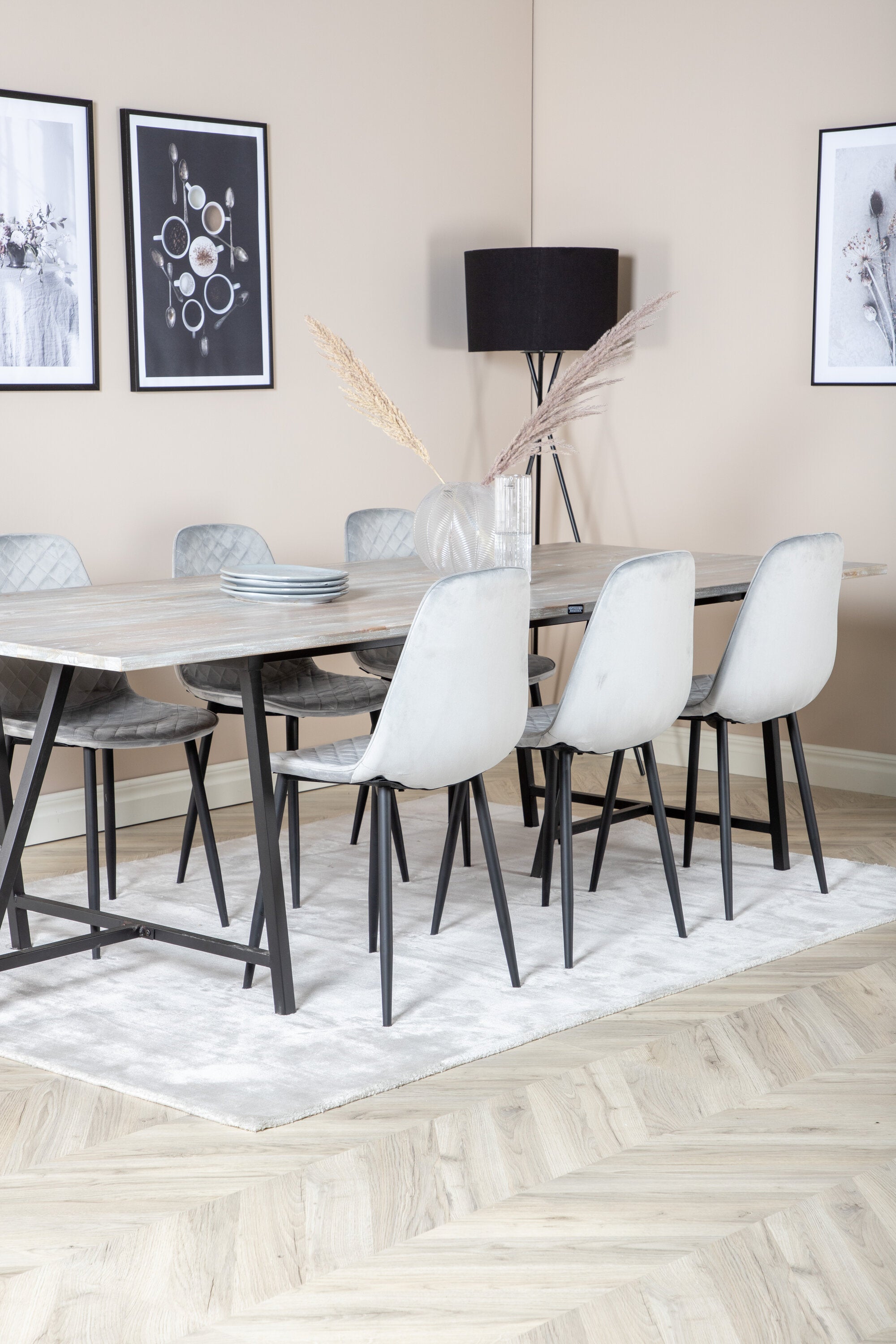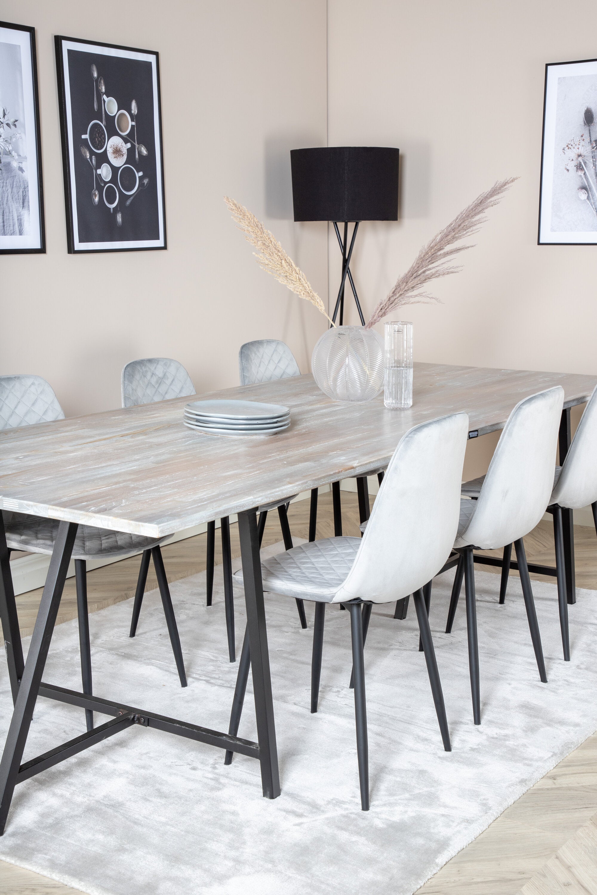 Jídelní stůl Jepara - 250*100*H76 - Šedá /Černá+Polar Diamond Jídelní židle - Černé nohy - Šedá Velvet_6