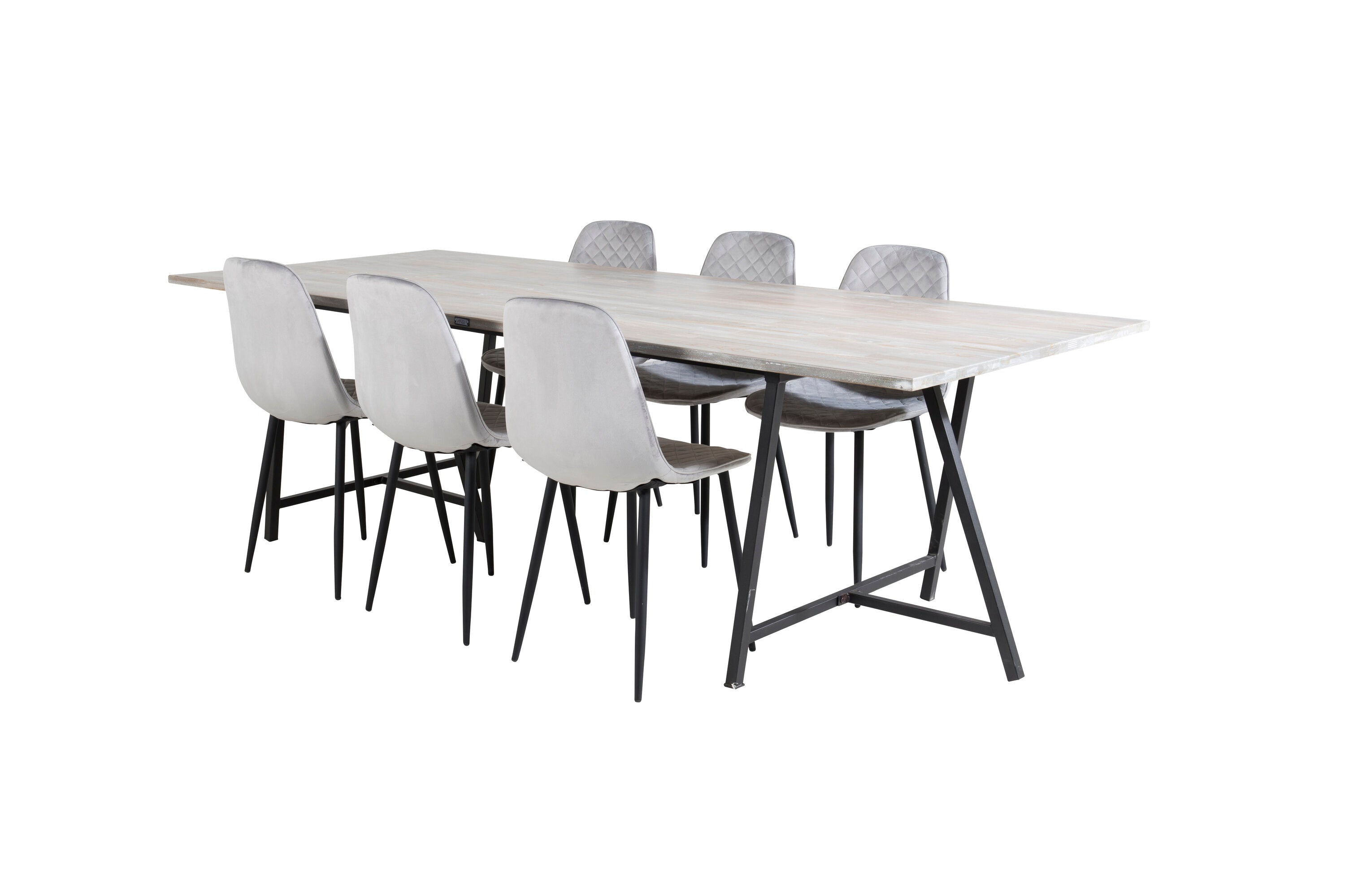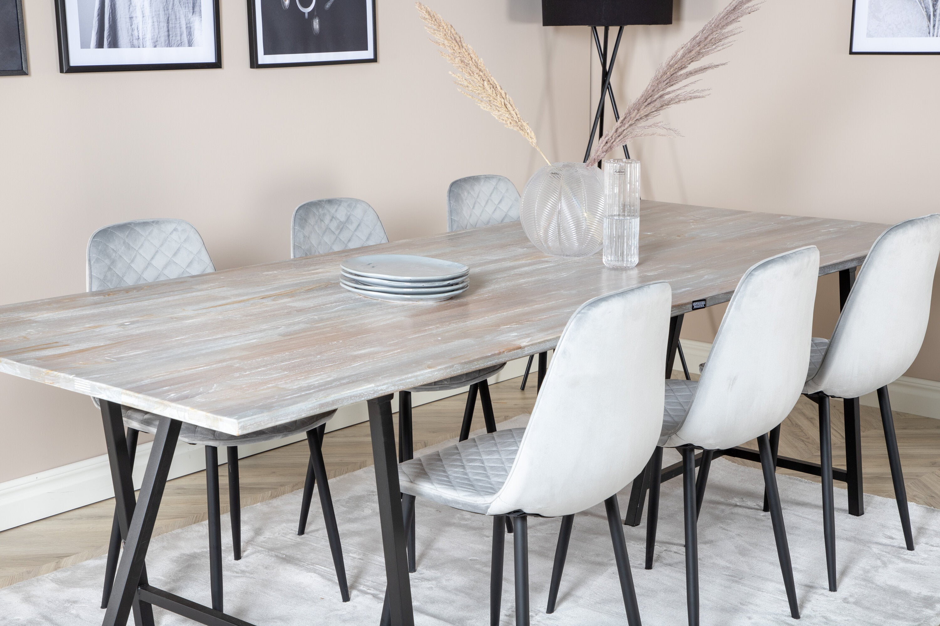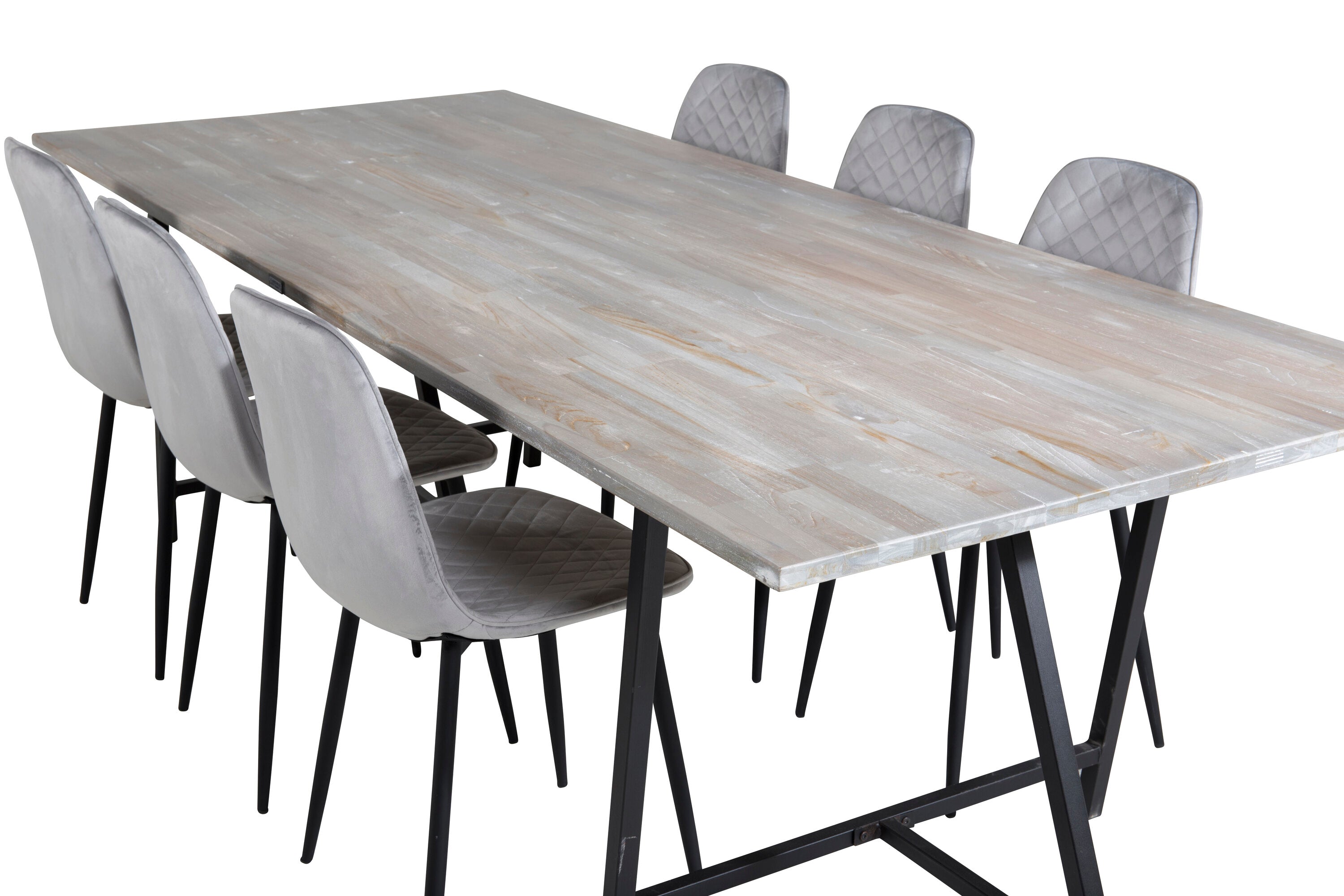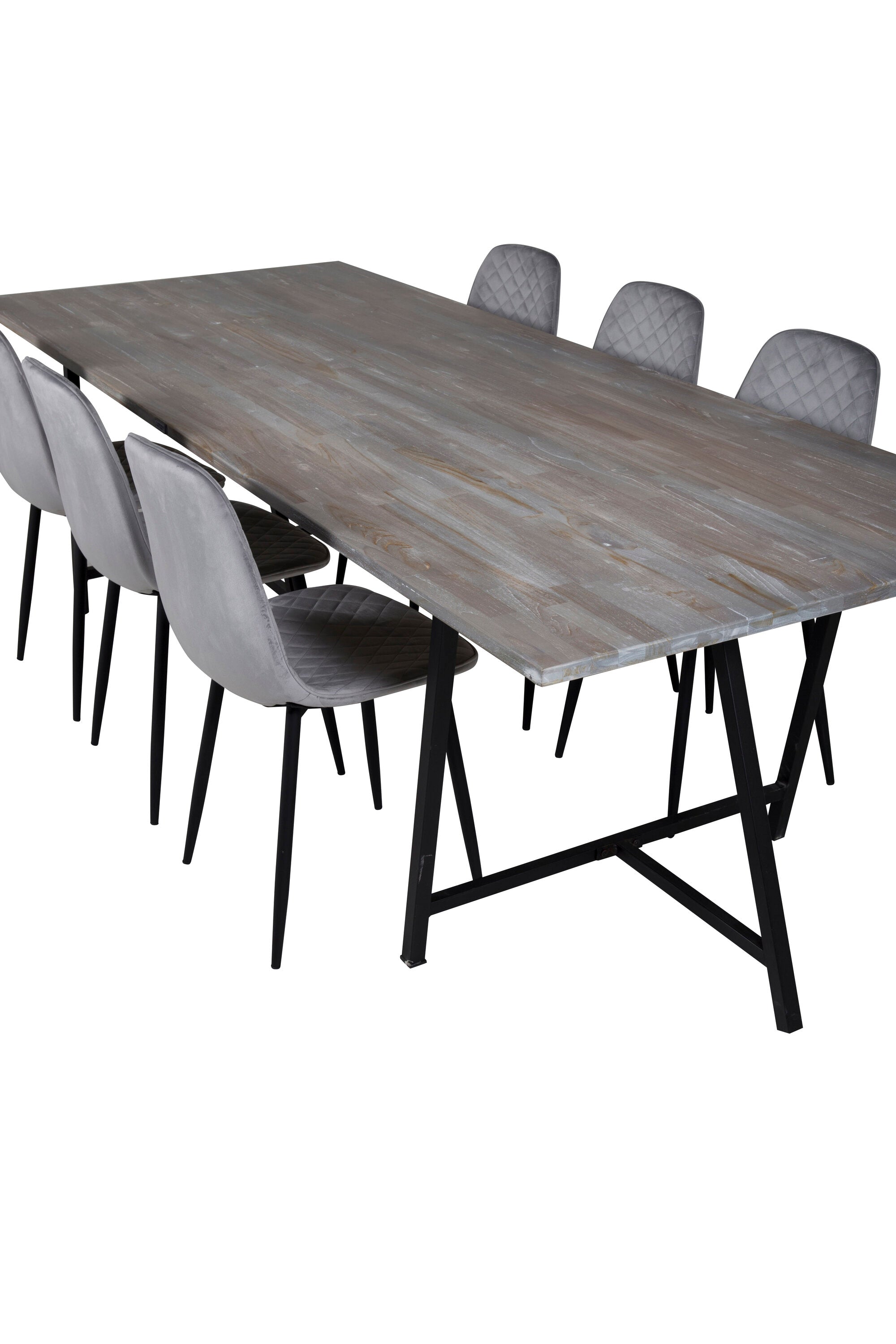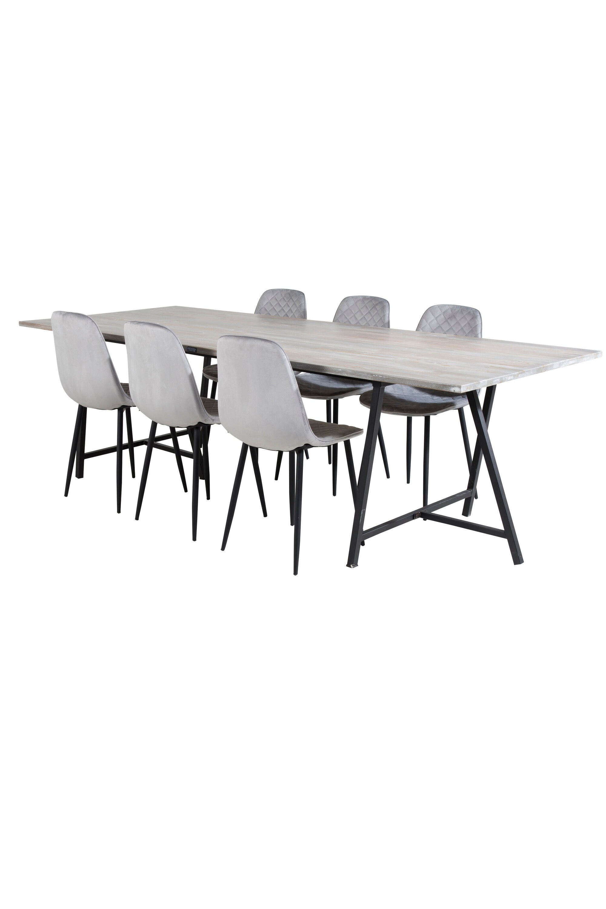 Jídelní stůl Jepara - 250*100*H76 - Šedá /Černá+Polar Diamond Jídelní židle - Černé nohy - Šedá Velvet_6