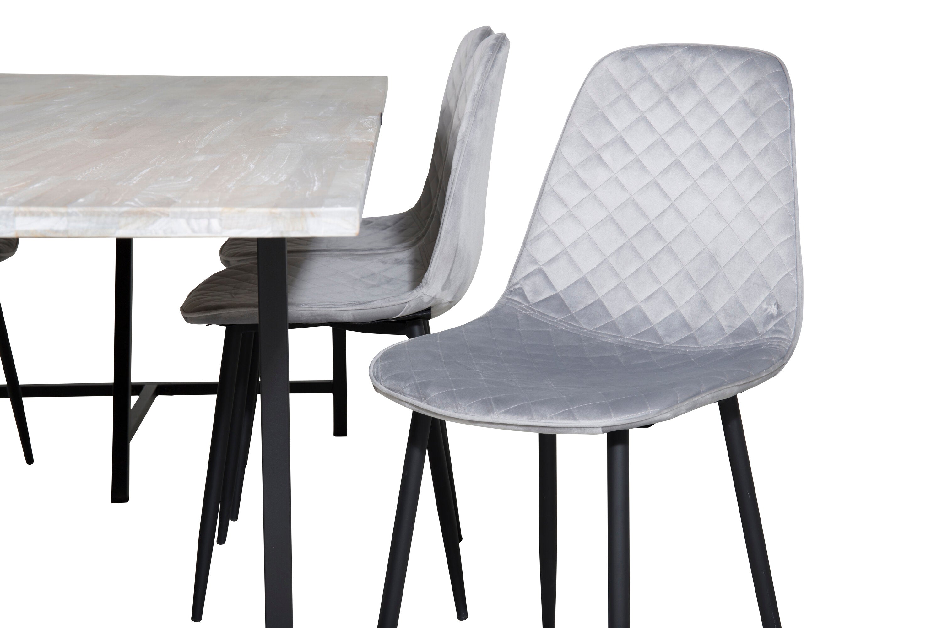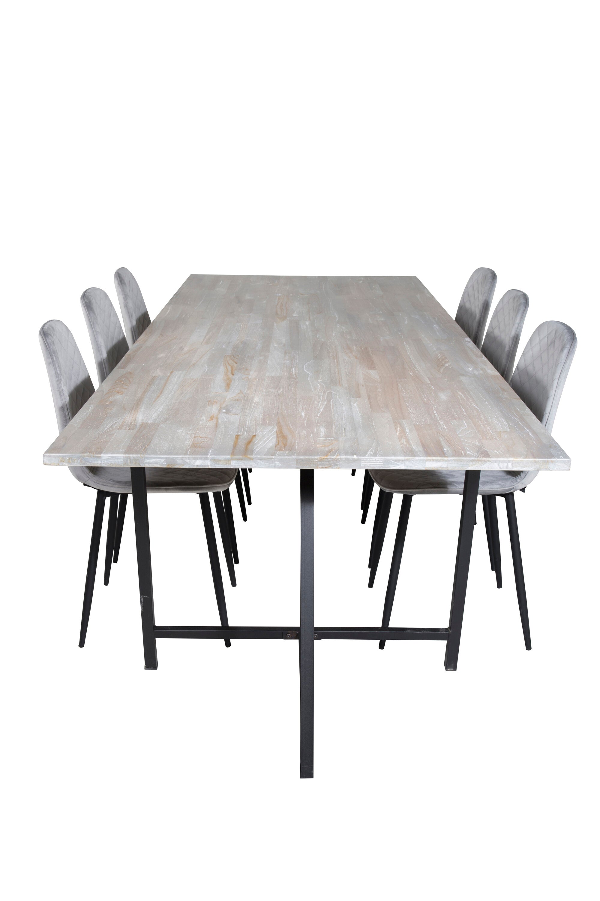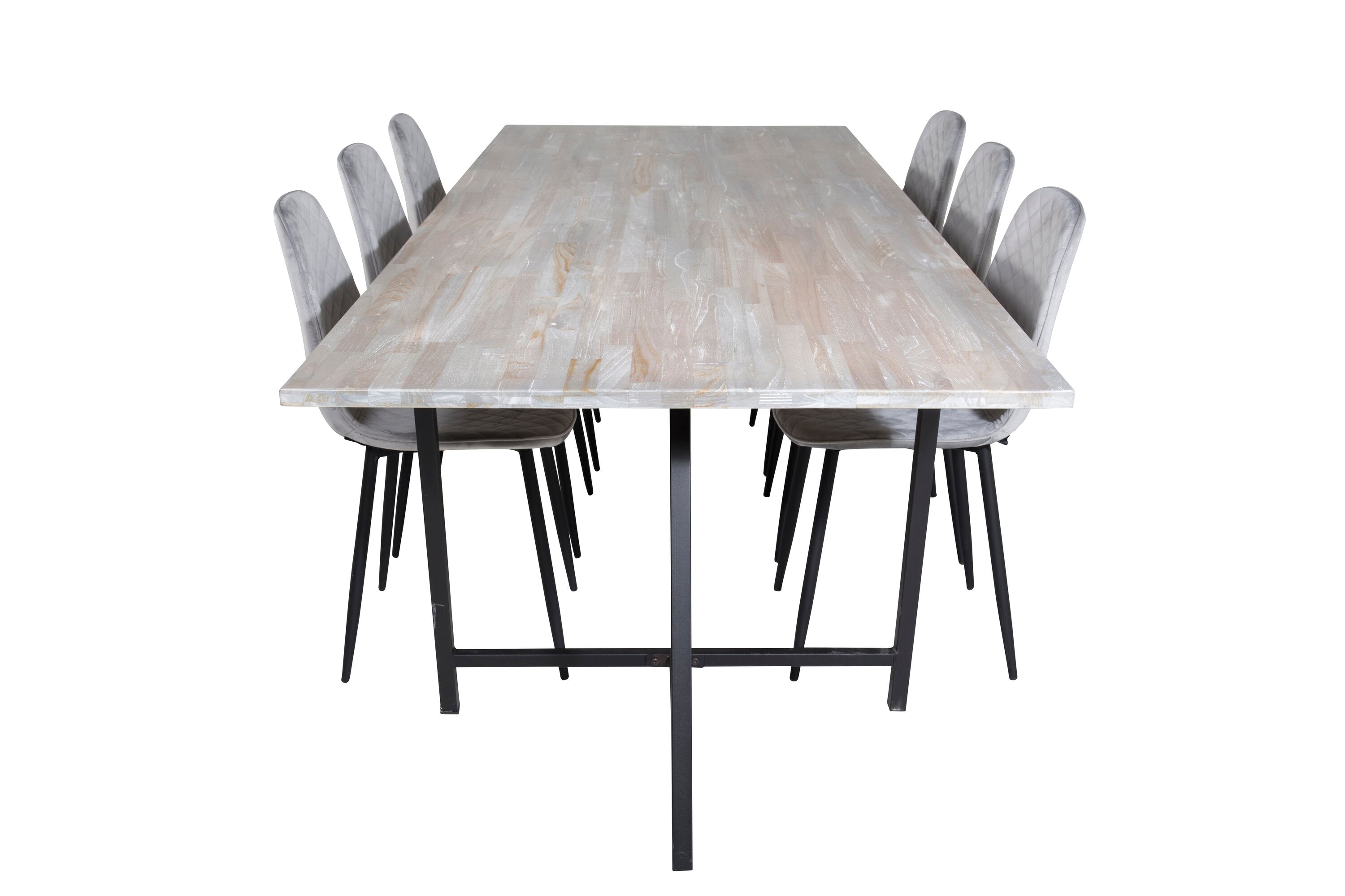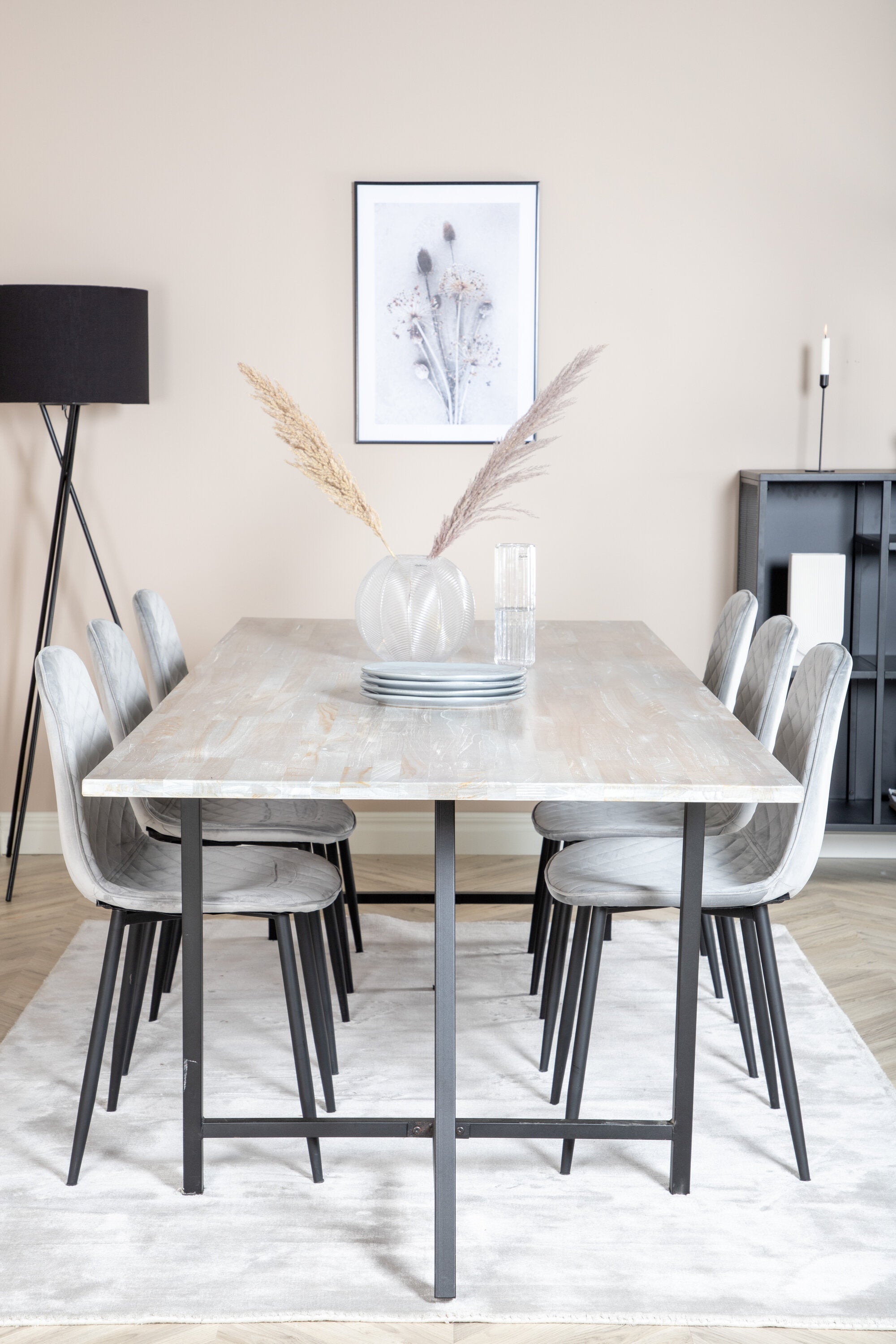 Jídelní stůl Jepara - 250*100*H76 - Šedá /Černá+Polar Diamond Jídelní židle - Černé nohy - Šedá Velvet_6