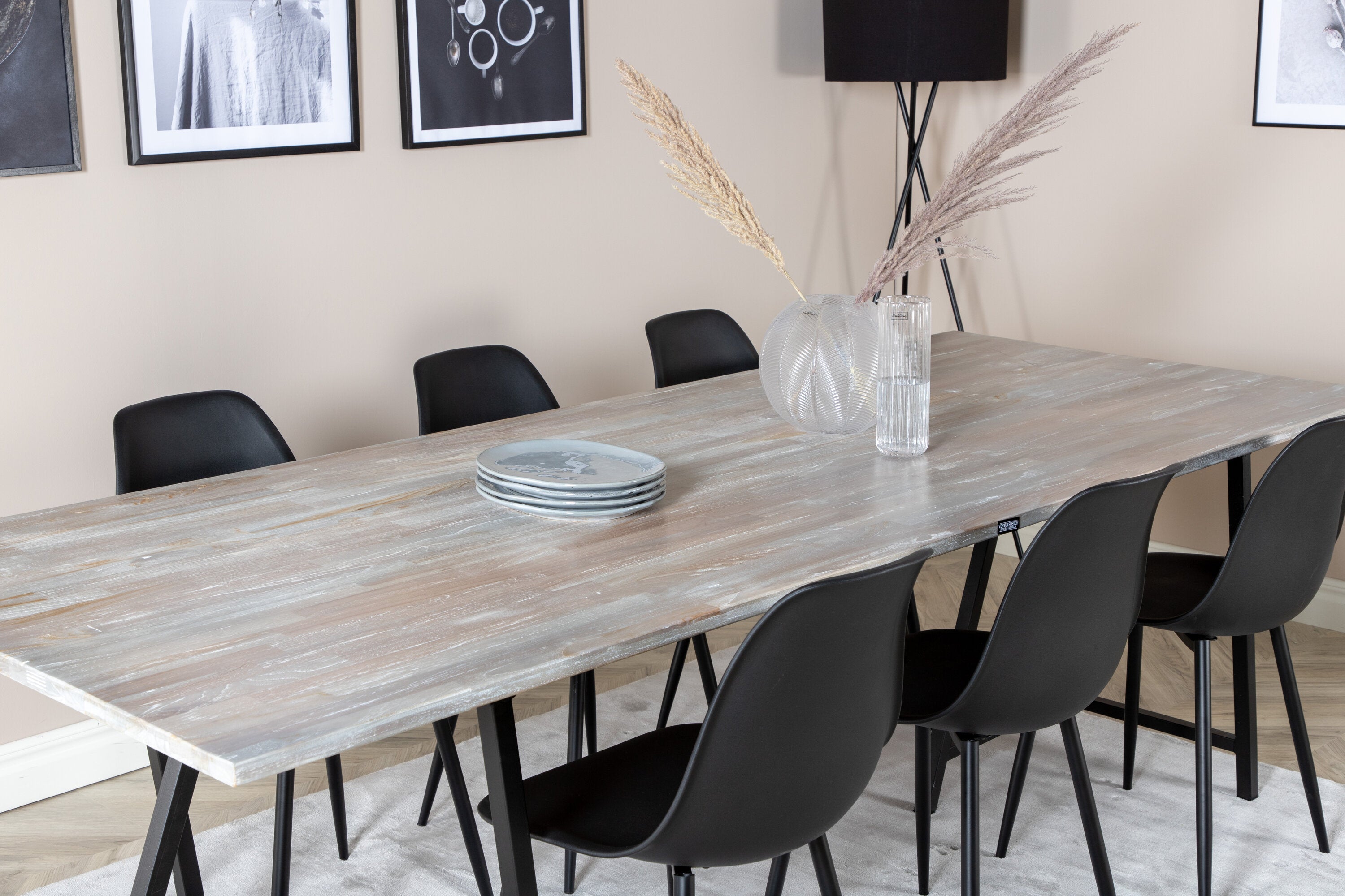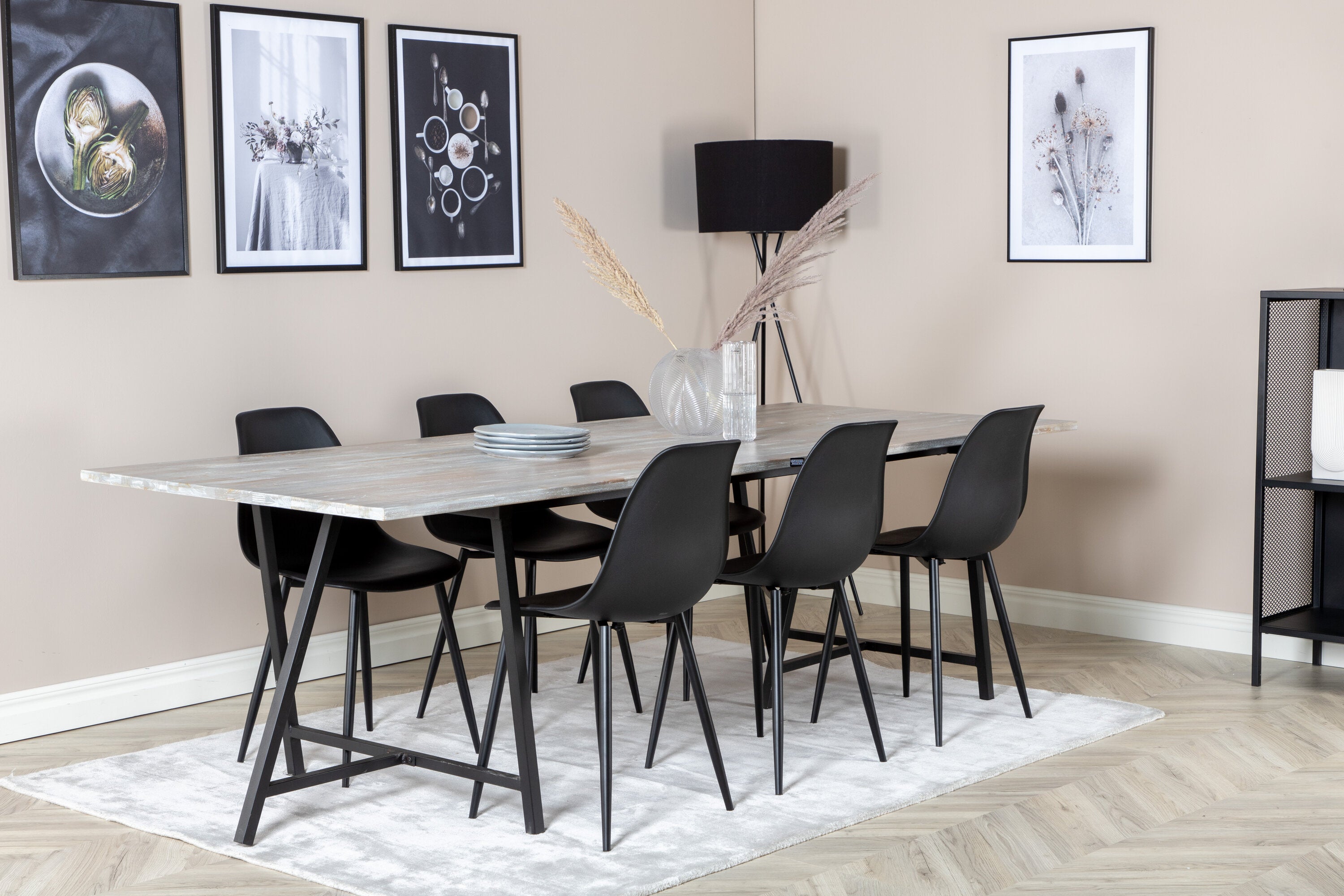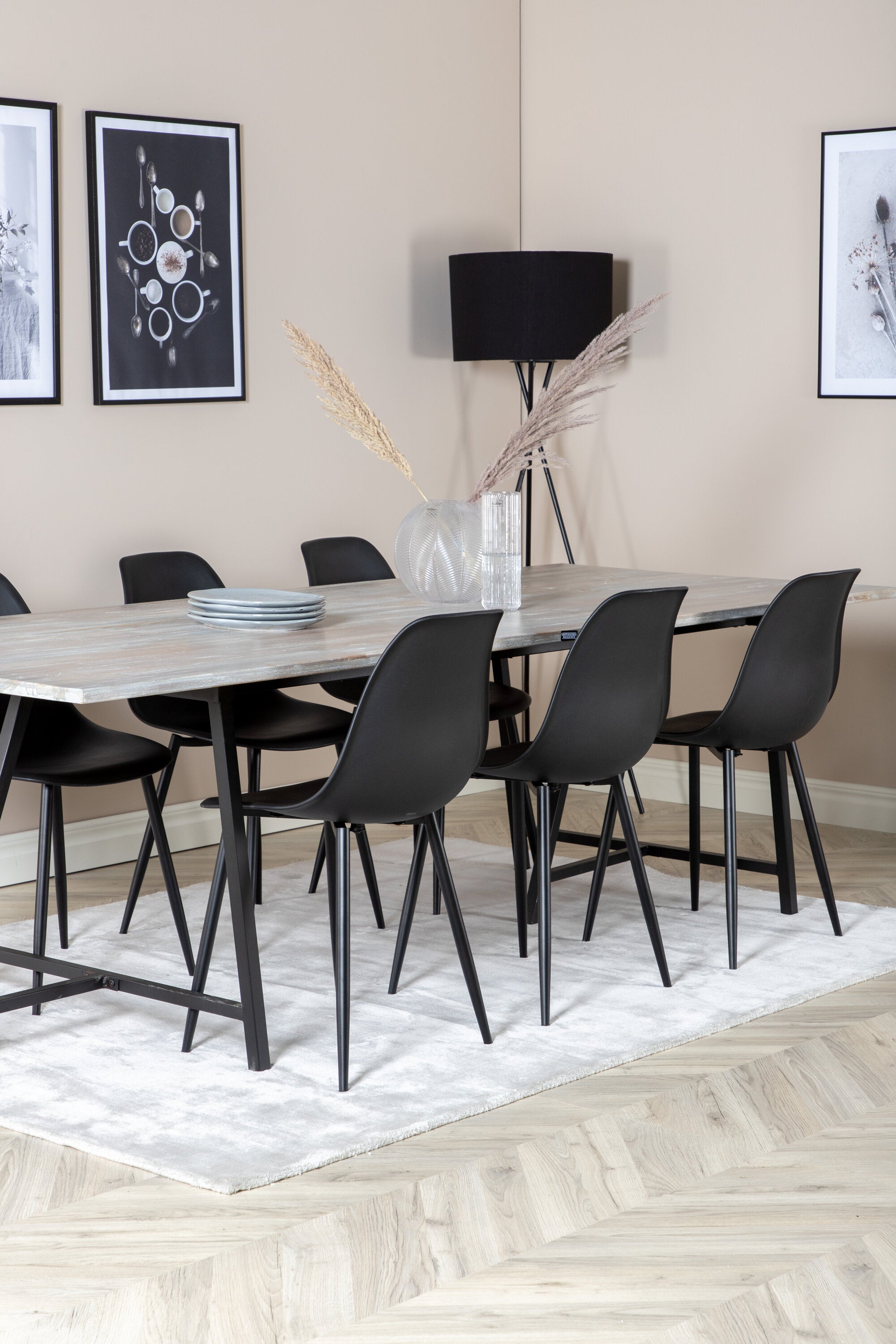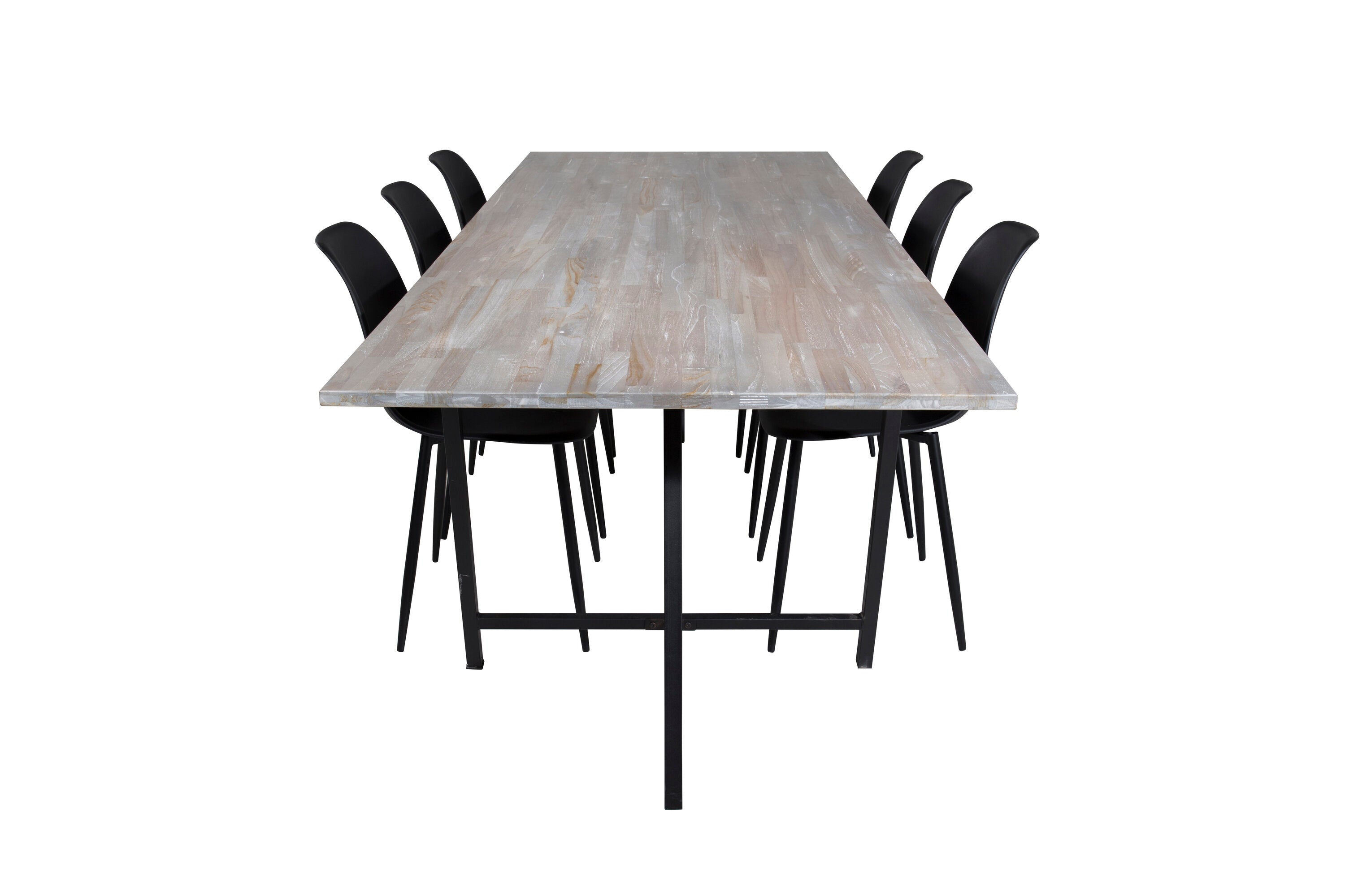Jídelní stůl Jepara - 250*100*H76 - Šedá /Černá+Polar Plastová jídelní židle - Černé nohy / Černý Plast_6