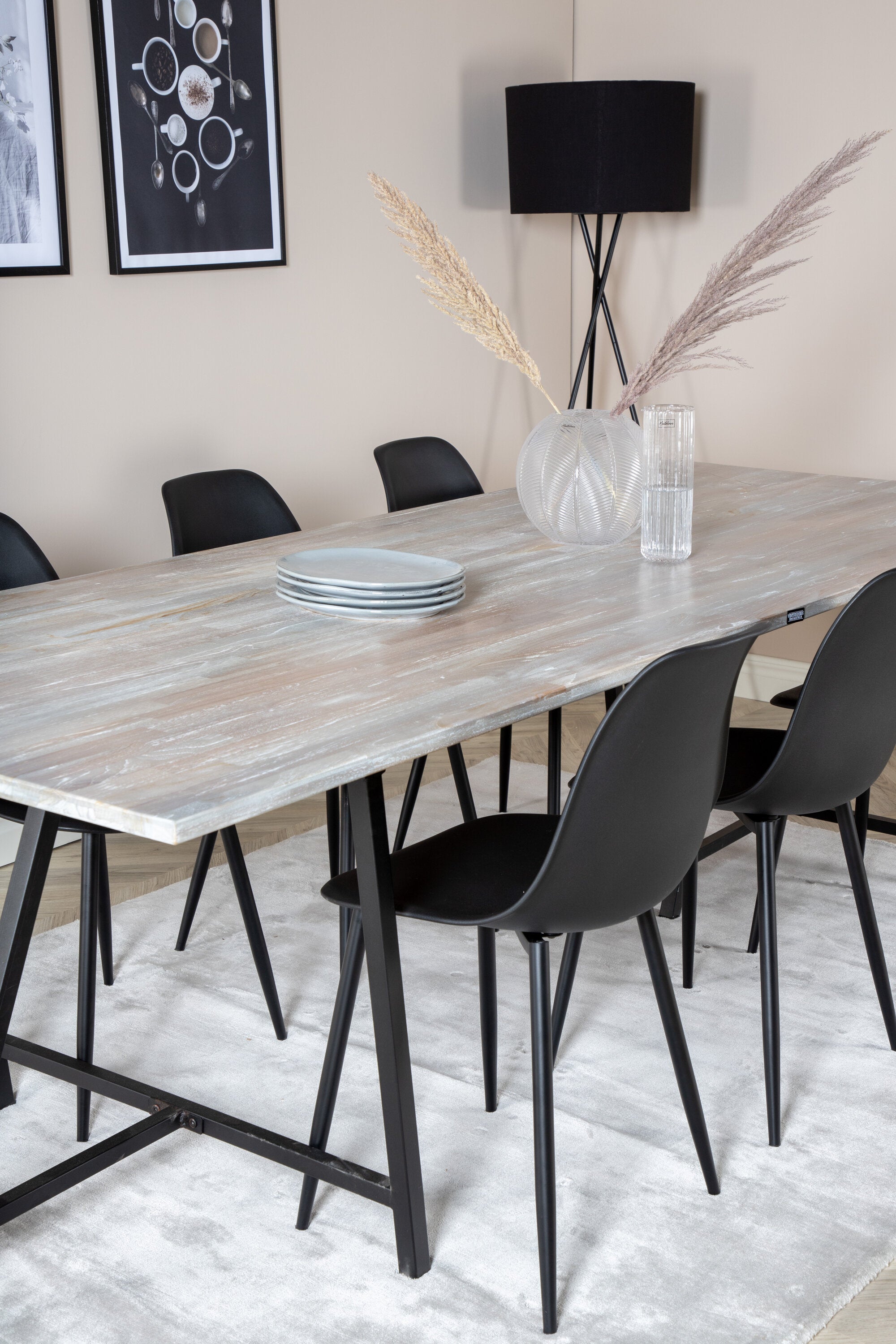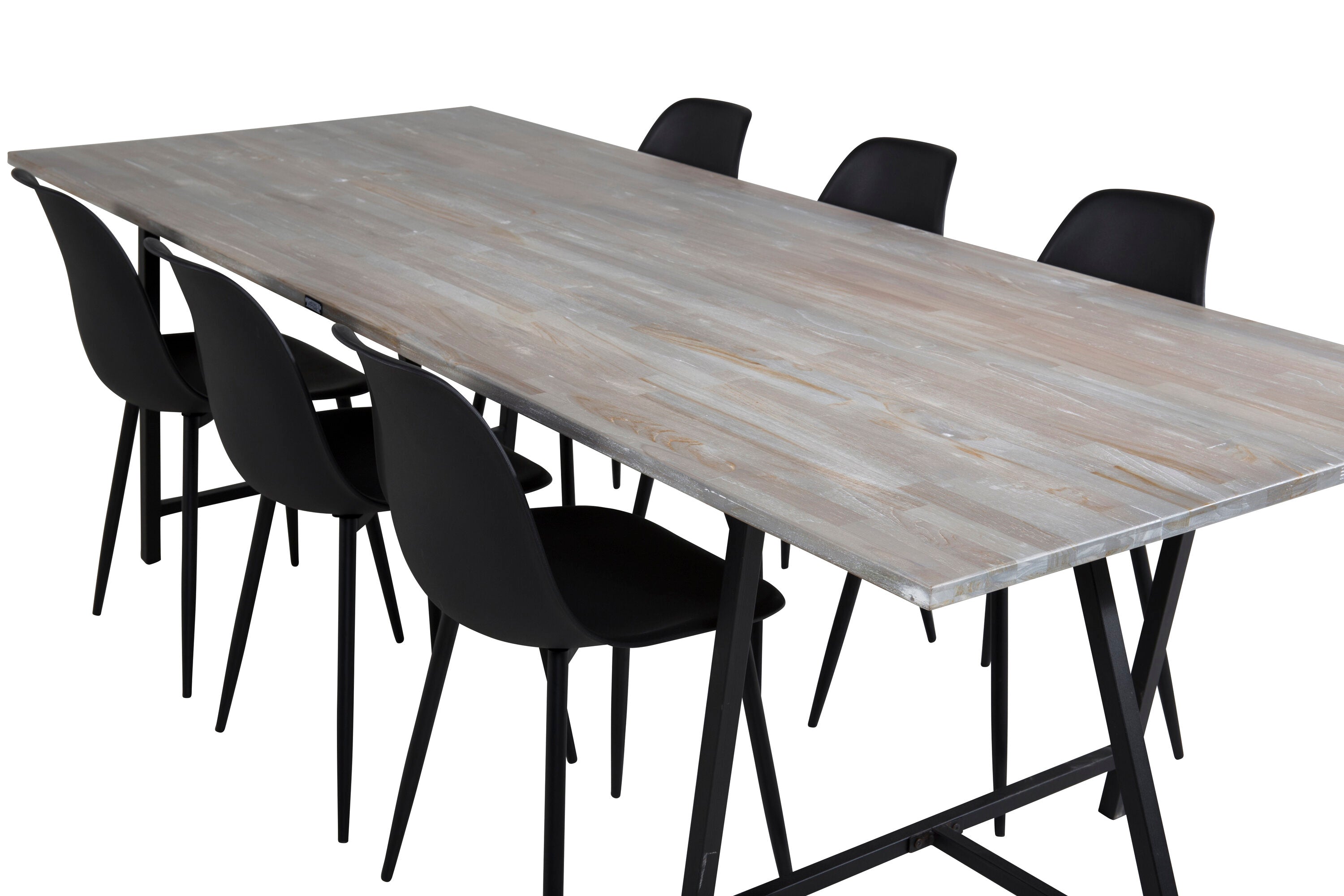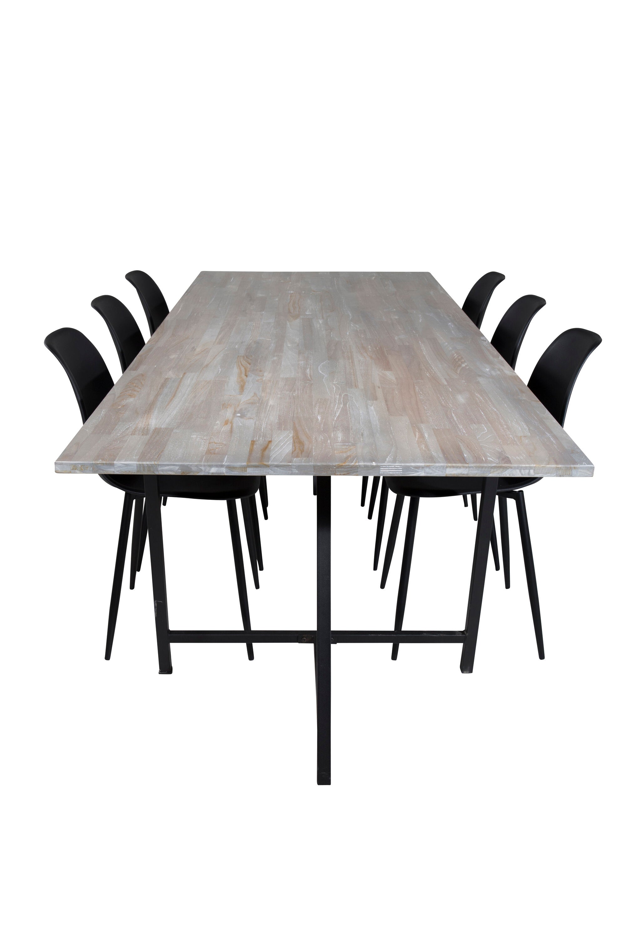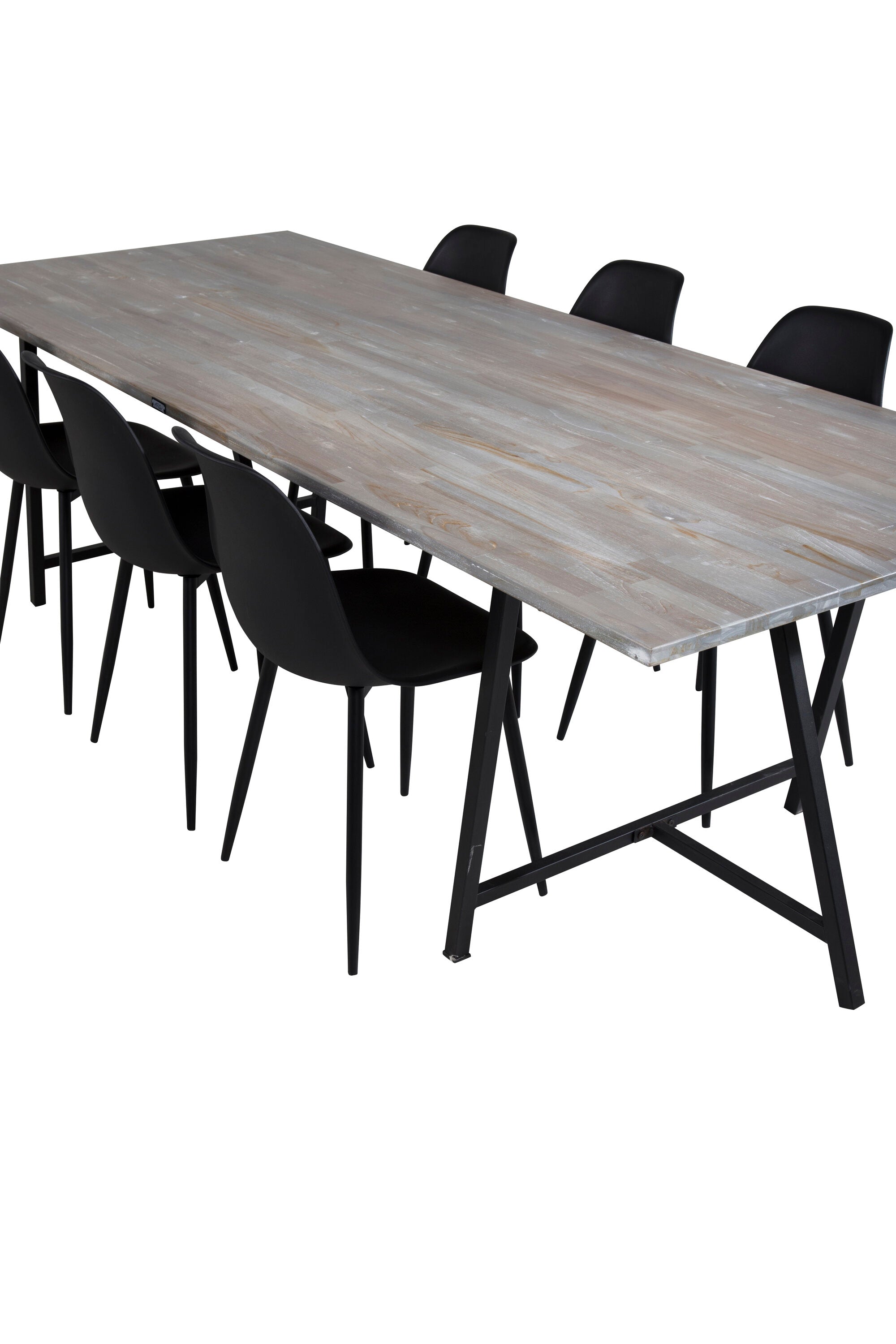 Jídelní stůl Jepara - 250*100*H76 - Šedá /Černá+Polar Plastová jídelní židle - Černé nohy / Černý Plast_6