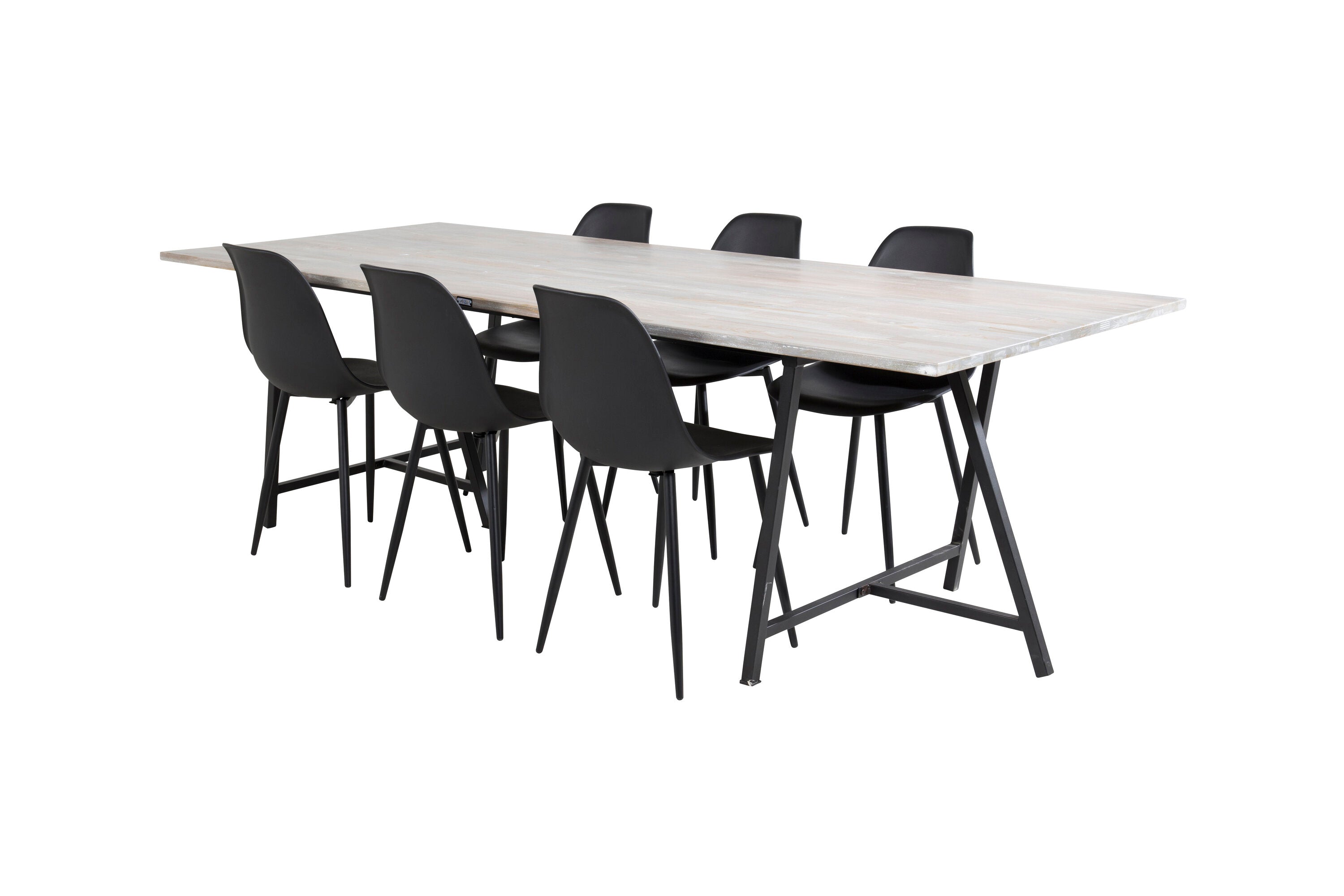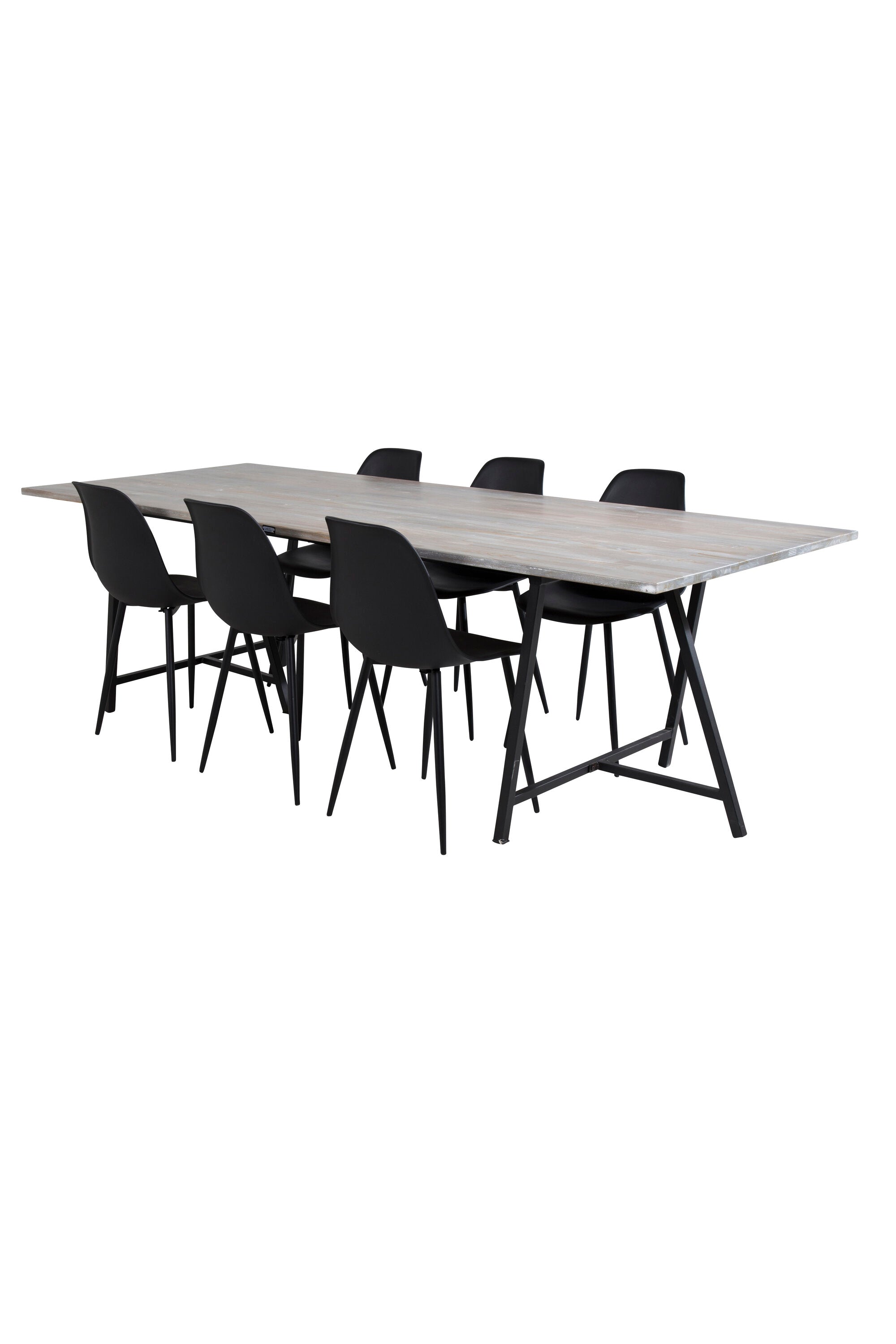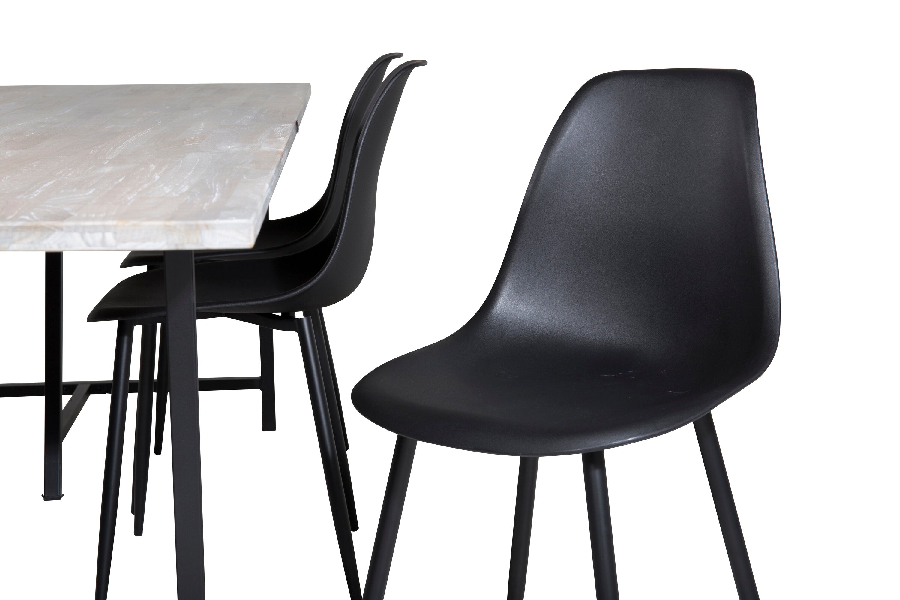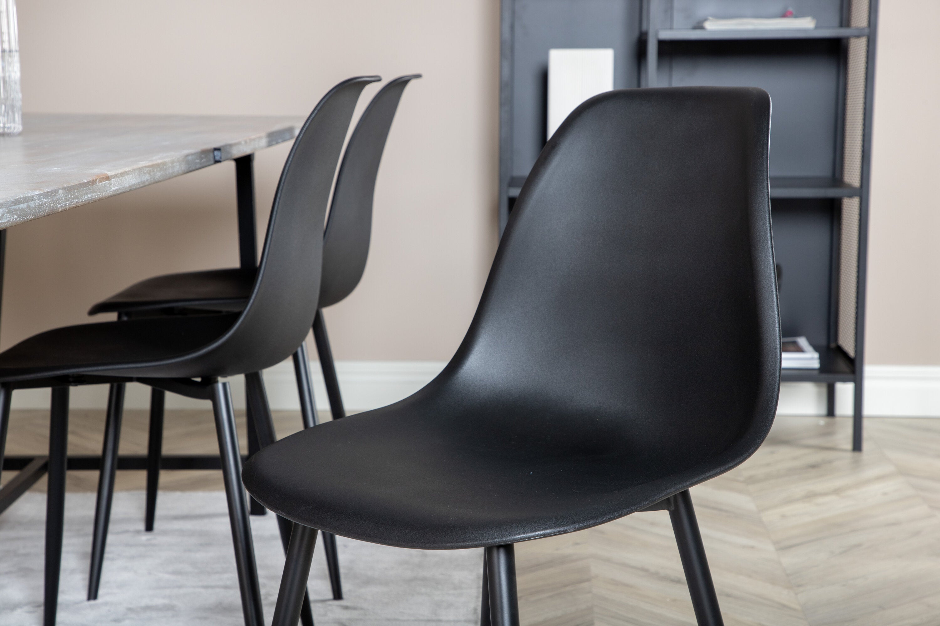 Jídelní stůl Jepara - 250*100*H76 - Šedá /Černá+Polar Plastová jídelní židle - Černé nohy / Černý Plast_6