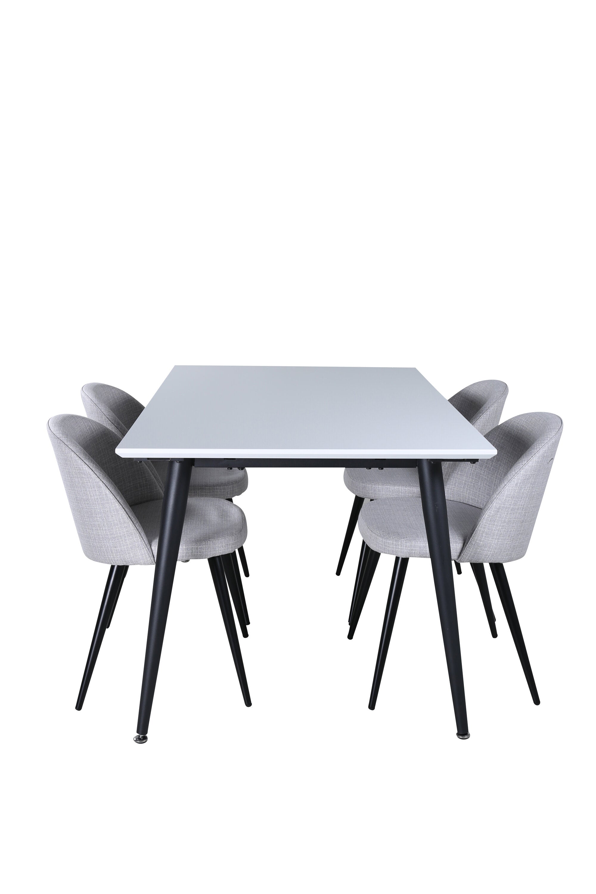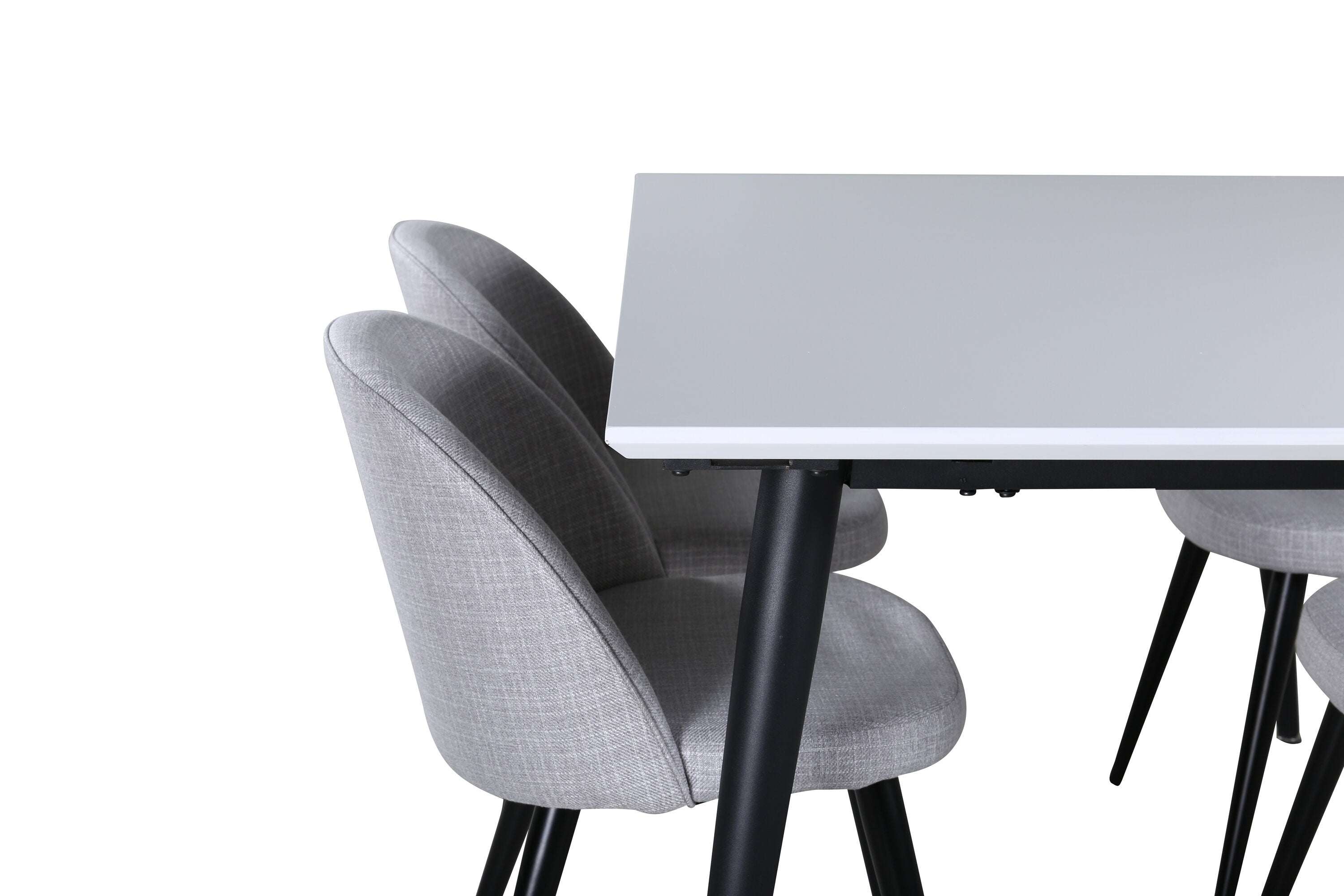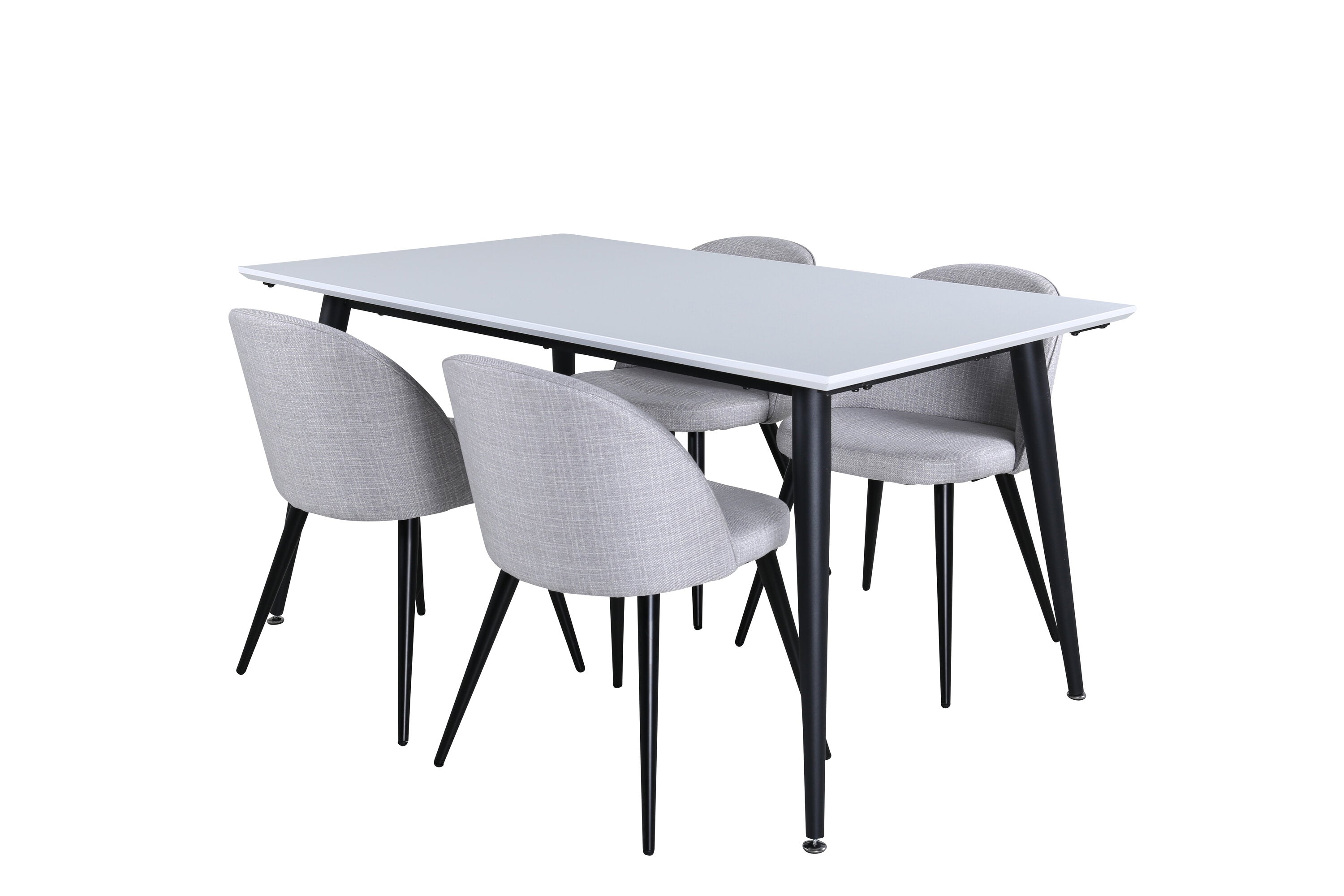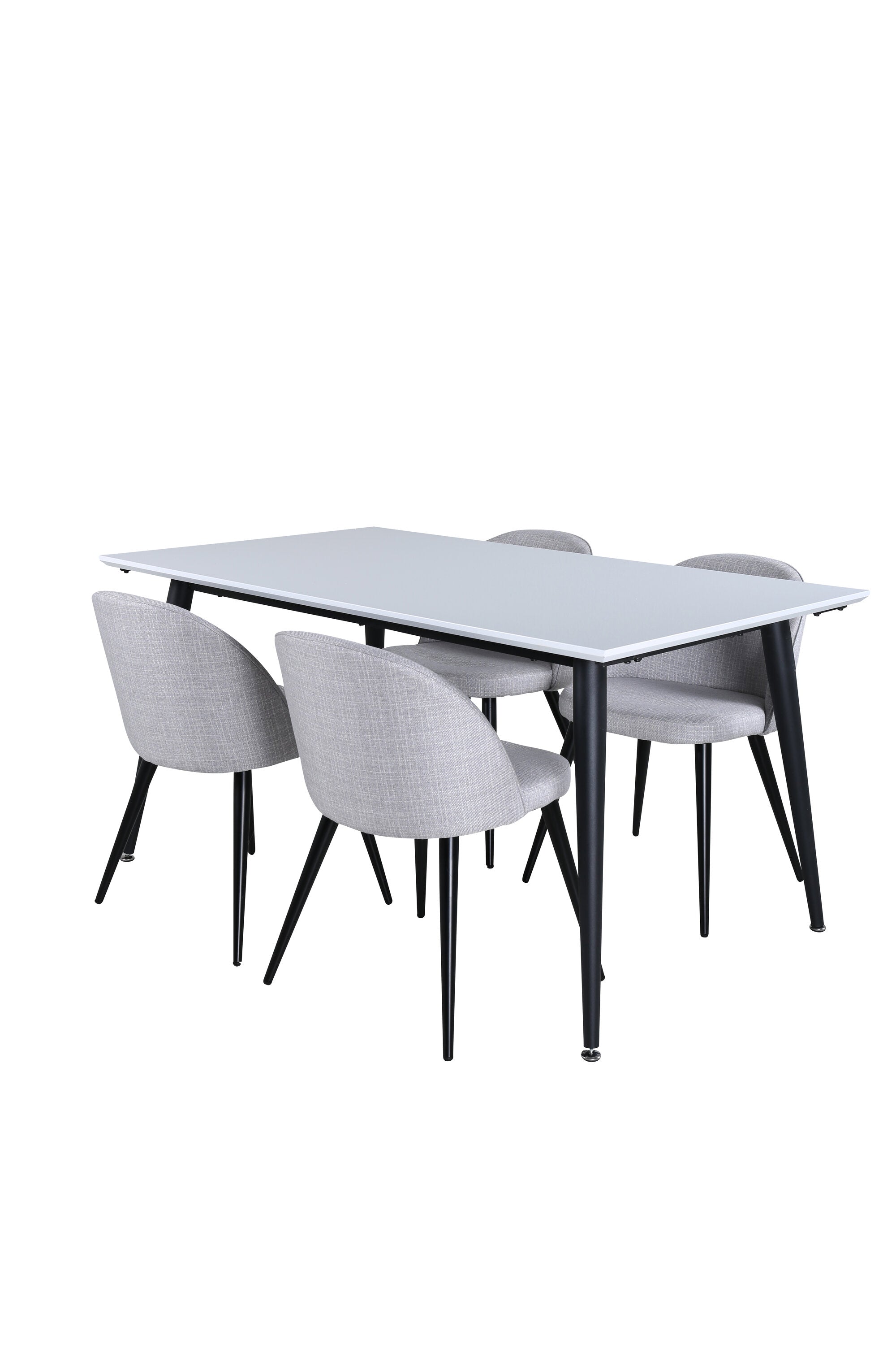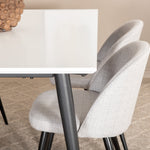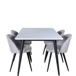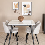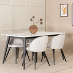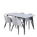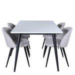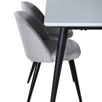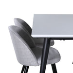Jídelní stůl Jimmy , černá bílá HPL + sametová jídelní křeslo , černé nohy , světle šedá látka_4