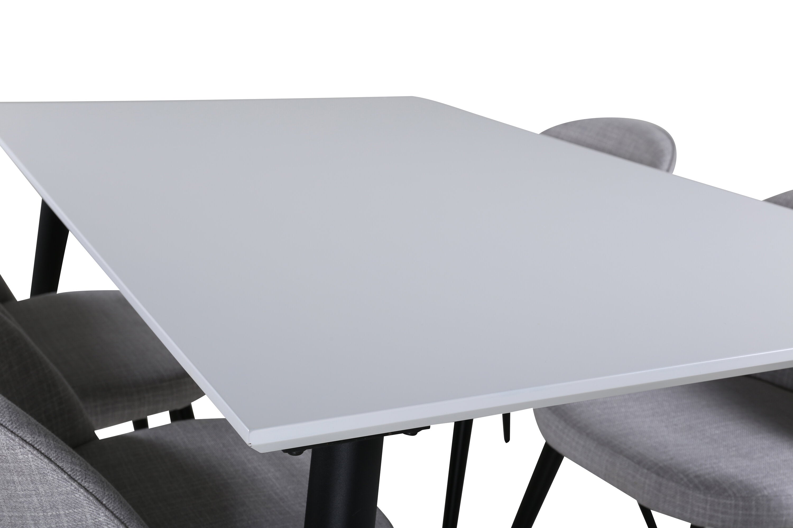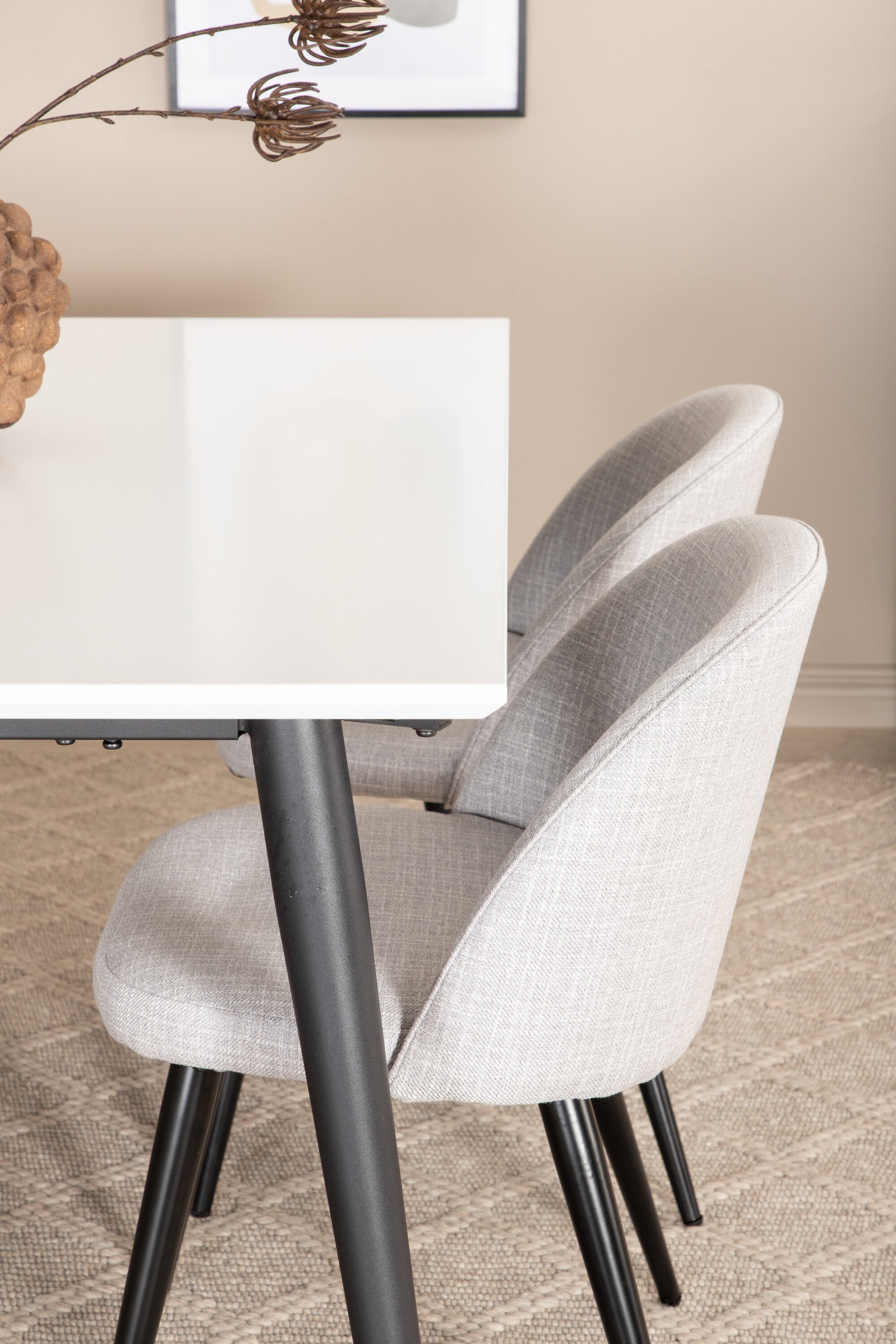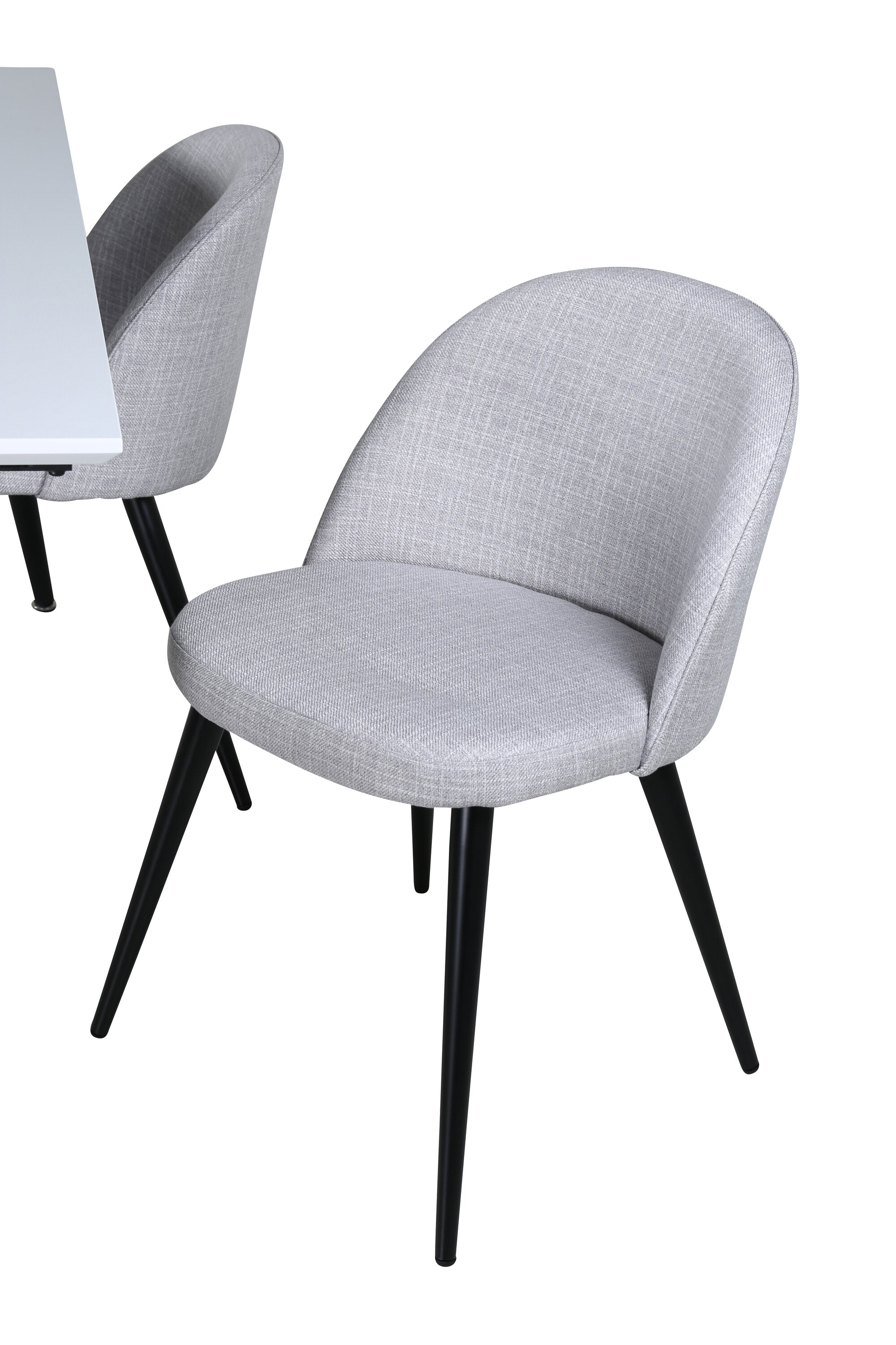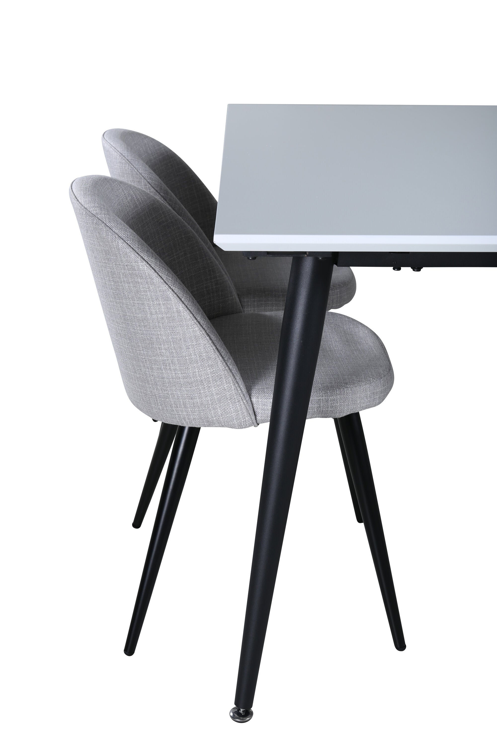 Jídelní stůl Jimmy , černá bílá HPL + sametová jídelní křeslo , černé nohy , světle šedá látka_4