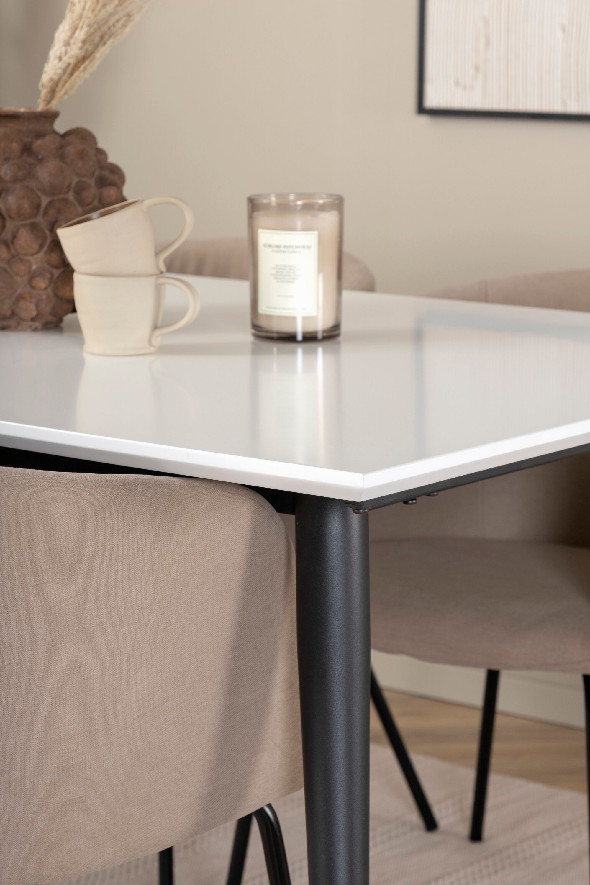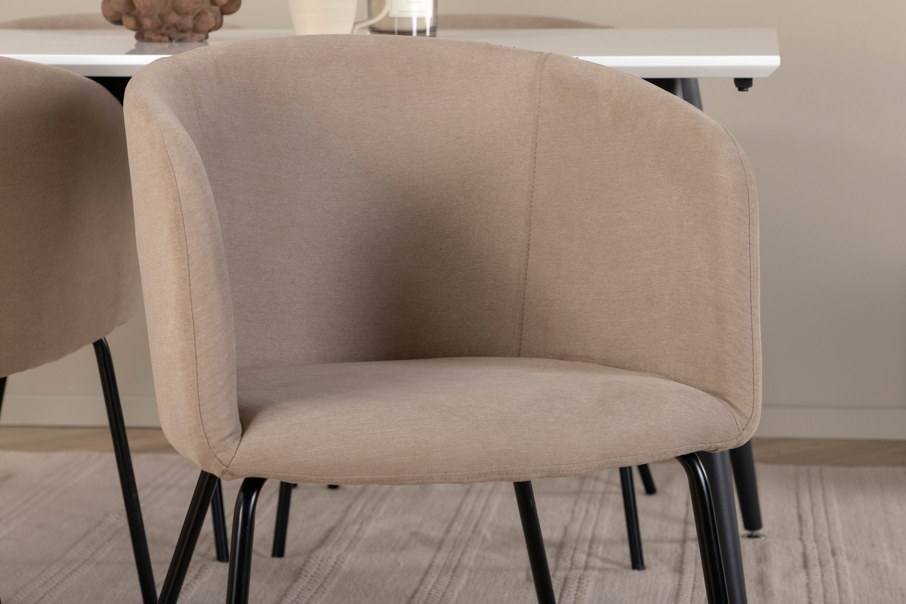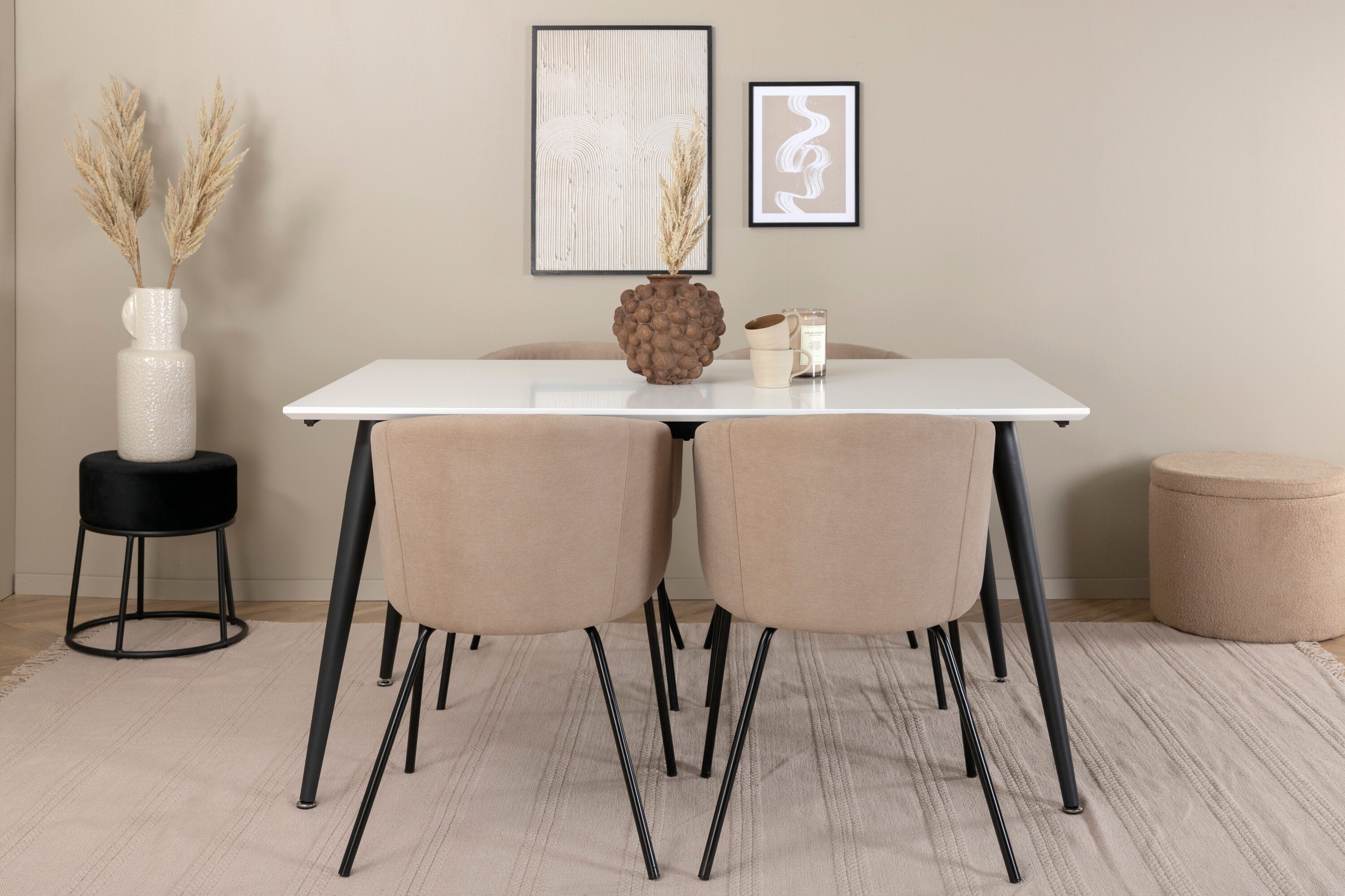 Jídelní stůl Jimmy – černá/bílá HPL+židle Berit – černá/béžová látka (polyesterové prádlo)_4