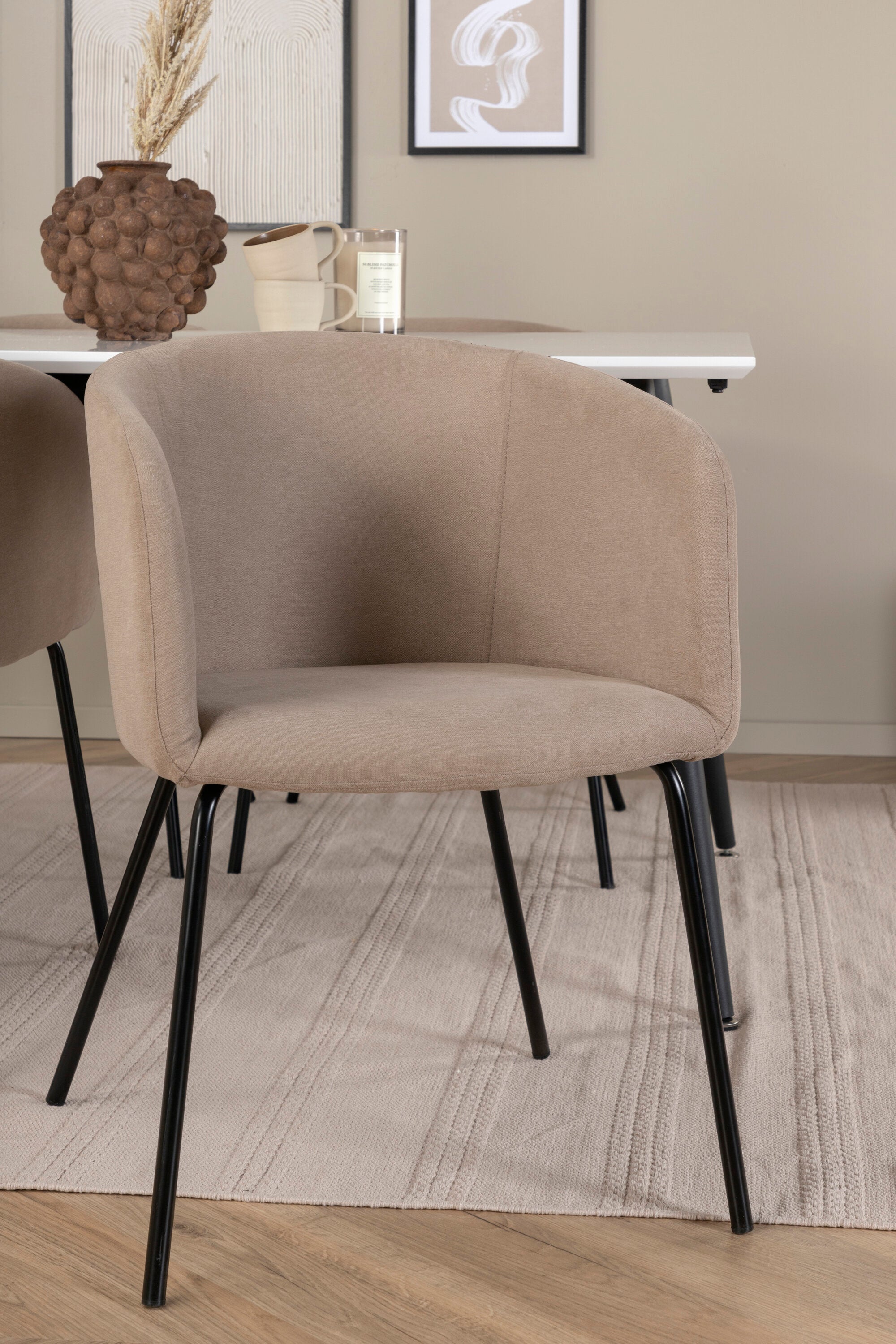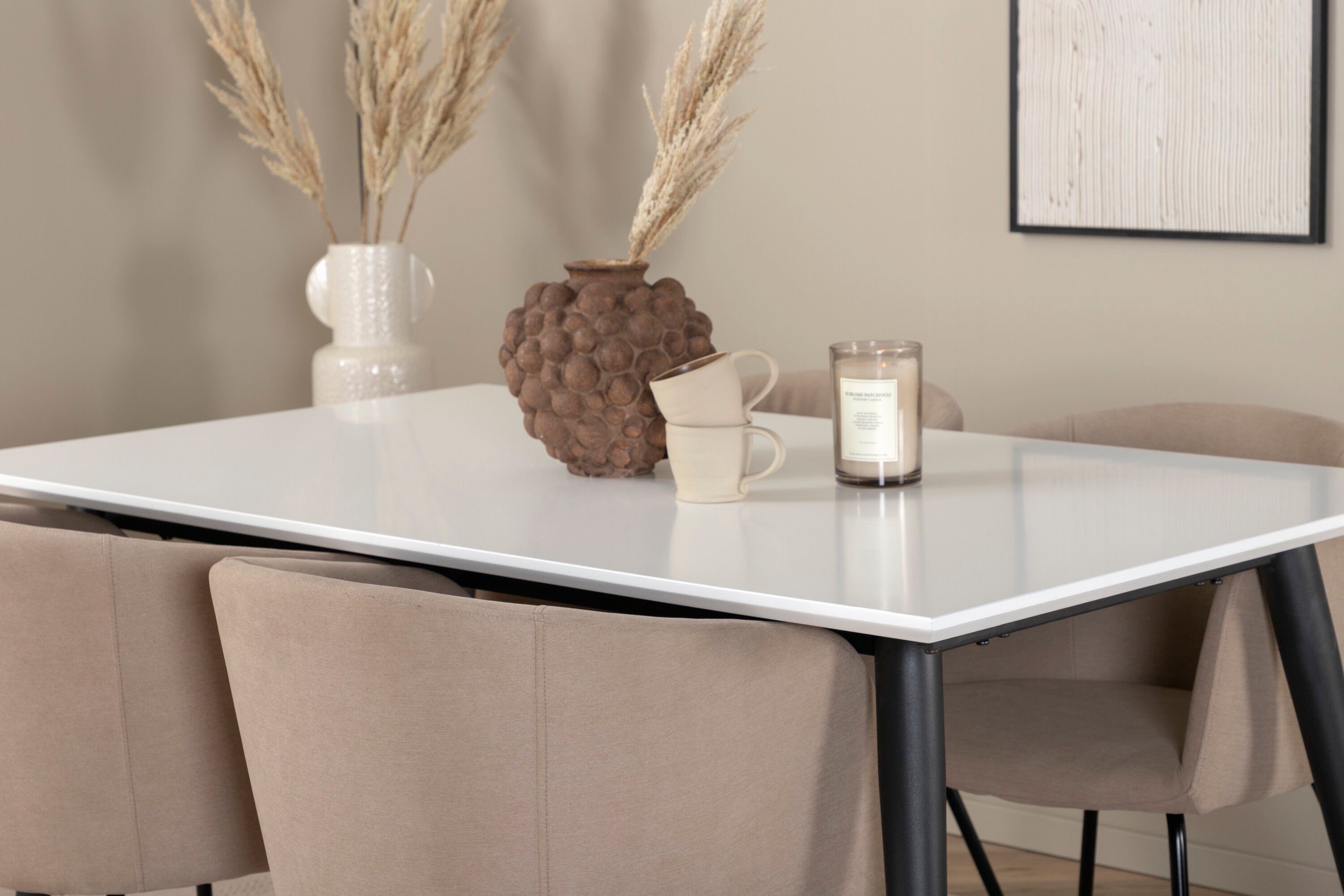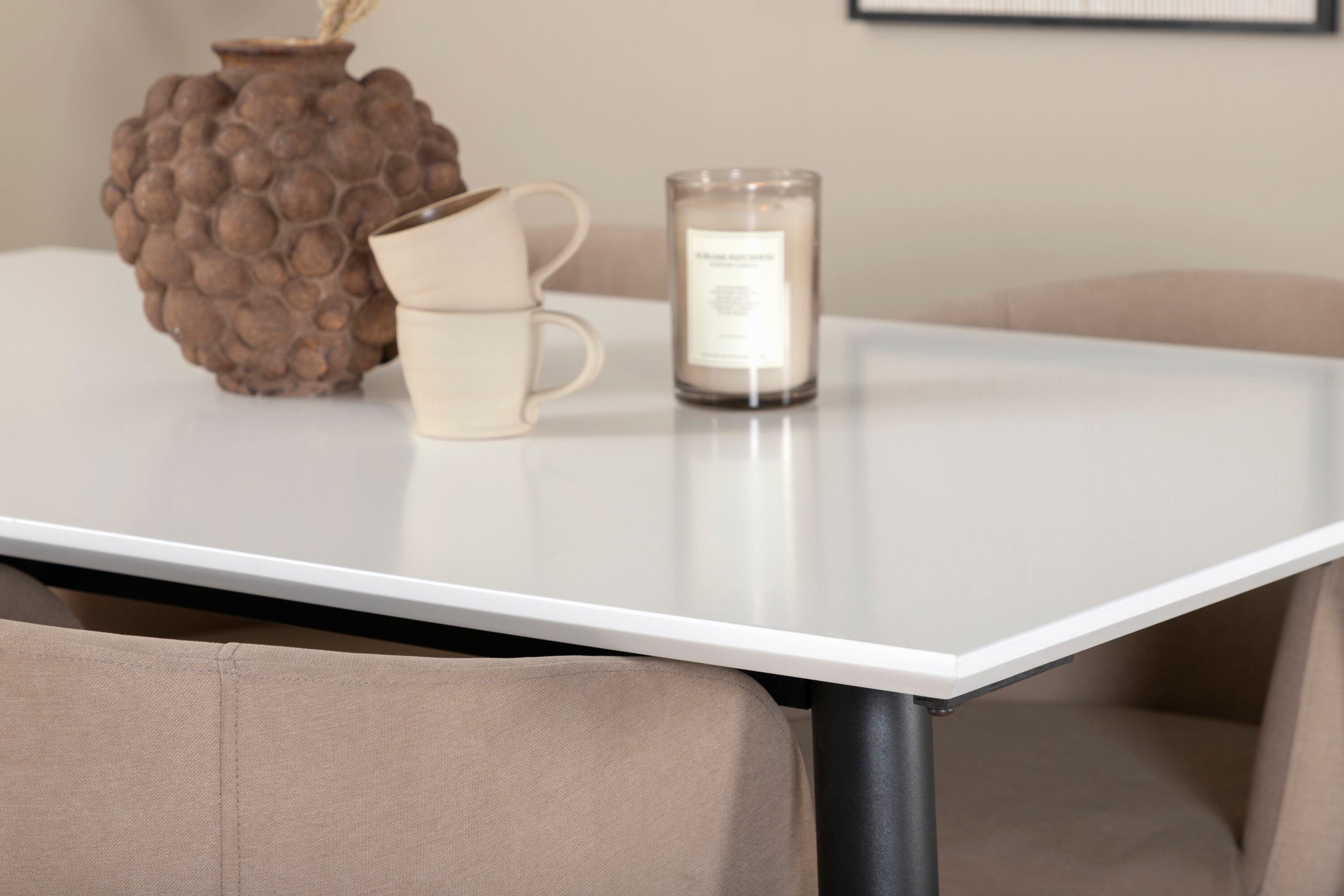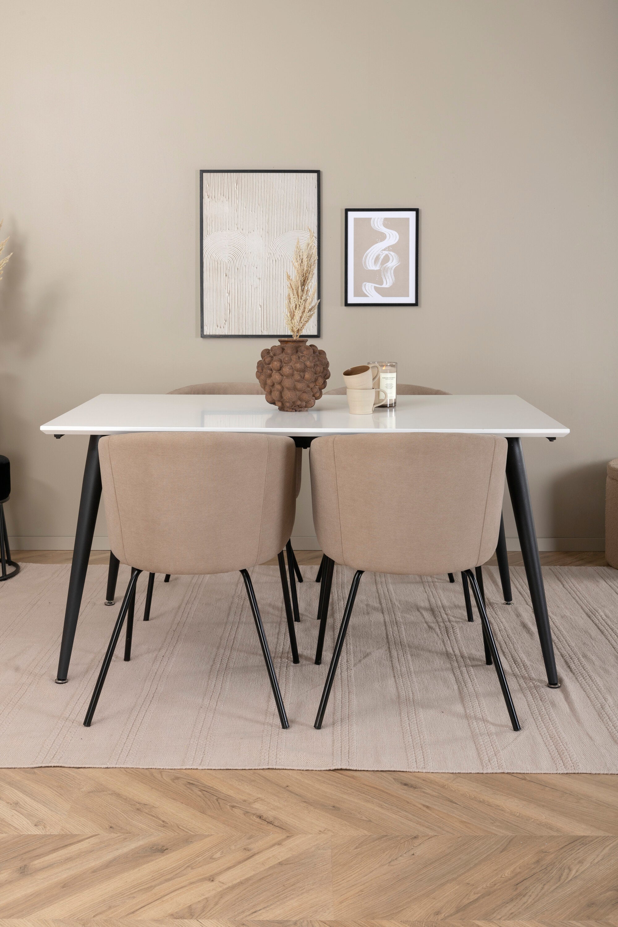 Jídelní stůl Jimmy – černá/bílá HPL+židle Berit – černá/béžová látka (polyesterové prádlo)_4