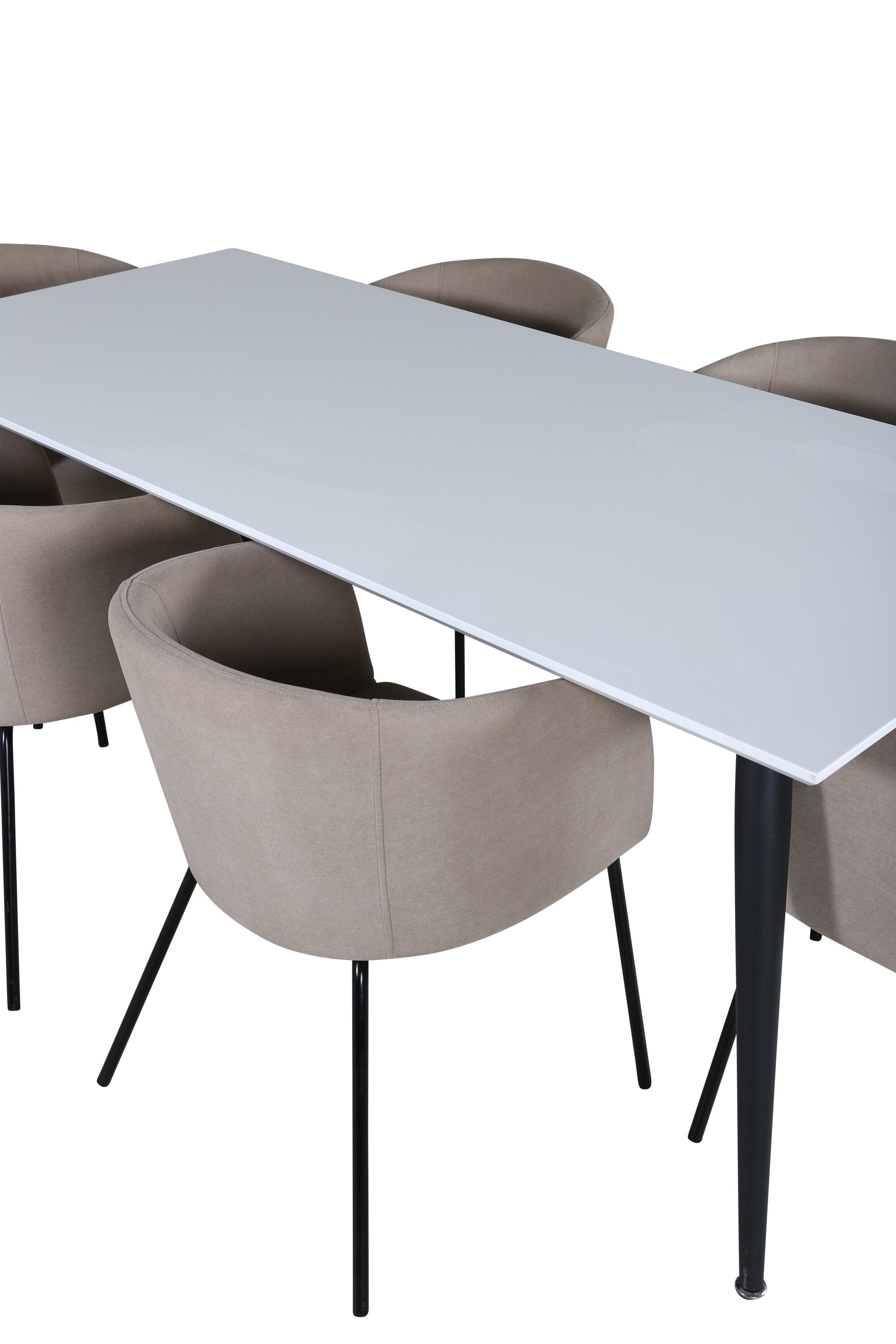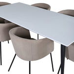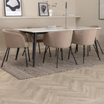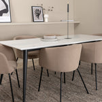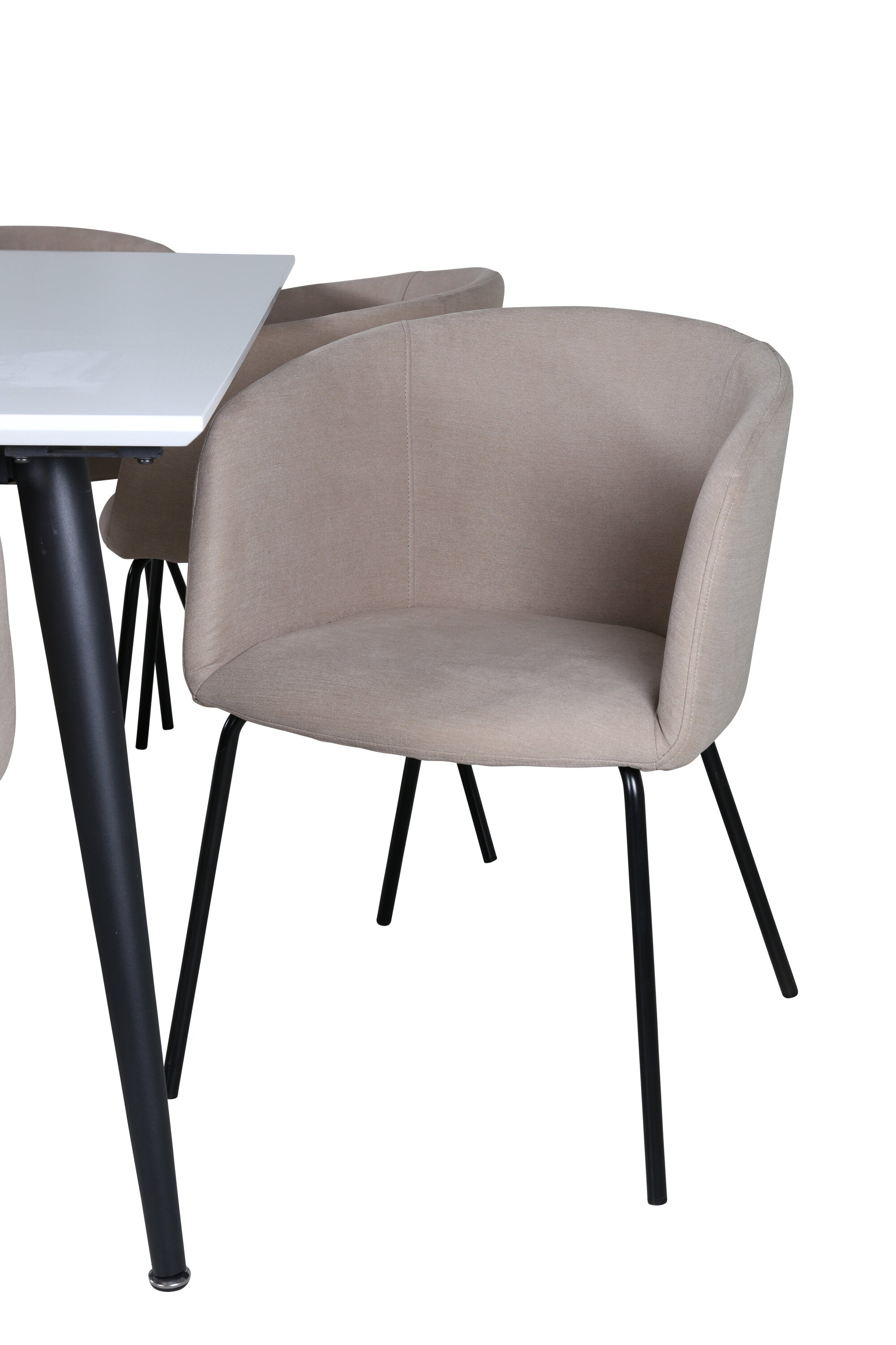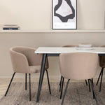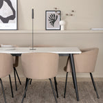 Jídelní stůl Jimmy – černá/bílá HPL+židle Berit – černá/béžová látka (polyesterové prádlo)_6