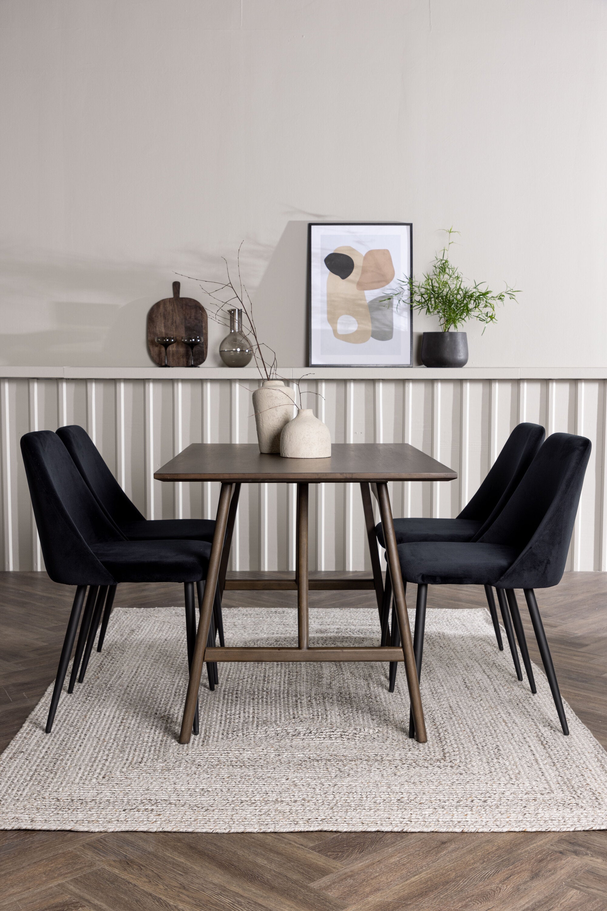 Zařiďte srdce svého domova luxusně, pohodlně a stylově s touto lákavou jídelní sadou ve skandinávském designu!