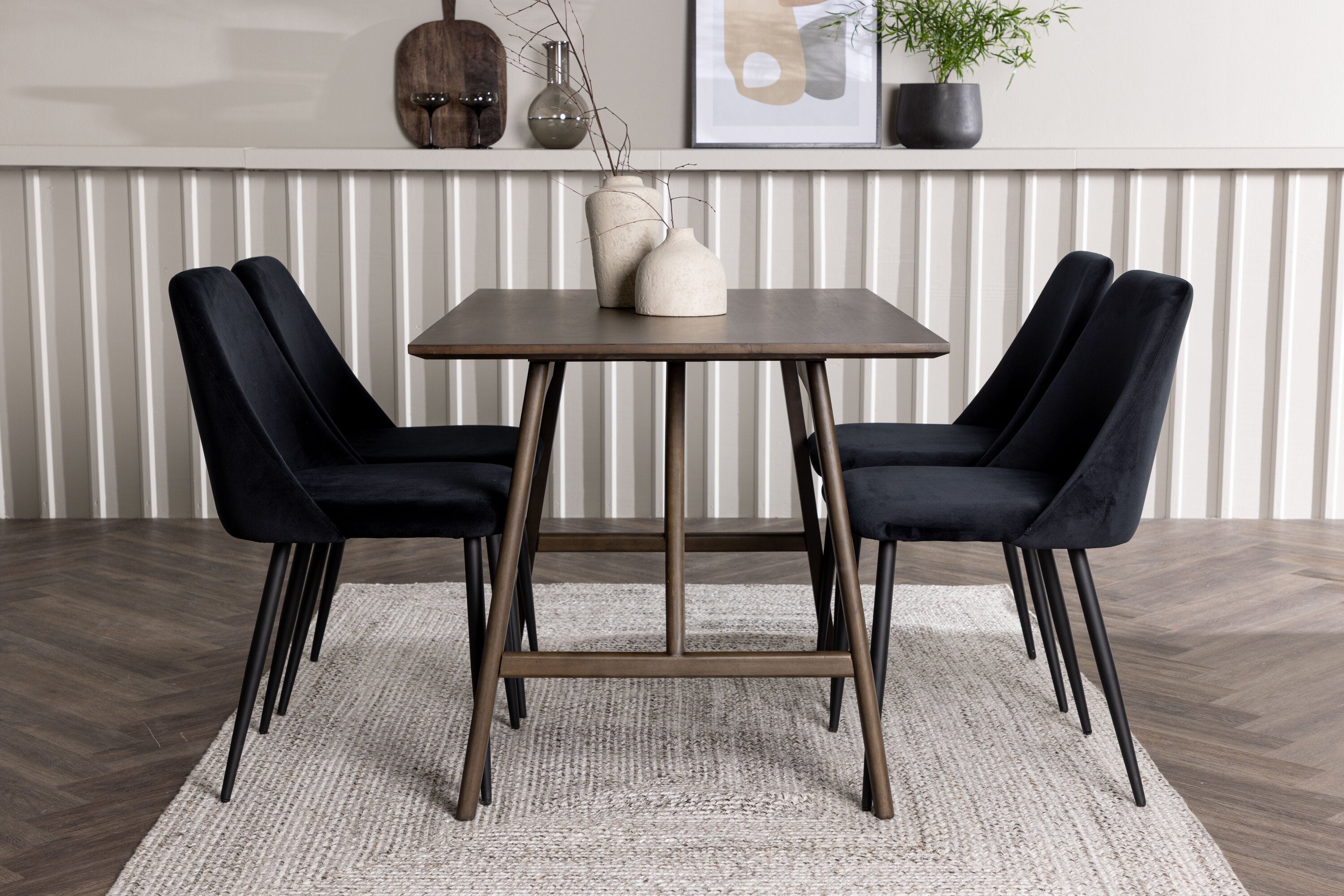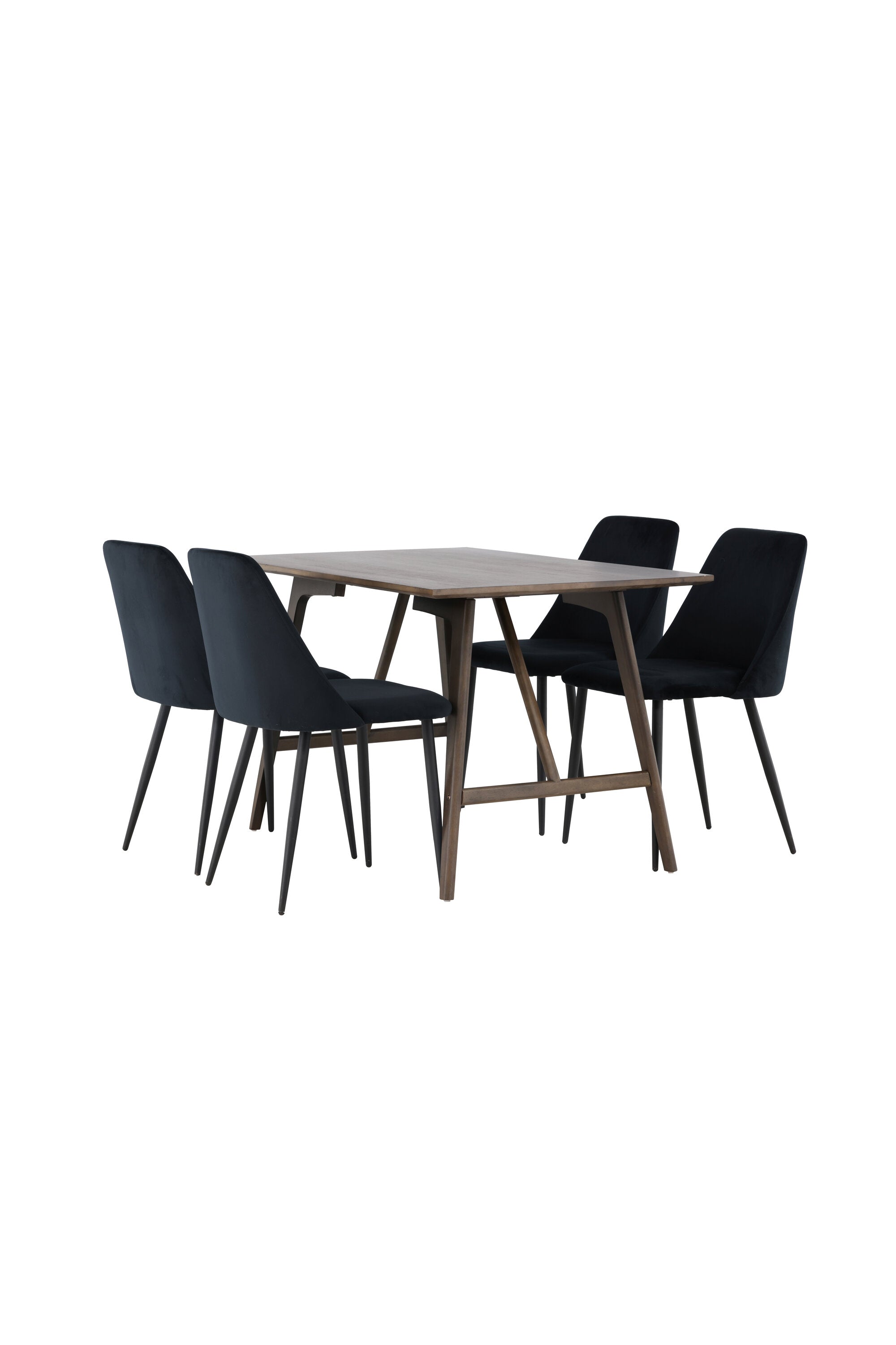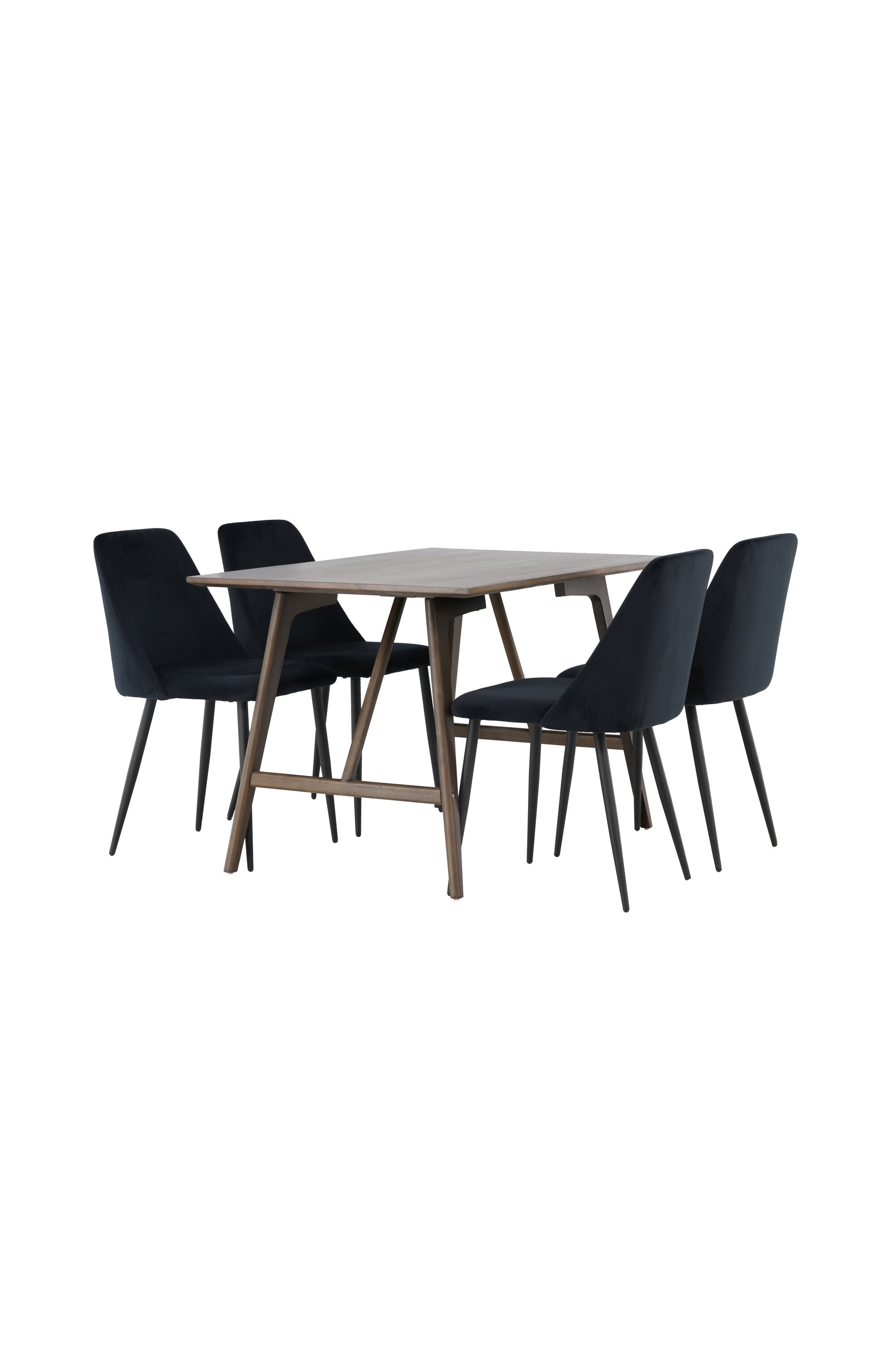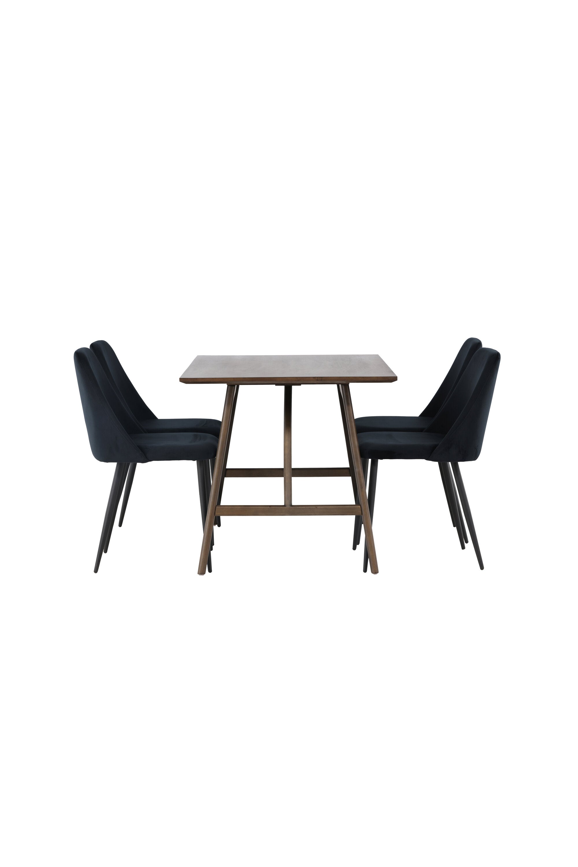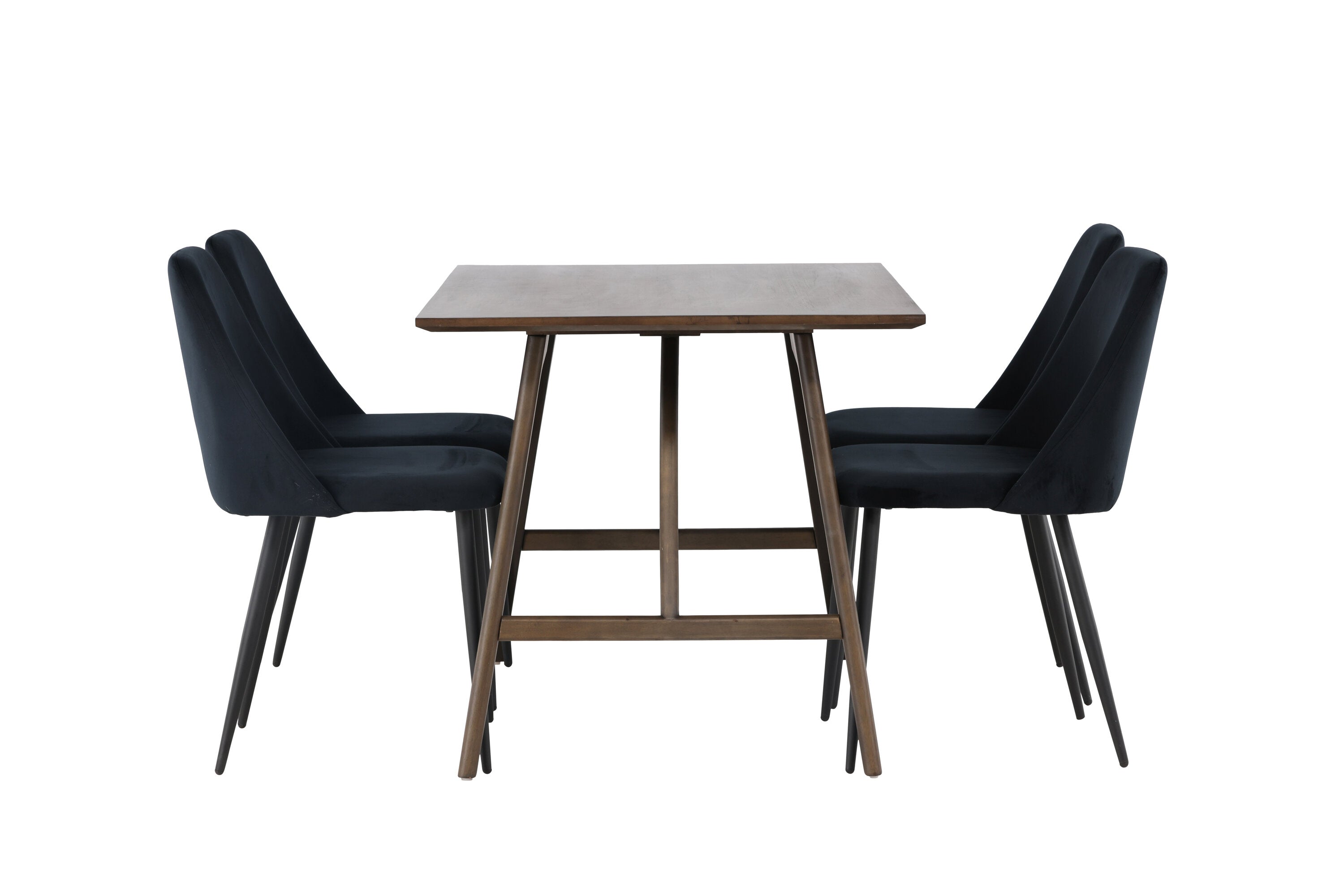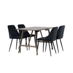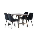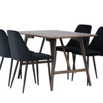 Jídelní stůl Kaseidon – kaučukové dřevo / tmavě hnědá MDF + noční jídelní židle – černá / černý samet _4