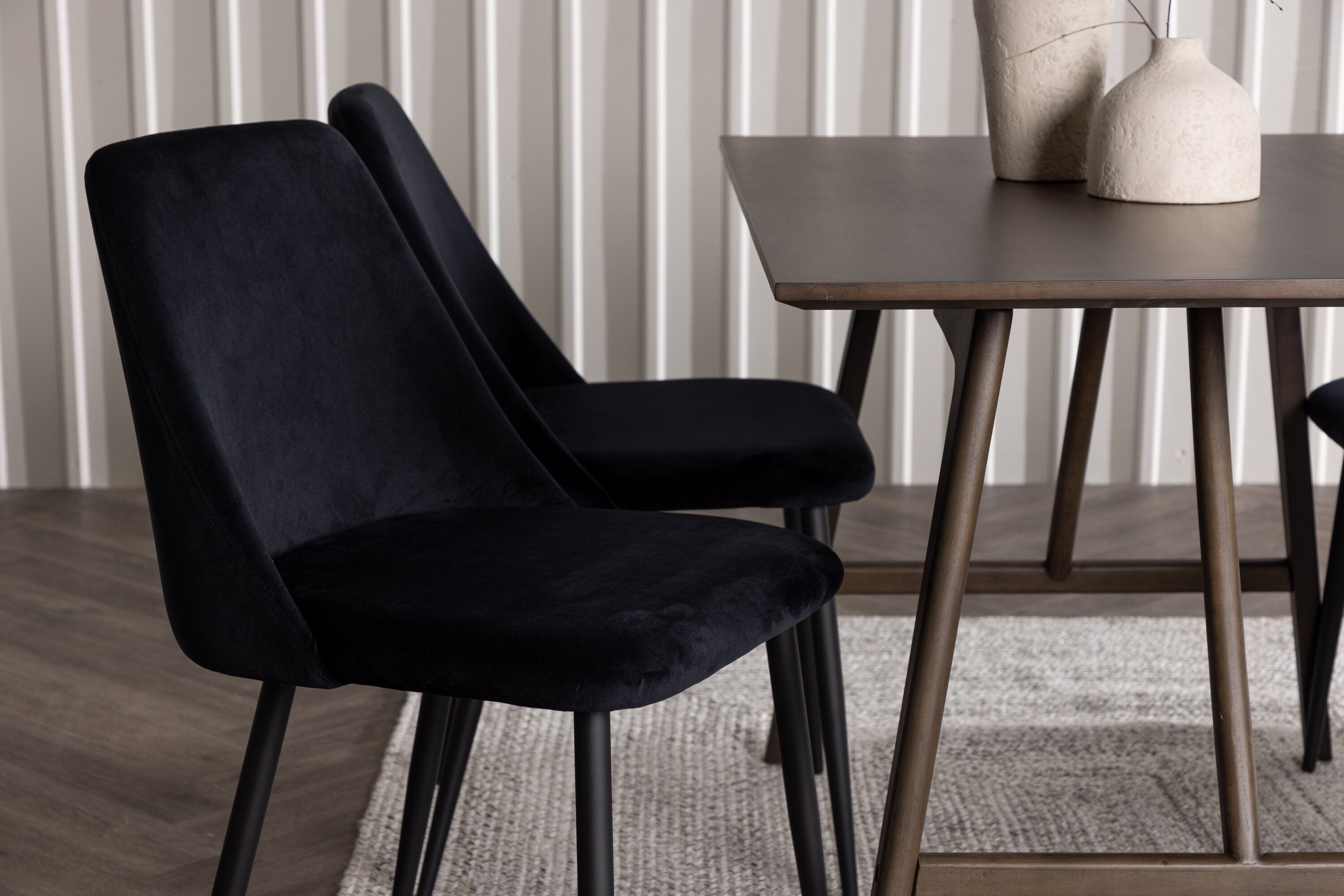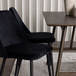Černé jídelní židle ze série Night jsou sladěny s hnědým stolem Kaseidon. S plně čalouněným sedákem z měkké černé sametové látky a nohami židle v odpovídajícím černém odstínu dodává křeslo Night do vašeho pokoje okamžitý nádech luxusu. Nabízí nejen elegantní design, ale také fantastický komfort, který nemá konkurenci.