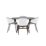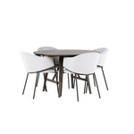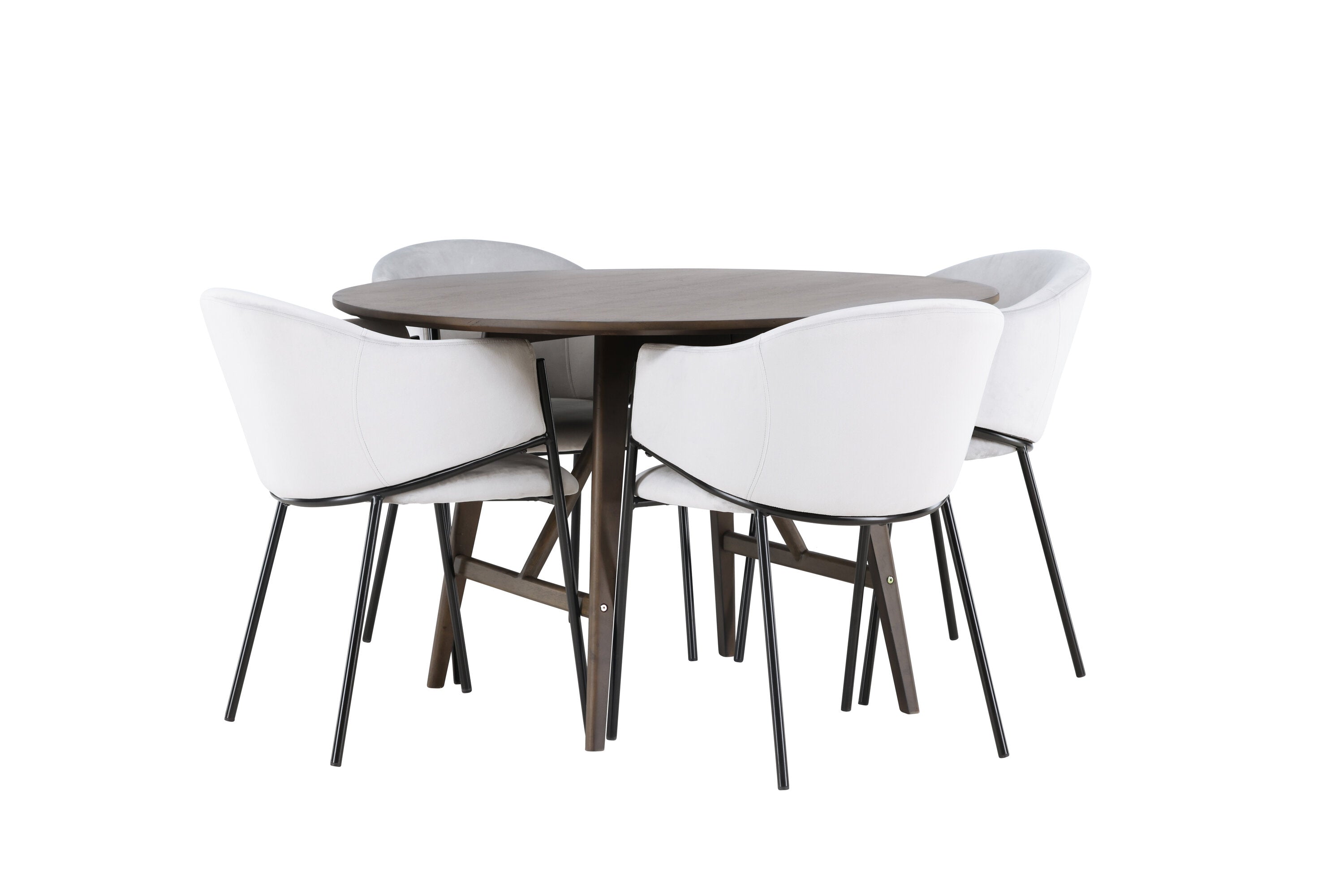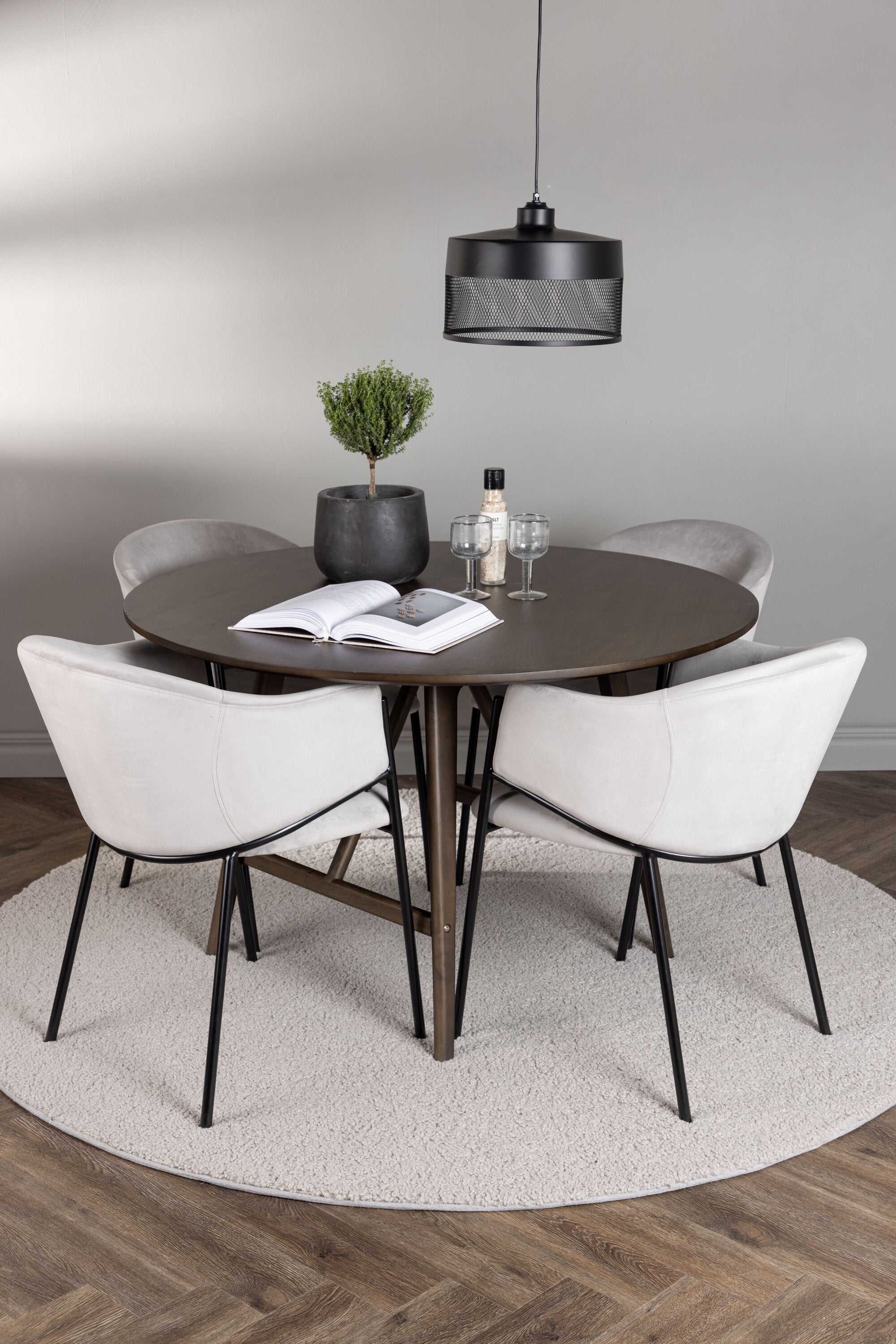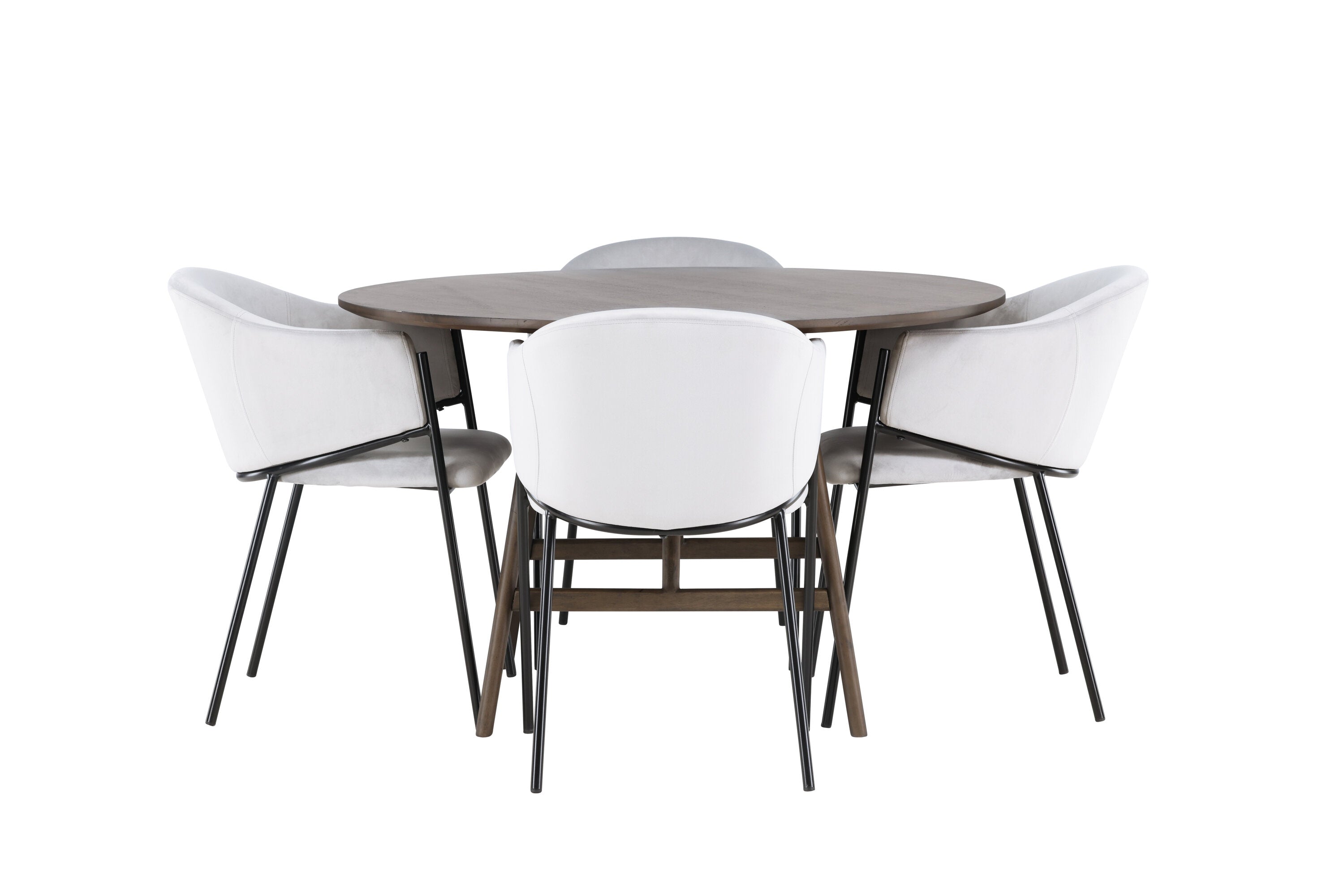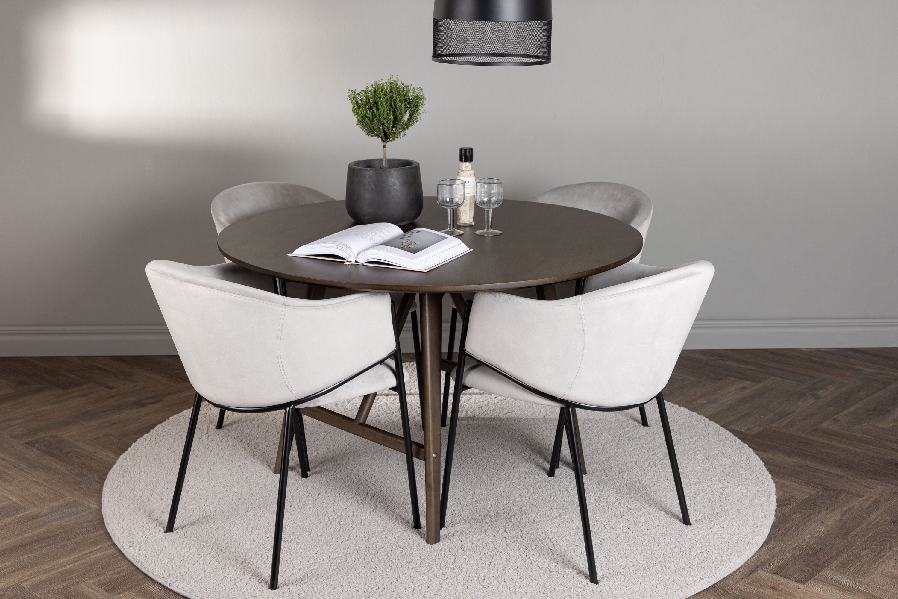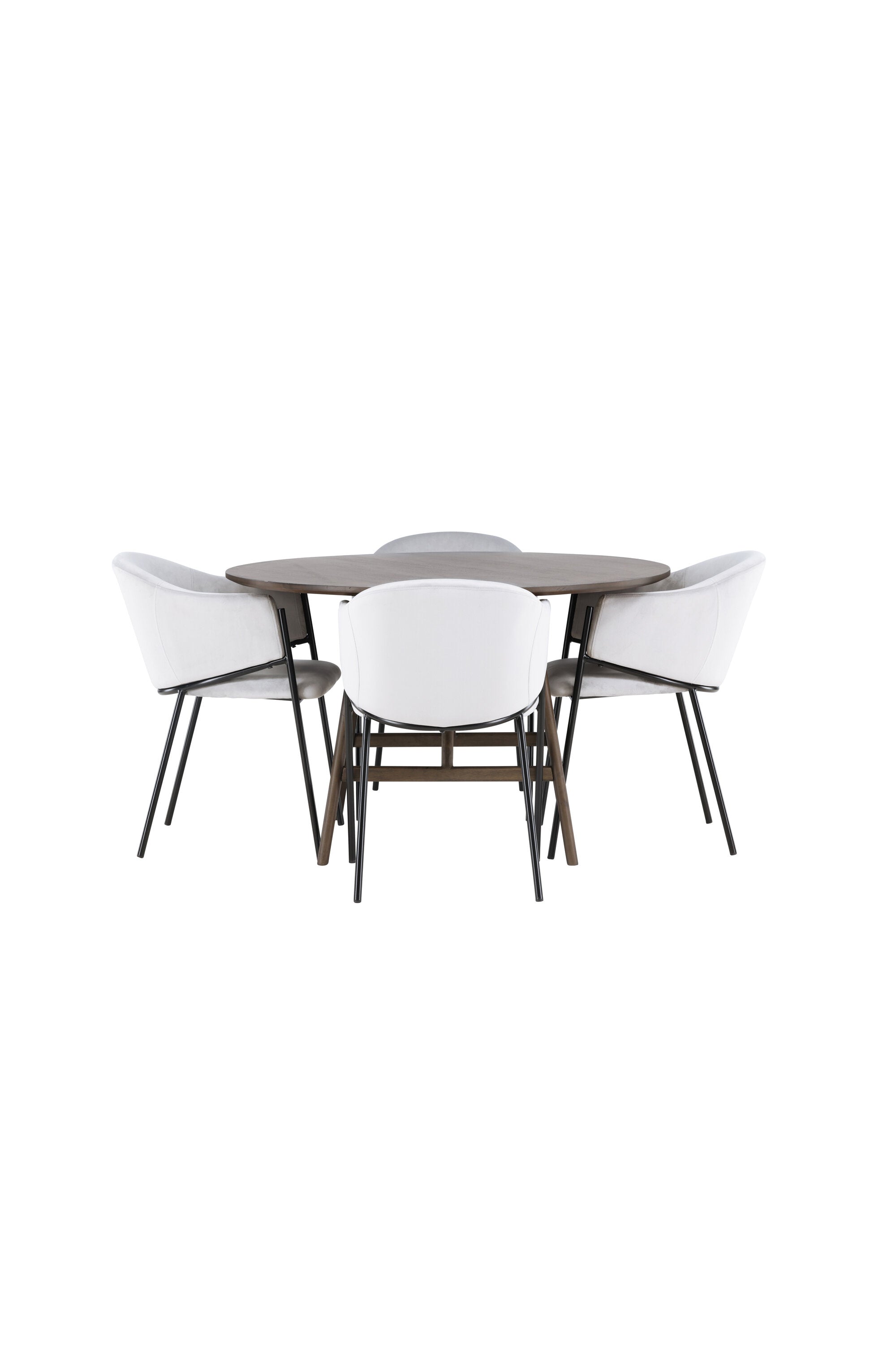 Jídelní stůl Kaseidon - Kulatý - Gumové dřevo / Tmavě hnědá MDF + Jídelní židle Evelina - Černá / Světle šedá Velvet _4